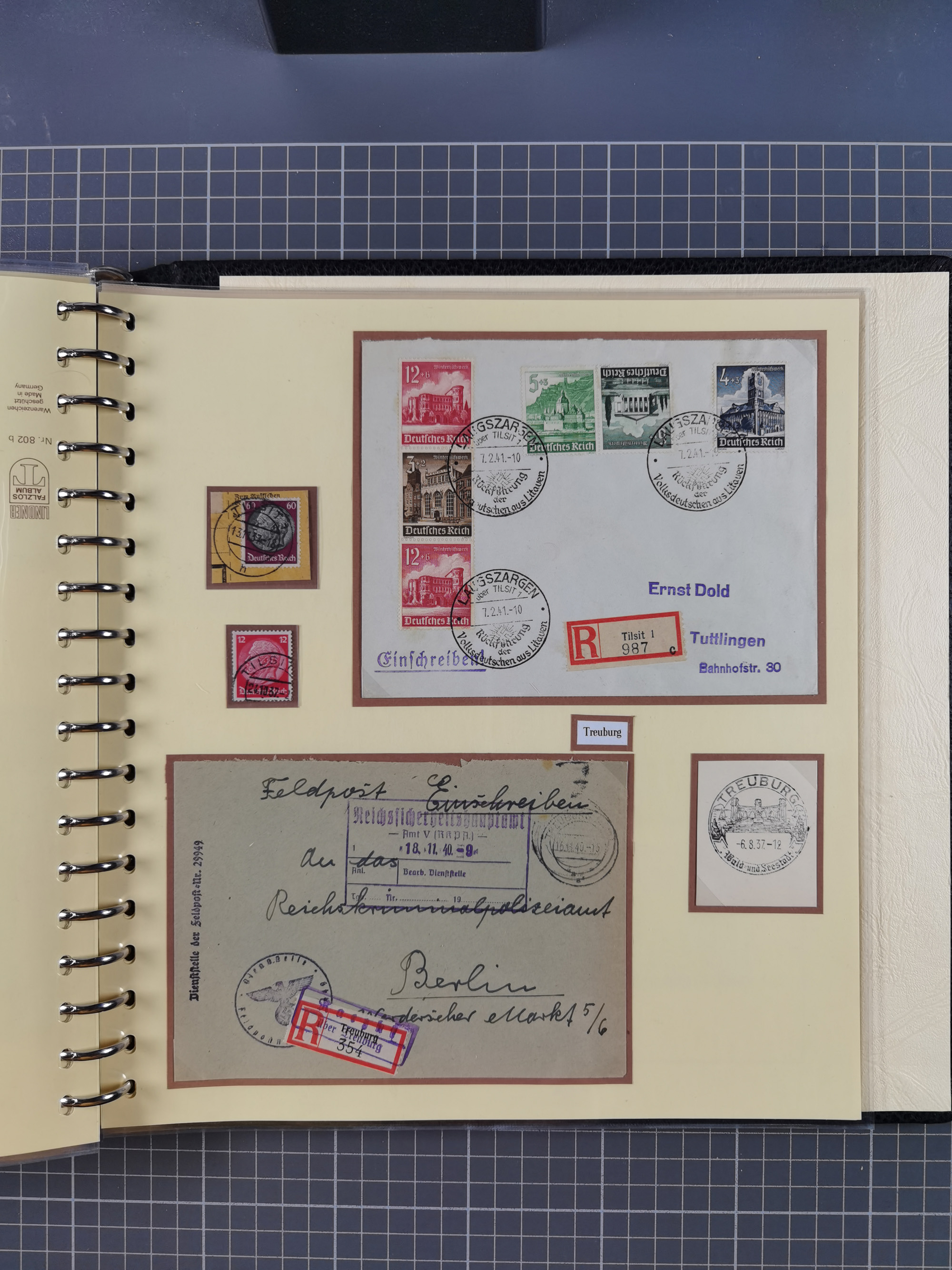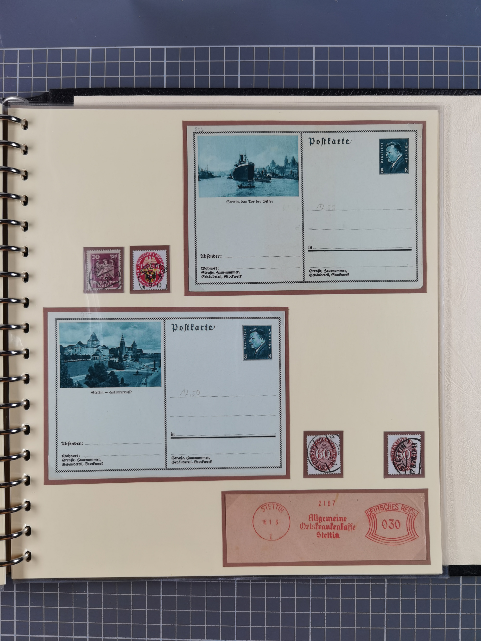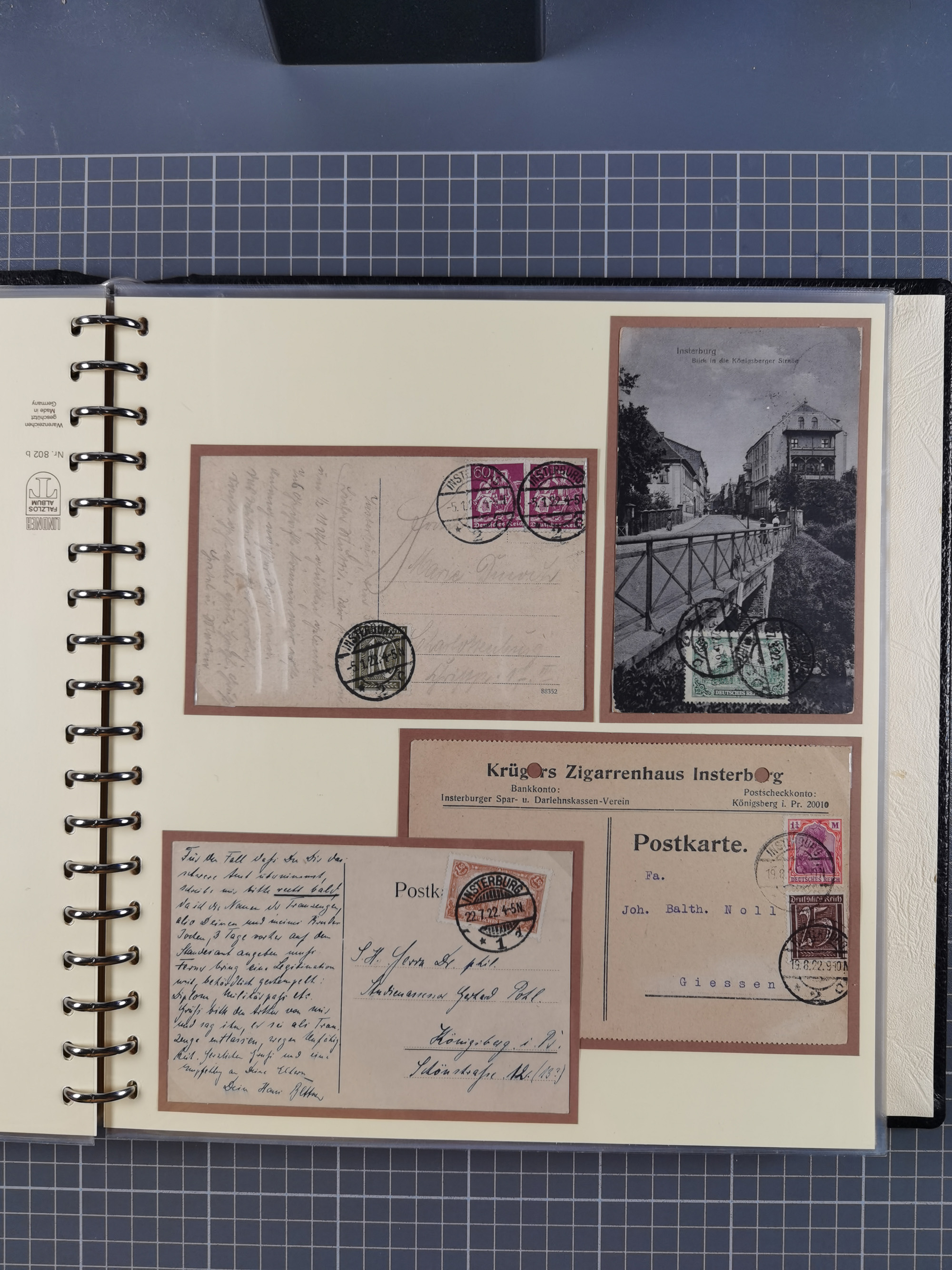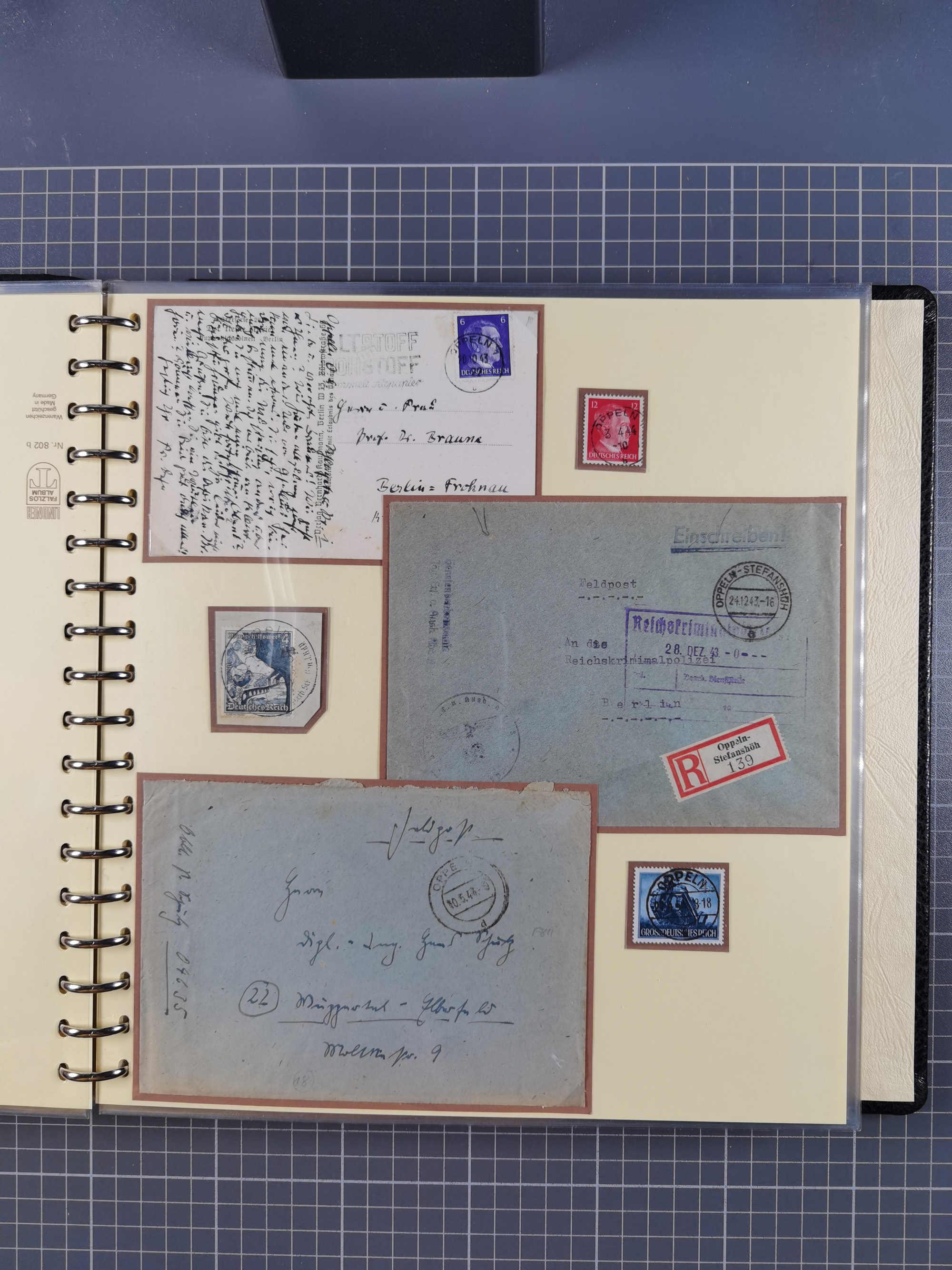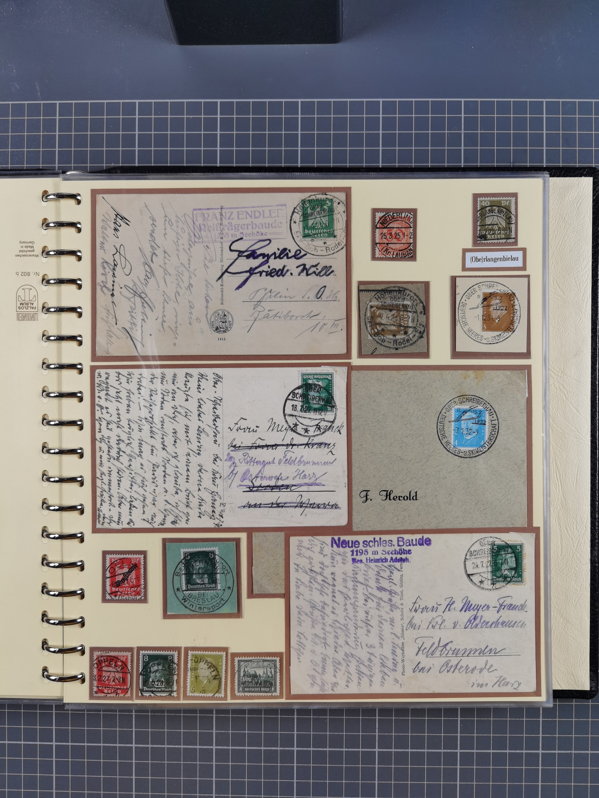 1865/1950 (ca.), Album mit 122 hochwertigen Belegen, diese einzeln vom Einlieferer beschrieben und nach Michel bewertet 15.000 €. Dazu ein Karton mit über 170 Briefen, Karten und Ganzsachen, dabei etliche interessante Belege, meist gute Erhaltung