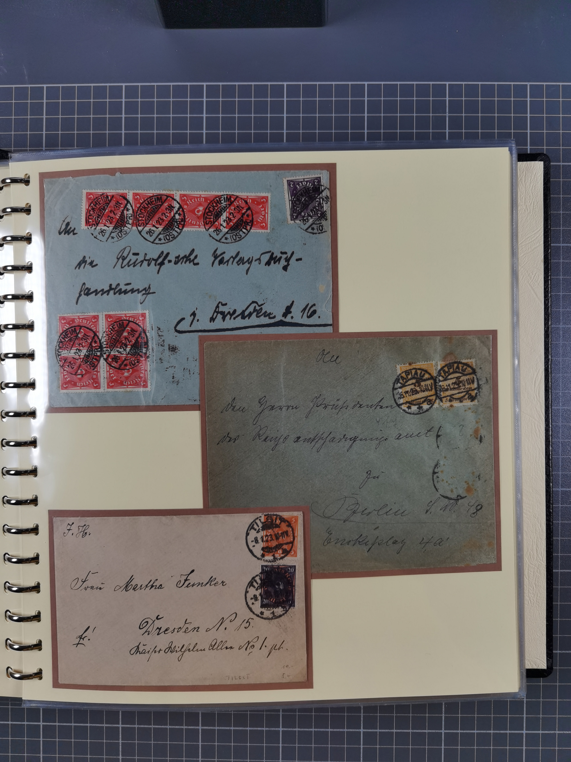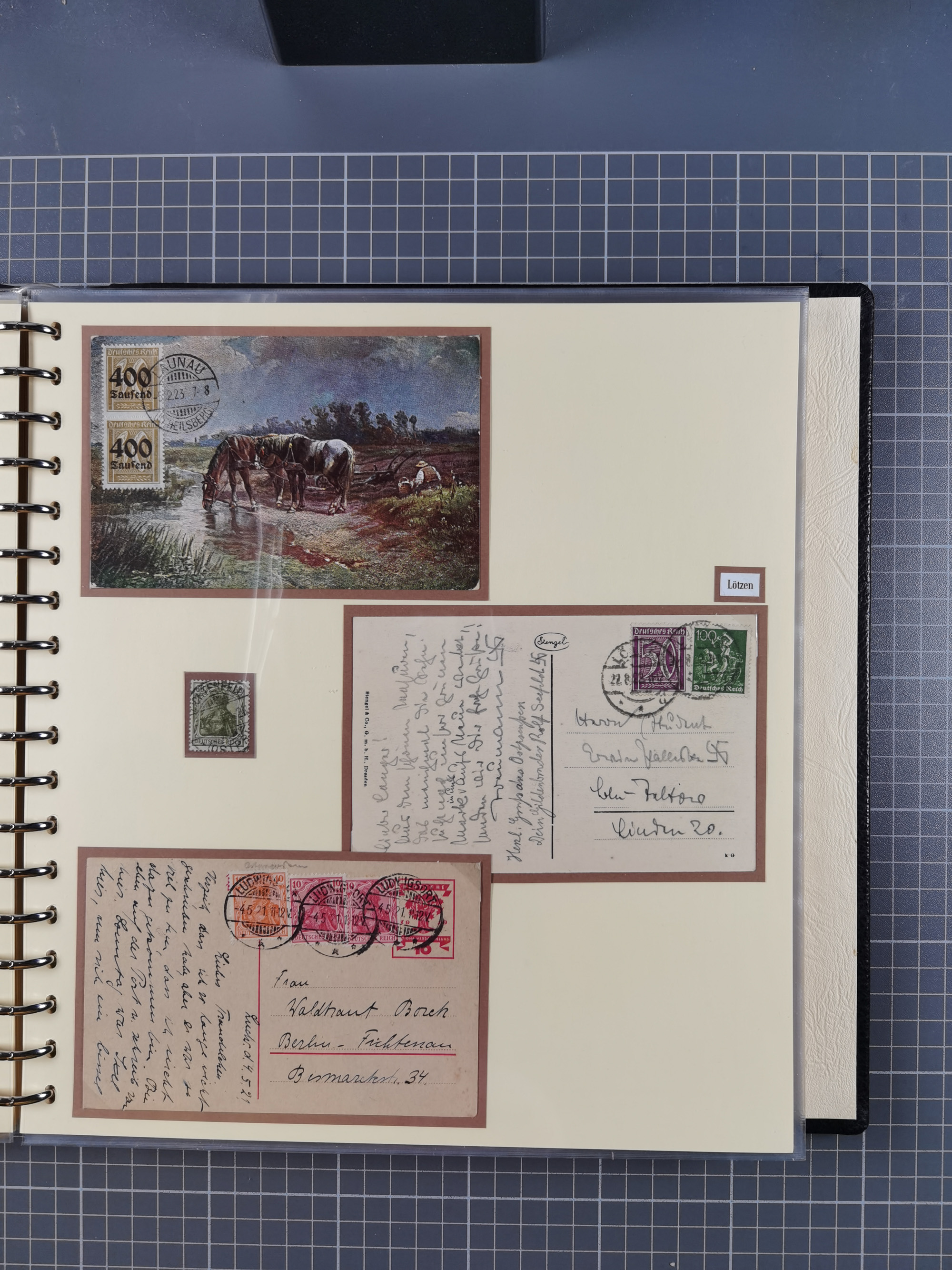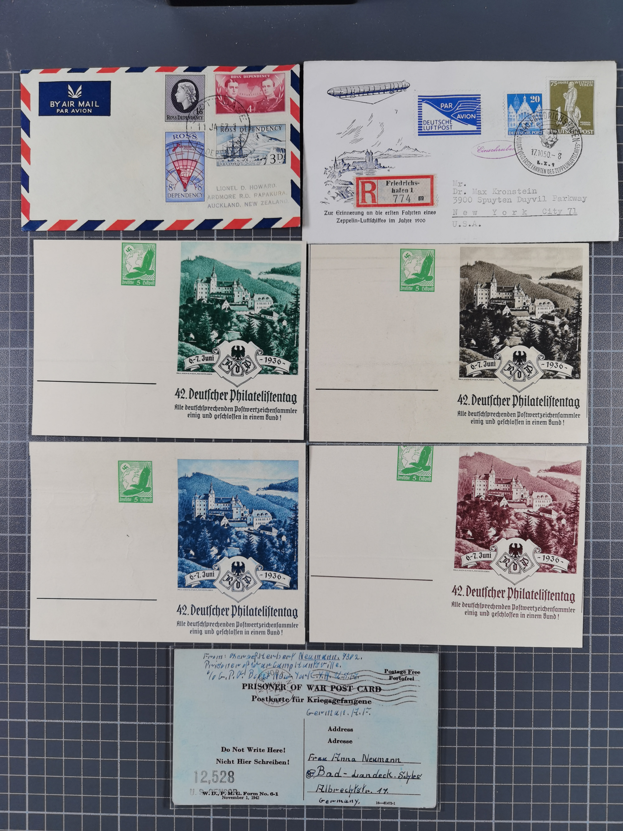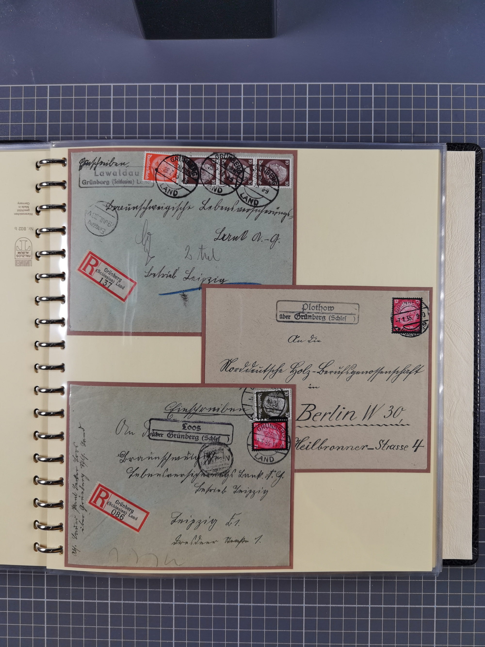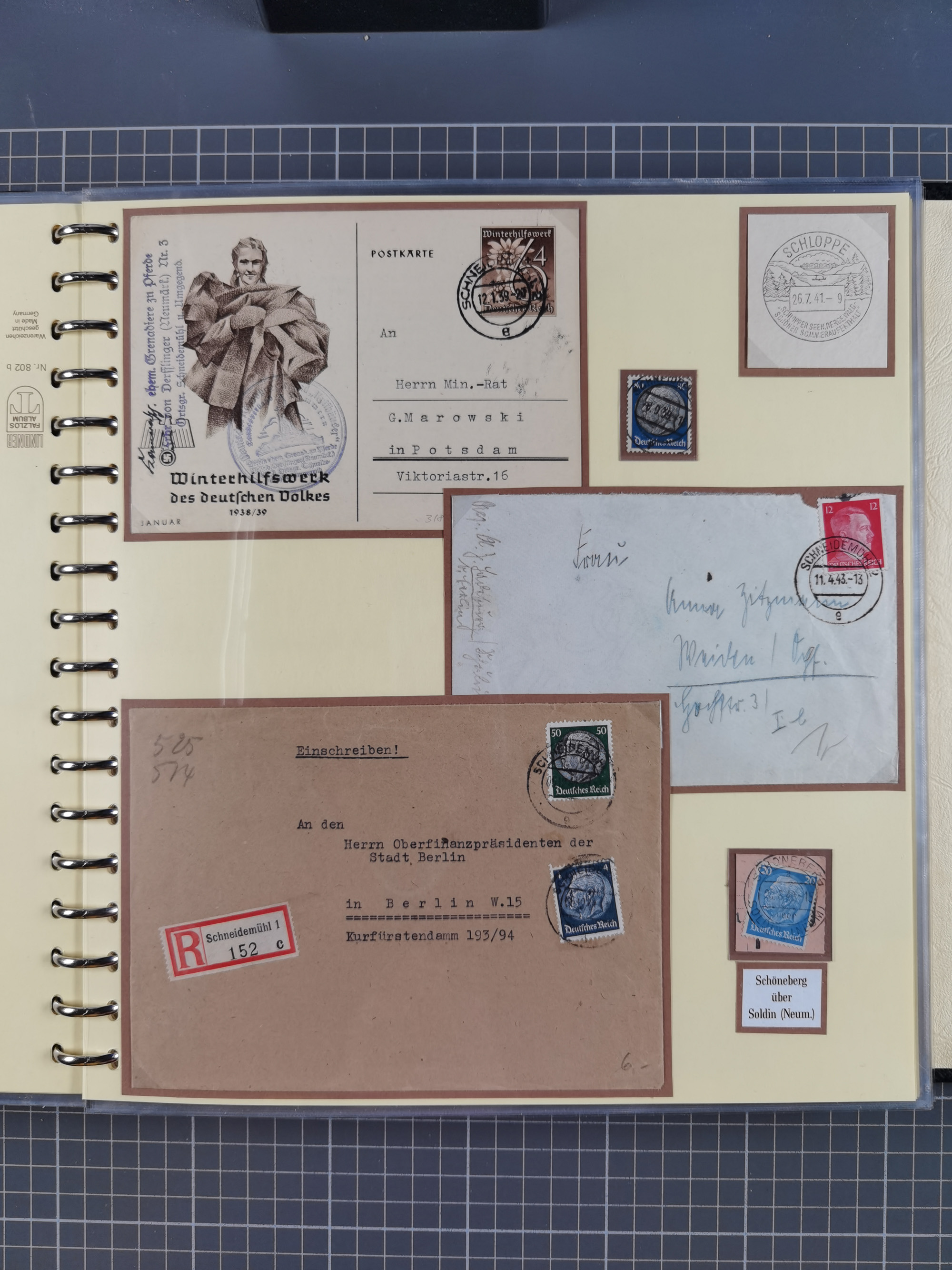 1865/1950 (ca.), Album mit 122 hochwertigen Belegen, diese einzeln vom Einlieferer beschrieben und nach Michel bewertet 15.000 €. Dazu ein Karton mit über 170 Briefen, Karten und Ganzsachen, dabei etliche interessante Belege, meist gute Erhaltung