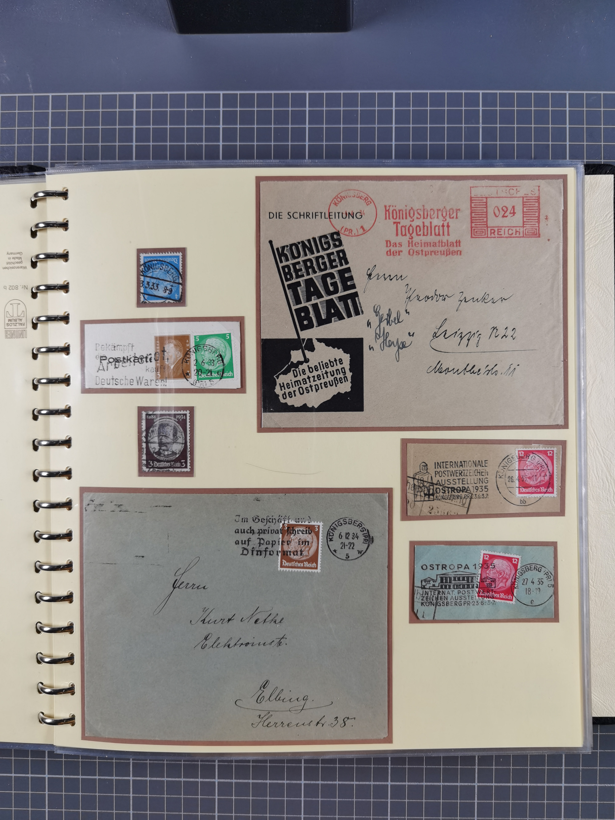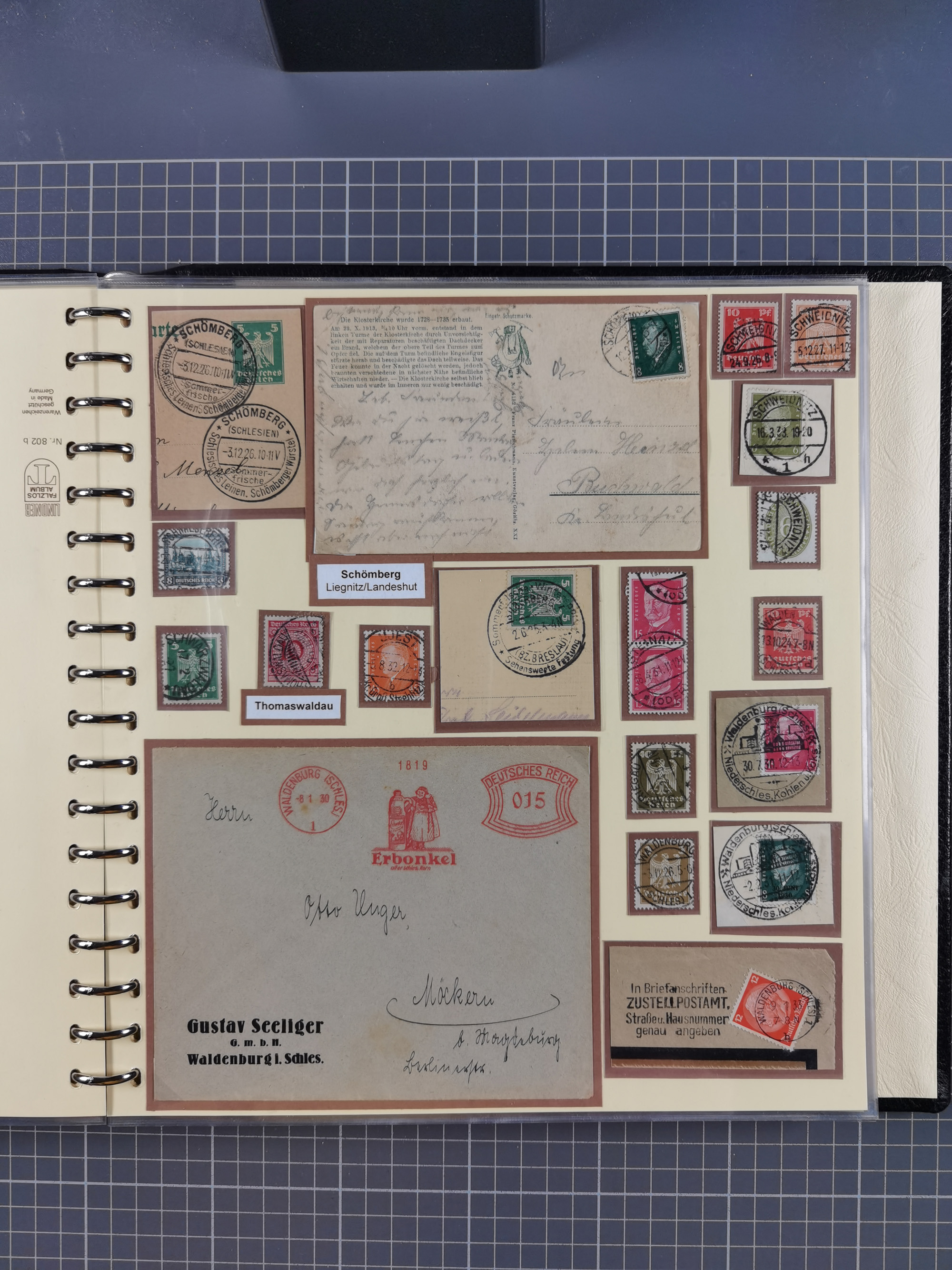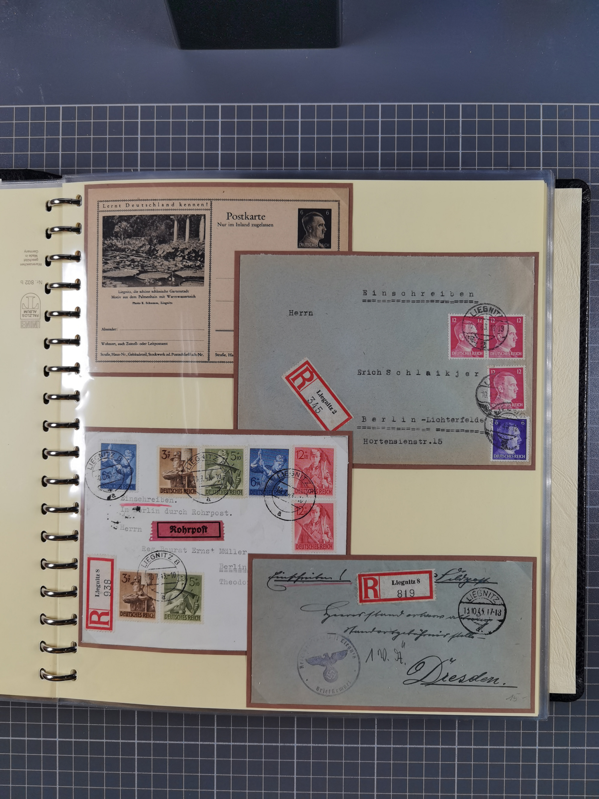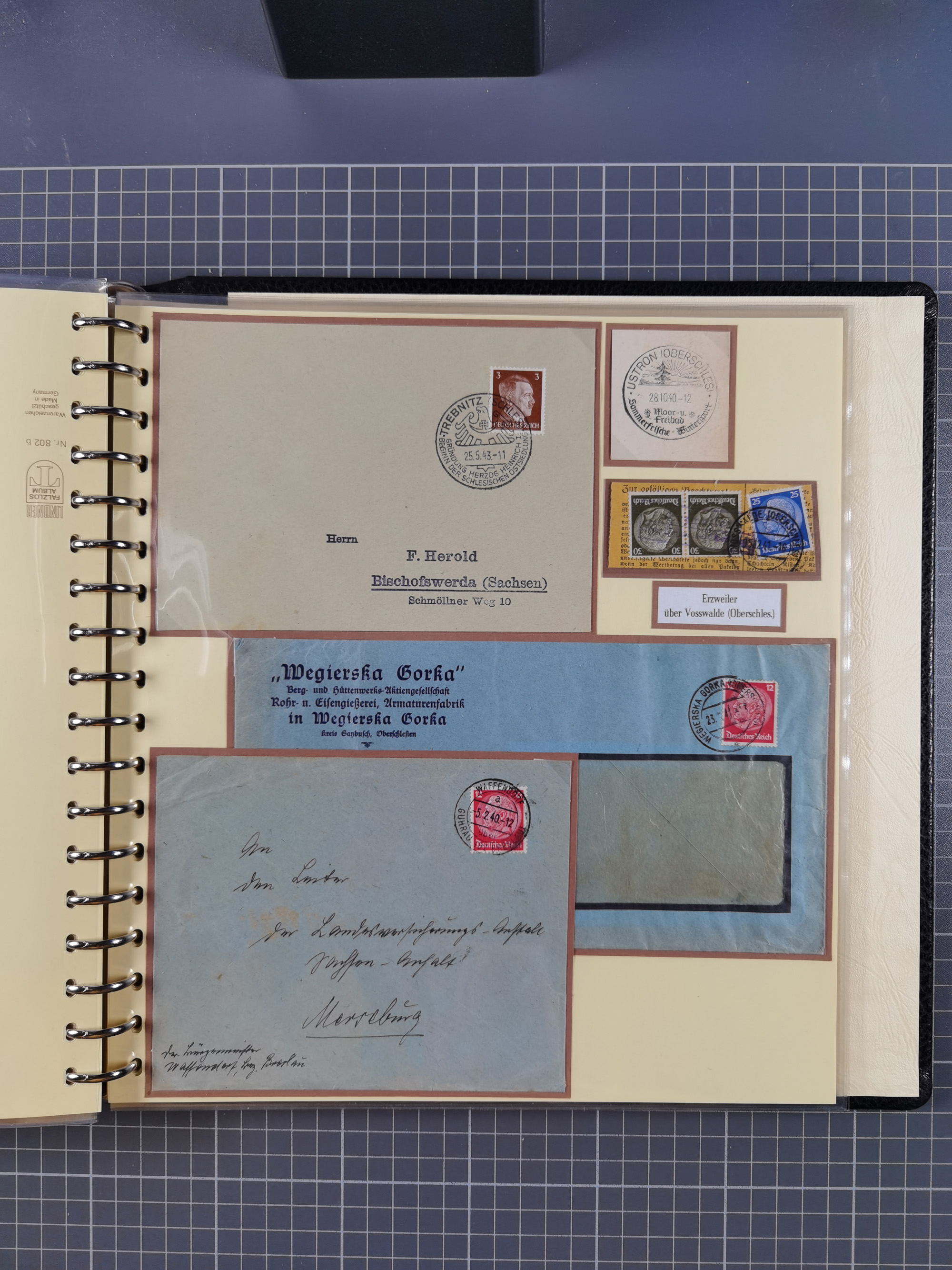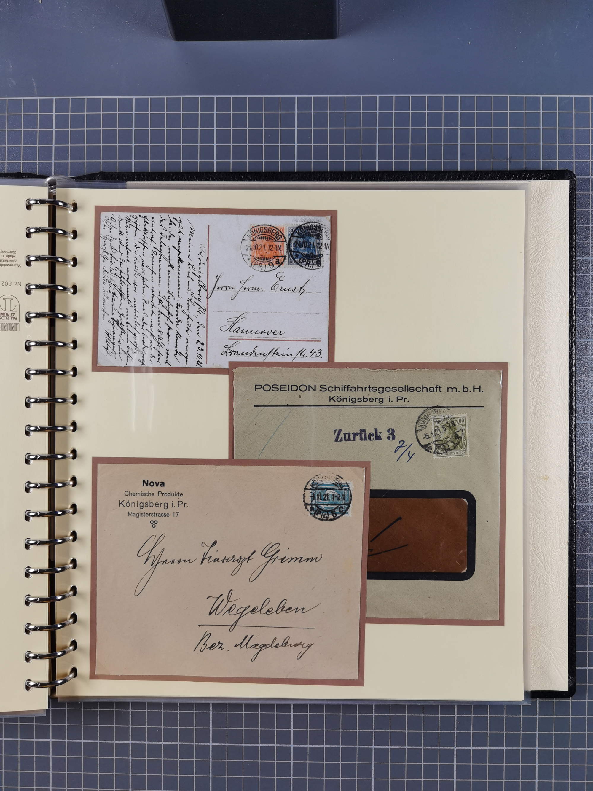 1865/1950 (ca.), Album mit 122 hochwertigen Belegen, diese einzeln vom Einlieferer beschrieben und nach Michel bewertet 15.000 €. Dazu ein Karton mit über 170 Briefen, Karten und Ganzsachen, dabei etliche interessante Belege, meist gute Erhaltung