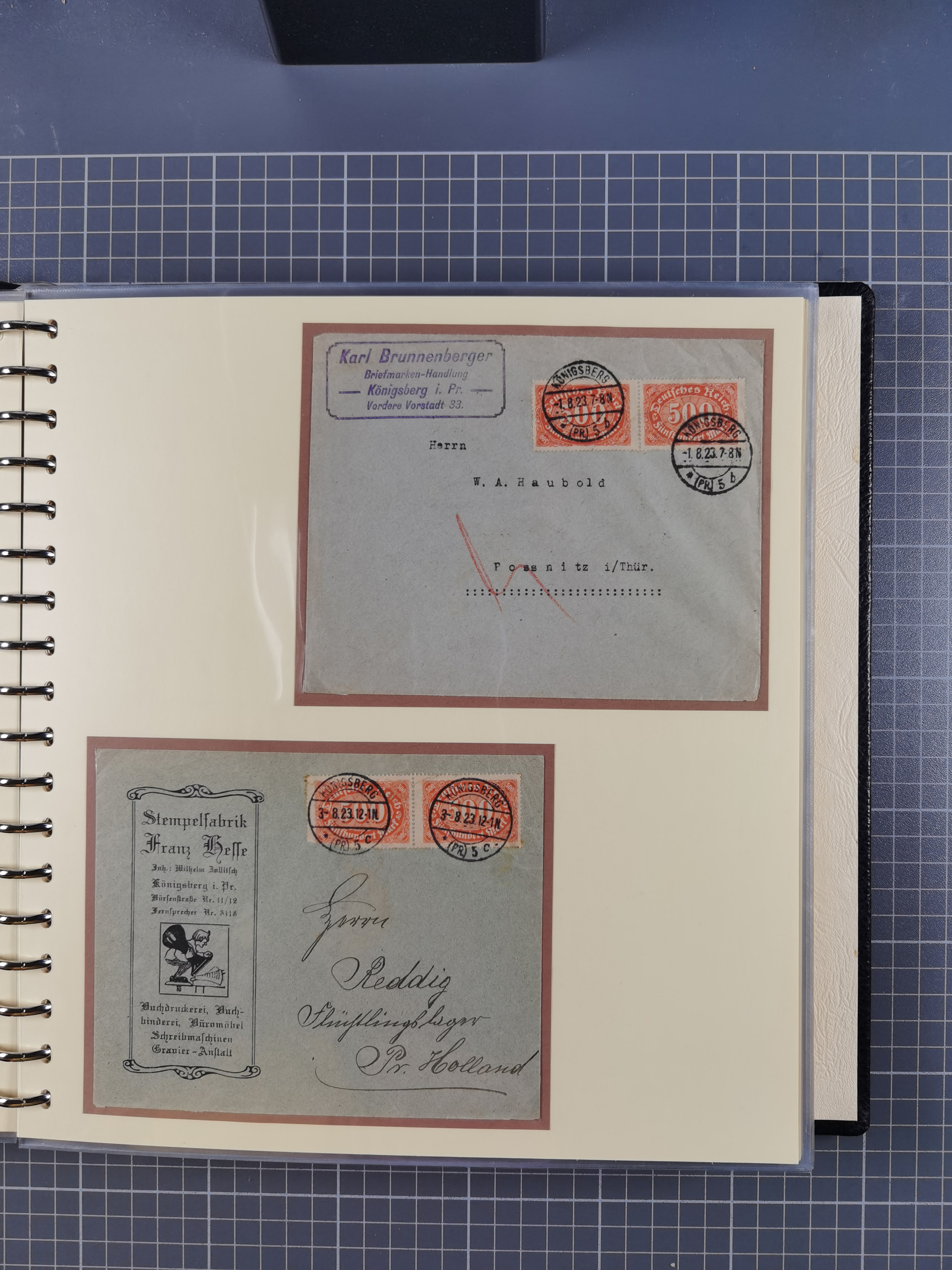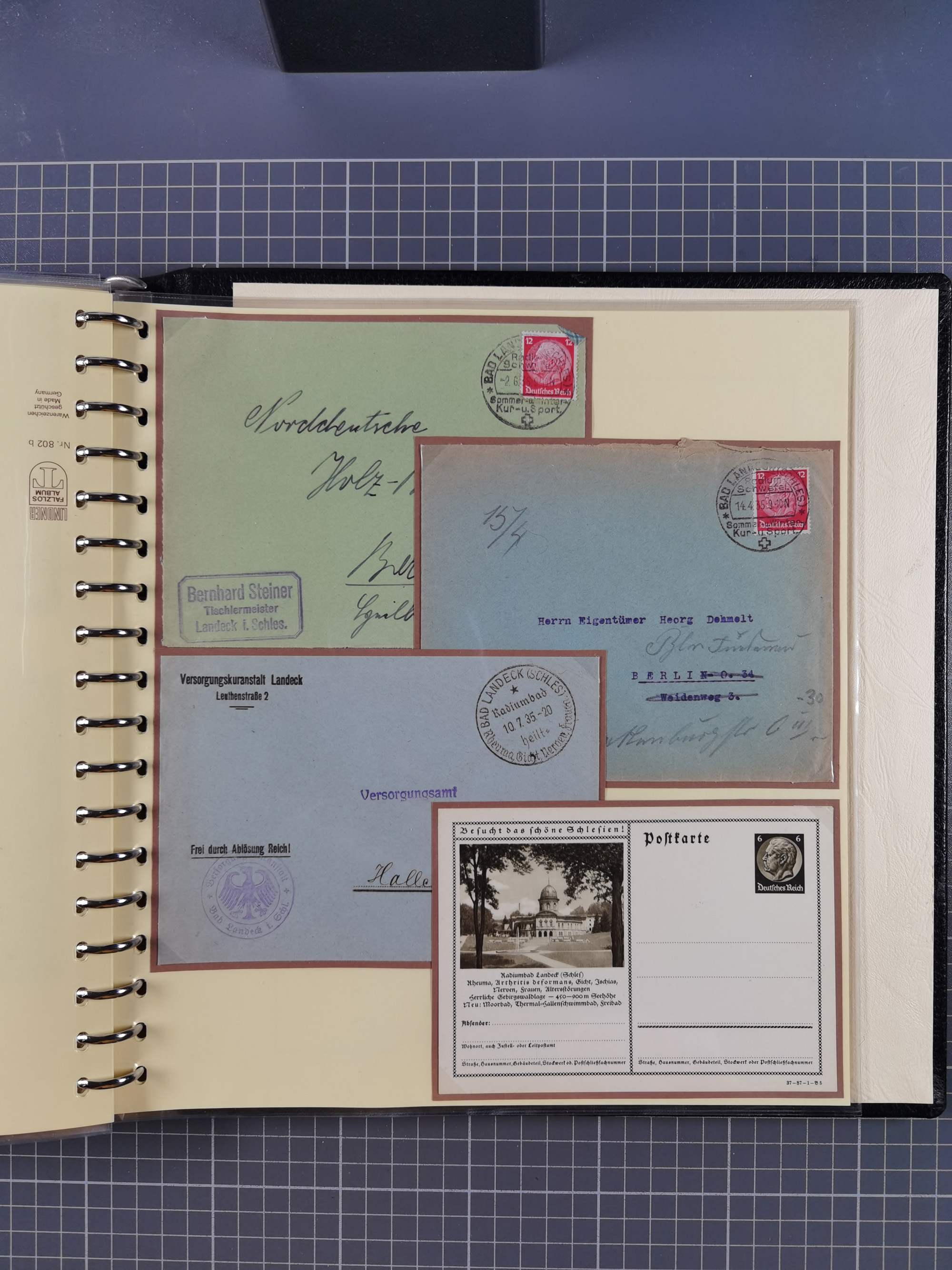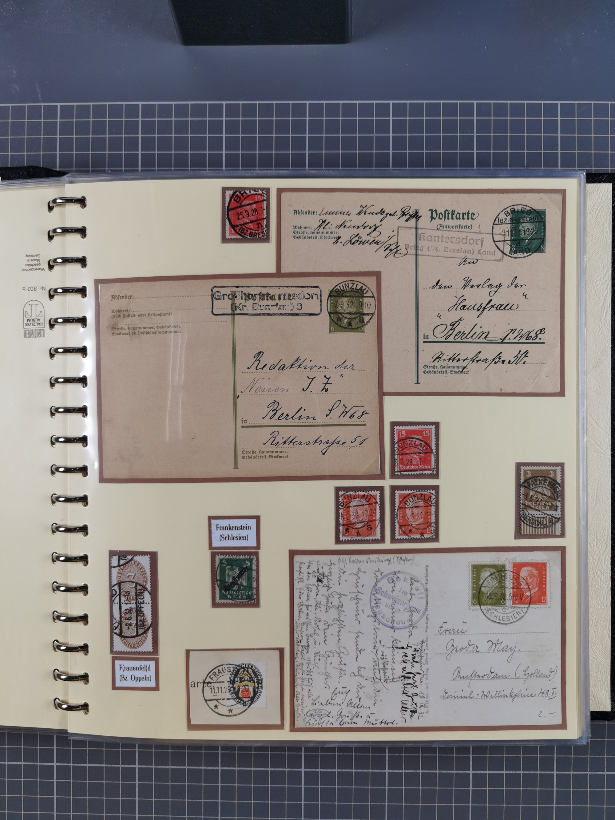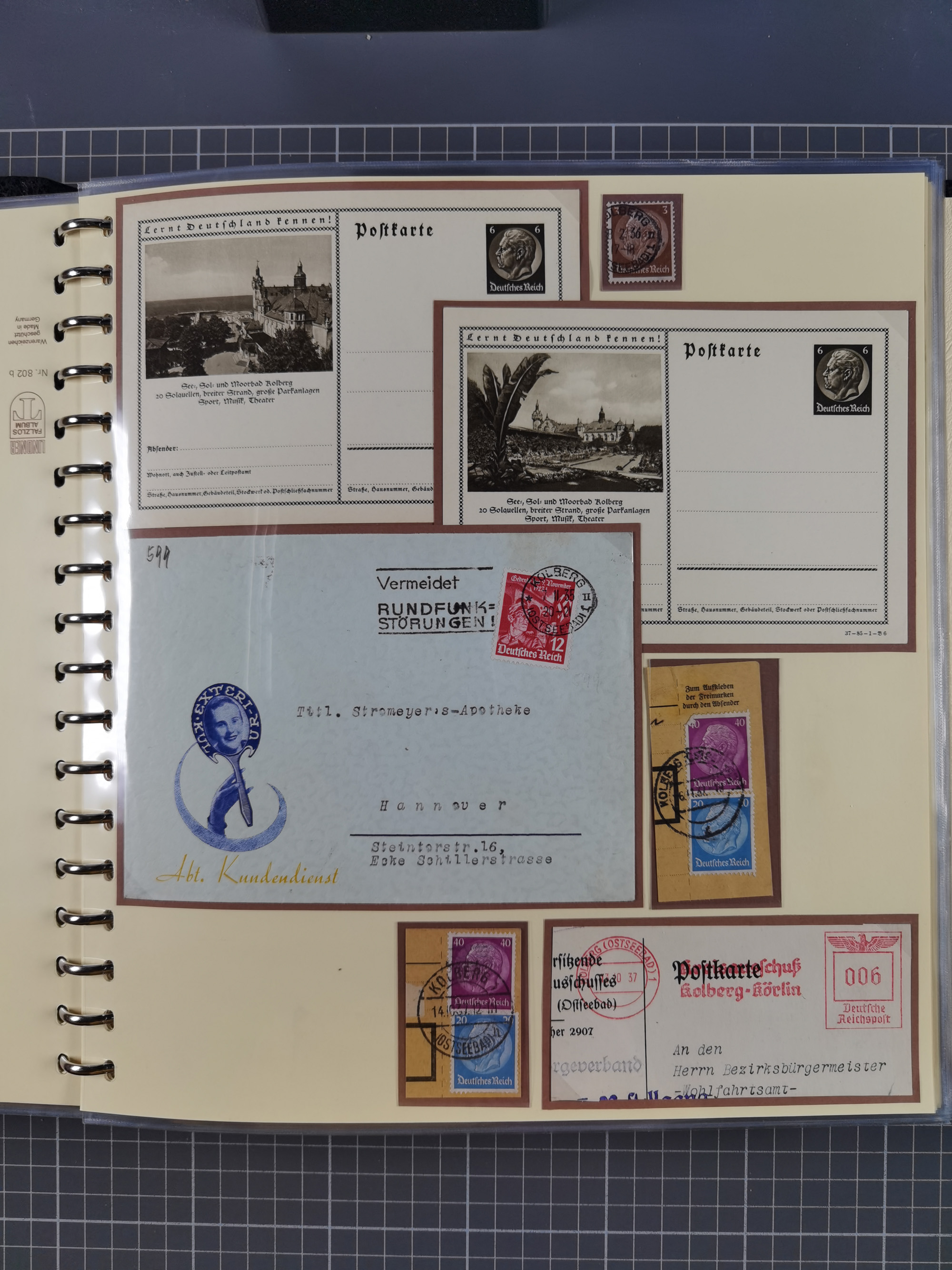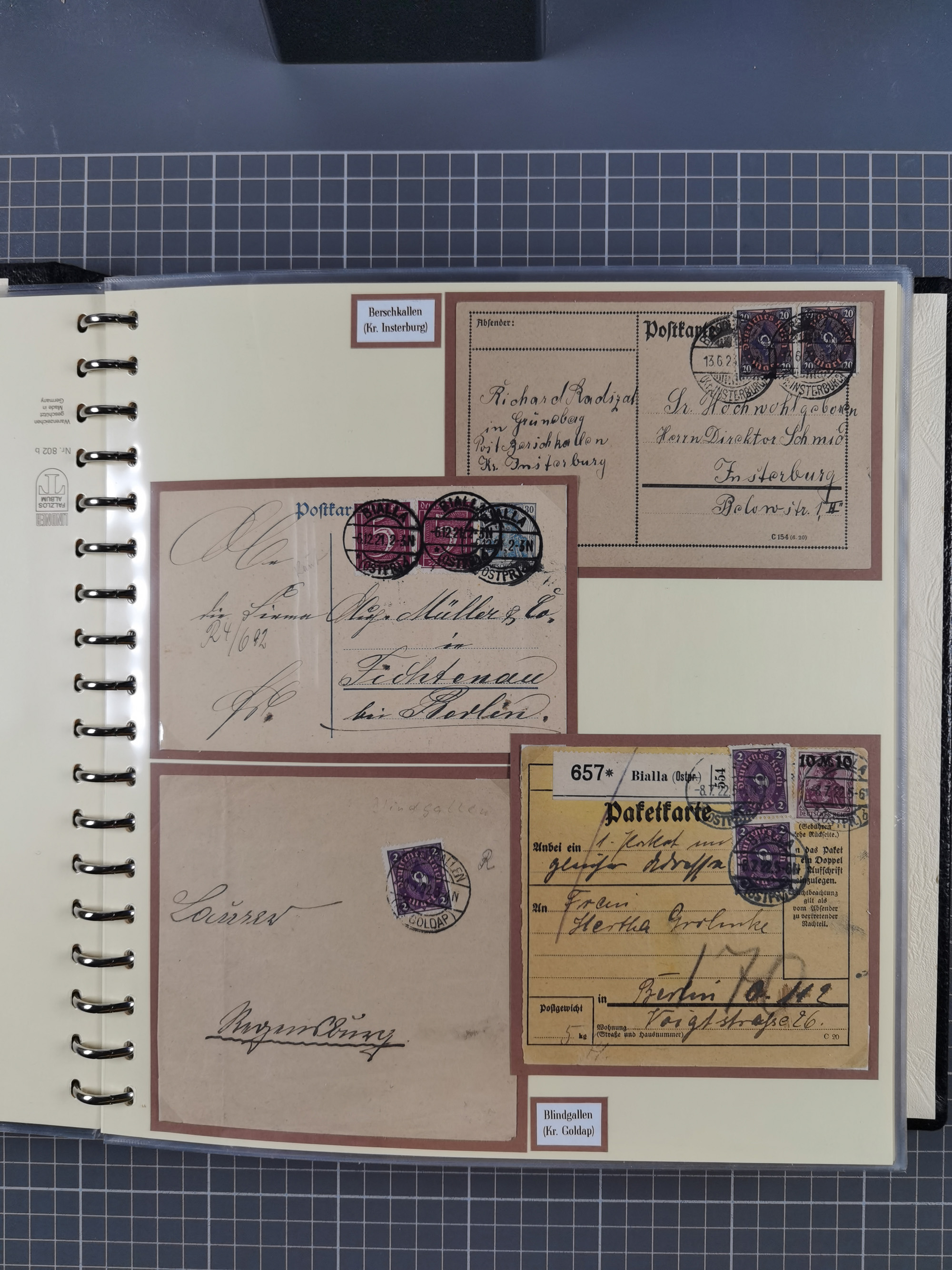 1865/1950 (ca.), Album mit 122 hochwertigen Belegen, diese einzeln vom Einlieferer beschrieben und nach Michel bewertet 15.000 €. Dazu ein Karton mit über 170 Briefen, Karten und Ganzsachen, dabei etliche interessante Belege, meist gute Erhaltung