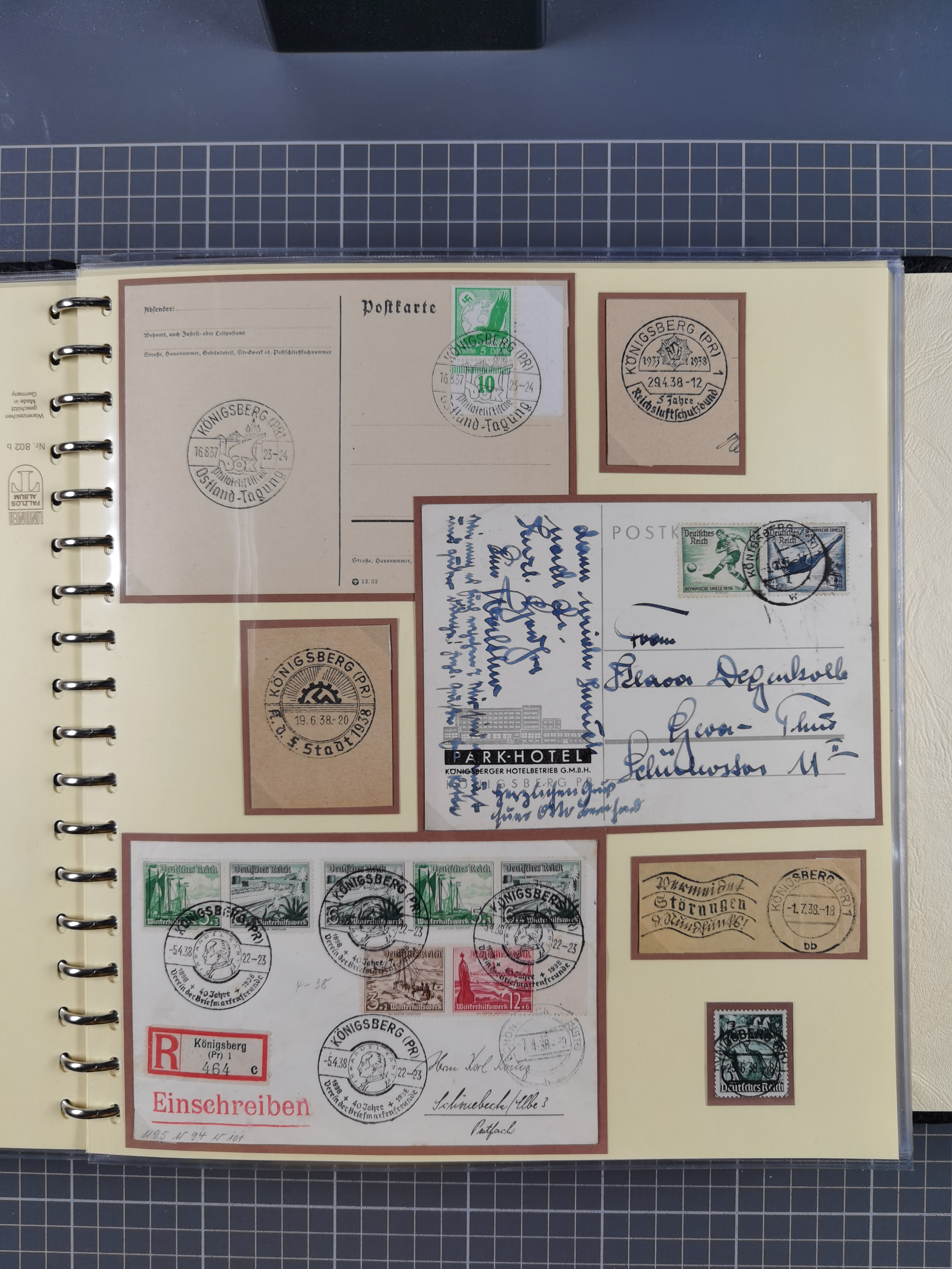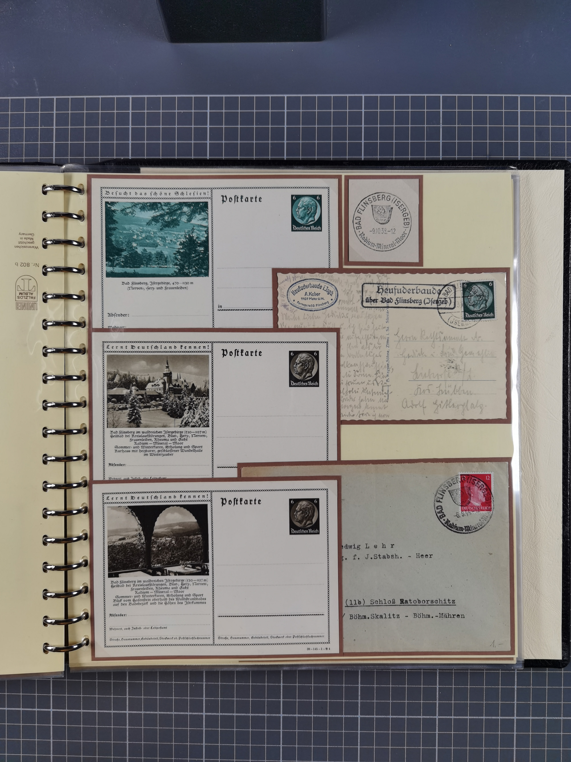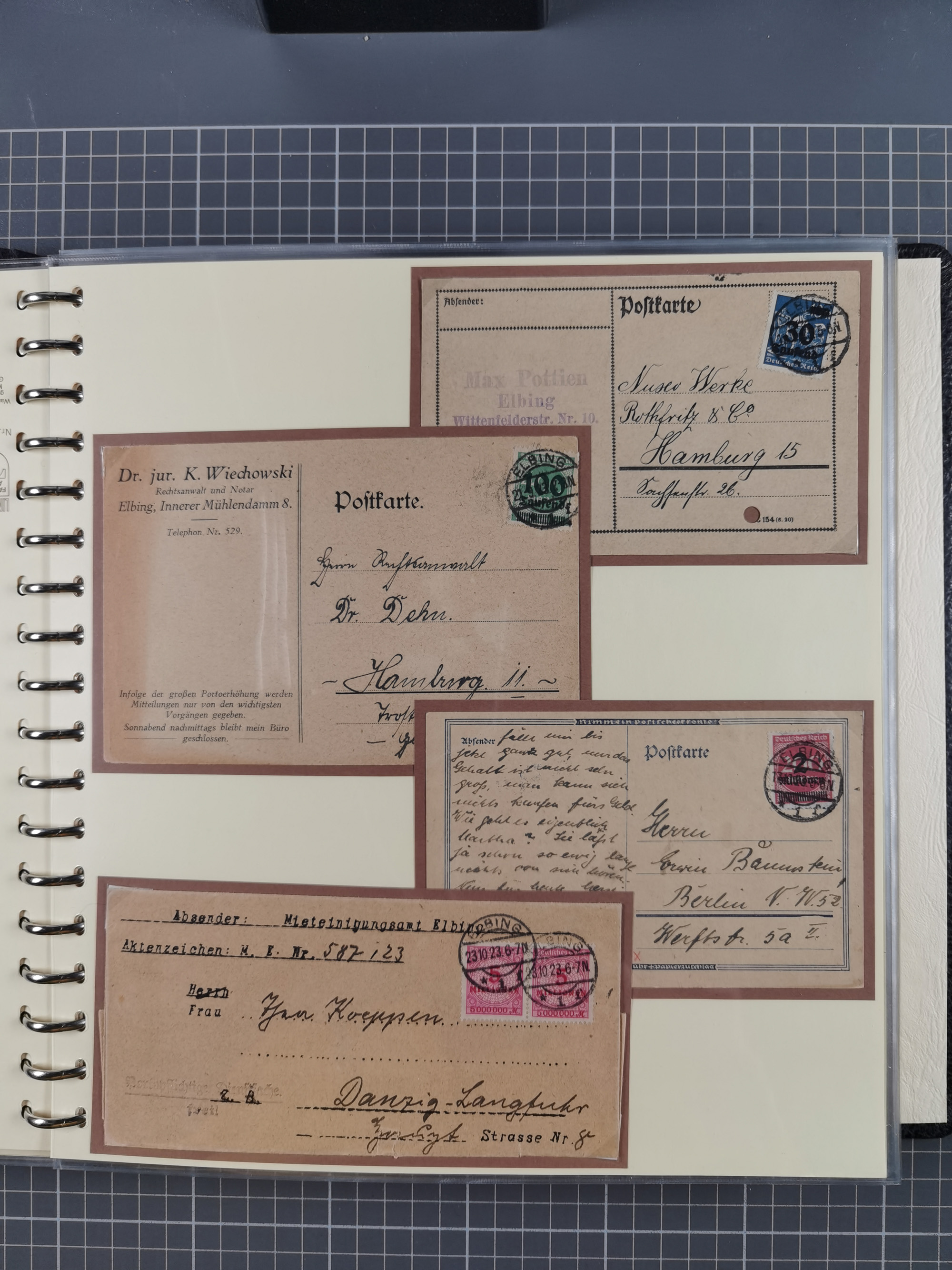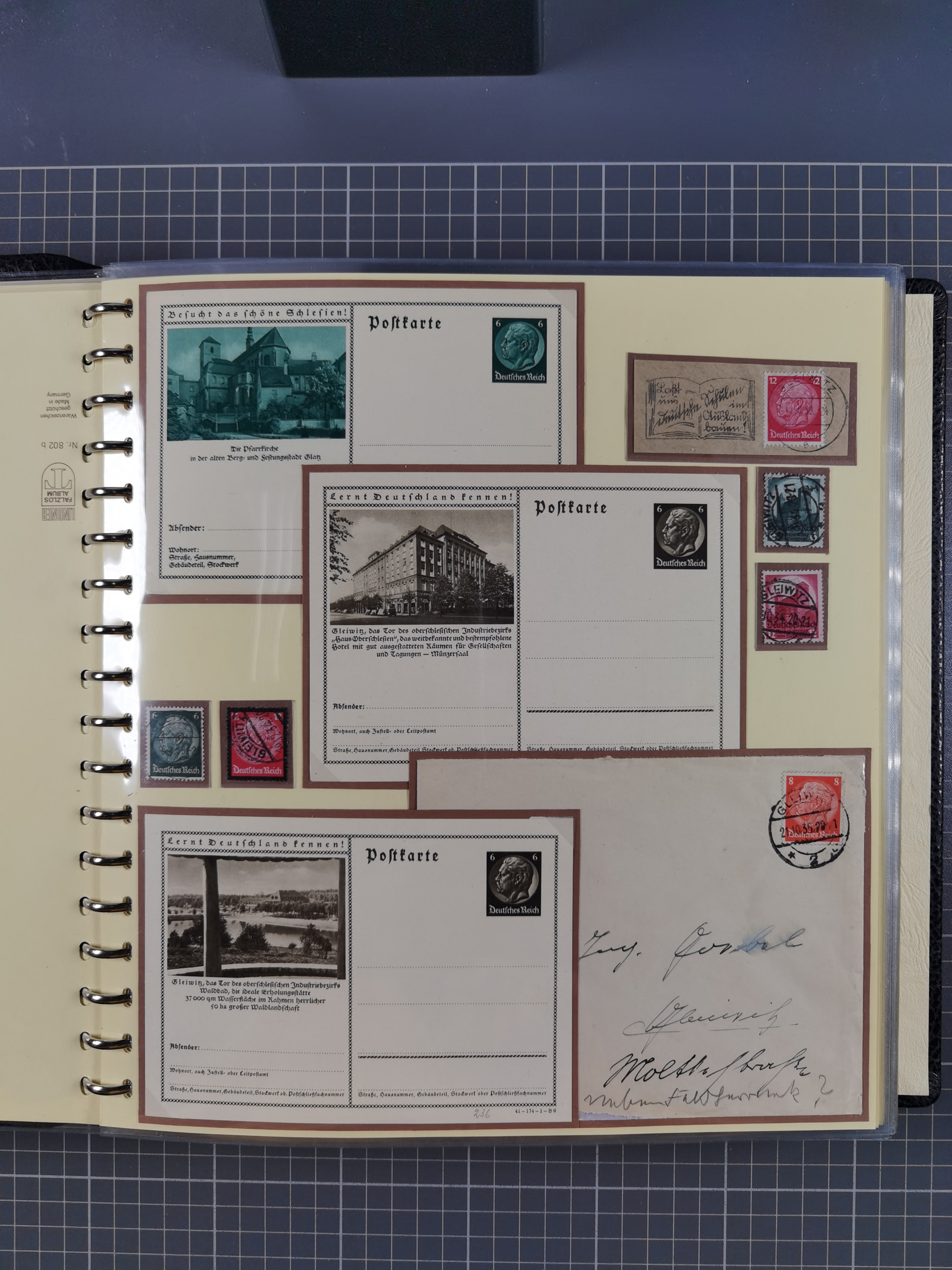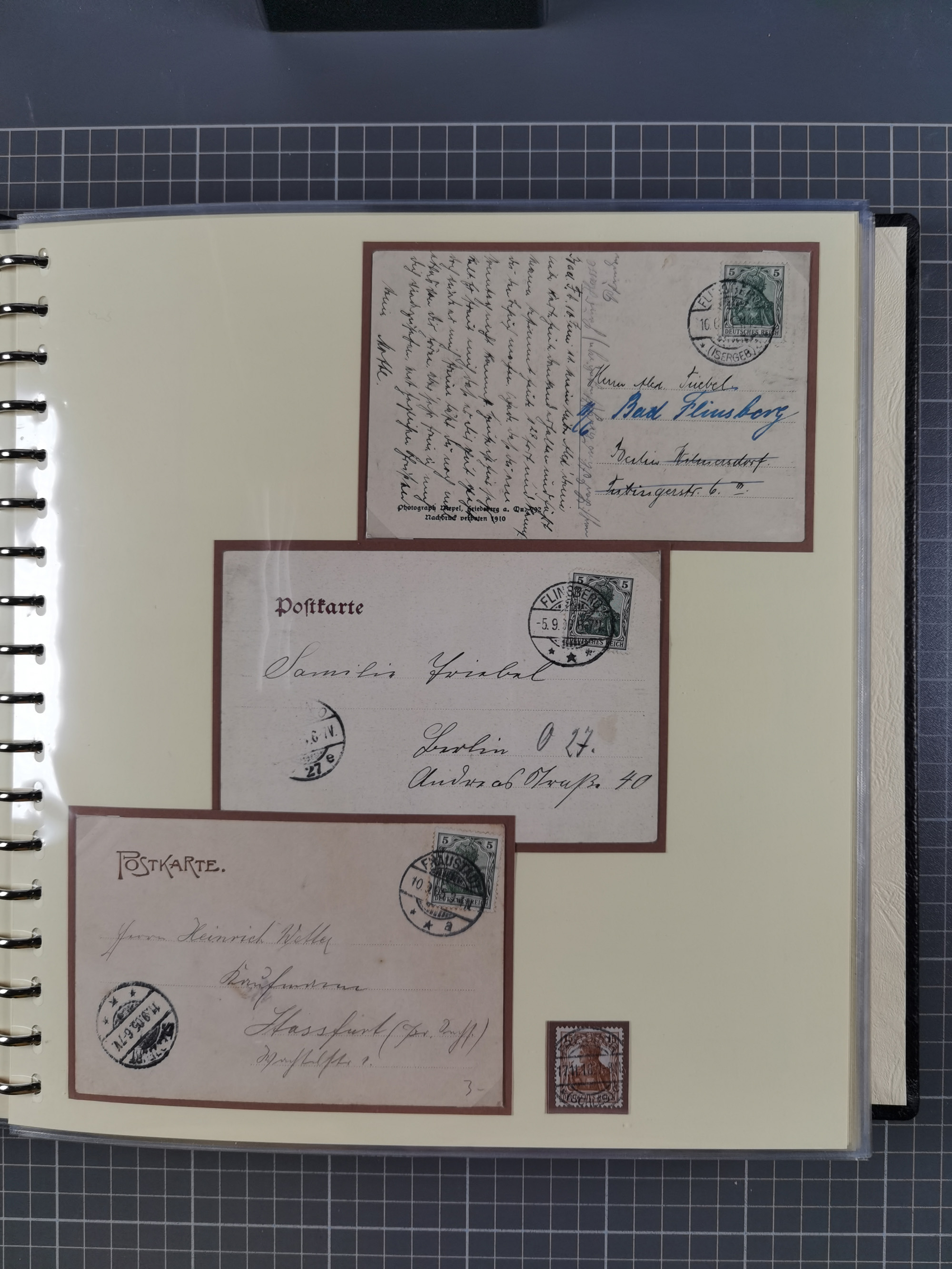 1865/1950 (ca.), Album mit 122 hochwertigen Belegen, diese einzeln vom Einlieferer beschrieben und nach Michel bewertet 15.000 €. Dazu ein Karton mit über 170 Briefen, Karten und Ganzsachen, dabei etliche interessante Belege, meist gute Erhaltung