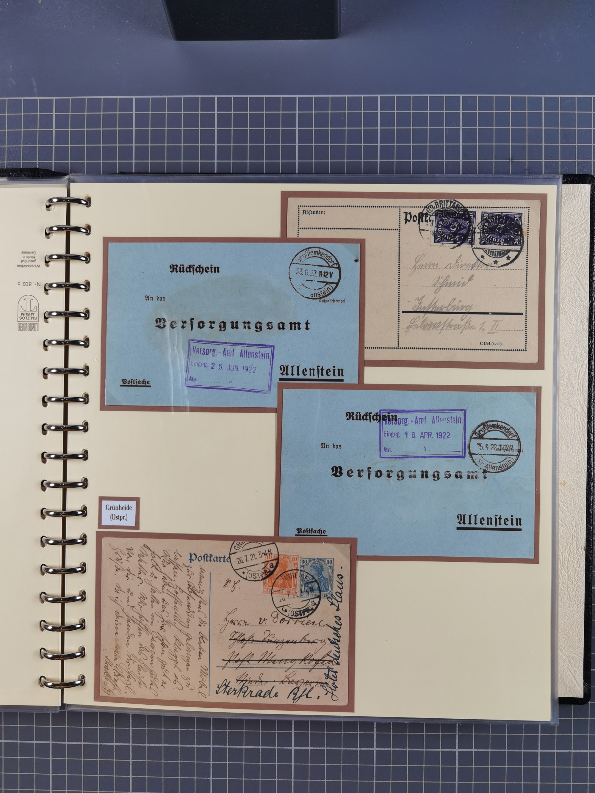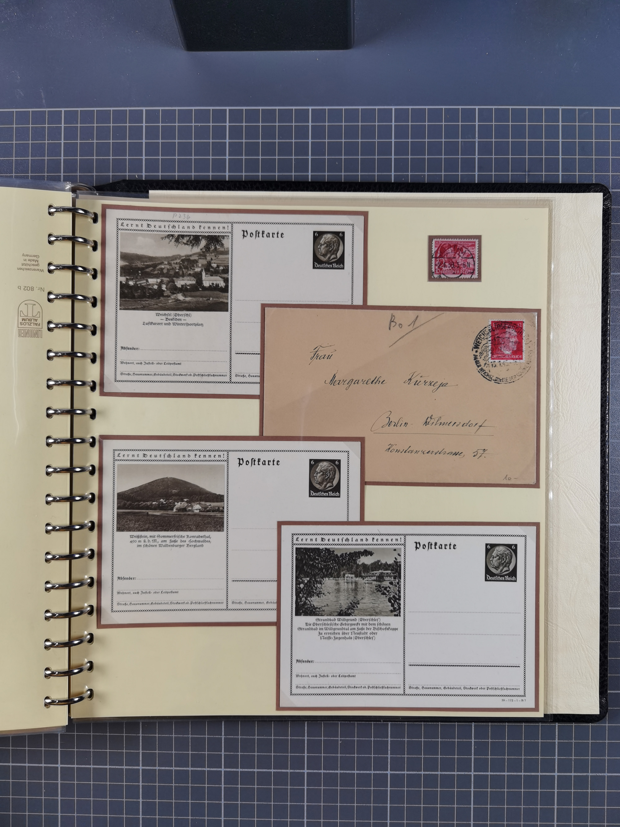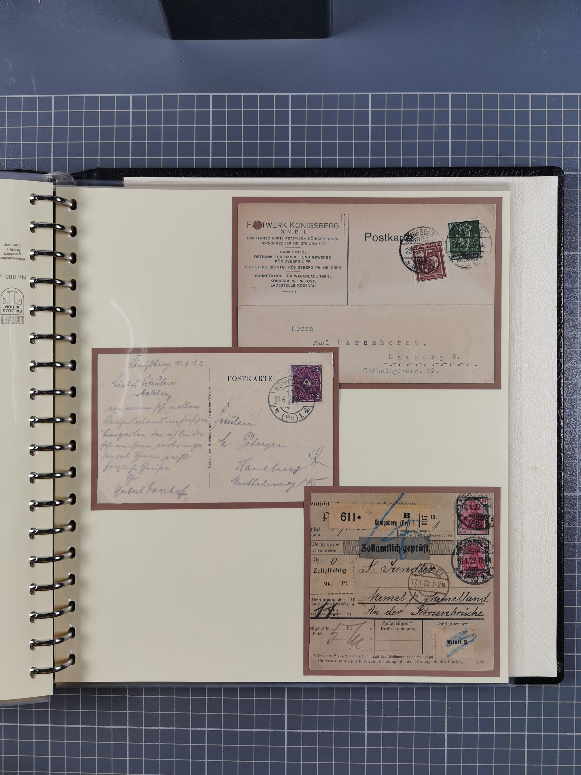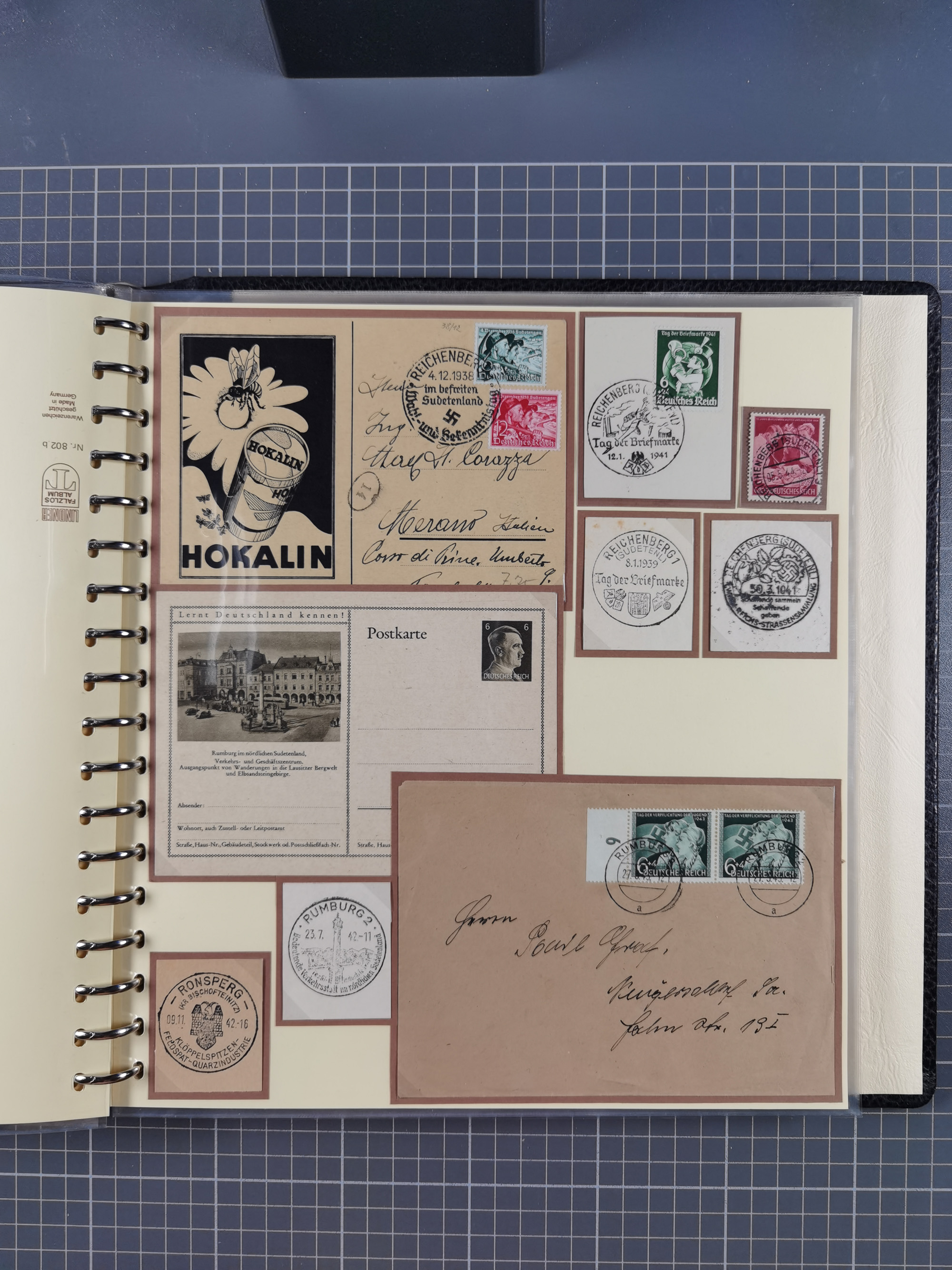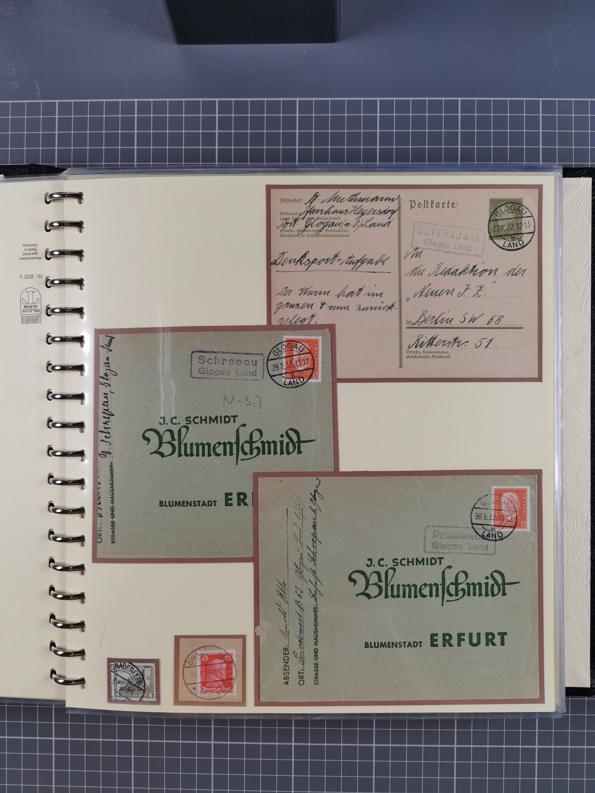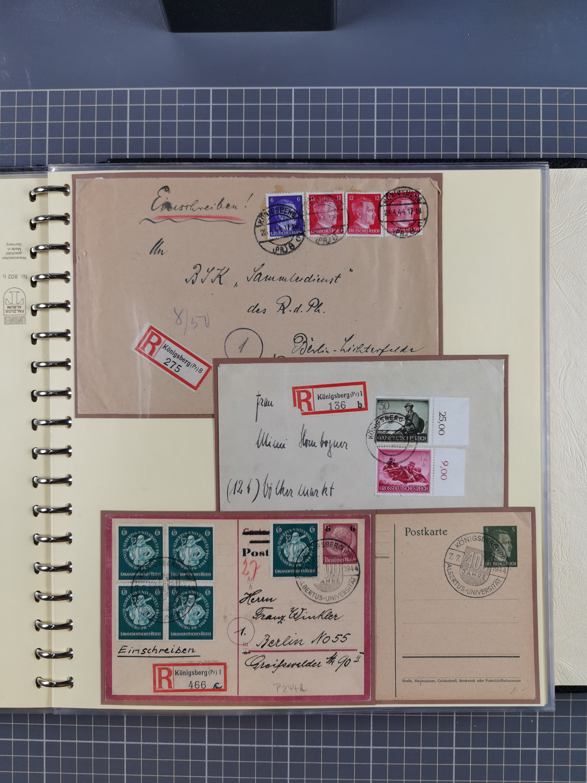 1865/1950 (ca.), Album mit 122 hochwertigen Belegen, diese einzeln vom Einlieferer beschrieben und nach Michel bewertet 15.000 €. Dazu ein Karton mit über 170 Briefen, Karten und Ganzsachen, dabei etliche interessante Belege, meist gute Erhaltung