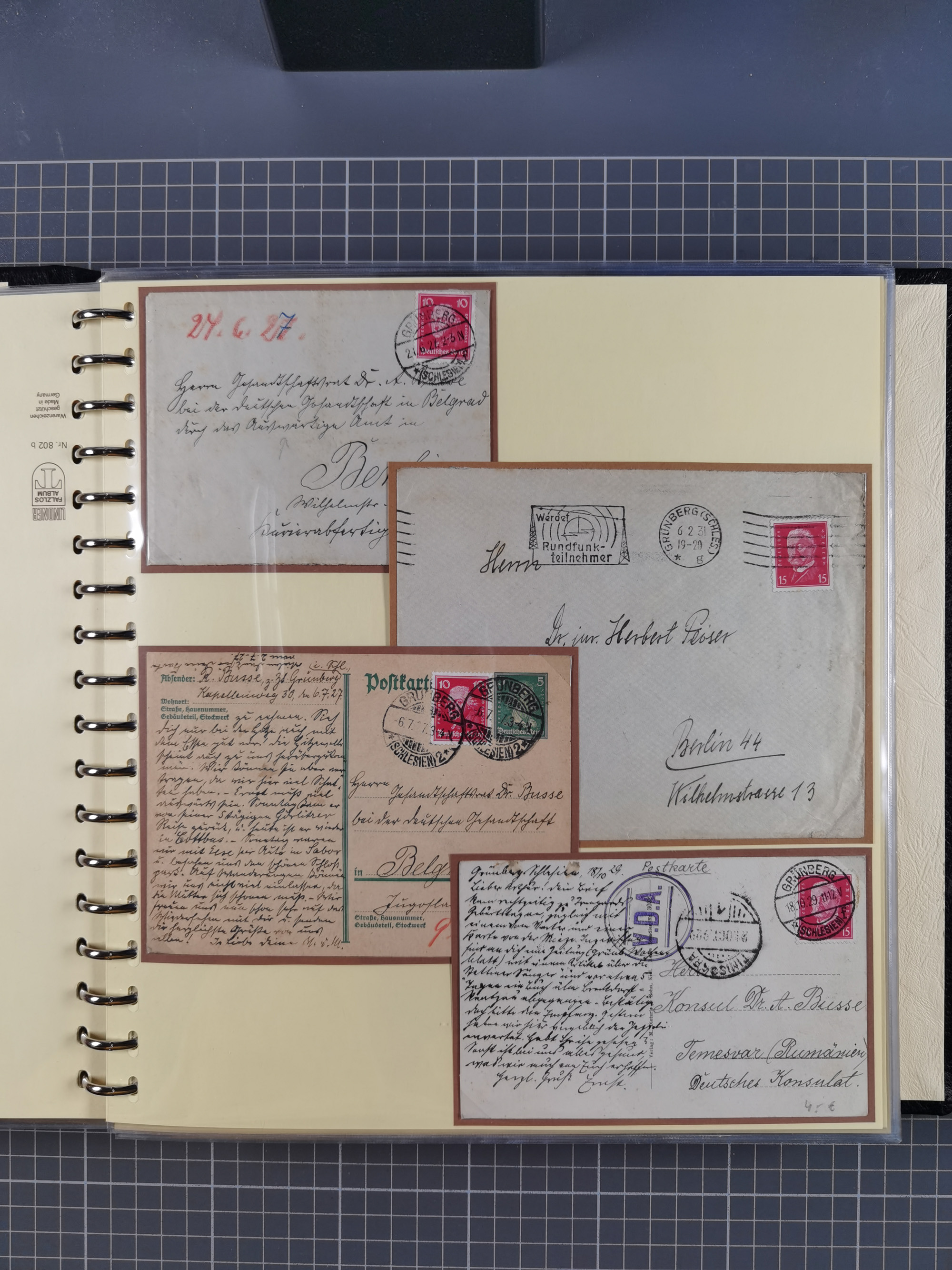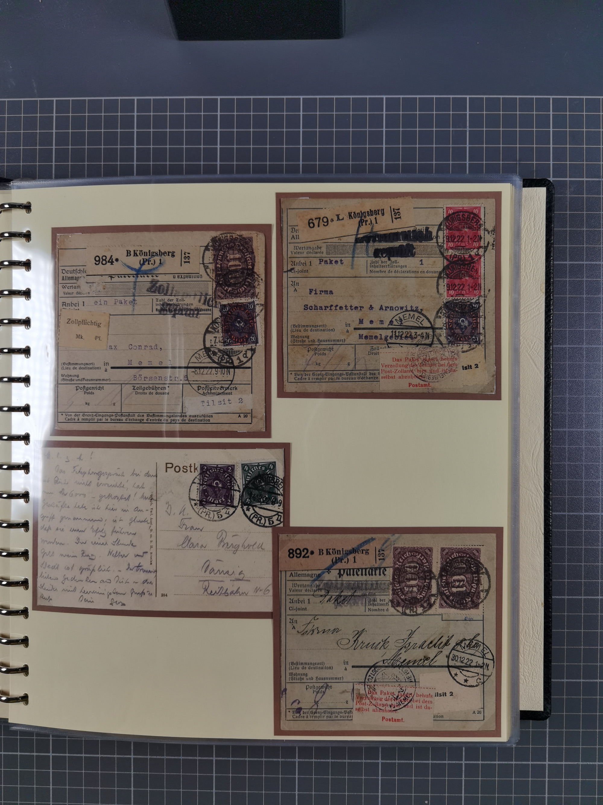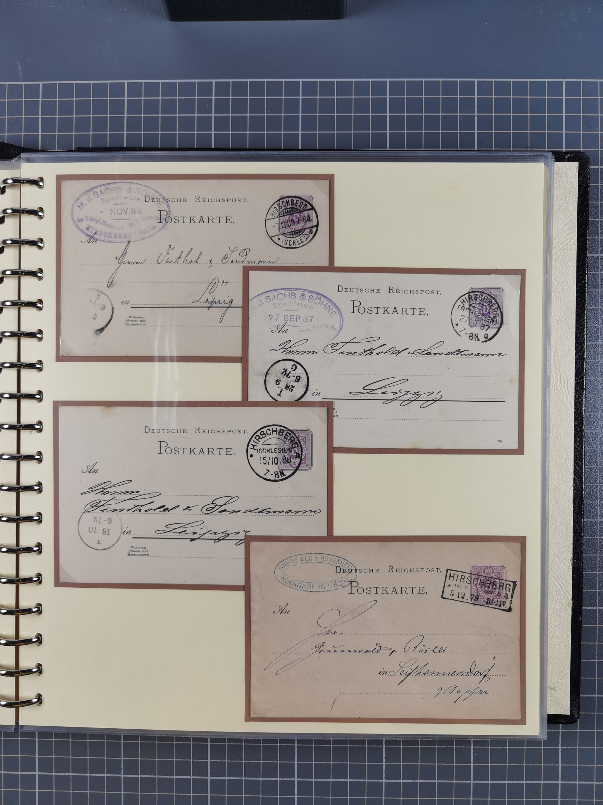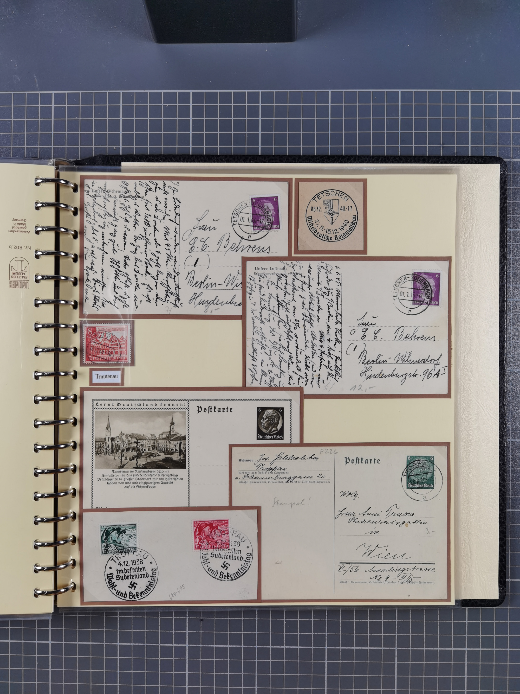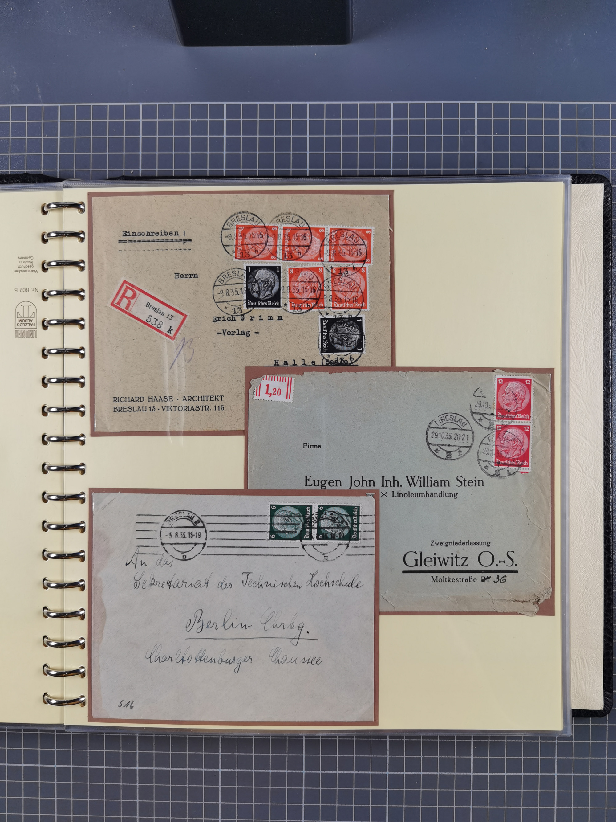 1865/1950 (ca.), Album mit 122 hochwertigen Belegen, diese einzeln vom Einlieferer beschrieben und nach Michel bewertet 15.000 €. Dazu ein Karton mit über 170 Briefen, Karten und Ganzsachen, dabei etliche interessante Belege, meist gute Erhaltung