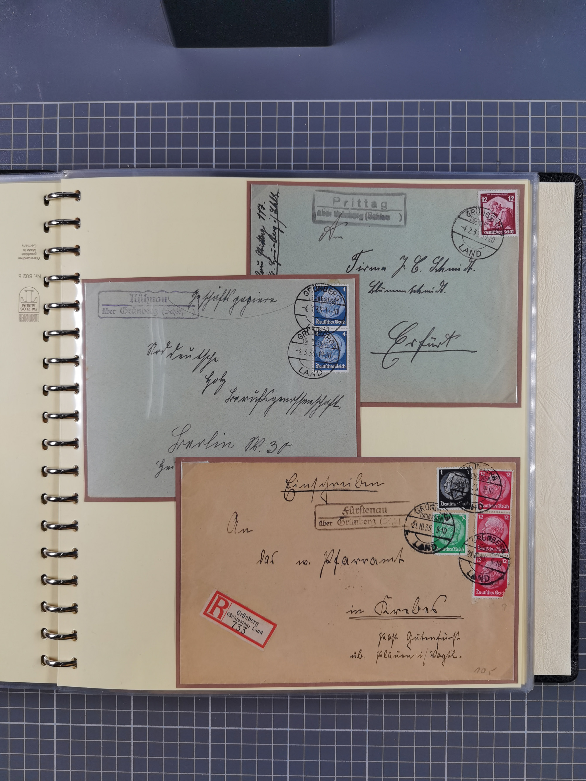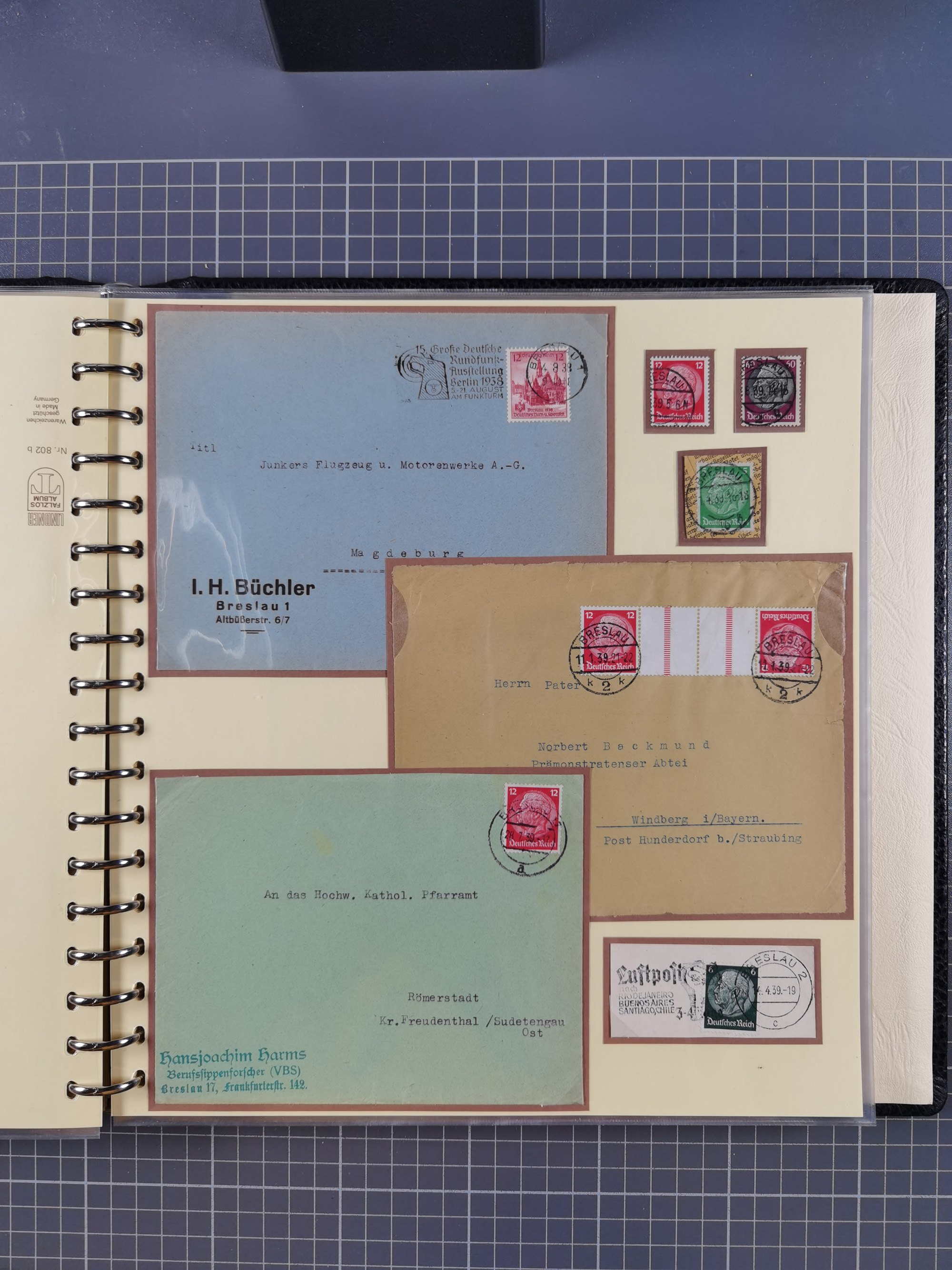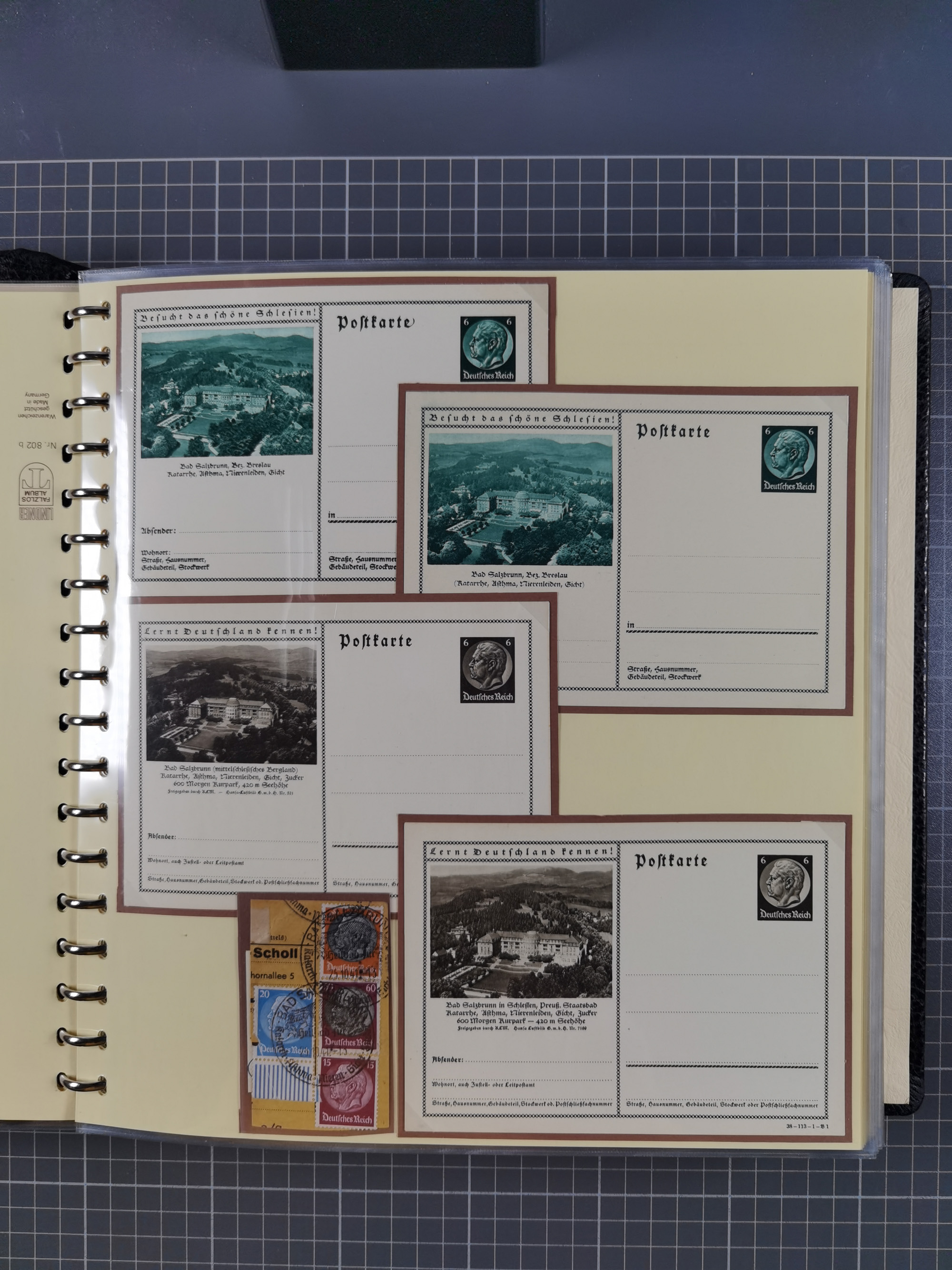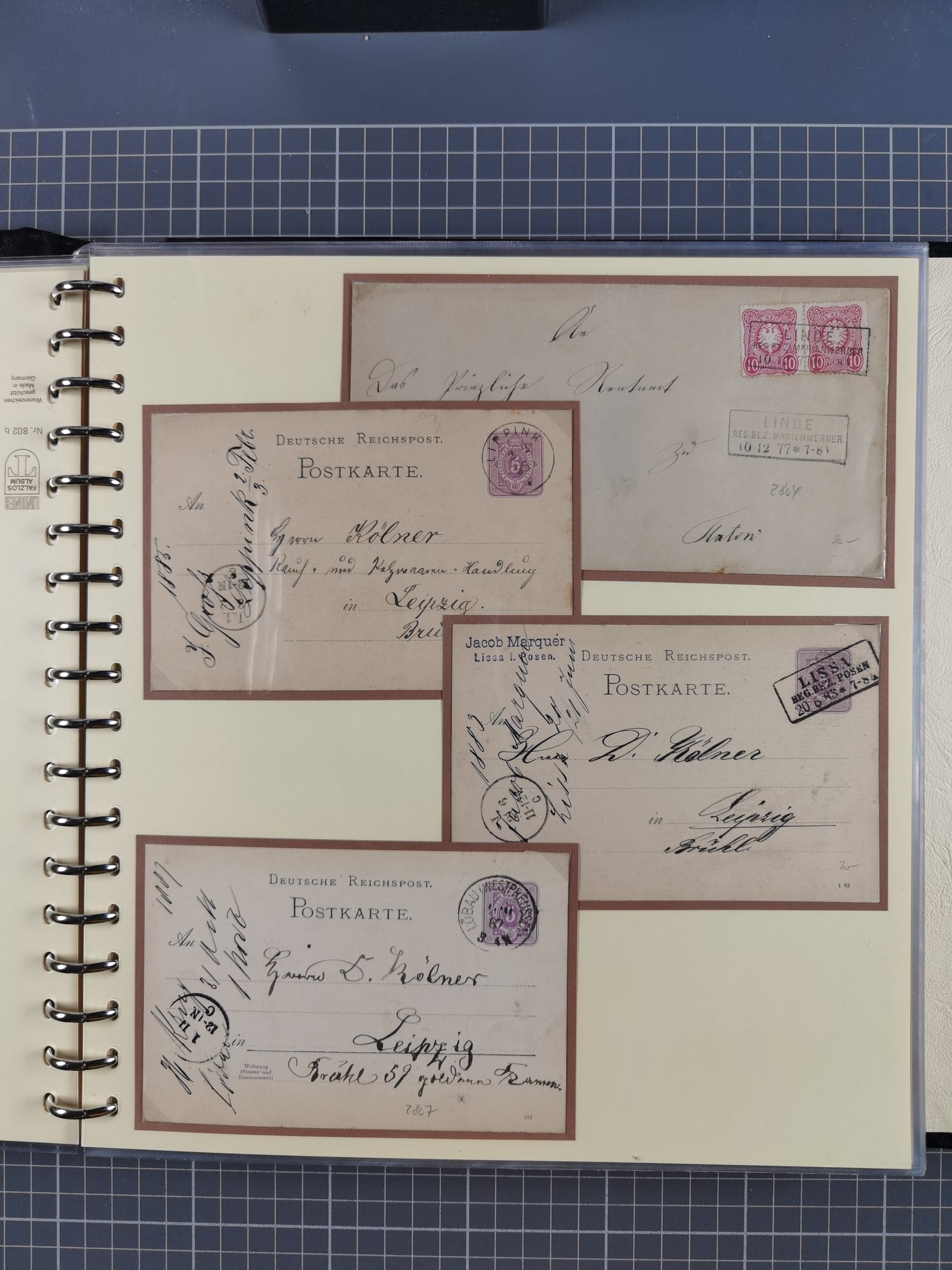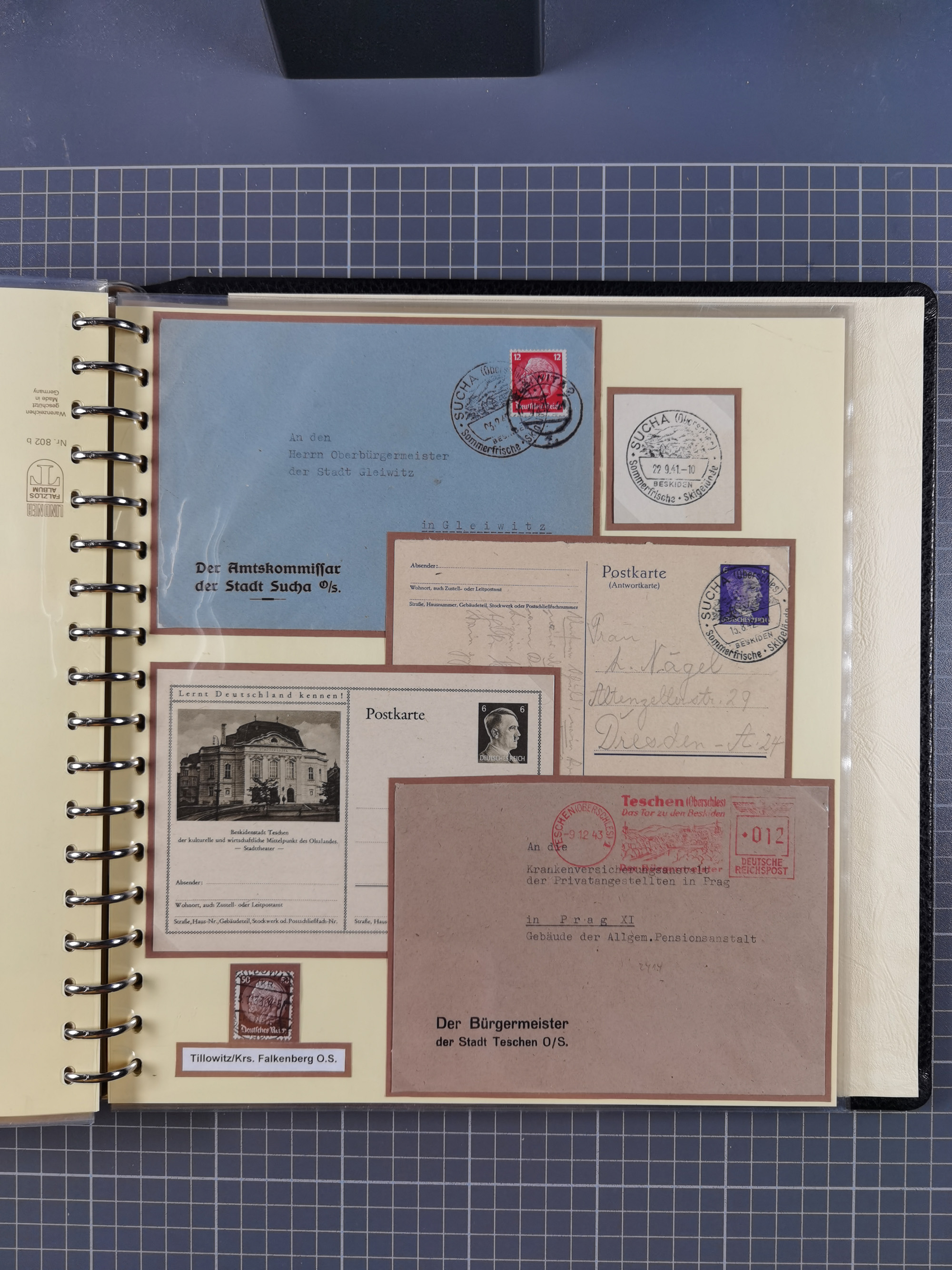 1865/1950 (ca.), Album mit 122 hochwertigen Belegen, diese einzeln vom Einlieferer beschrieben und nach Michel bewertet 15.000 €. Dazu ein Karton mit über 170 Briefen, Karten und Ganzsachen, dabei etliche interessante Belege, meist gute Erhaltung