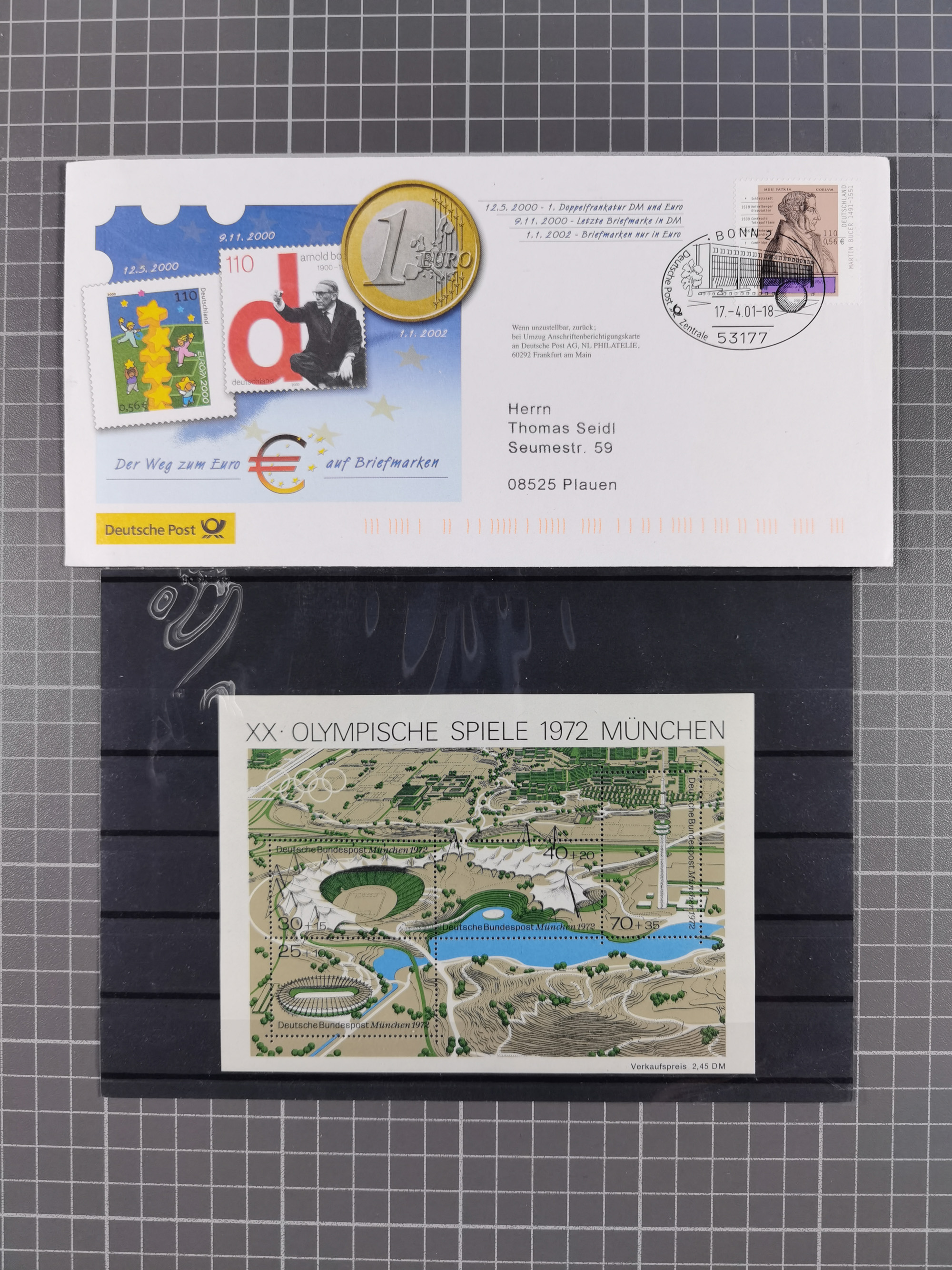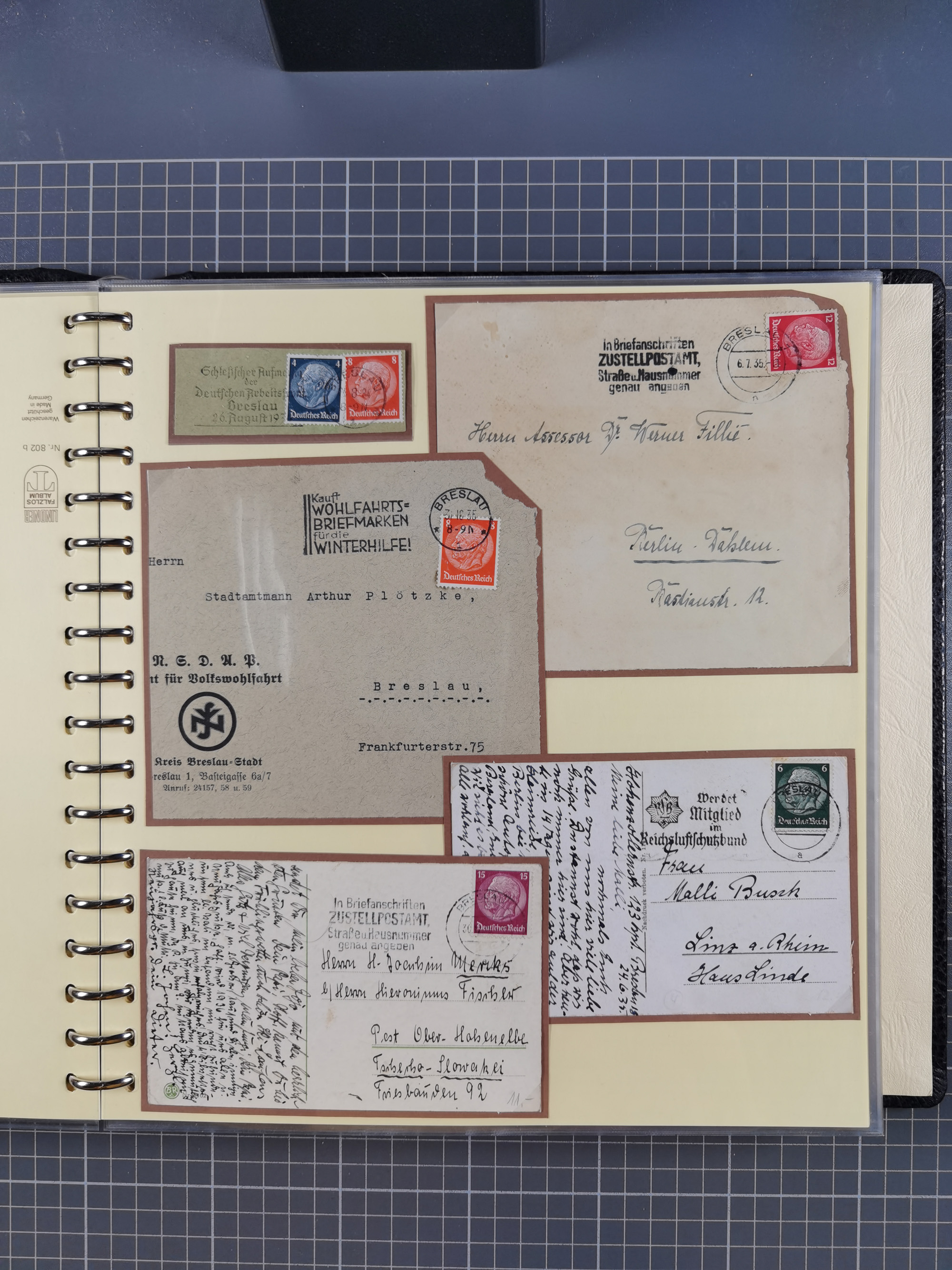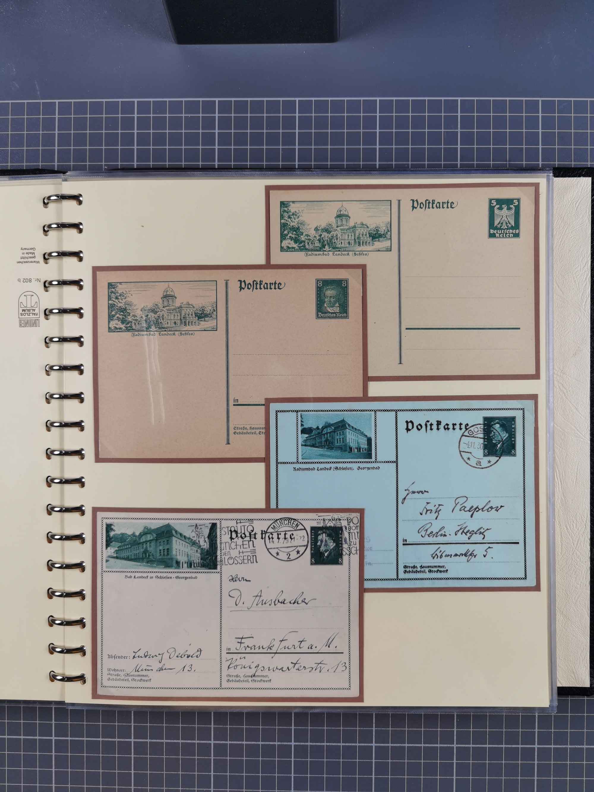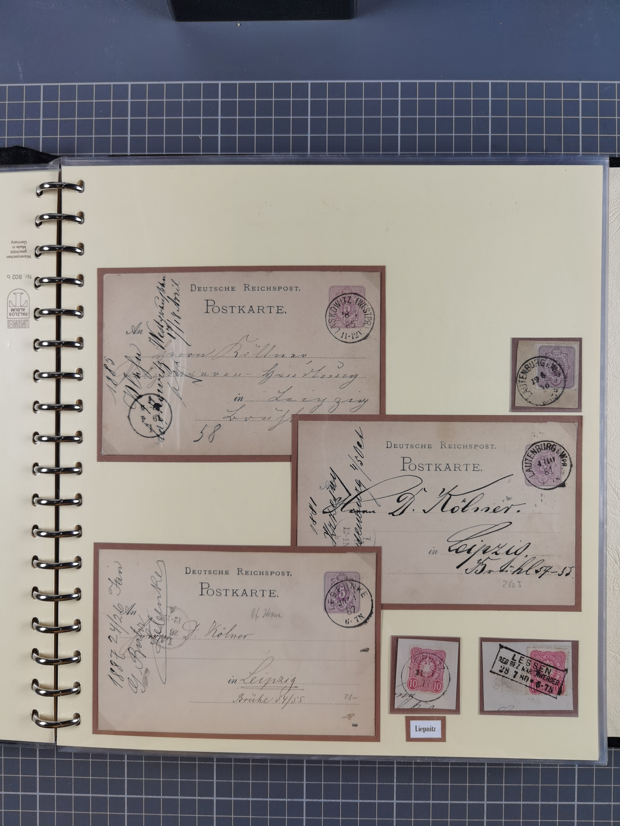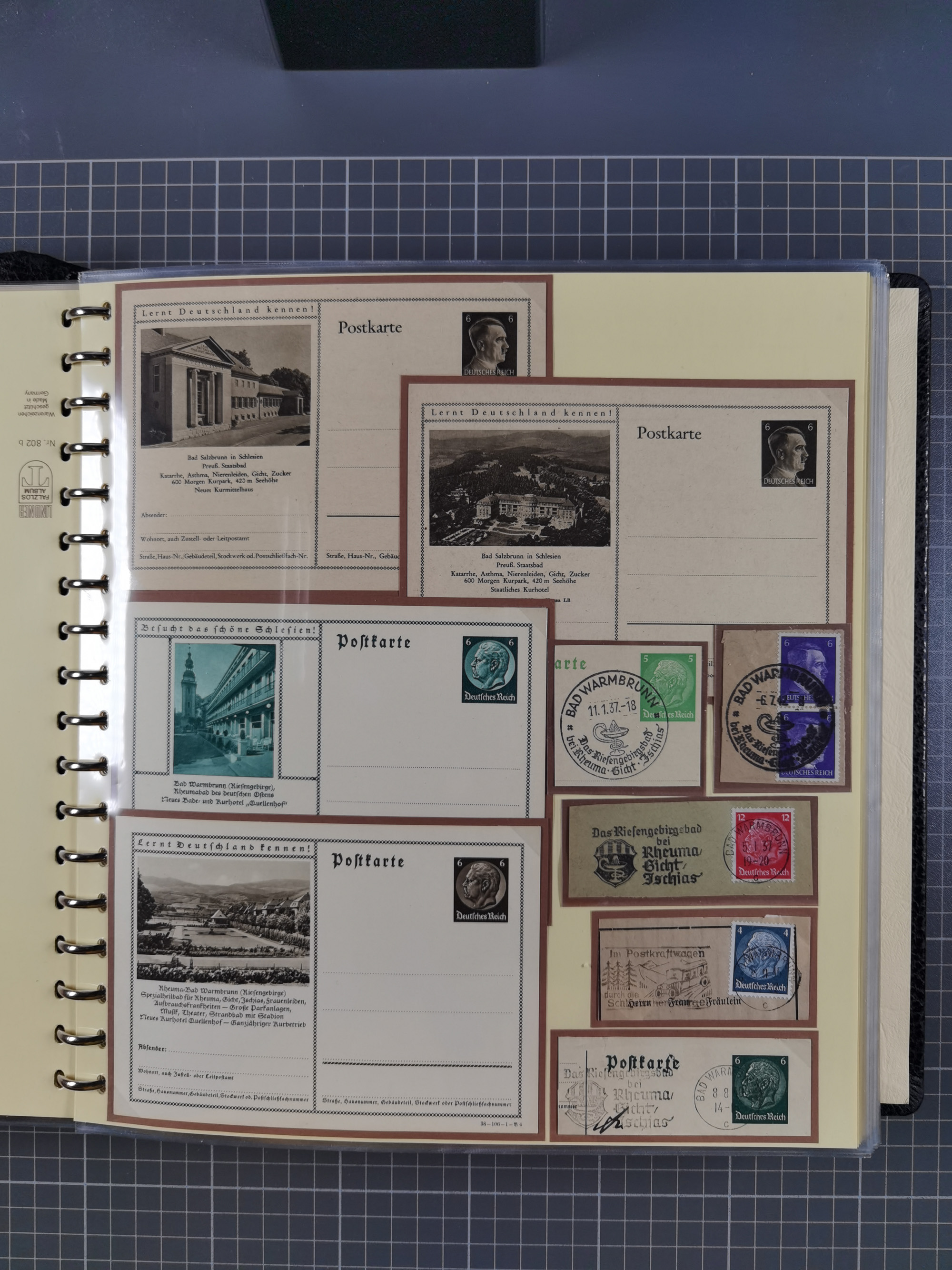 1865/1950 (ca.), Album mit 122 hochwertigen Belegen, diese einzeln vom Einlieferer beschrieben und nach Michel bewertet 15.000 €. Dazu ein Karton mit über 170 Briefen, Karten und Ganzsachen, dabei etliche interessante Belege, meist gute Erhaltung