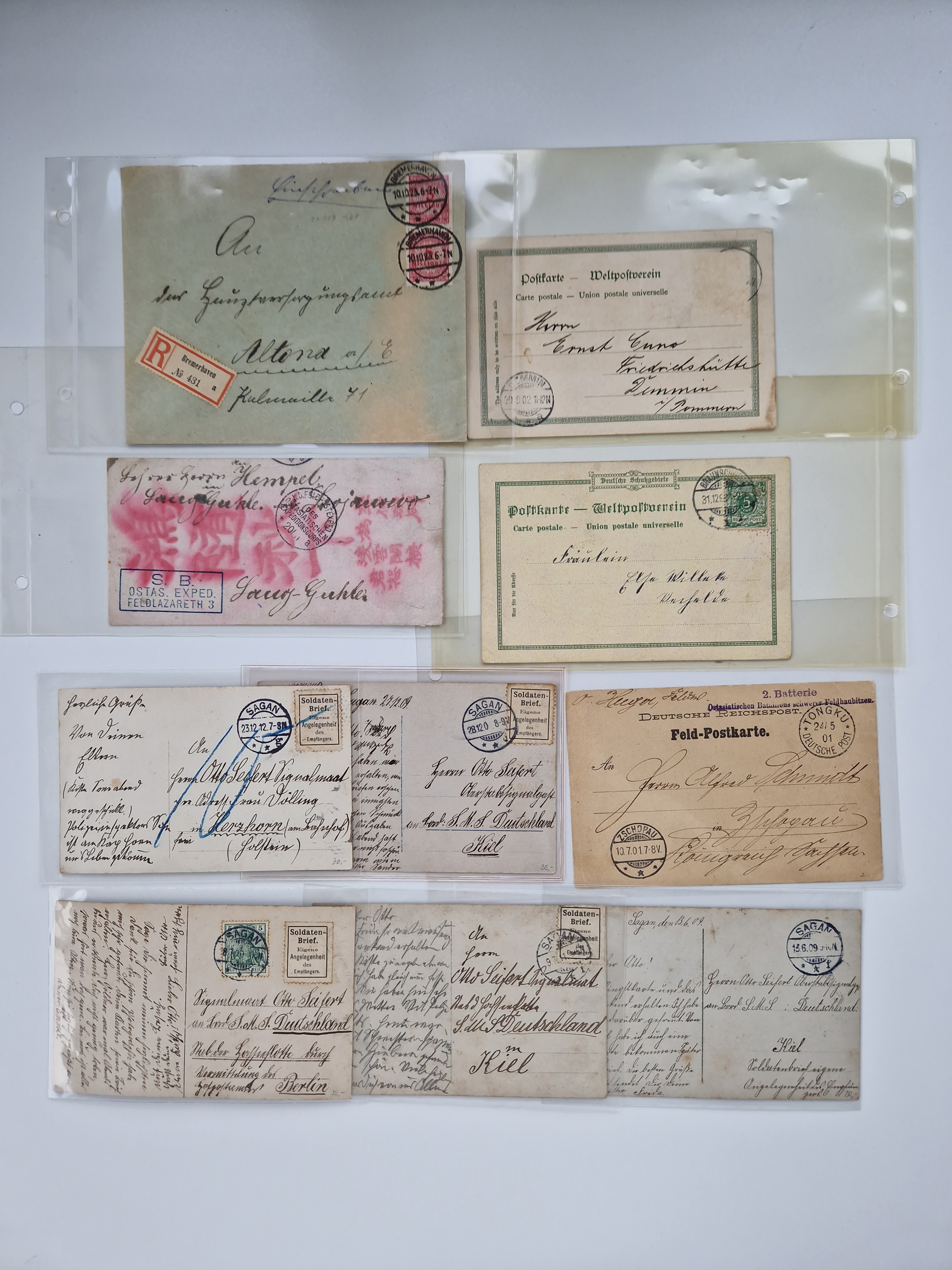 1845/1960 (ca.), interessanter Bestand inkl. etwas Ausland mit u.a. Dt. Kolonien mit interessanten Stempeln, Dt. Reich mit EF Mi.-Nr. 234 (FA Fleiner BPP), NDP mit u.a. MEF Mi.-Nr. 5 auf Brief in die USA und Dänisch-Westindien Halbierung auf Brief an die SMS. Panther mit vorderseitigem MSP-Stempel. Die Erhaltung ist zum Teil fehlerhaft, meist aber in guter Gesamterhaltung