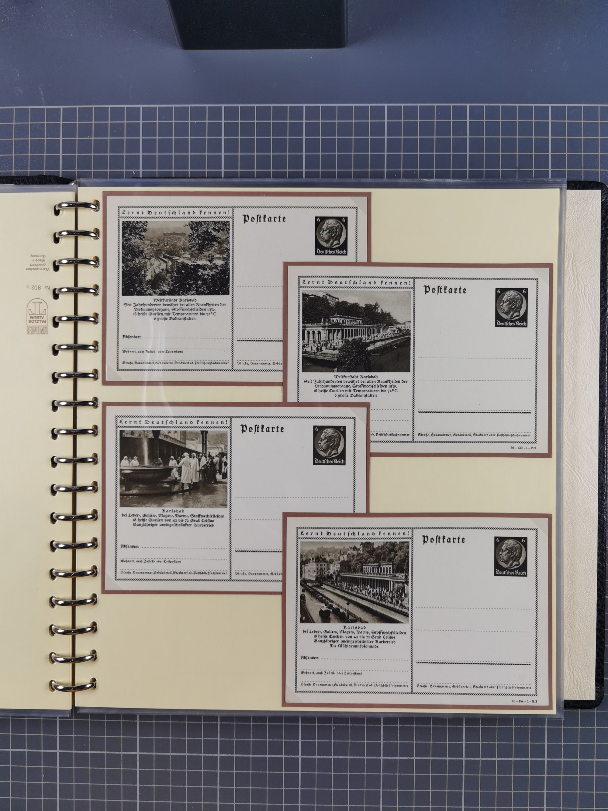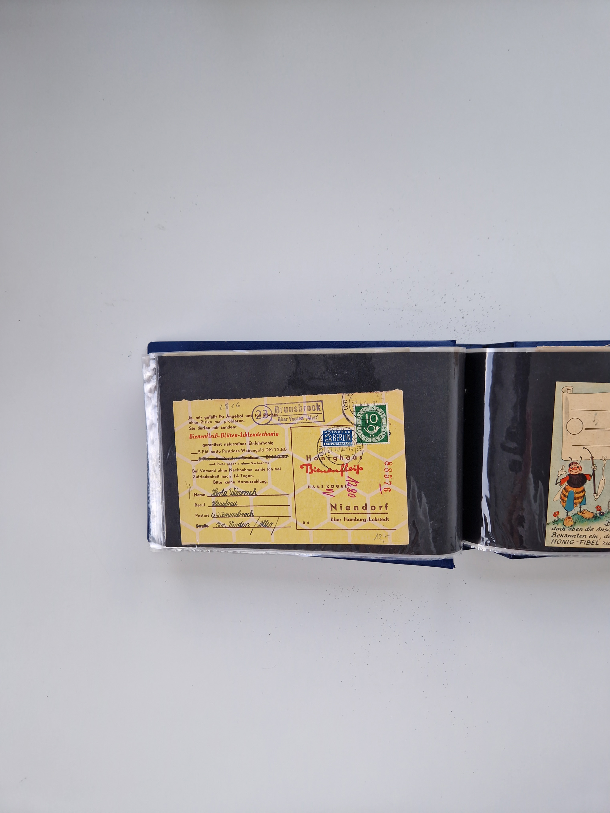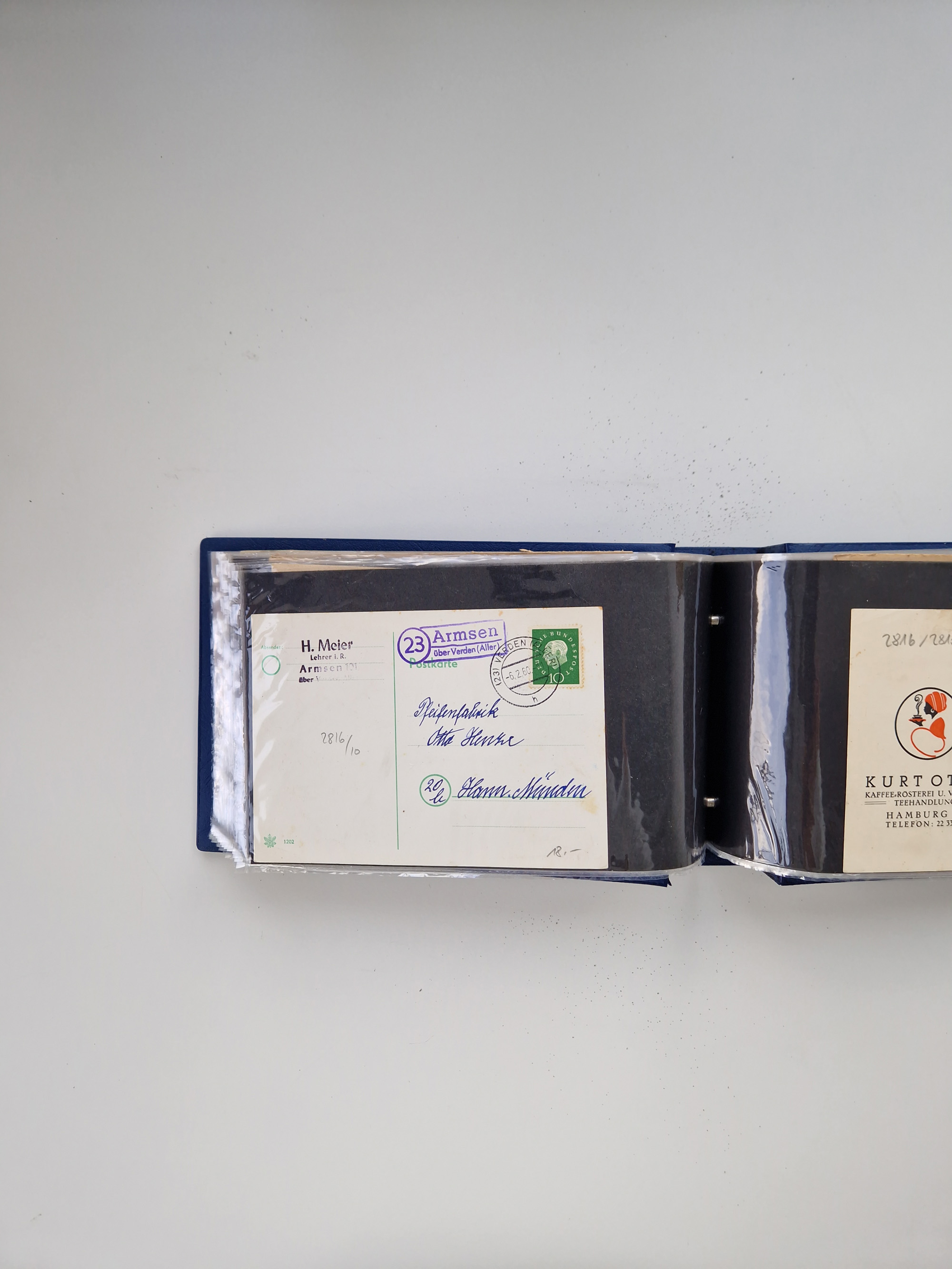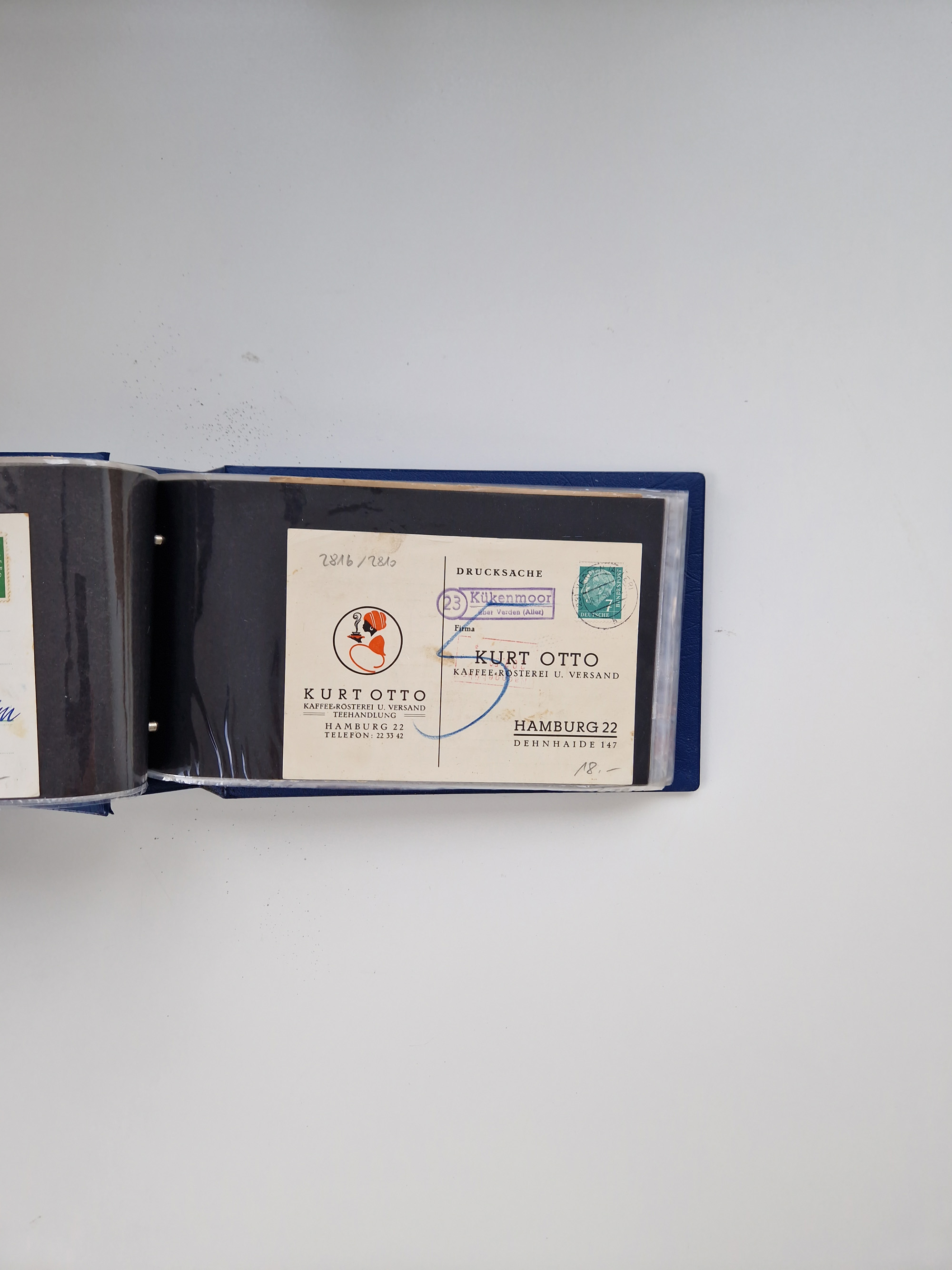 1900/50(ca.), illustrierte Produkt- und Firmenwerbung, Sammlung von 660 Ansichtskarten, Lithos, Briefen, Karten und Ganzsachen in 3 Alben, dabei ca. 180 St. mit farbiger Reklame Insgesamt viele schöne und interessante Darstellungen, vor allem aus der Kaiserzeit bis 1940, dabei etwas Ausland, einige wenige für Firmenablage gelocht