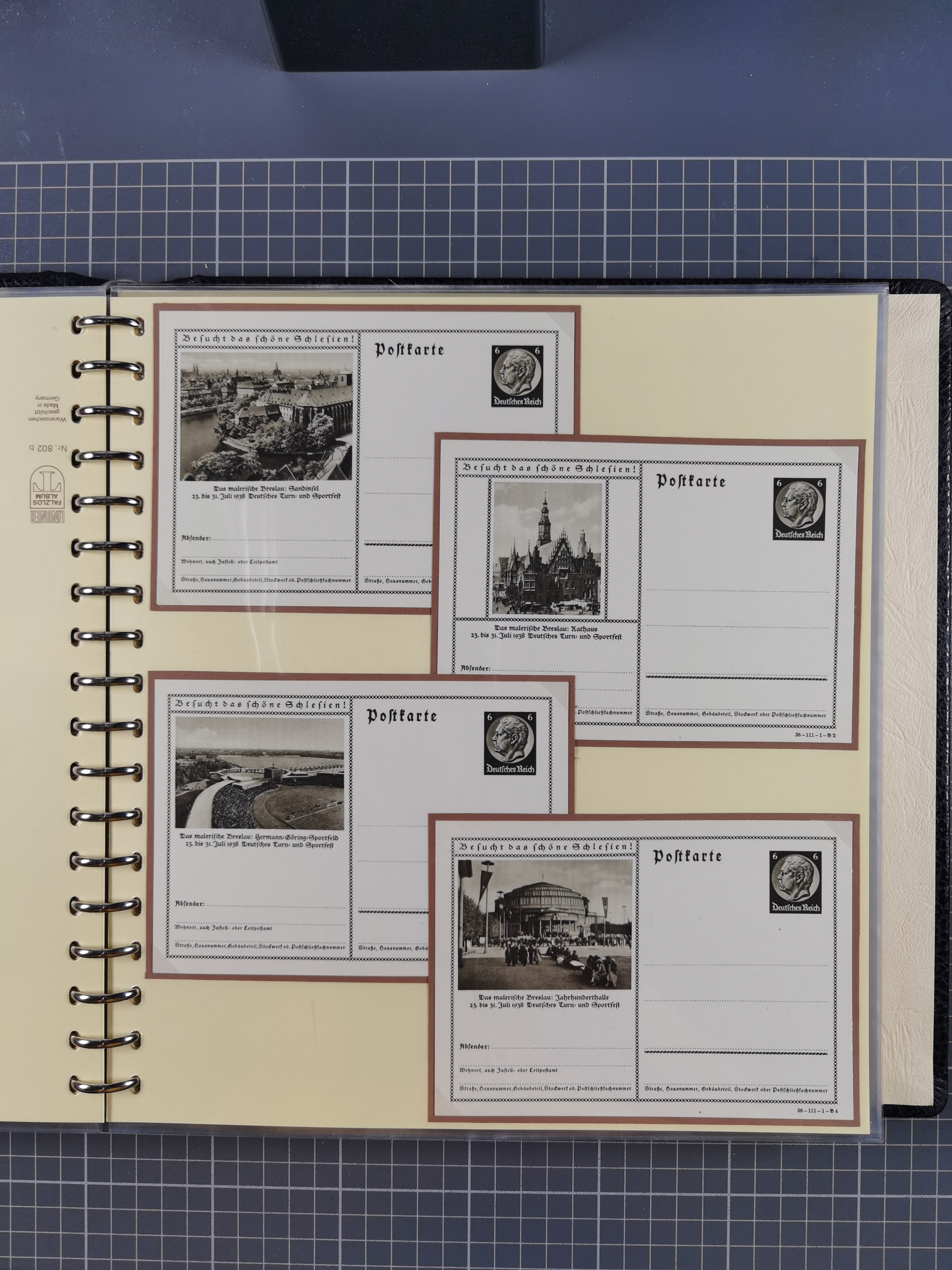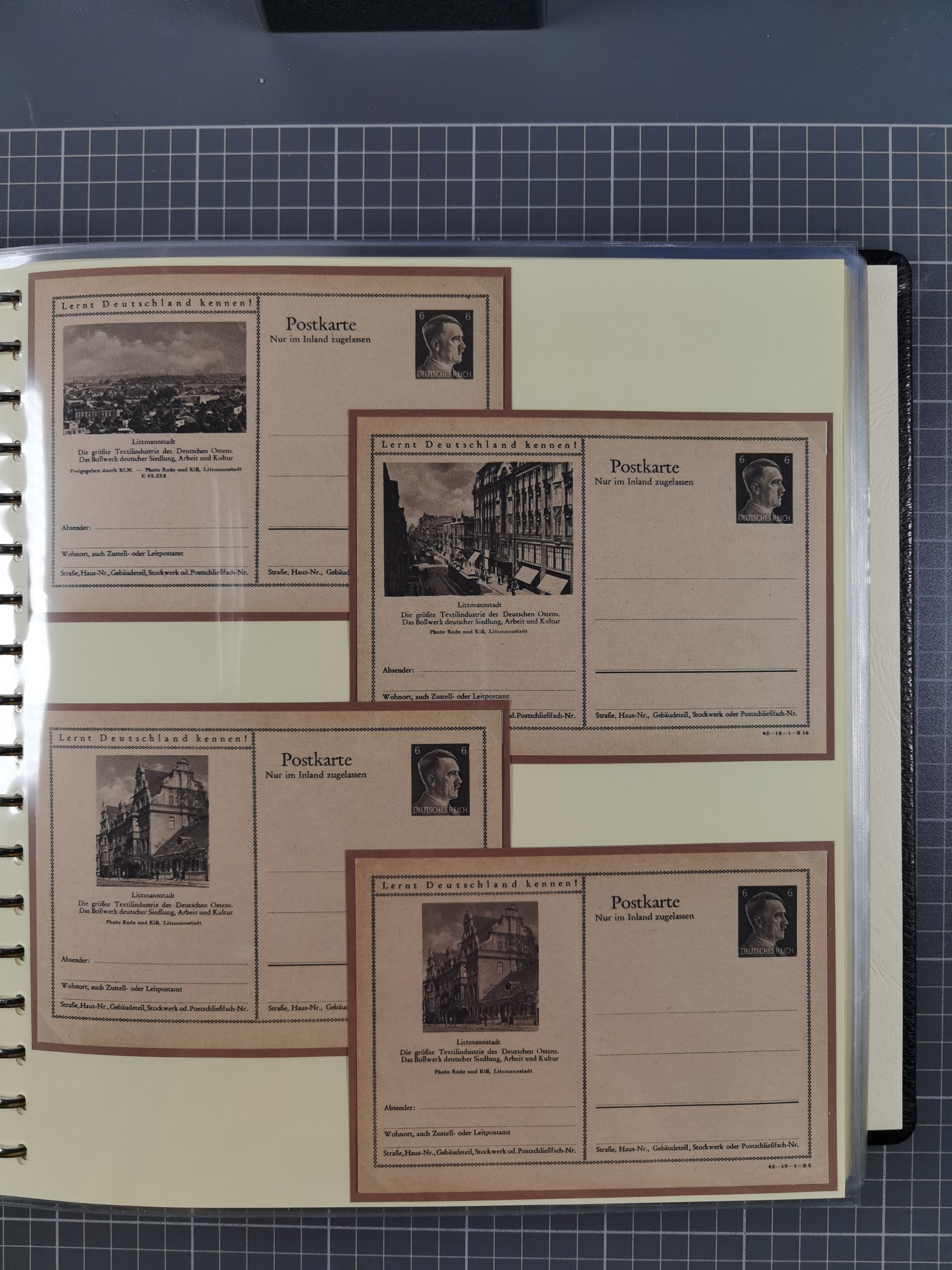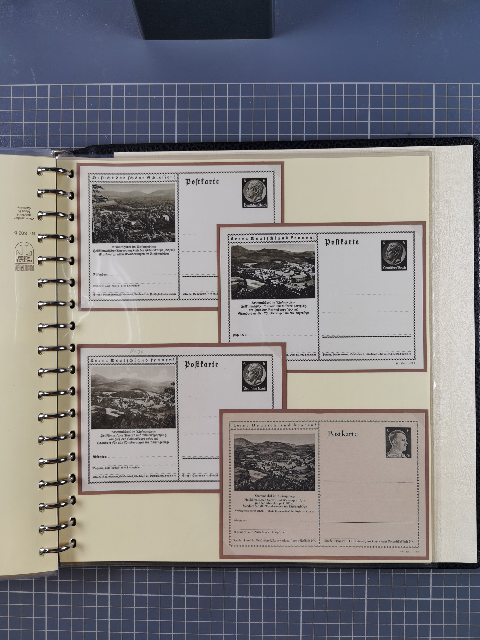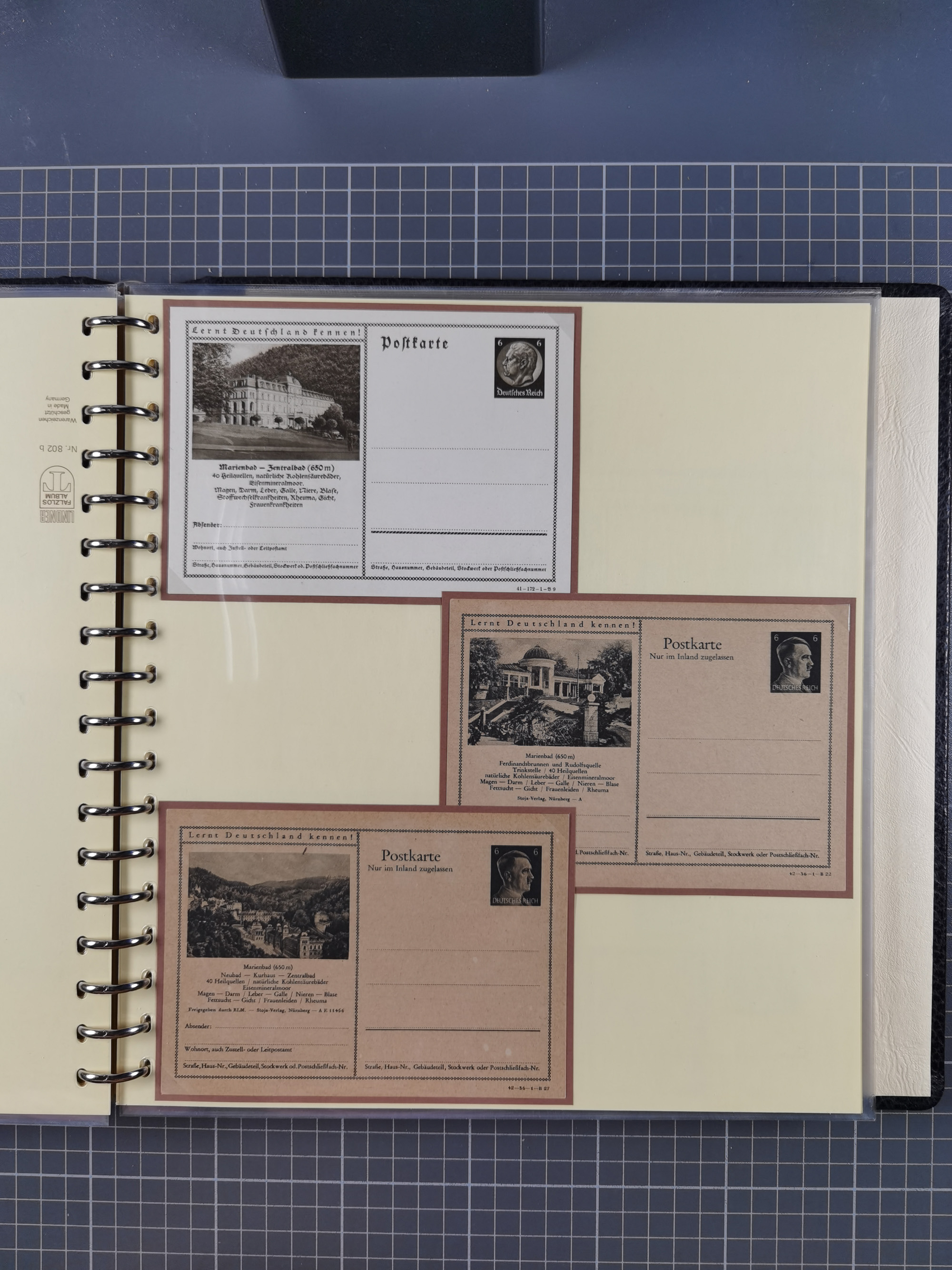 1900/50(ca.), illustrierte Produkt- und Firmenwerbung, Sammlung von 660 Ansichtskarten, Lithos, Briefen, Karten und Ganzsachen in 3 Alben, dabei ca. 180 St. mit farbiger Reklame Insgesamt viele schöne und interessante Darstellungen, vor allem aus der Kaiserzeit bis 1940, dabei etwas Ausland, einige wenige für Firmenablage gelocht