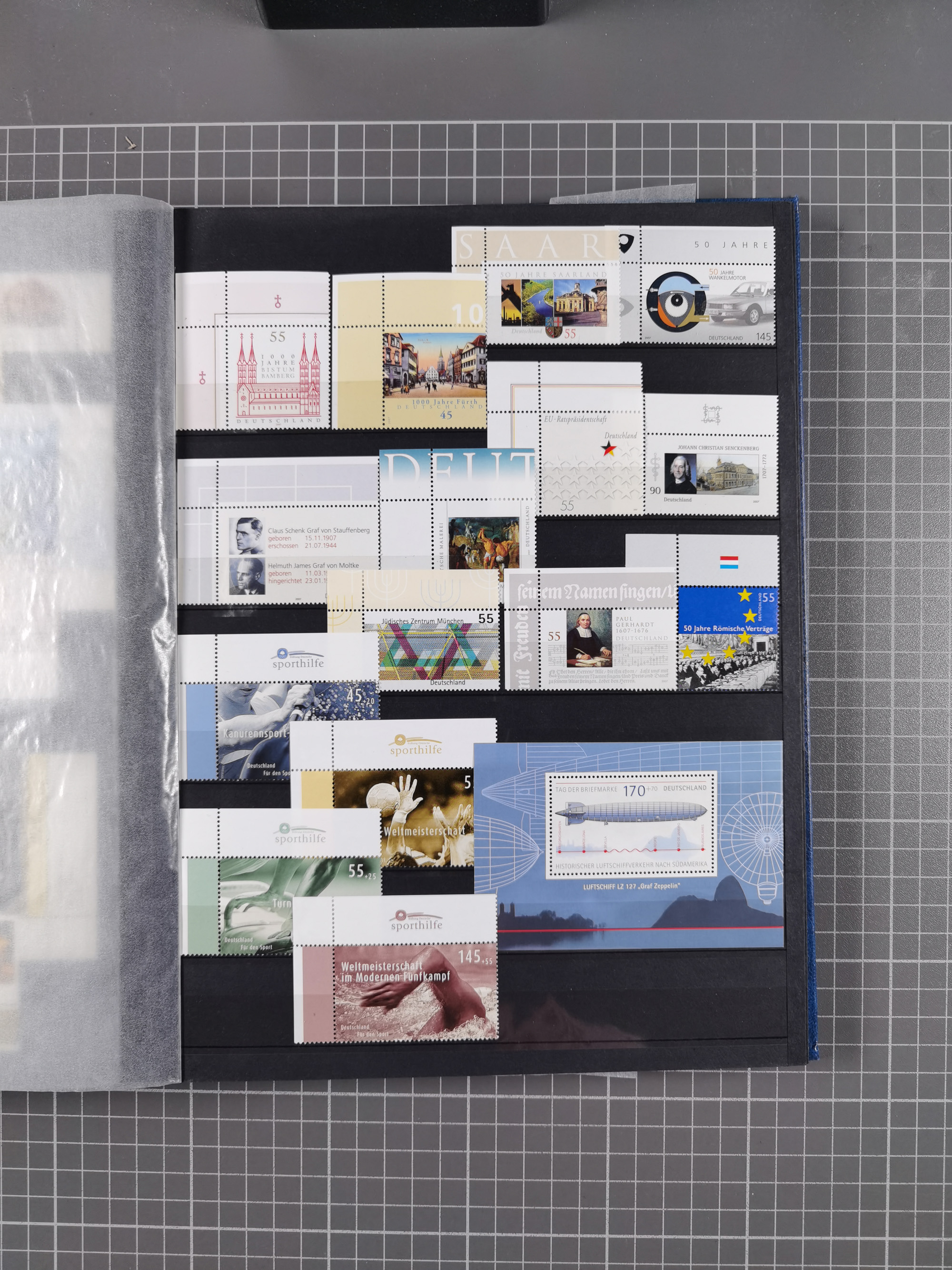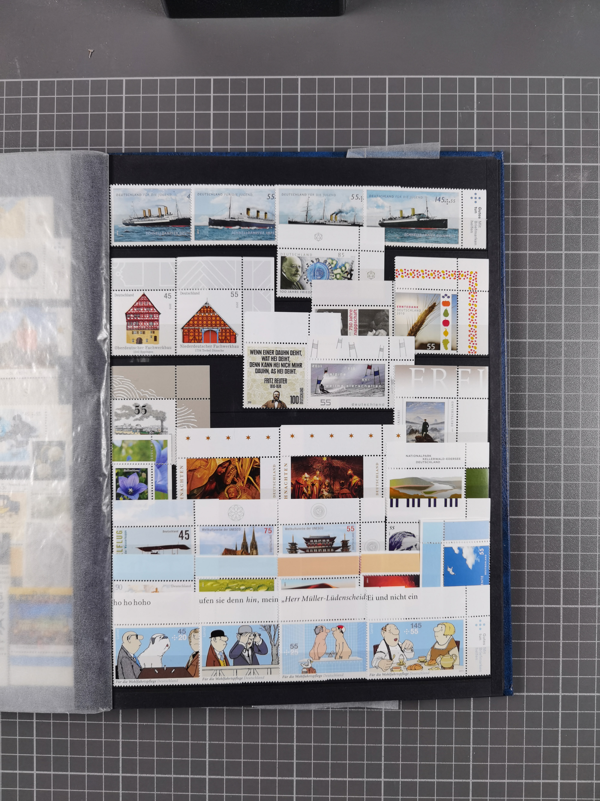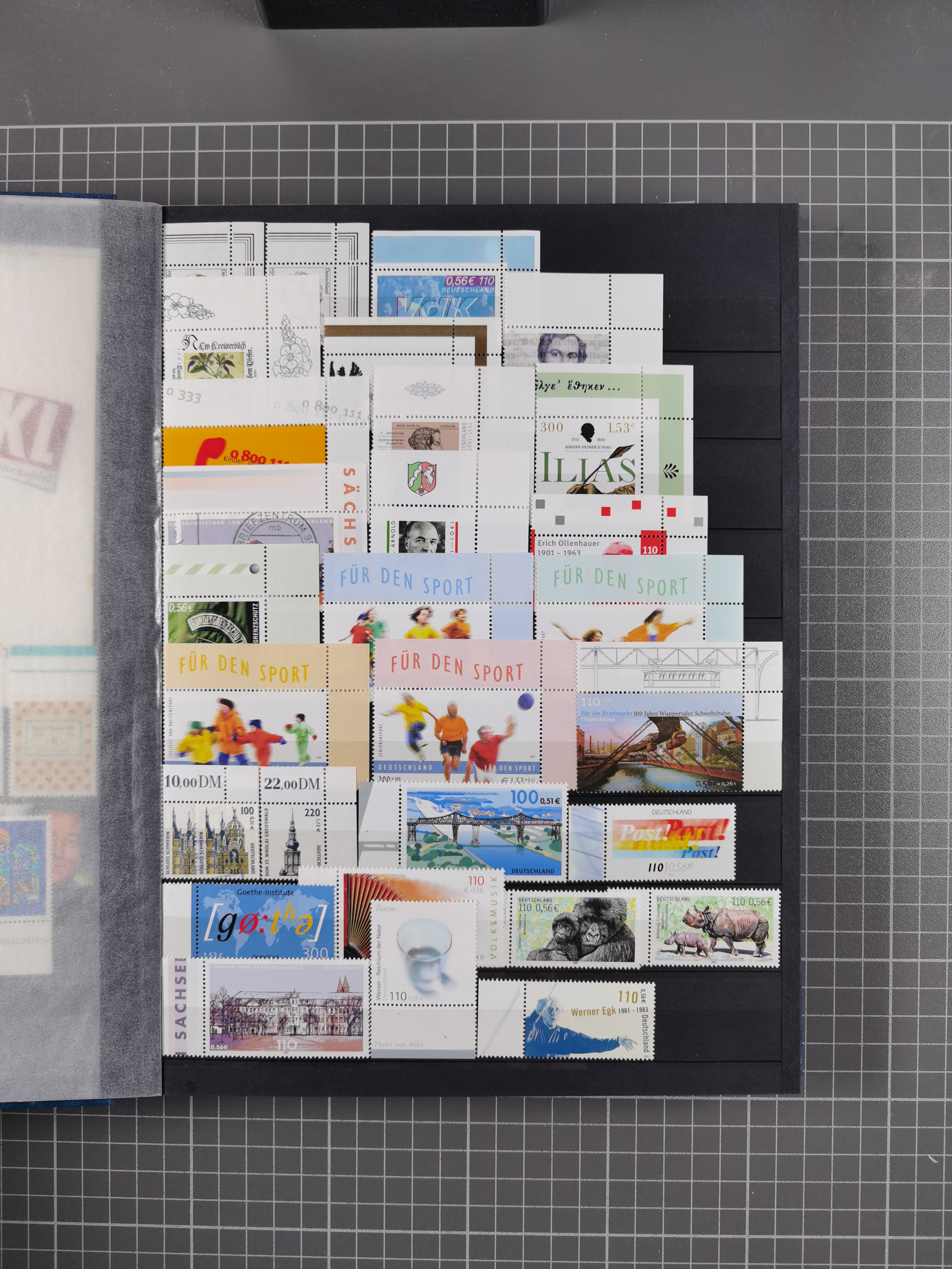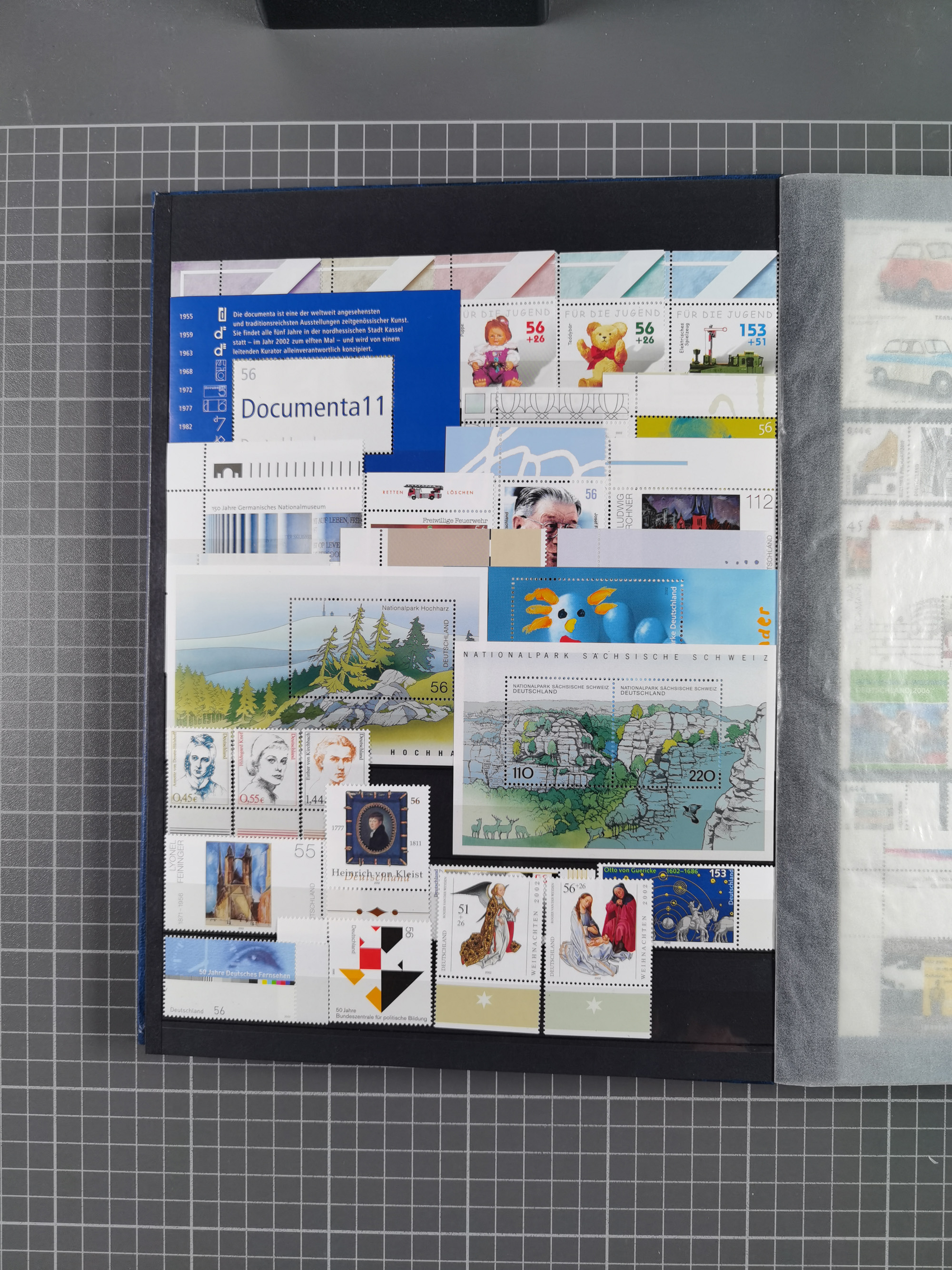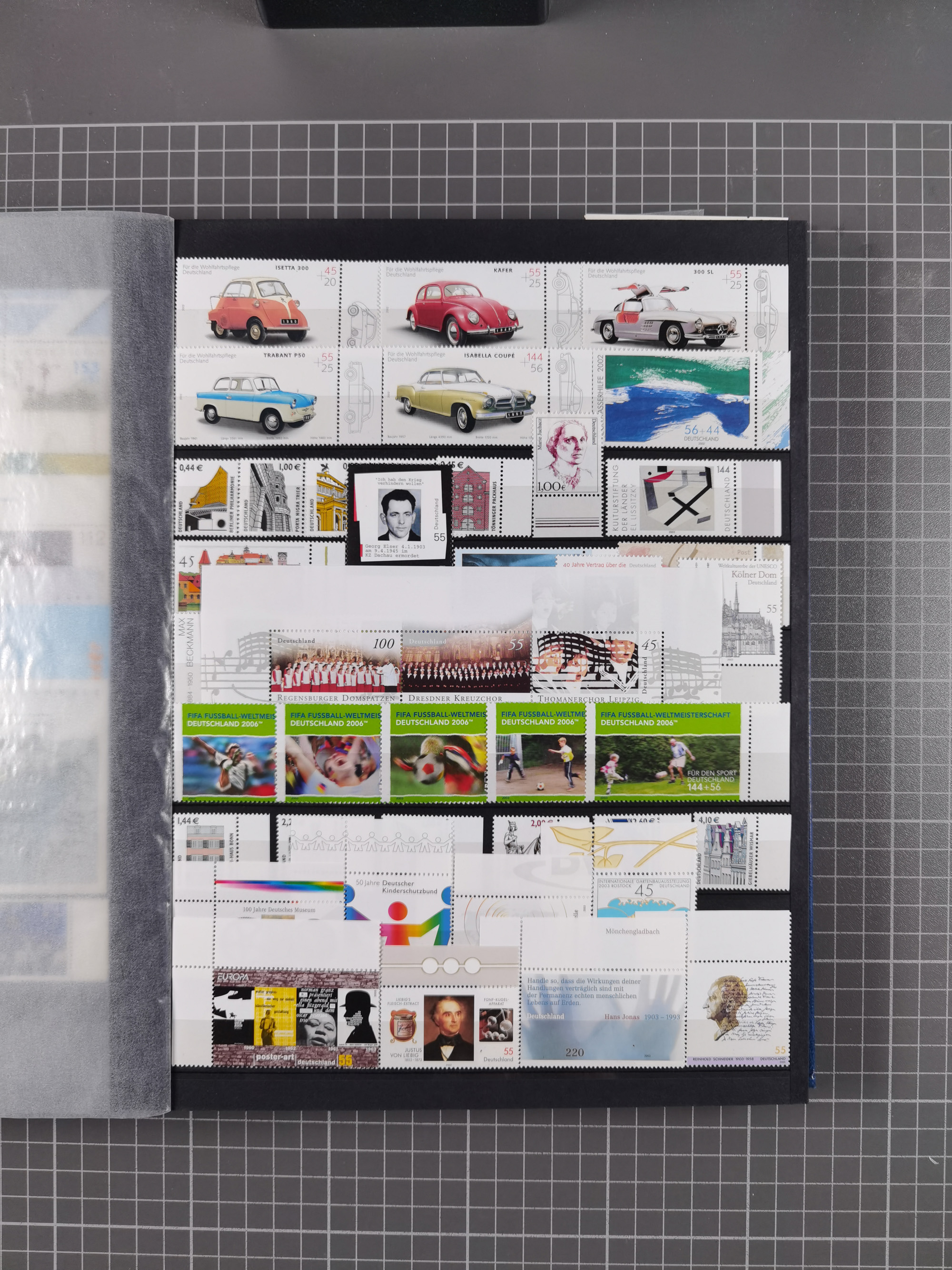 1939/2002, meist postfrischer und teils gestempelter Sammlungsbestand ab etwas Deutsches Reich, Saar, SBZ, Französische Zone mit Rot-Kreuz Block (2), Marken in Paaren oder 4er-Blocks, Bizone, Bauten kpl. (3) sowie 1-3 M. zusätzlich in 4er-Blocks, Goethe auf Karte (9), Band- und Netzaufdruck, Bl. 1 (2), über Berlin mit Schwarzaufdruck bis auf 1-2 M. kpl., teils sign., Glocken, Bauten, etc., ferner Bundesrepublik mit u.a. 114 FDC, 113-15 in Paaren, zusätzlich in postfrischen Eckr. 6er-Bl., teils mit PF, Posthorn mit u.a. 30 Pfg. postfrisch, Heuss inkl. Lumogen mehrfach, Marienkirche, NBA, Rontgen, Liebig, Bedeutende Deutsche kpl. in 4er-Bl., etliche weitere Sondermarken und Wohlfahrts-Ausgaben und Sätze, etc., viel mehrfach und mit Bogen- und Eckrand, später viel modernes Material sowie zwei Bogenmappen, gute Erhaltung, in 15 Alben