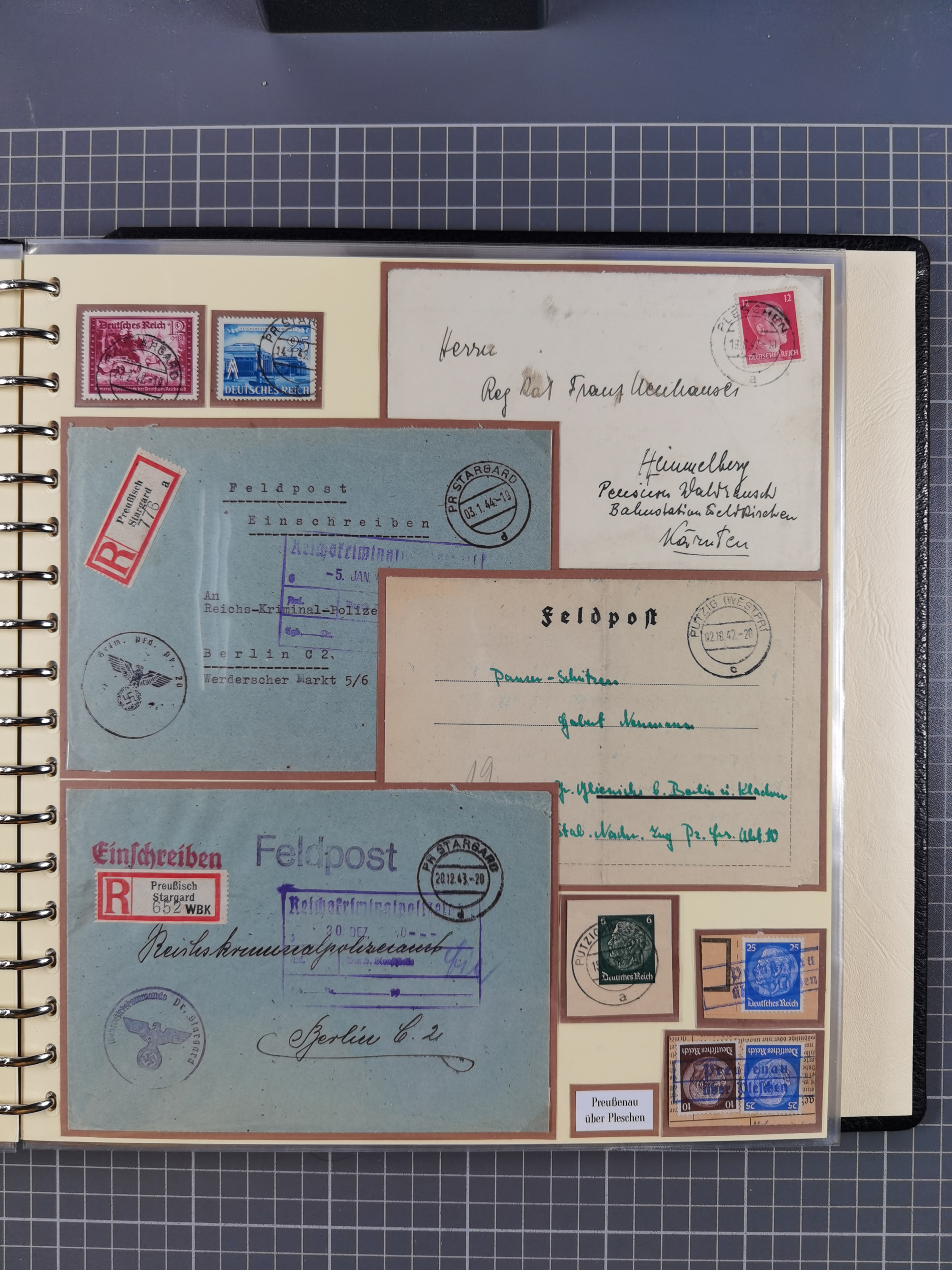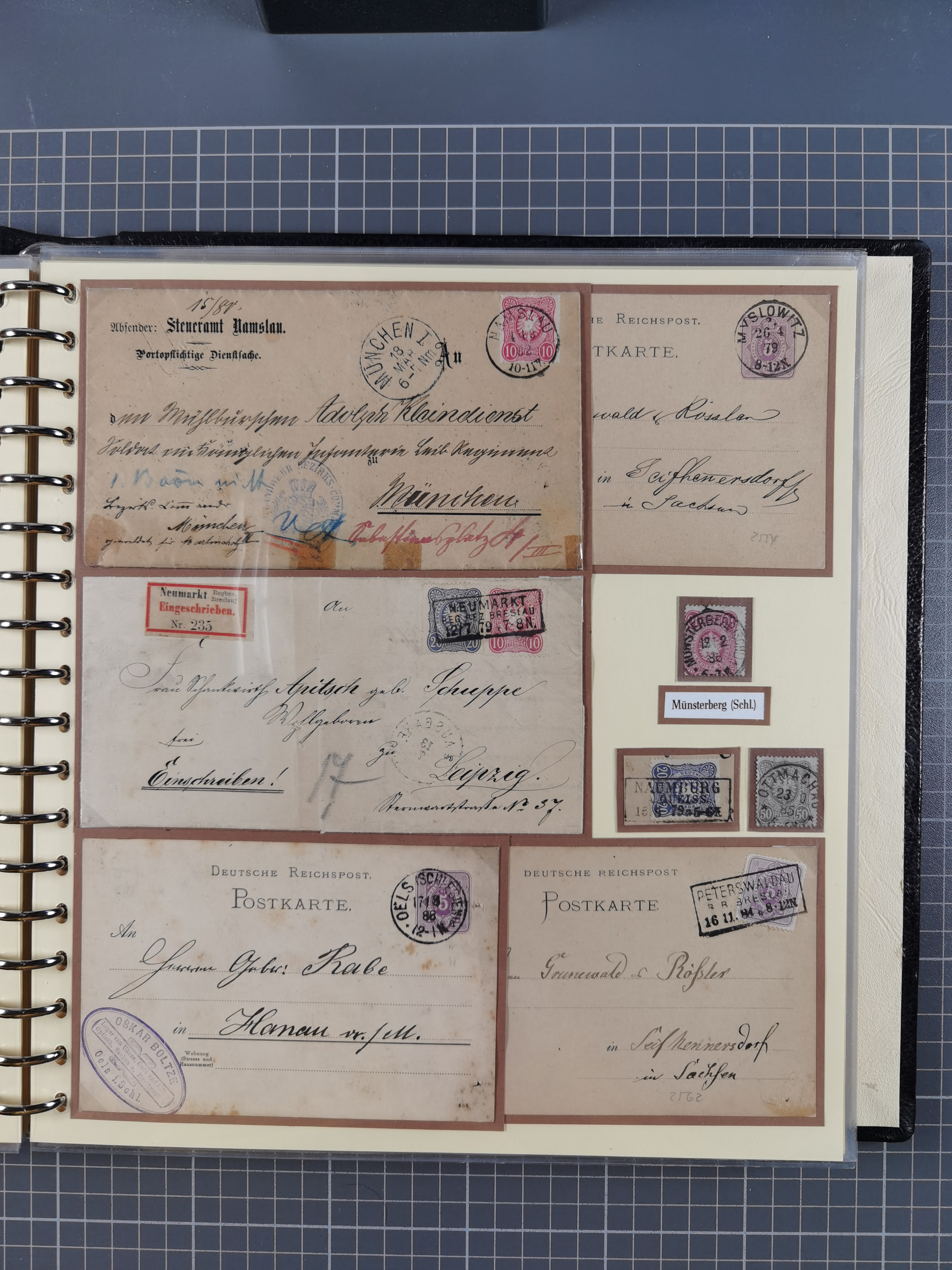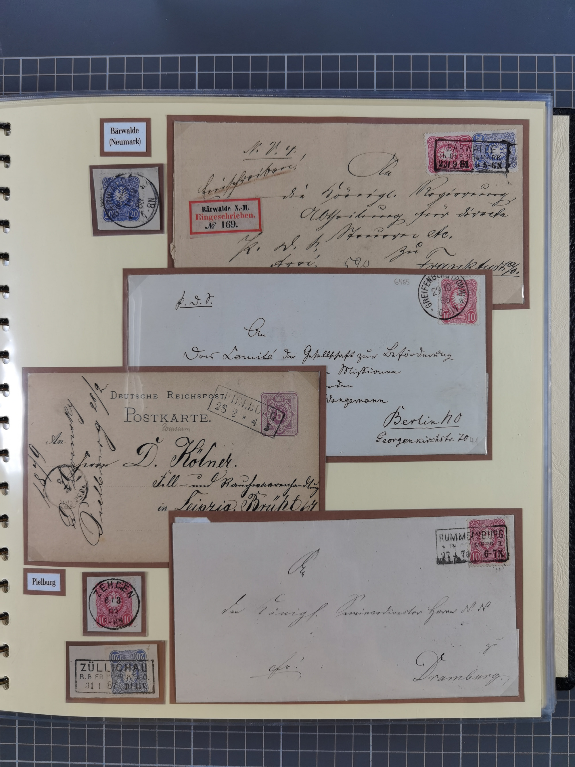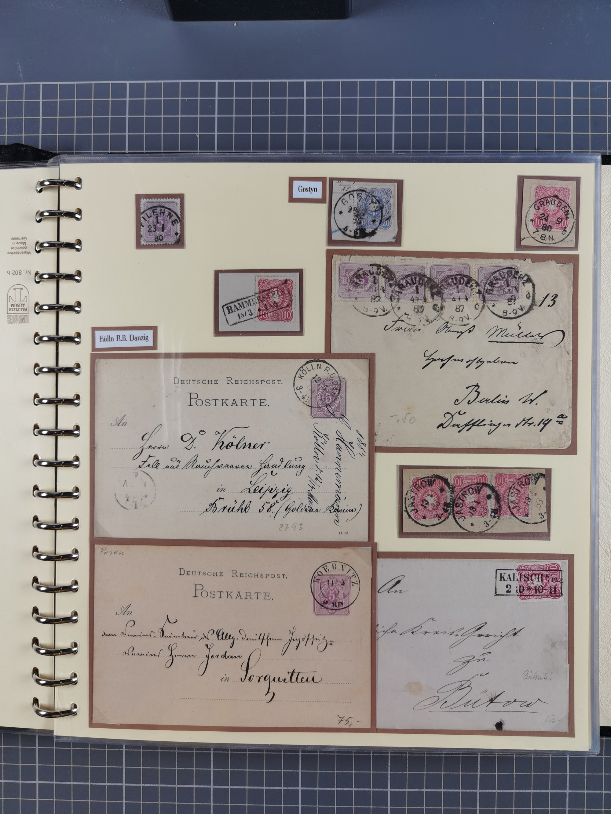 1875/45, umfangreiche Sammlung mit einigen hundert Briefen, Karten und Ganzsachen sowie einigen Briefstücken und losen Marken mit Stempeln aus Ostpreußen, Pommern, Posen, Schlesien und Sudetenland. Dabei R-Briefe, viele Stempel aus kleinen Orten, Bahnpost, Zensuren und weiteren Besonderheiten, sauber auf selbstgestalteten Albenseiten in 17 Alben