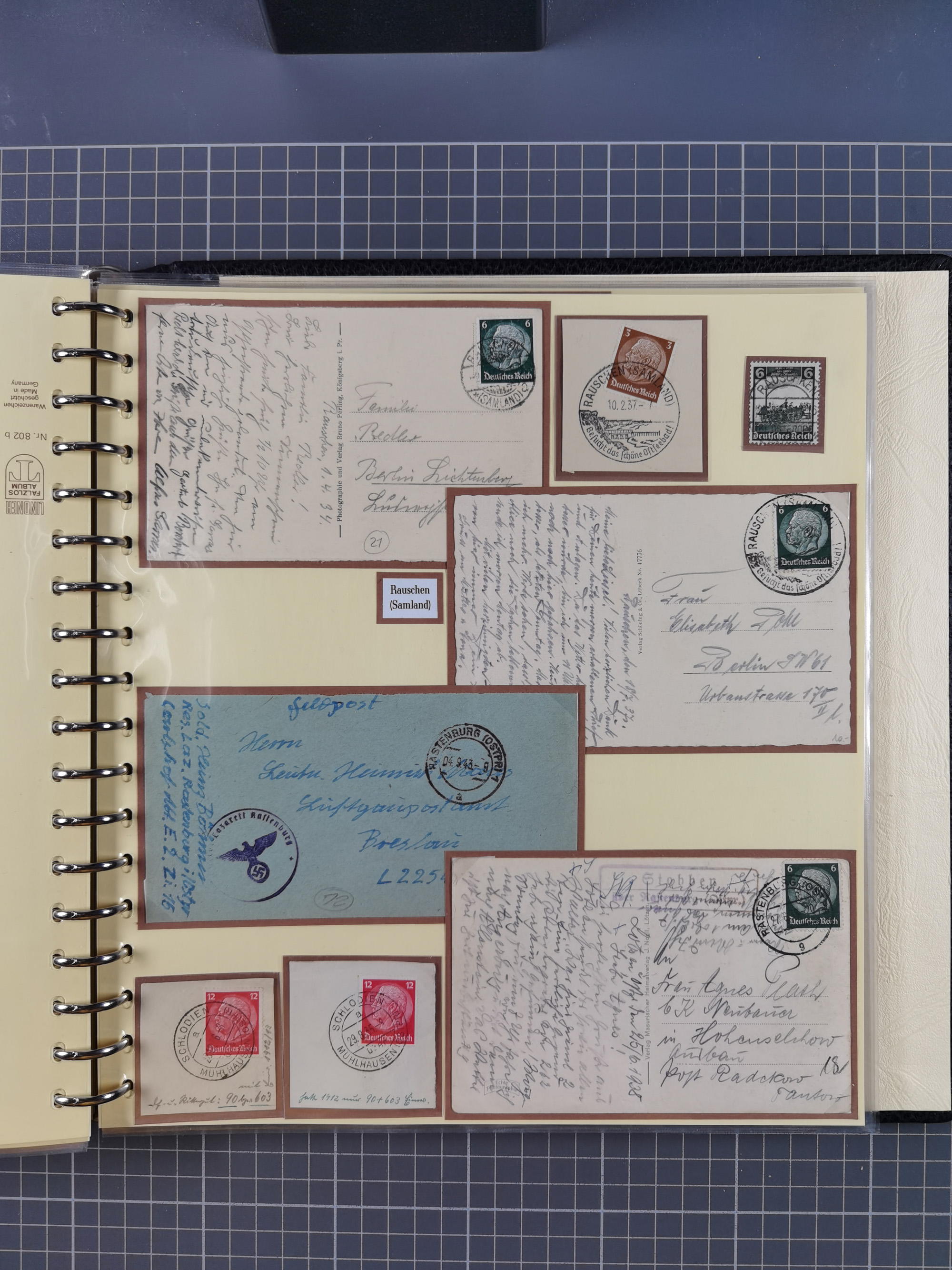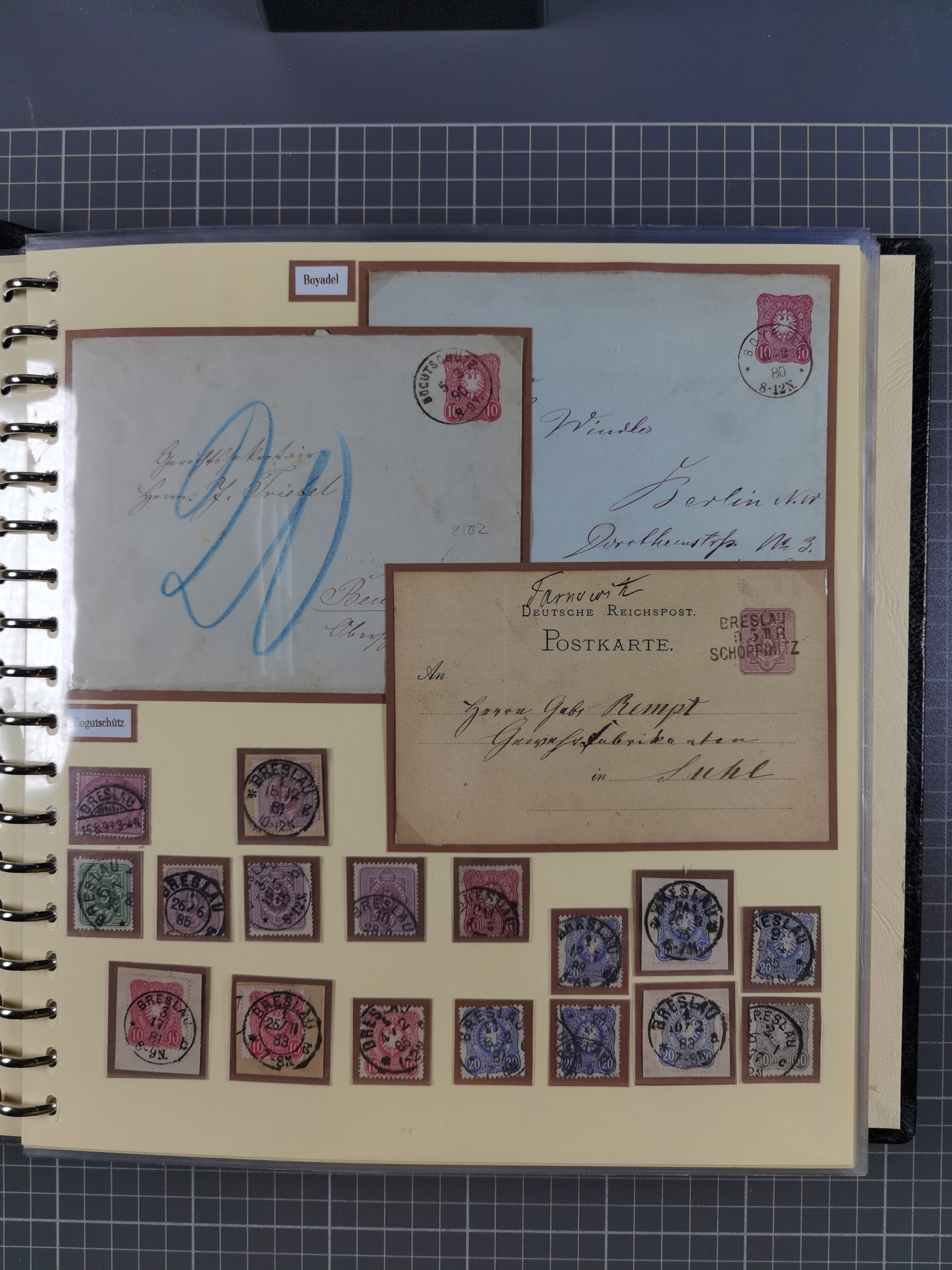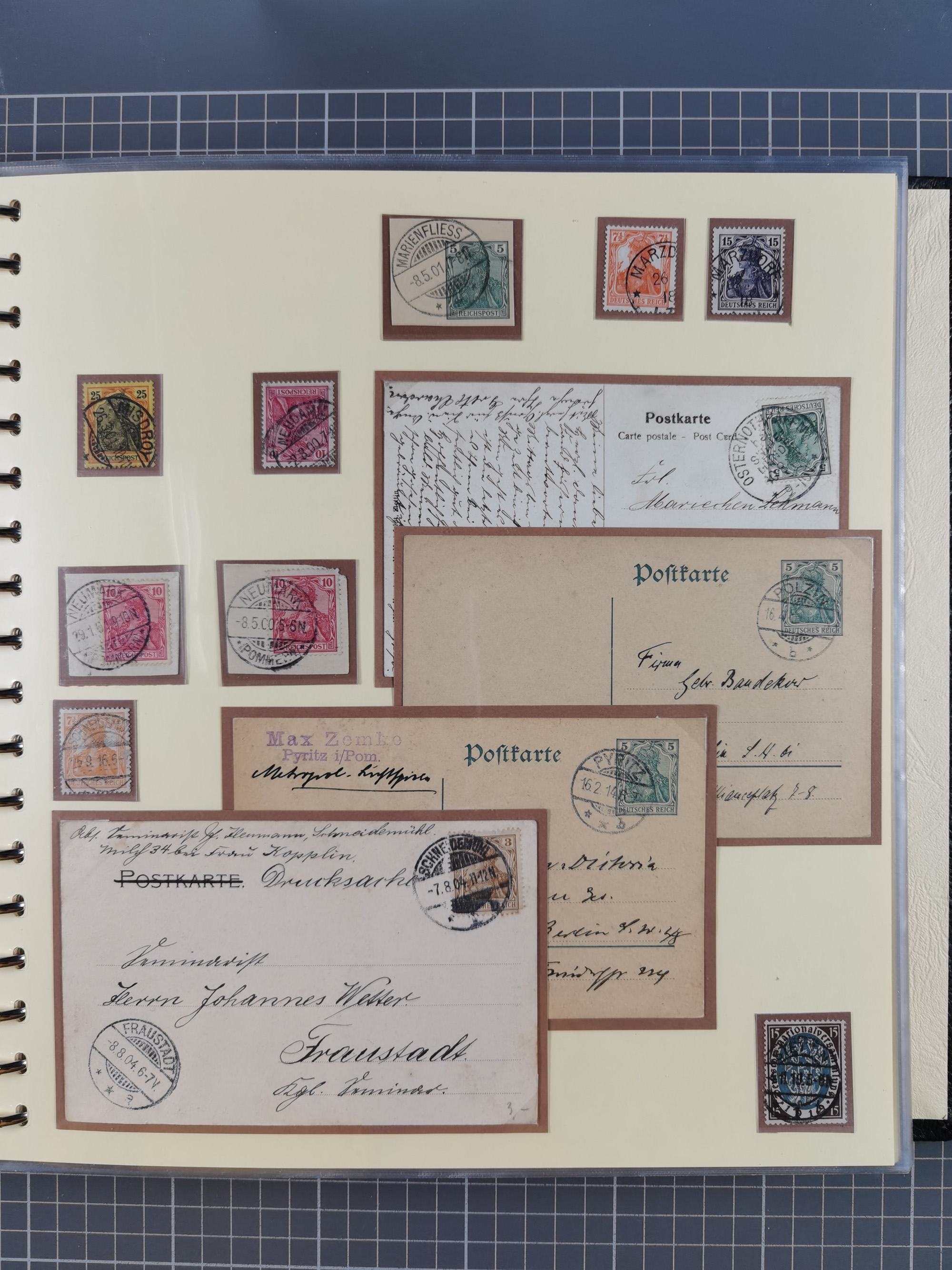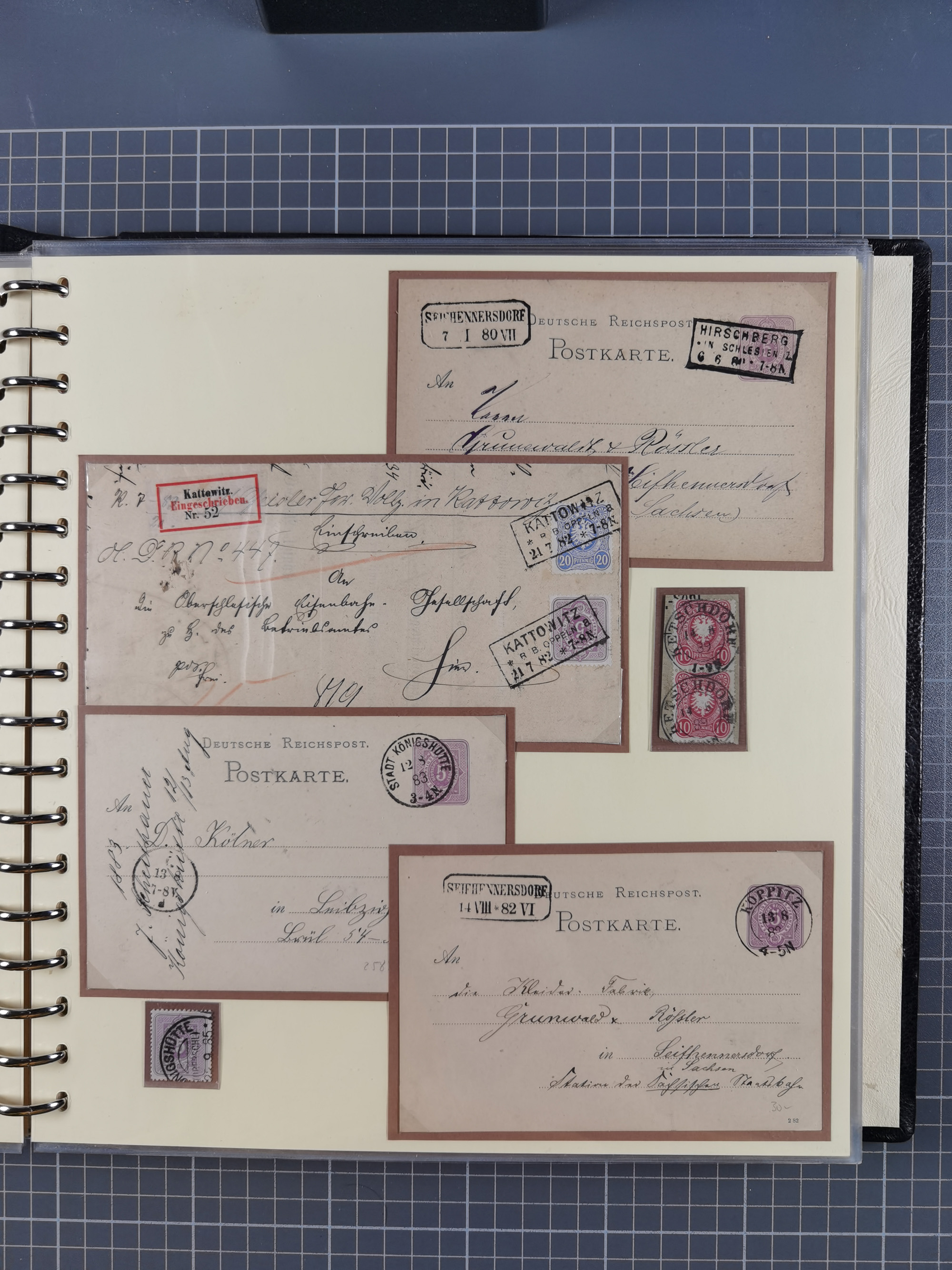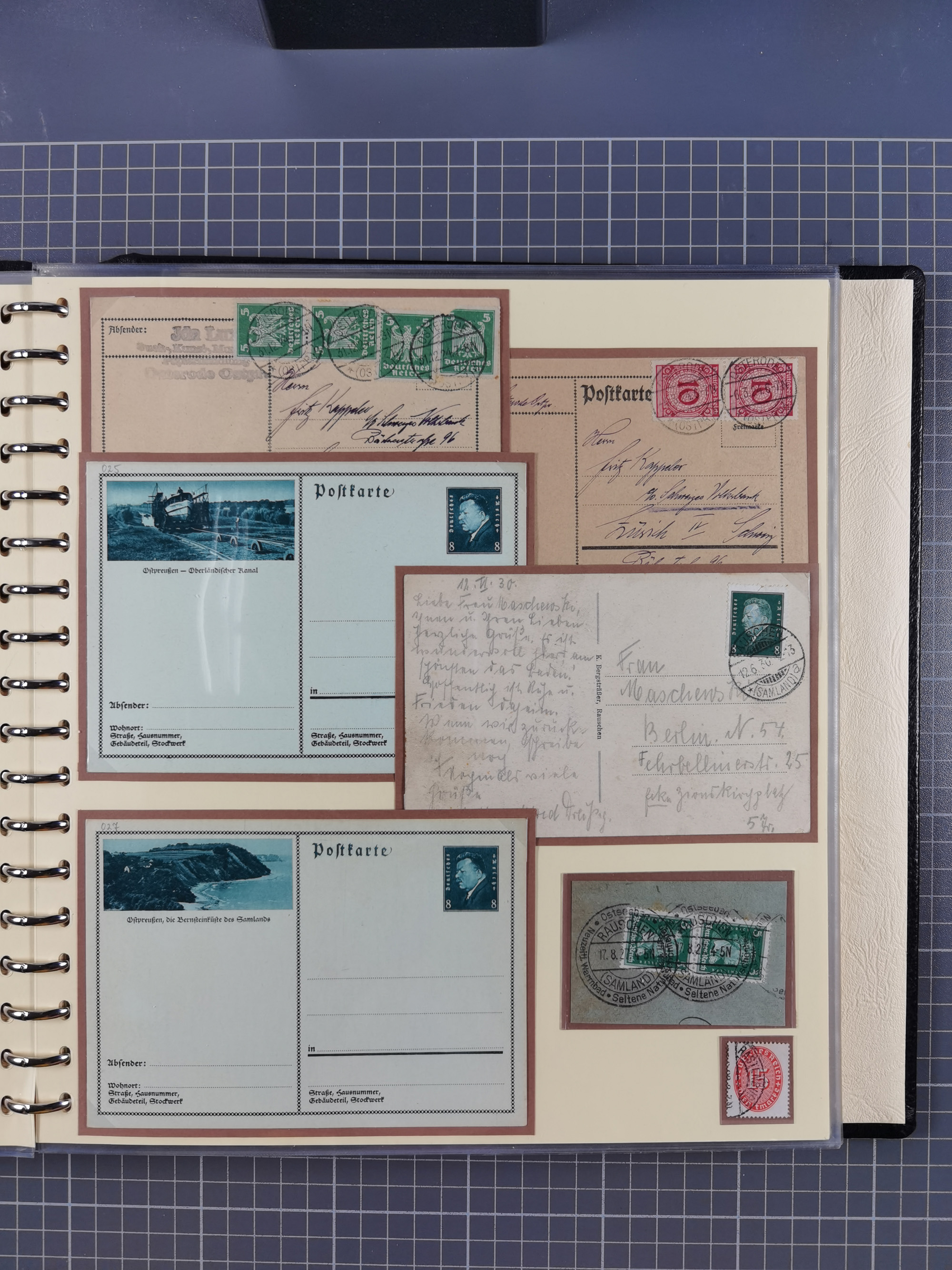 1875/45, umfangreiche Sammlung mit einigen hundert Briefen, Karten und Ganzsachen sowie einigen Briefstücken und losen Marken mit Stempeln aus Ostpreußen, Pommern, Posen, Schlesien und Sudetenland. Dabei R-Briefe, viele Stempel aus kleinen Orten, Bahnpost, Zensuren und weiteren Besonderheiten, sauber auf selbstgestalteten Albenseiten in 17 Alben