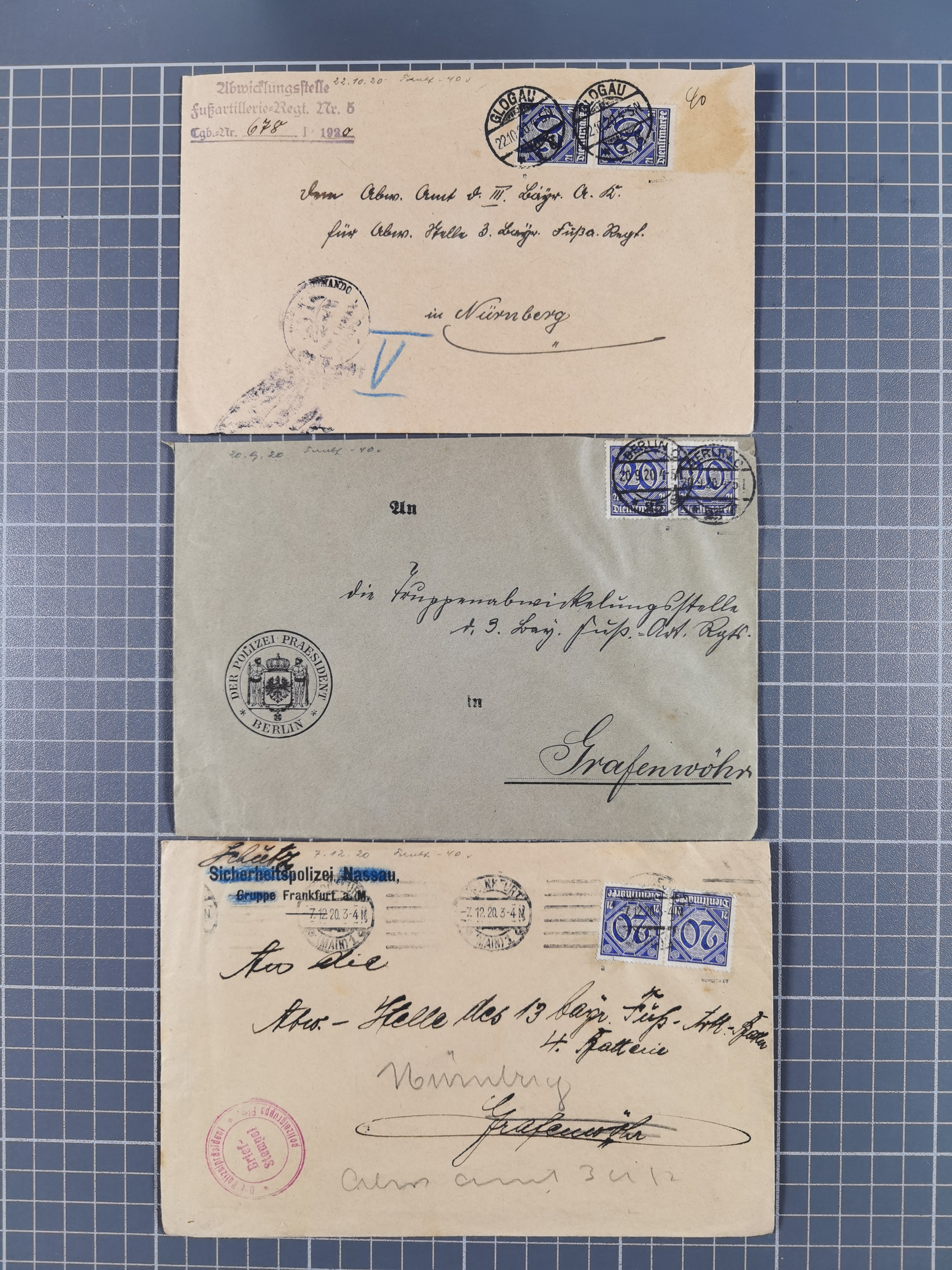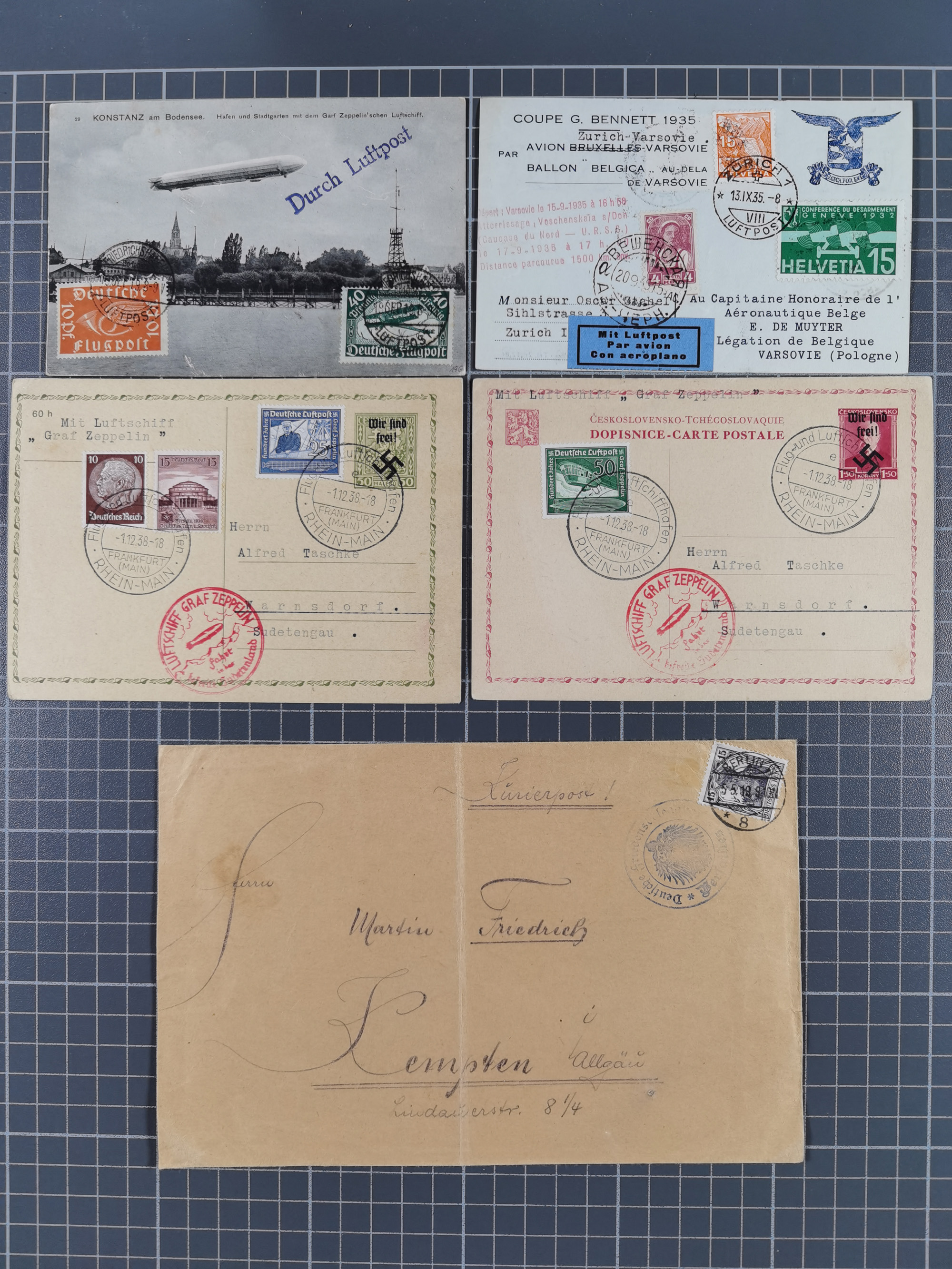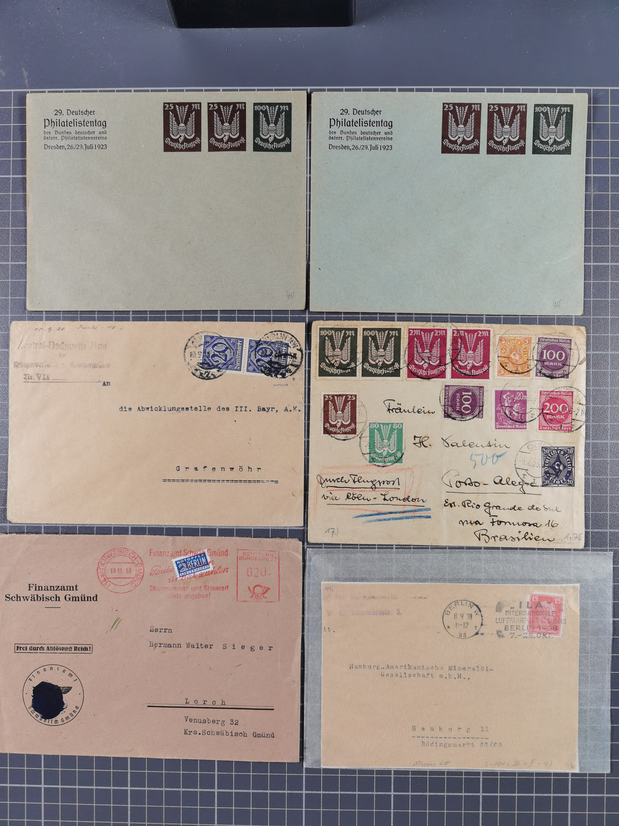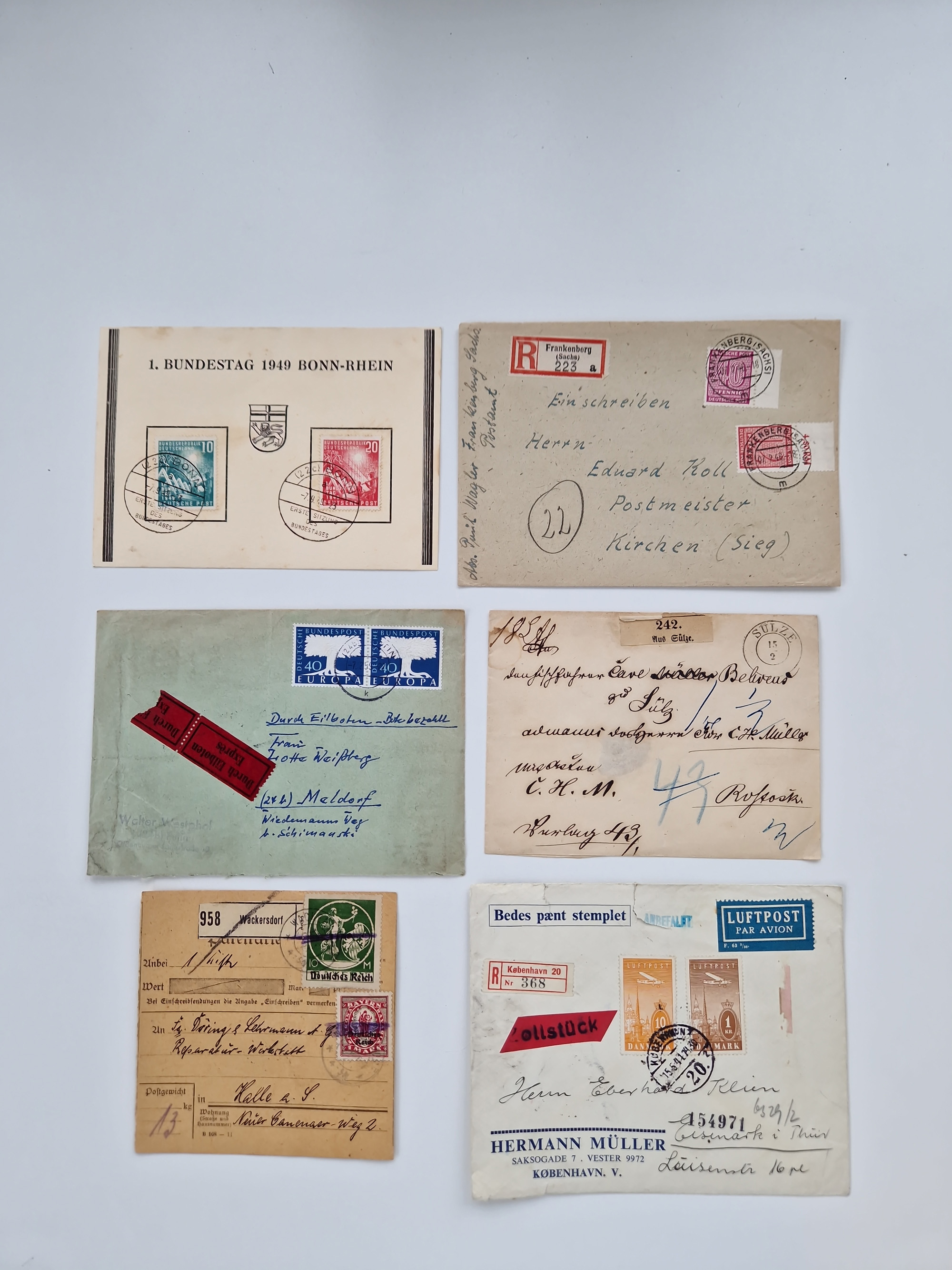1928/48, über 40 Briefe, dabei u.a. Zeppelinpost mit Islandfahrt, Polarpost 1 M., Holztaube, Liechtenstein, etc., ferner Nothilfe Zusammendruck mit Zufrankatur von Ansbach nach Nürnberg, Berlin Mi.-Nr. 1-20 je auf Blanko-Briefen, Bezirkshandstempel, etc.