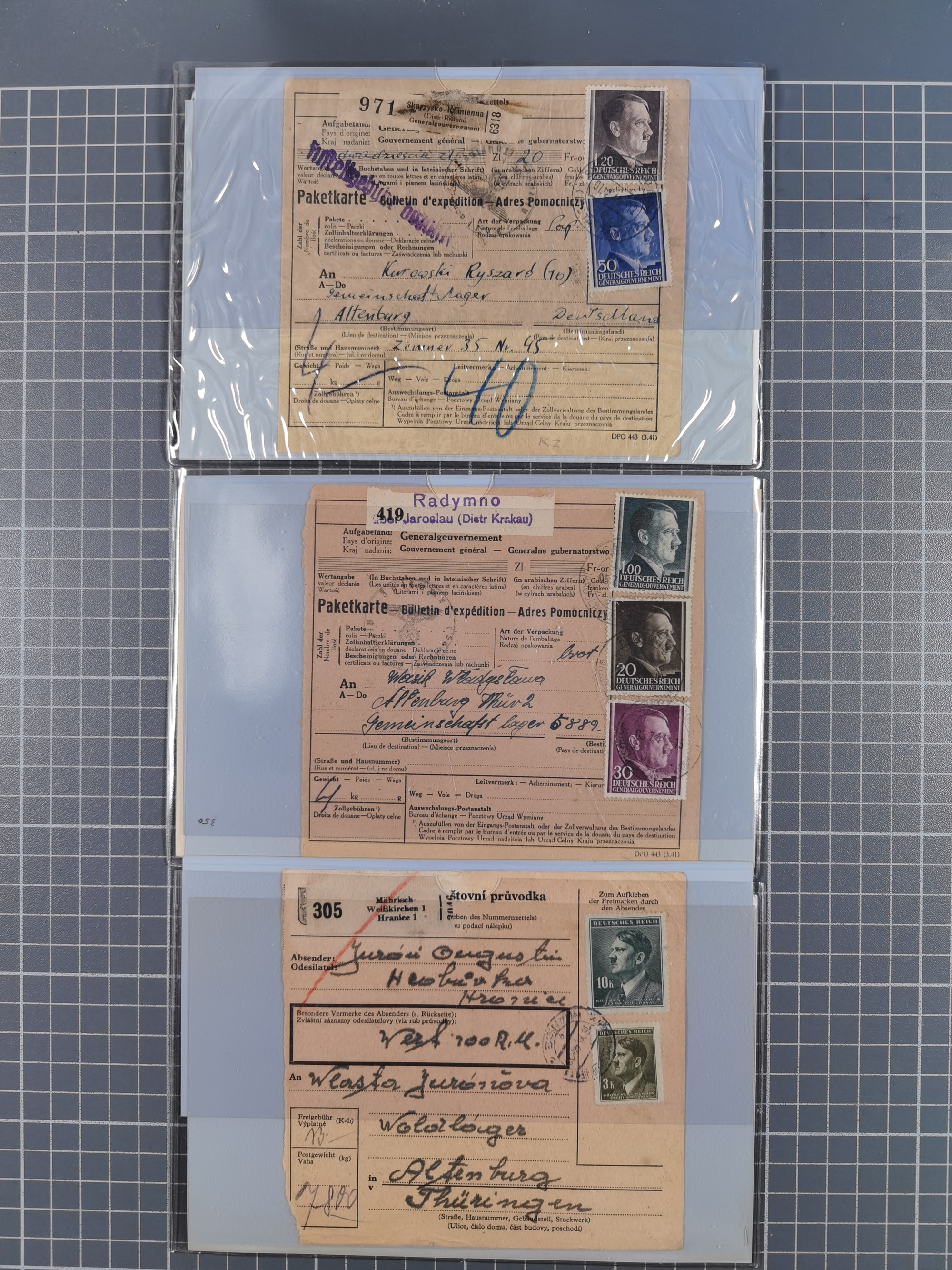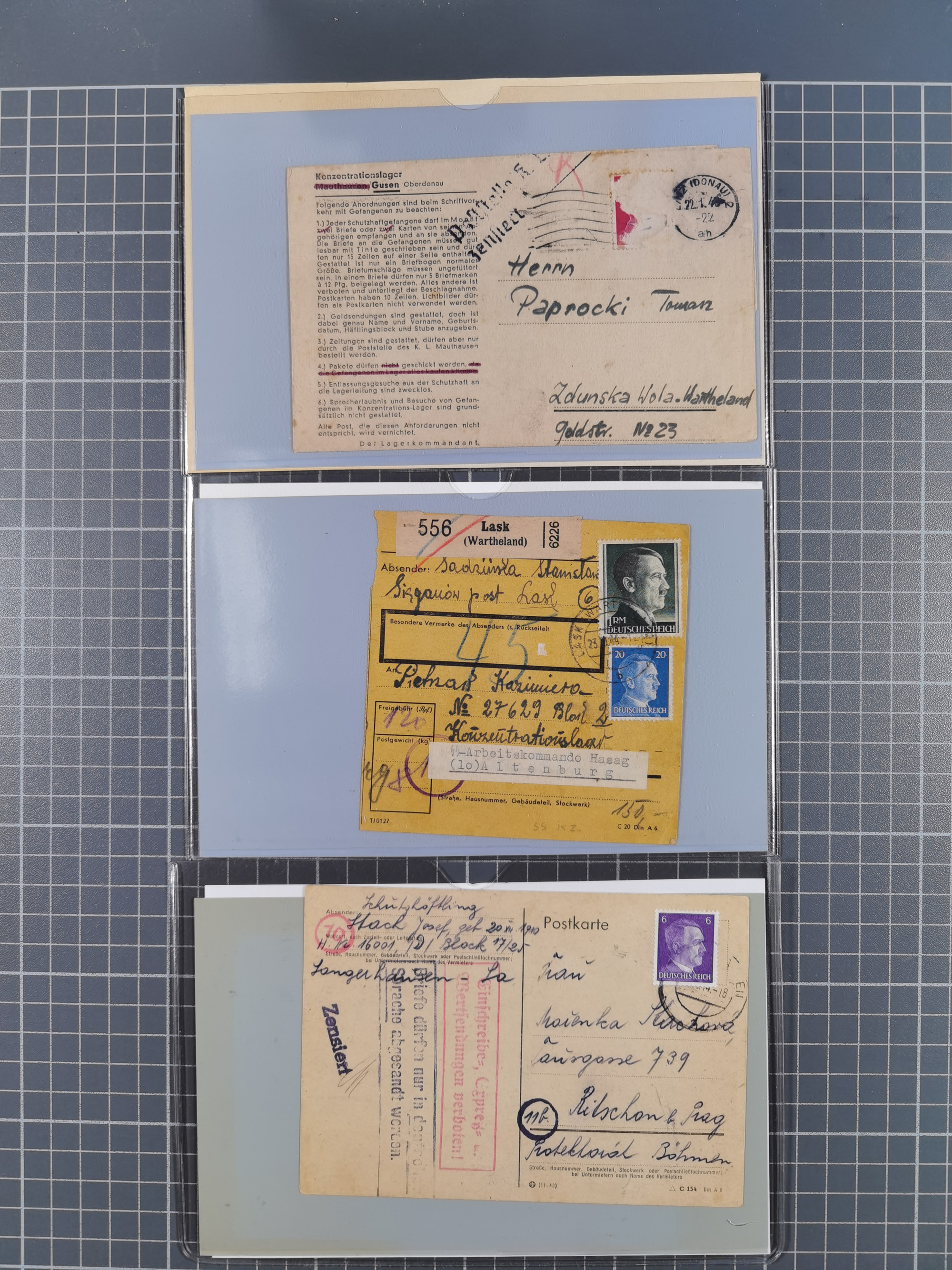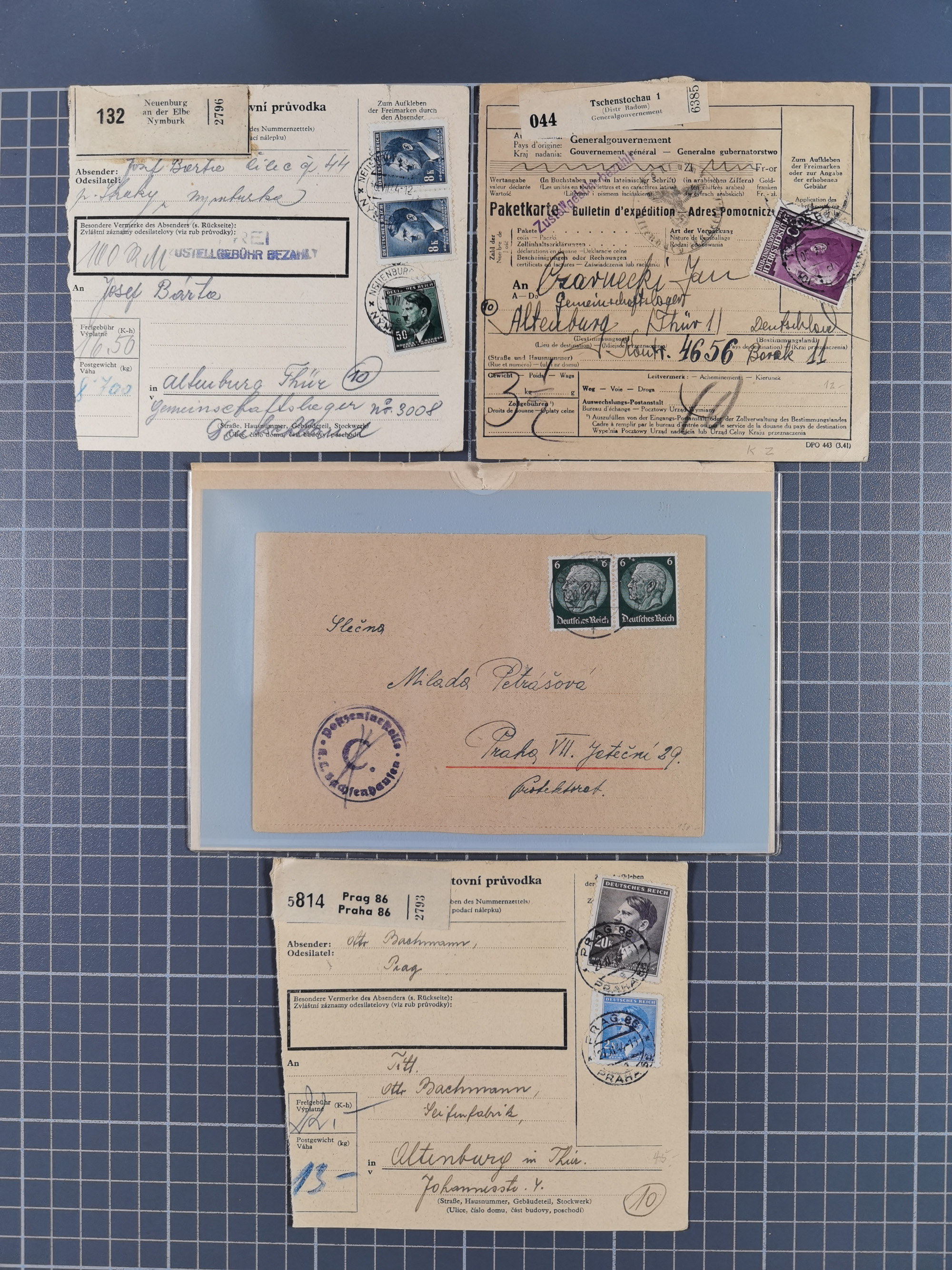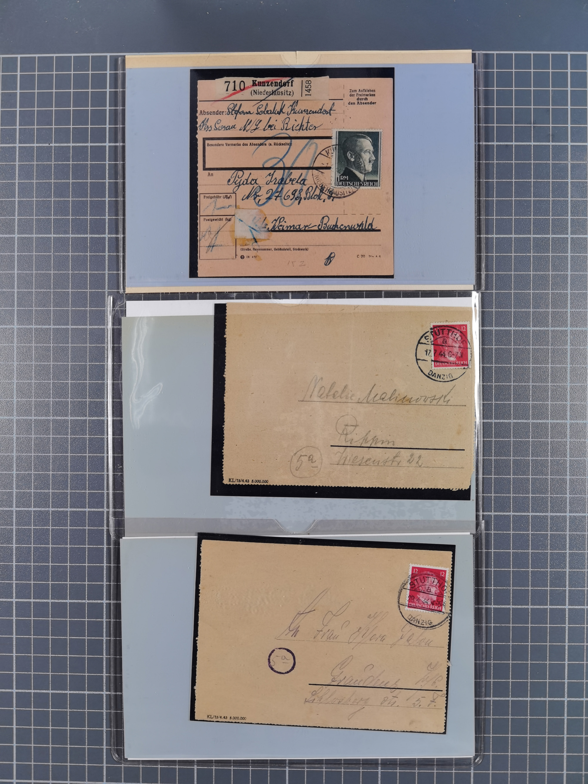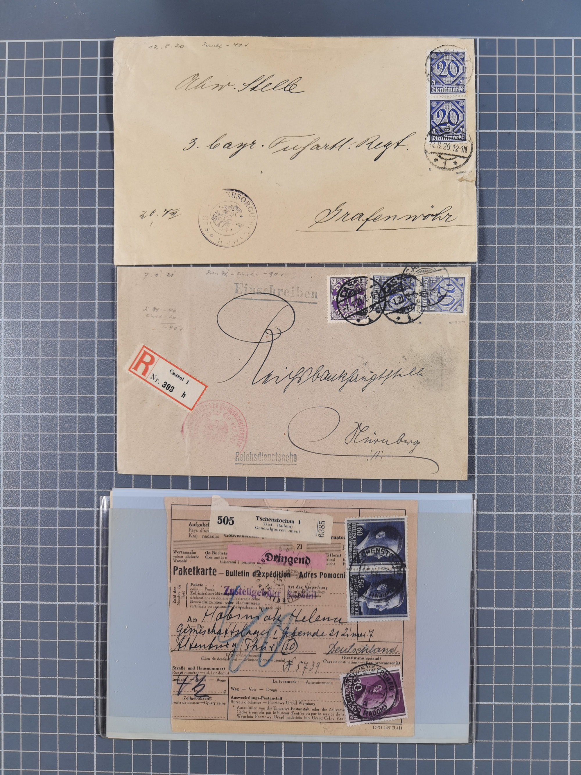 1709/1950, über 130 Briefe, Karten und Ganzsachen mit früher Botenpost, ca. 35 KZ- und Ghettopost-Belege mit u.a. zwei Kartenbriefen von Stutthof, Brief mit Stempel “BAYRISCHER KURIER-FLUGPOSTDIENST” 1919 und weitere Besonderheiten