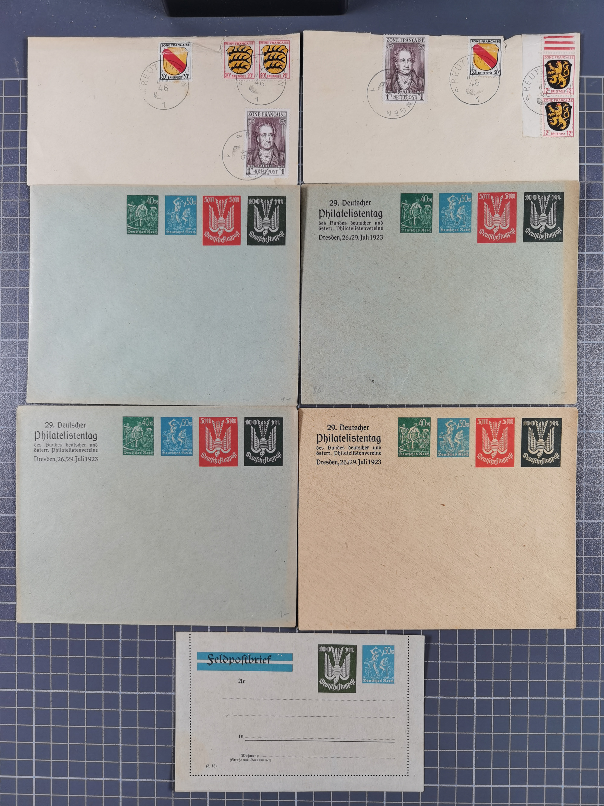 1829/1952, Partie mit 31 Belegen, inkl. Feldpost, Alt Württemberg, Danzig und Fr. Zone, etc., sauber im Album