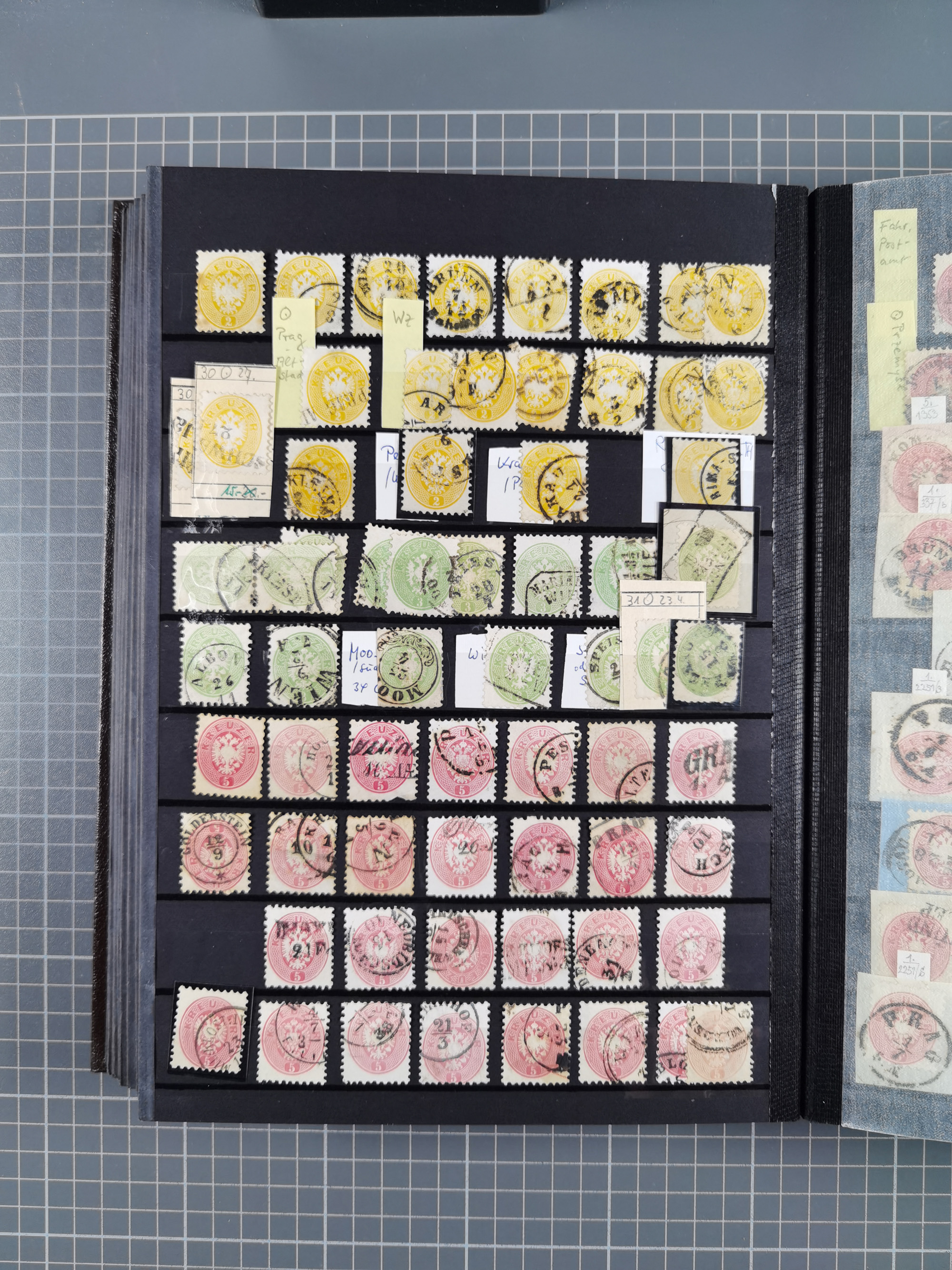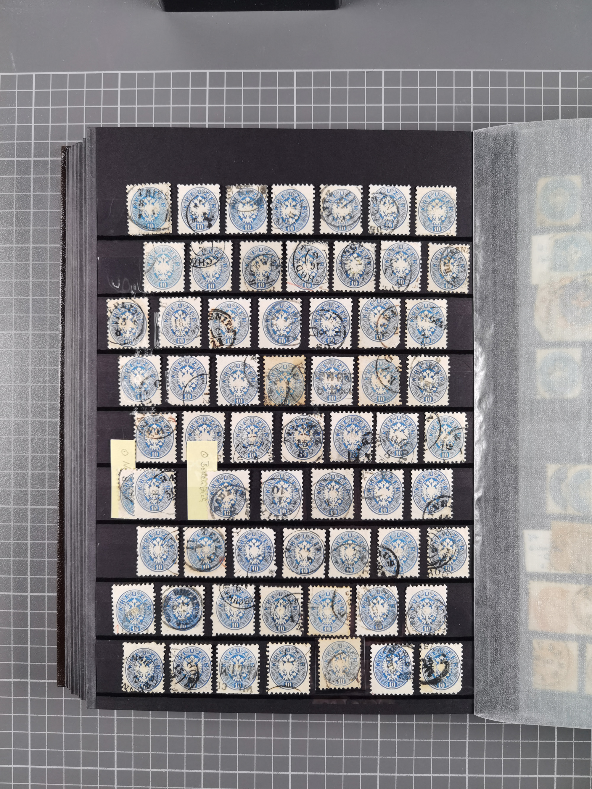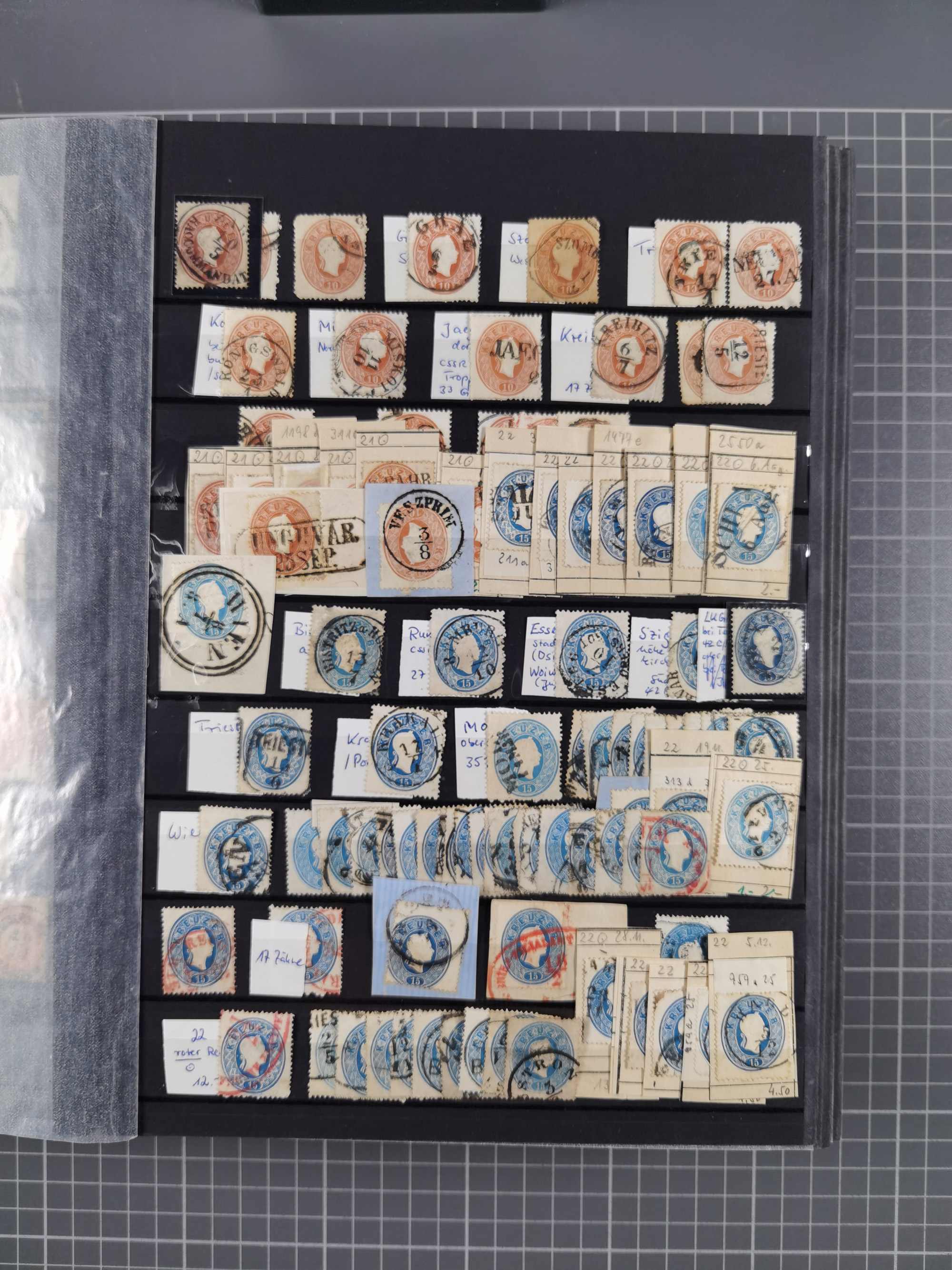 1850/1916 (ca.), Stempelsammlung auf losen Marken nach Orten geordnet, dazu Lombardei Venetien, Feldpost und Levante ungebrauchter und gestempelter Bestand mit vielen Doubletten, sauber in 7 Steckbüchern