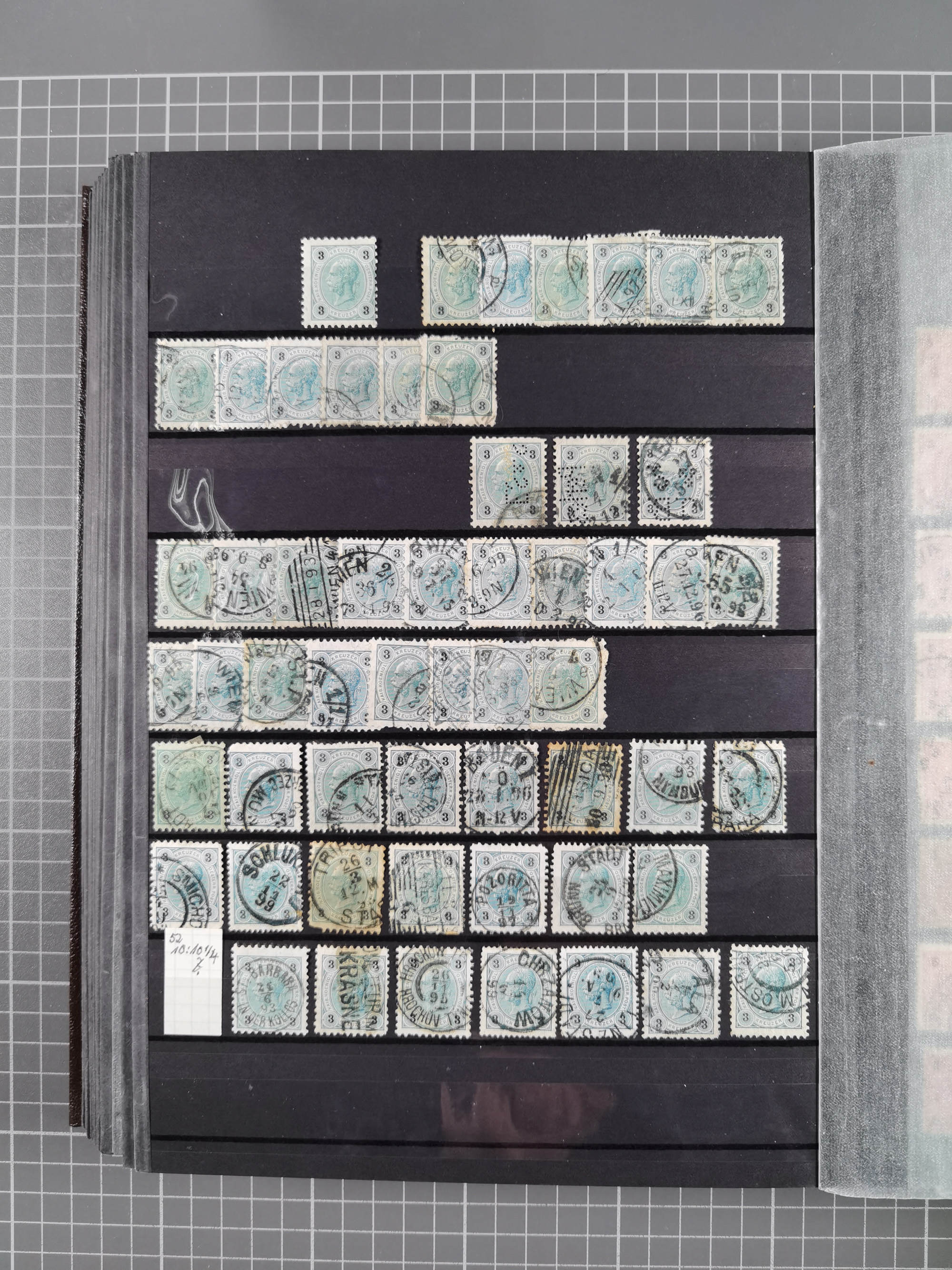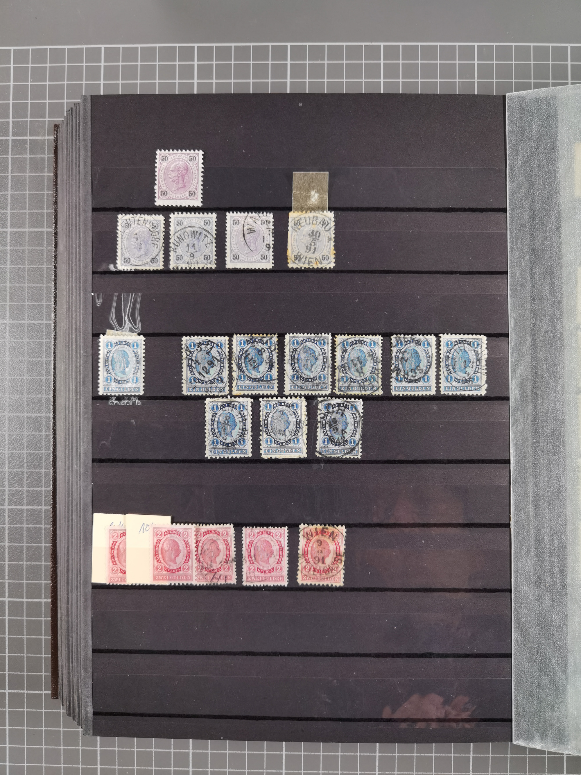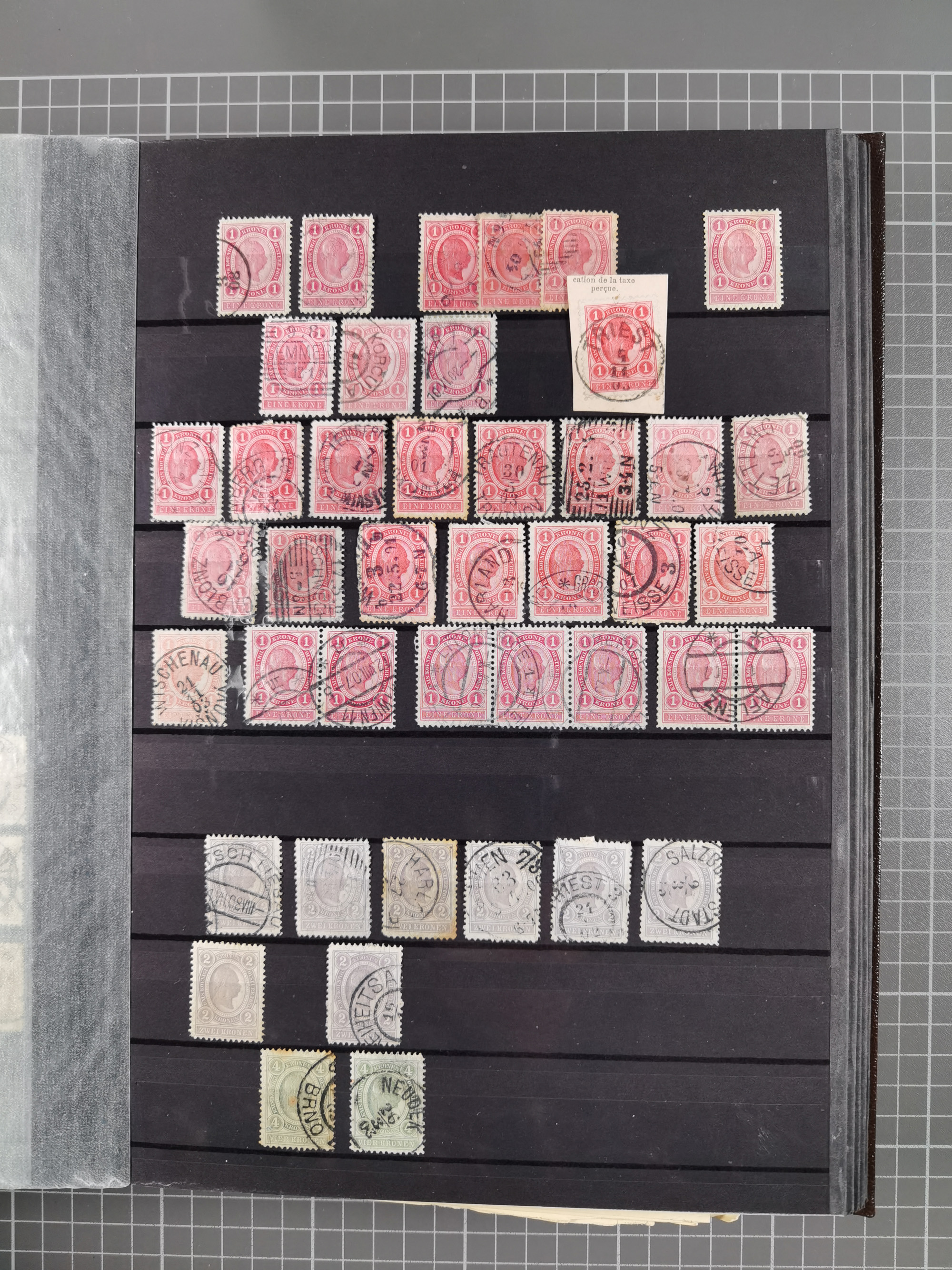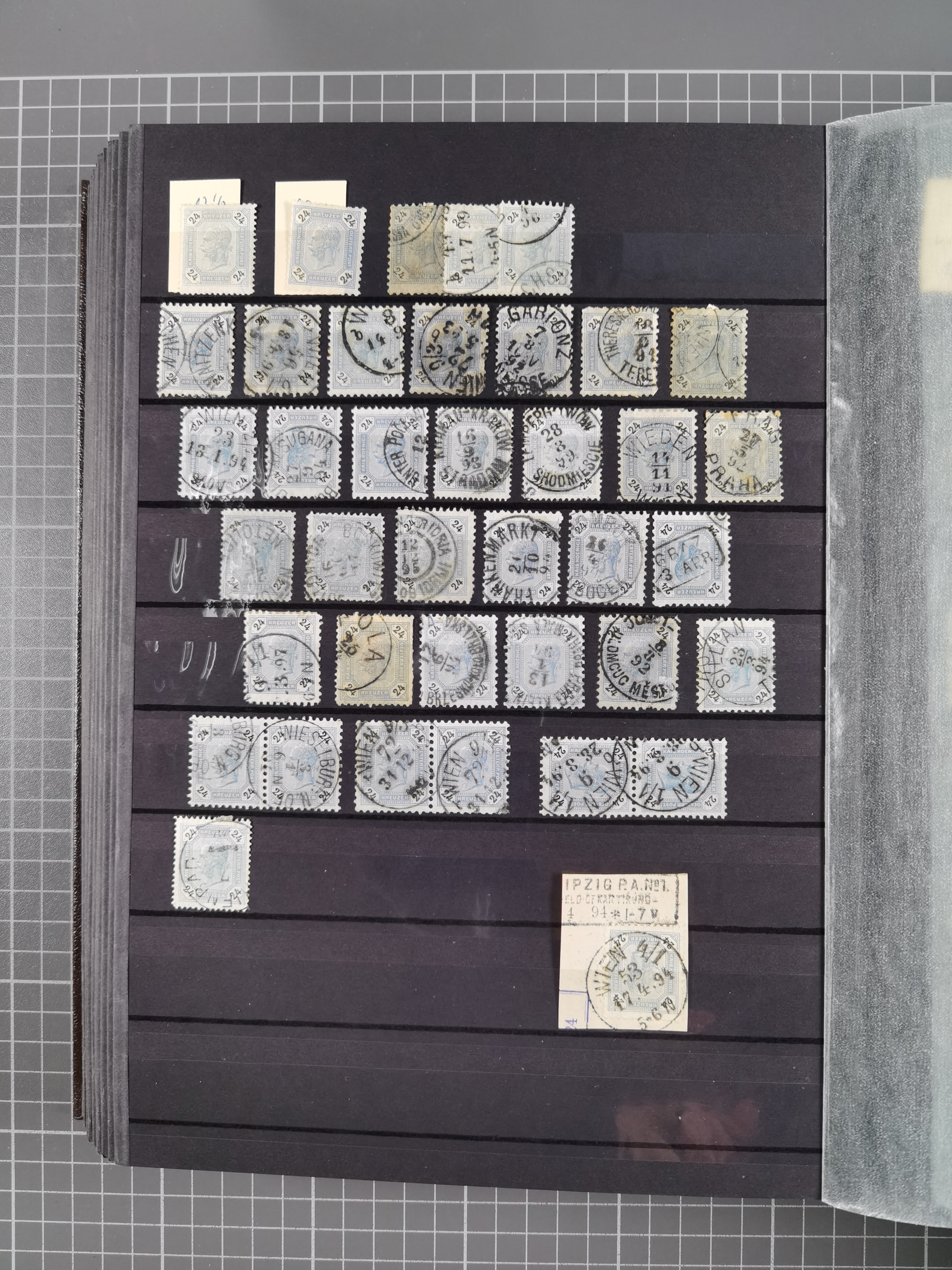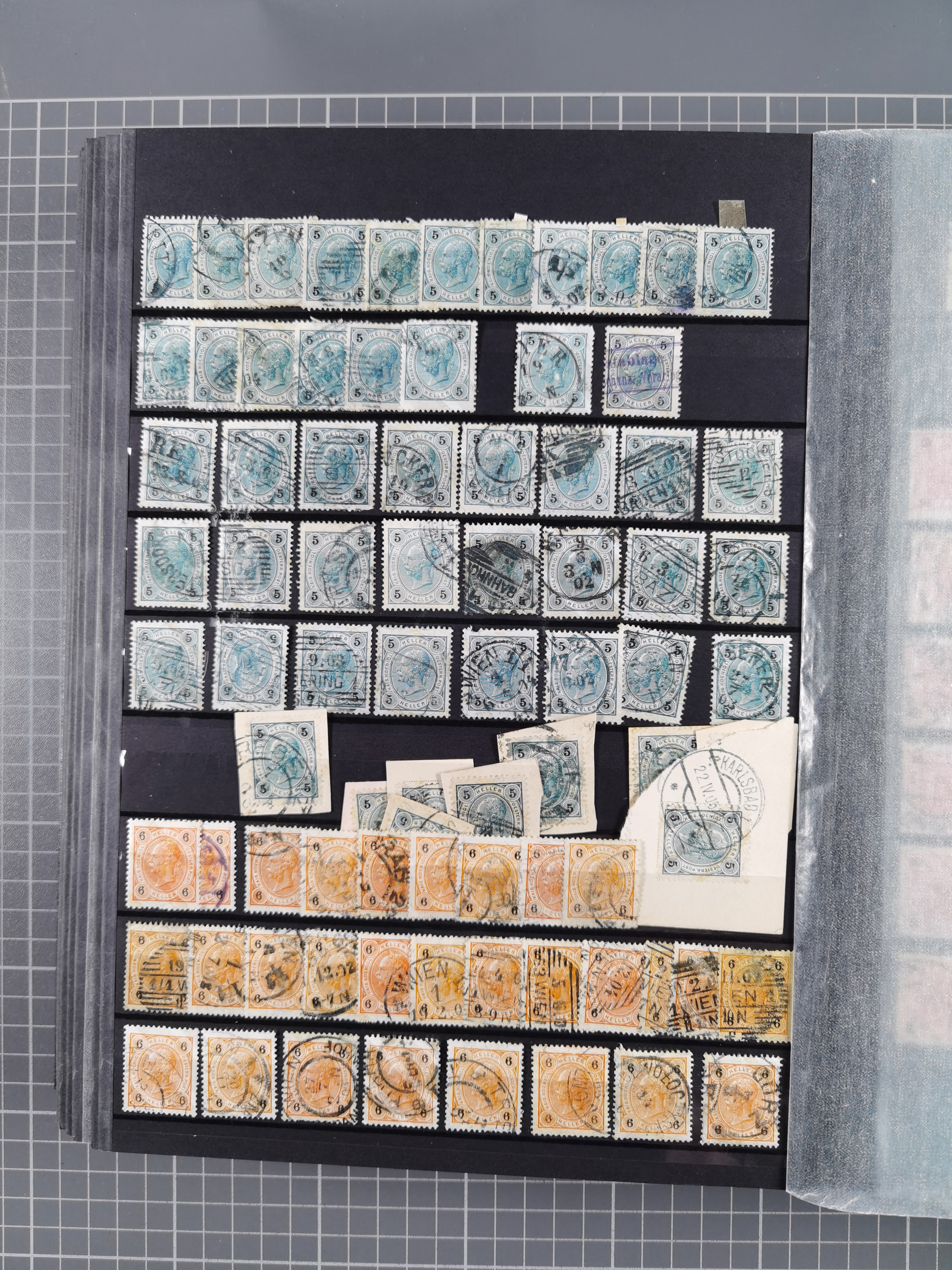 1883/90 (ca.), große aufgezogene Sammlung “Stempeltypen auf den Ausgaben 1883/90” mit über 320 Briefen und Karten, viele lose Marken und Briefstücke mit meist klaren Abstempelungen, dabei u.a. Langstempeln mit “KORSZÓW” in blau auf Briefstück, Ovalstempel “K.K. POSTAMT WOLFSBERG” auf 5 Kr. auf Brief nach Graz, “DNESPEK” auf Briefstück, etc., schöne Auswahl an Fingerhutstempeln, einige R-Briefe. Ein interessantes Objekt, sauber sortiert auf selbst gestalteten Albenblättern, in 4 Alben