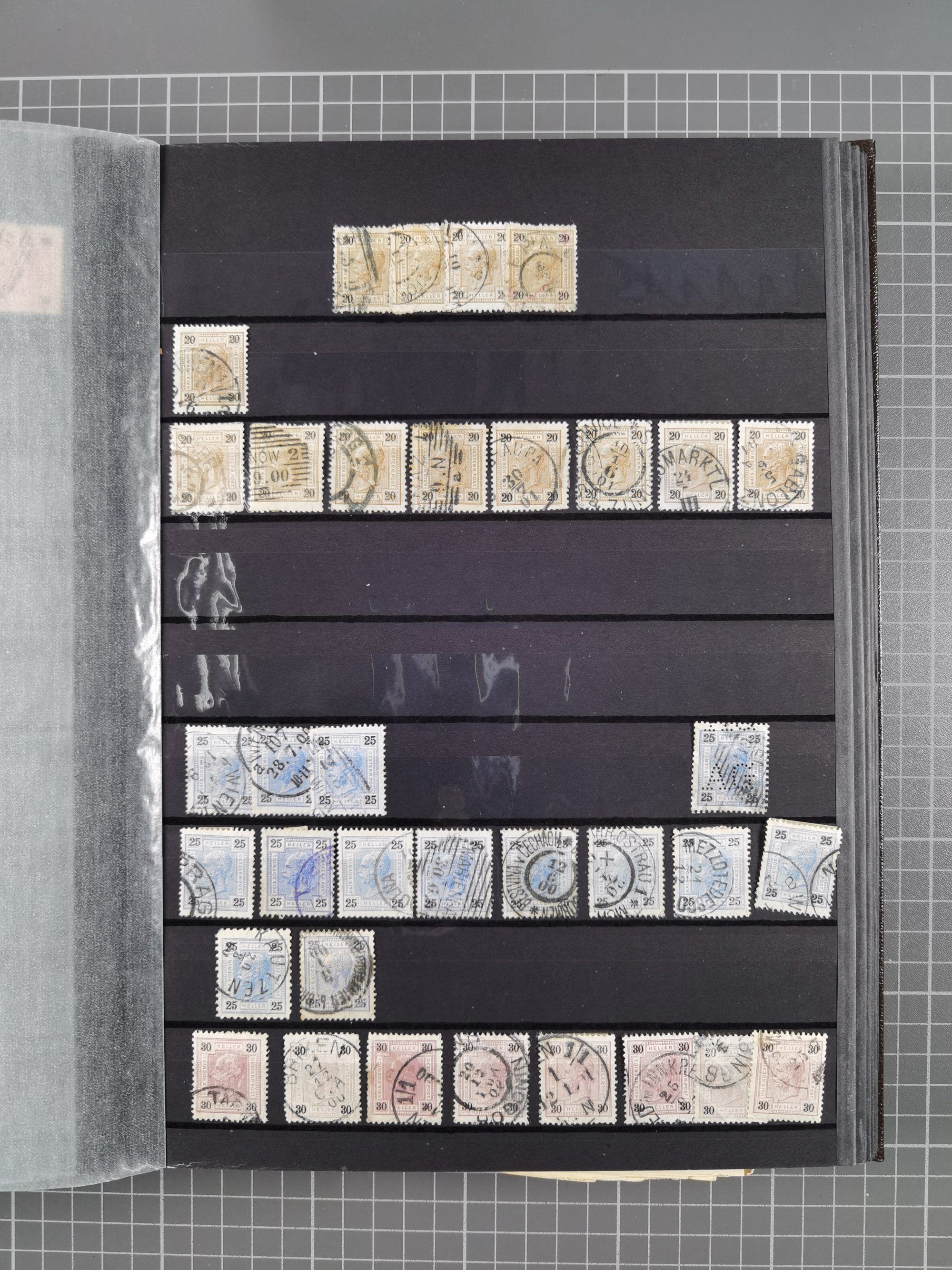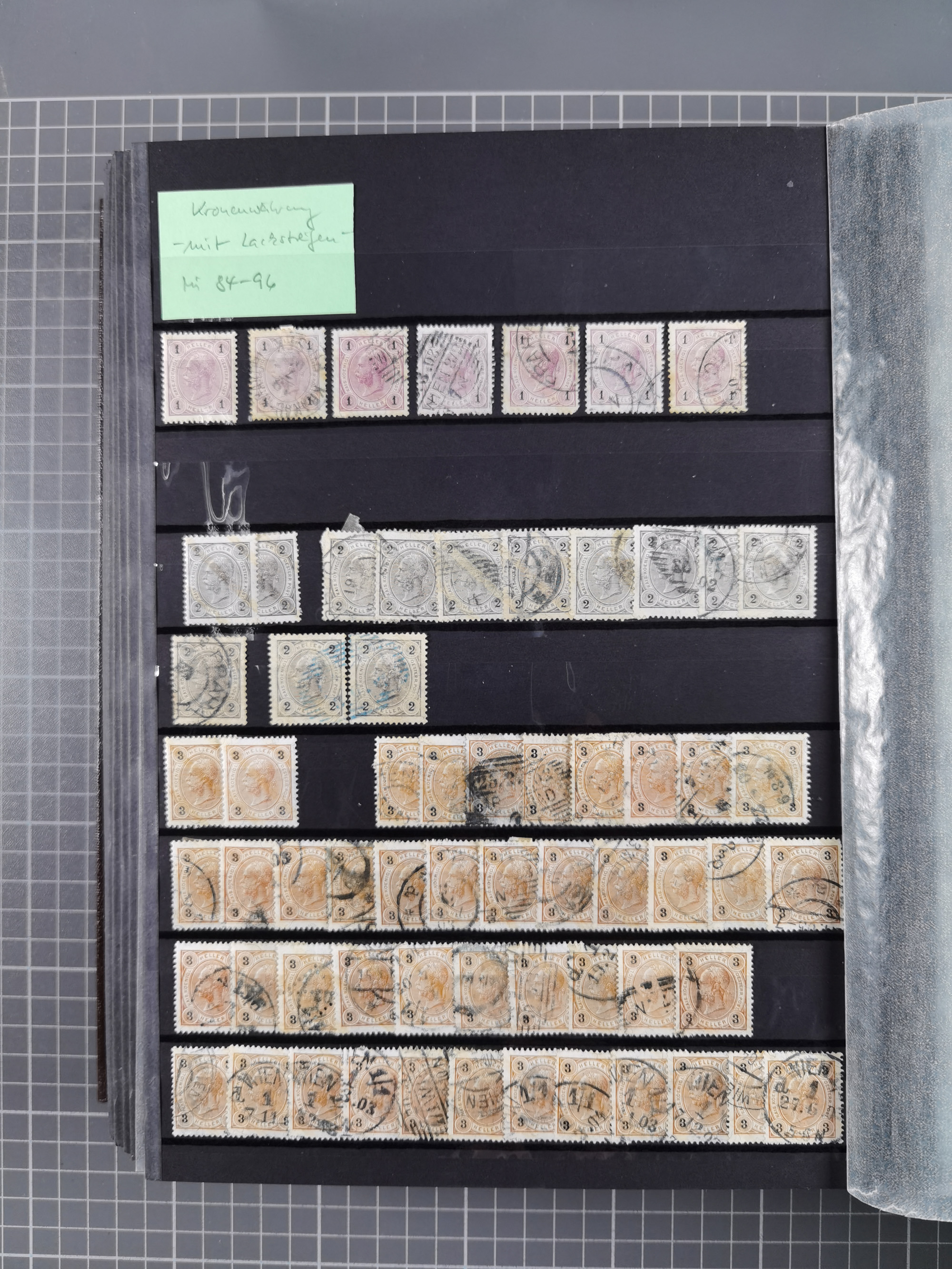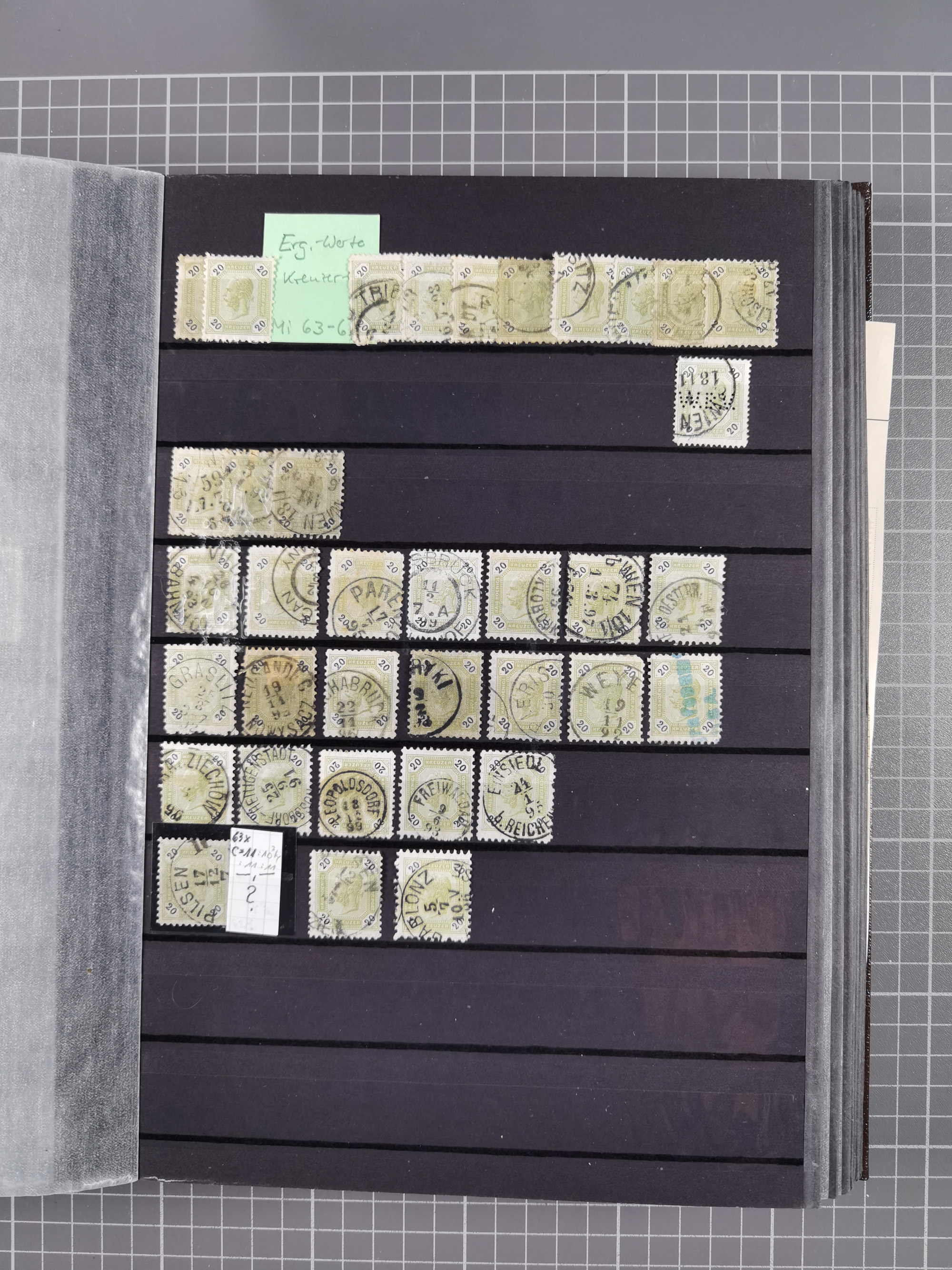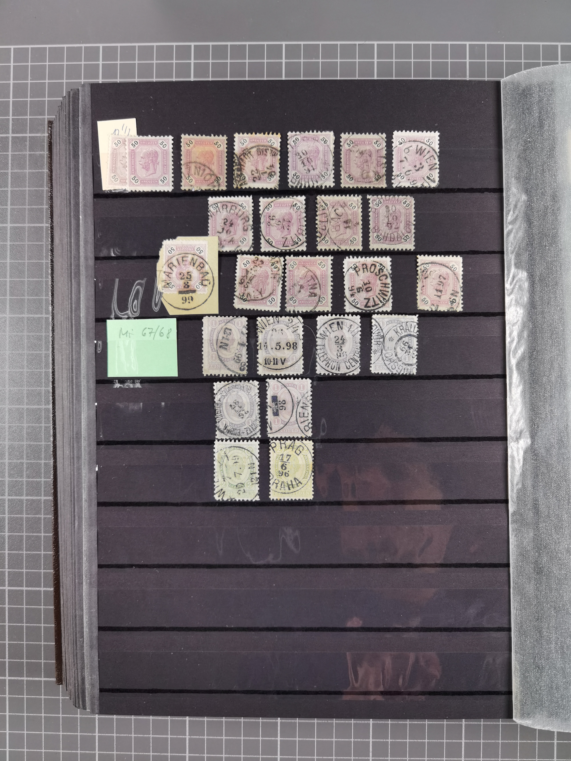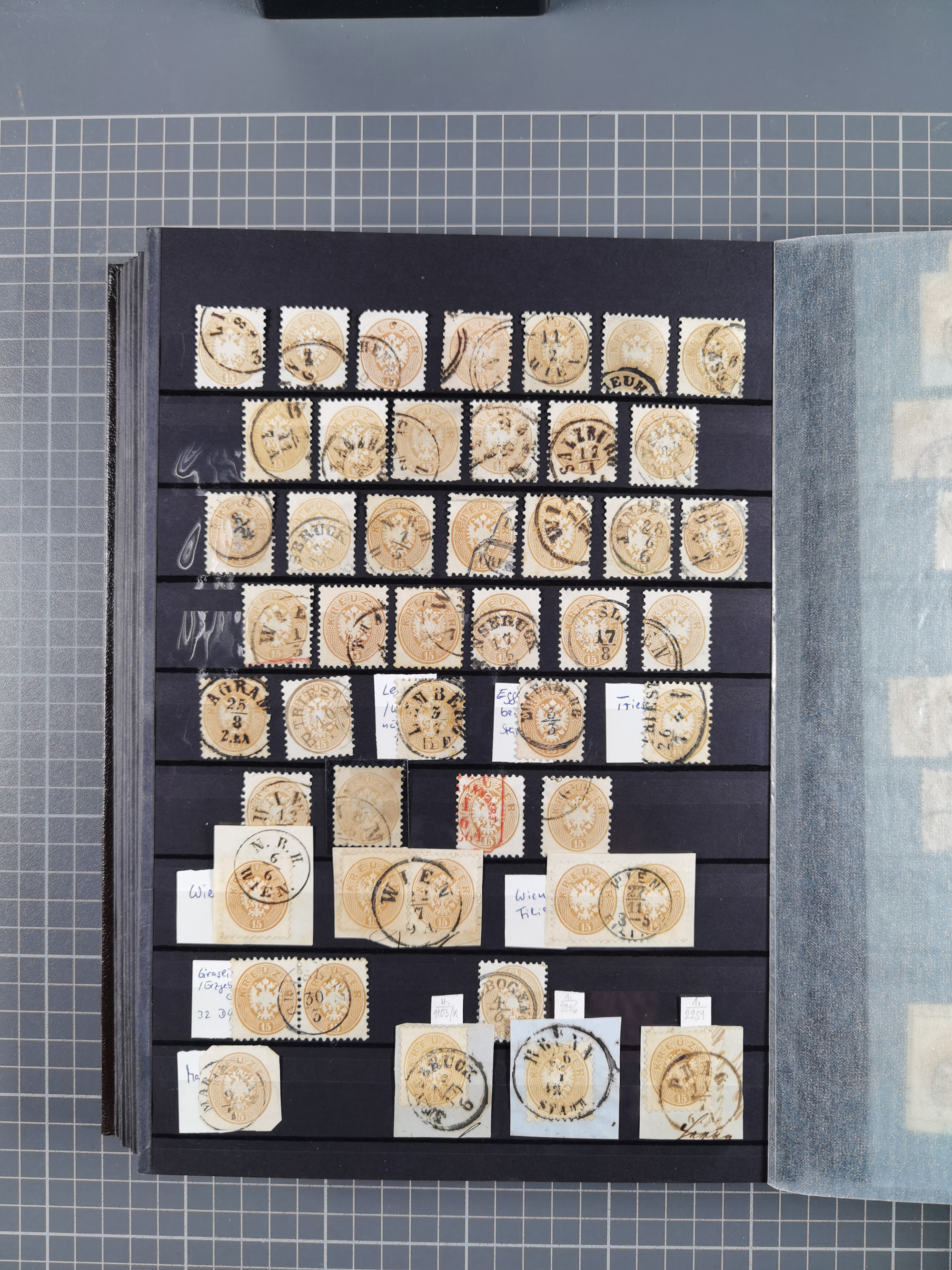 1883/90 (ca.), große aufgezogene Sammlung “Stempeltypen auf den Ausgaben 1883/90” mit über 320 Briefen und Karten, viele lose Marken und Briefstücke mit meist klaren Abstempelungen, dabei u.a. Langstempeln mit “KORSZÓW” in blau auf Briefstück, Ovalstempel “K.K. POSTAMT WOLFSBERG” auf 5 Kr. auf Brief nach Graz, “DNESPEK” auf Briefstück, etc., schöne Auswahl an Fingerhutstempeln, einige R-Briefe. Ein interessantes Objekt, sauber sortiert auf selbst gestalteten Albenblättern, in 4 Alben