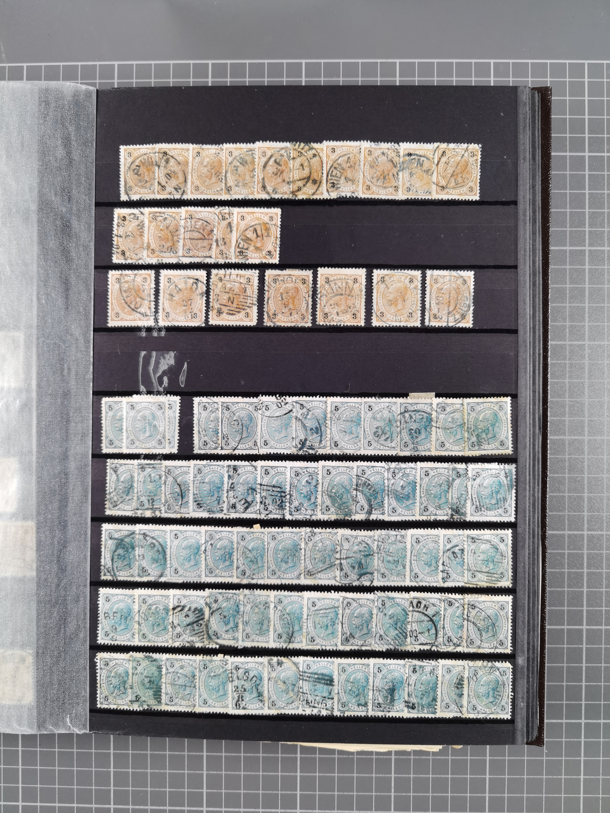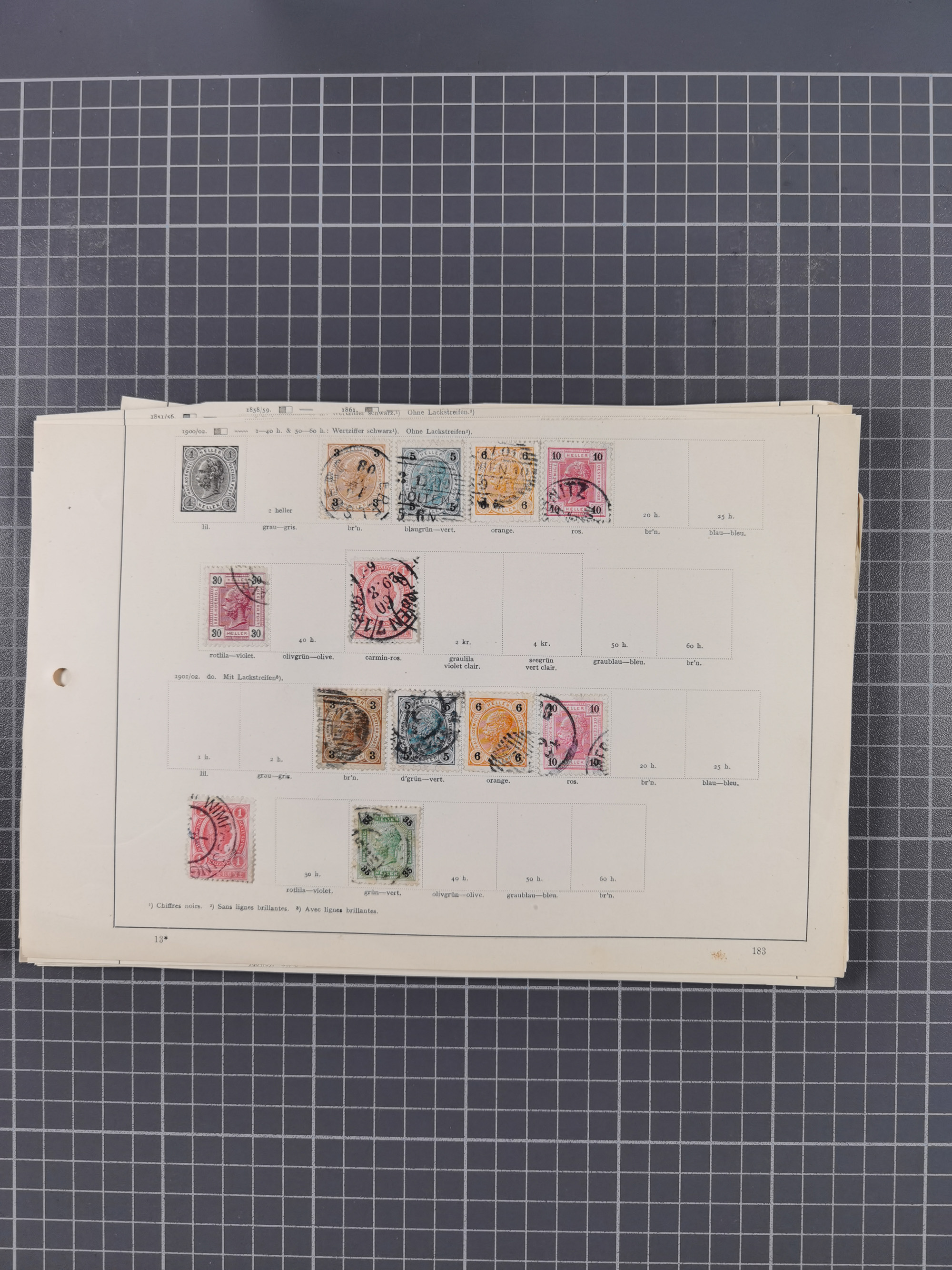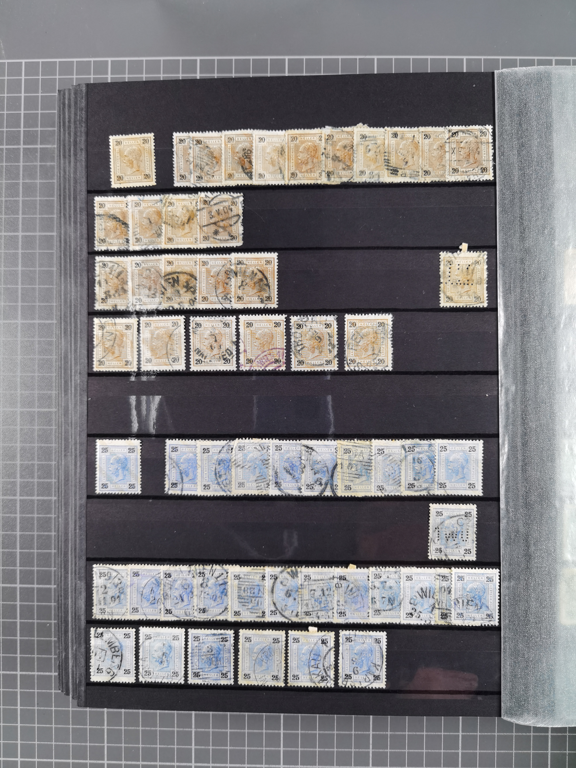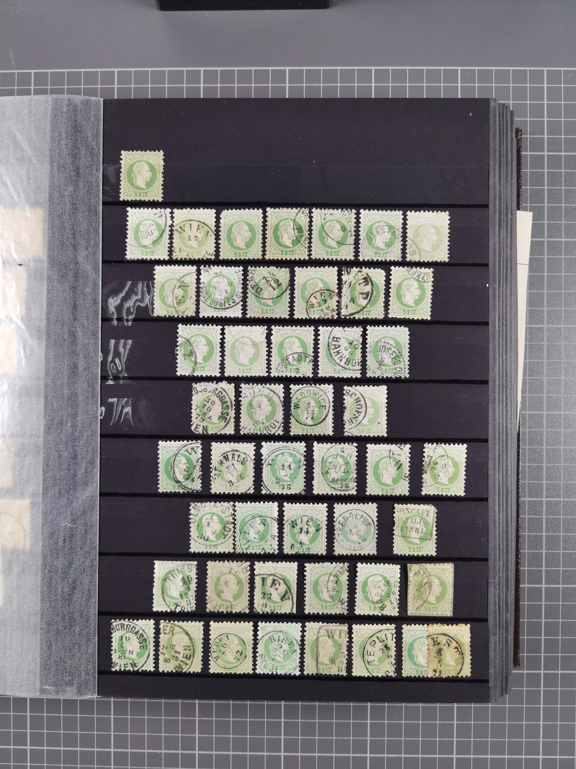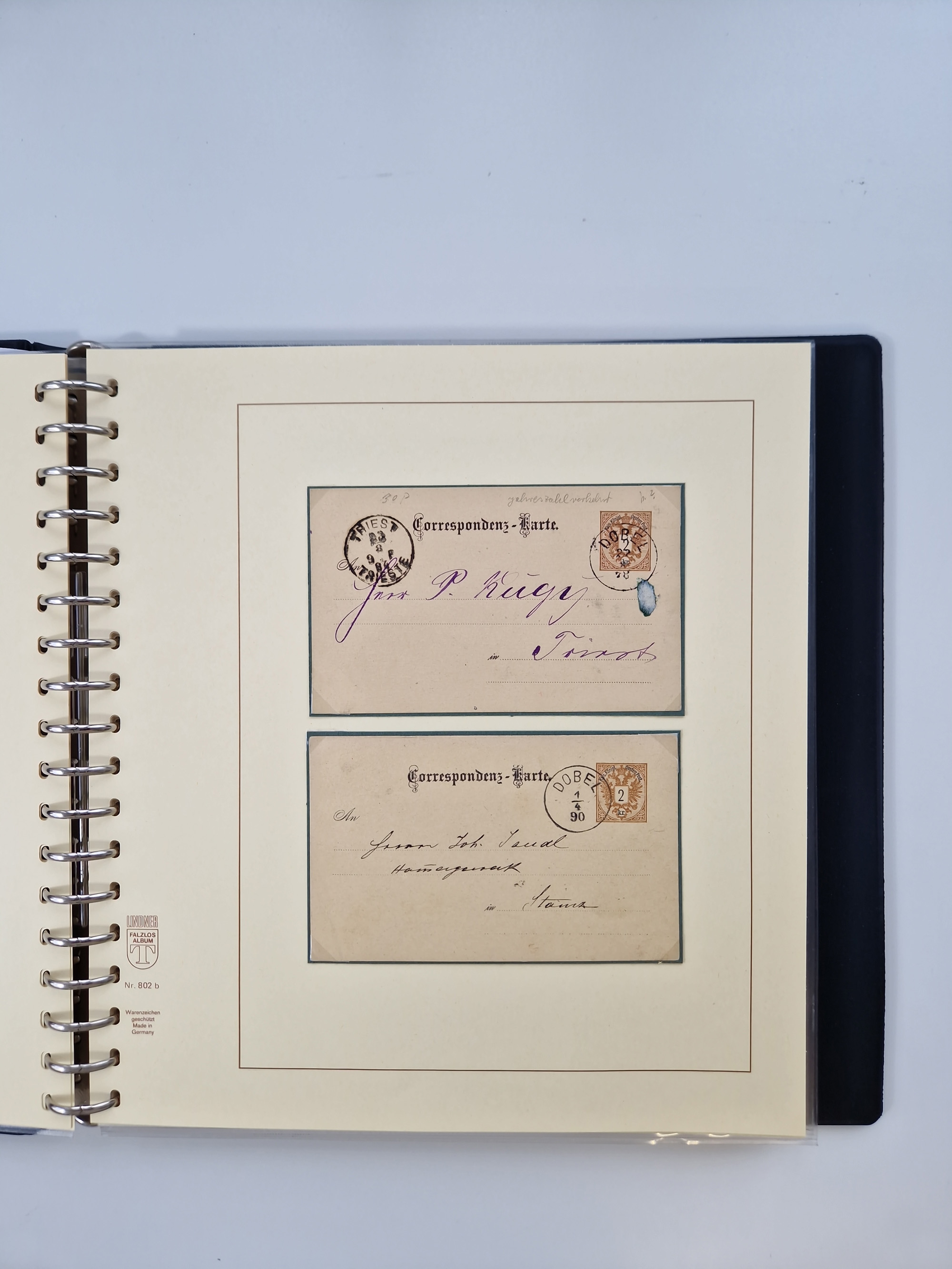 1883/90 (ca.), große aufgezogene Sammlung “Stempeltypen auf den Ausgaben 1883/90” mit über 320 Briefen und Karten, viele lose Marken und Briefstücke mit meist klaren Abstempelungen, dabei u.a. Langstempeln mit “KORSZÓW” in blau auf Briefstück, Ovalstempel “K.K. POSTAMT WOLFSBERG” auf 5 Kr. auf Brief nach Graz, “DNESPEK” auf Briefstück, etc., schöne Auswahl an Fingerhutstempeln, einige R-Briefe. Ein interessantes Objekt, sauber sortiert auf selbst gestalteten Albenblättern, in 4 Alben