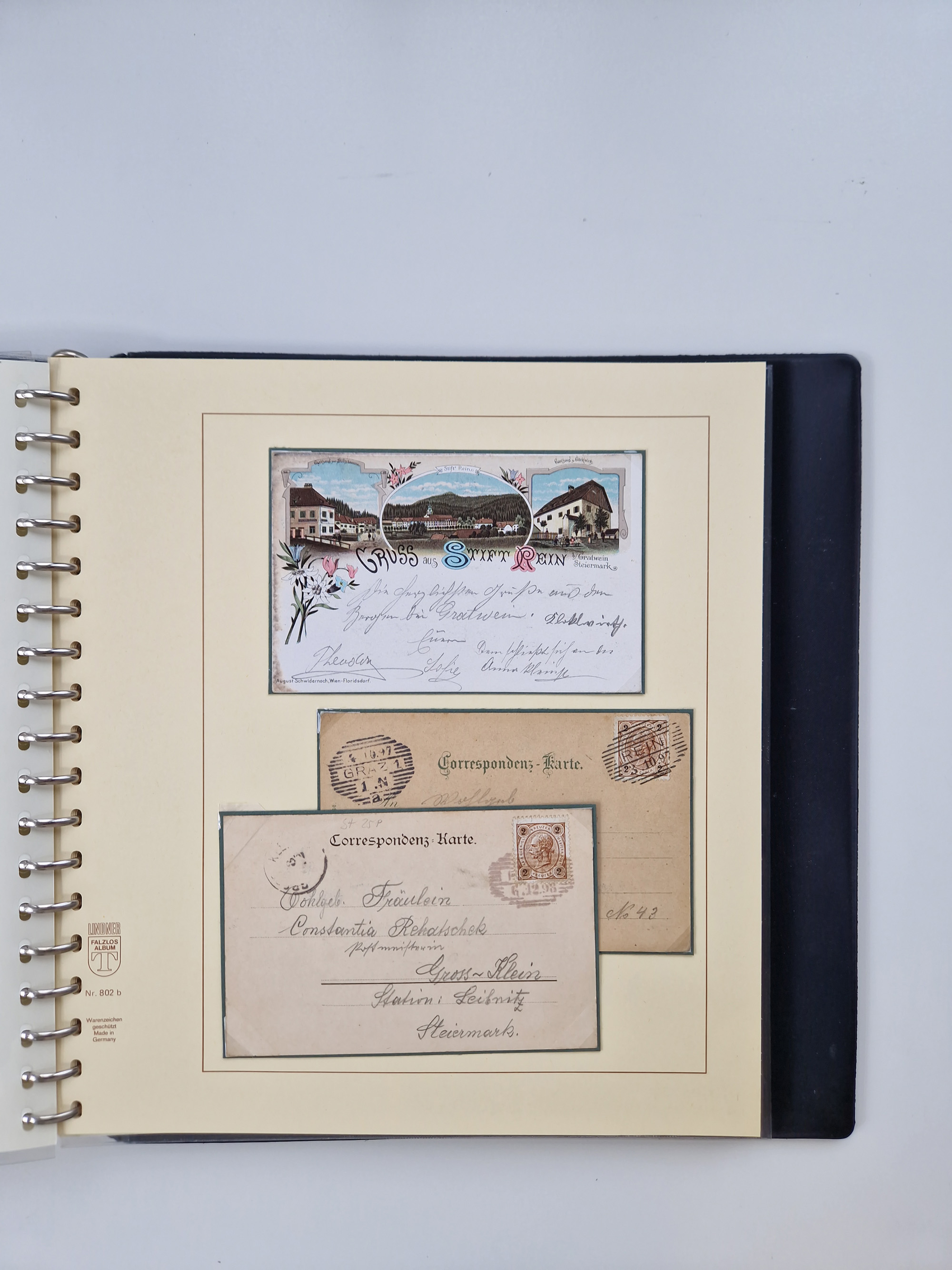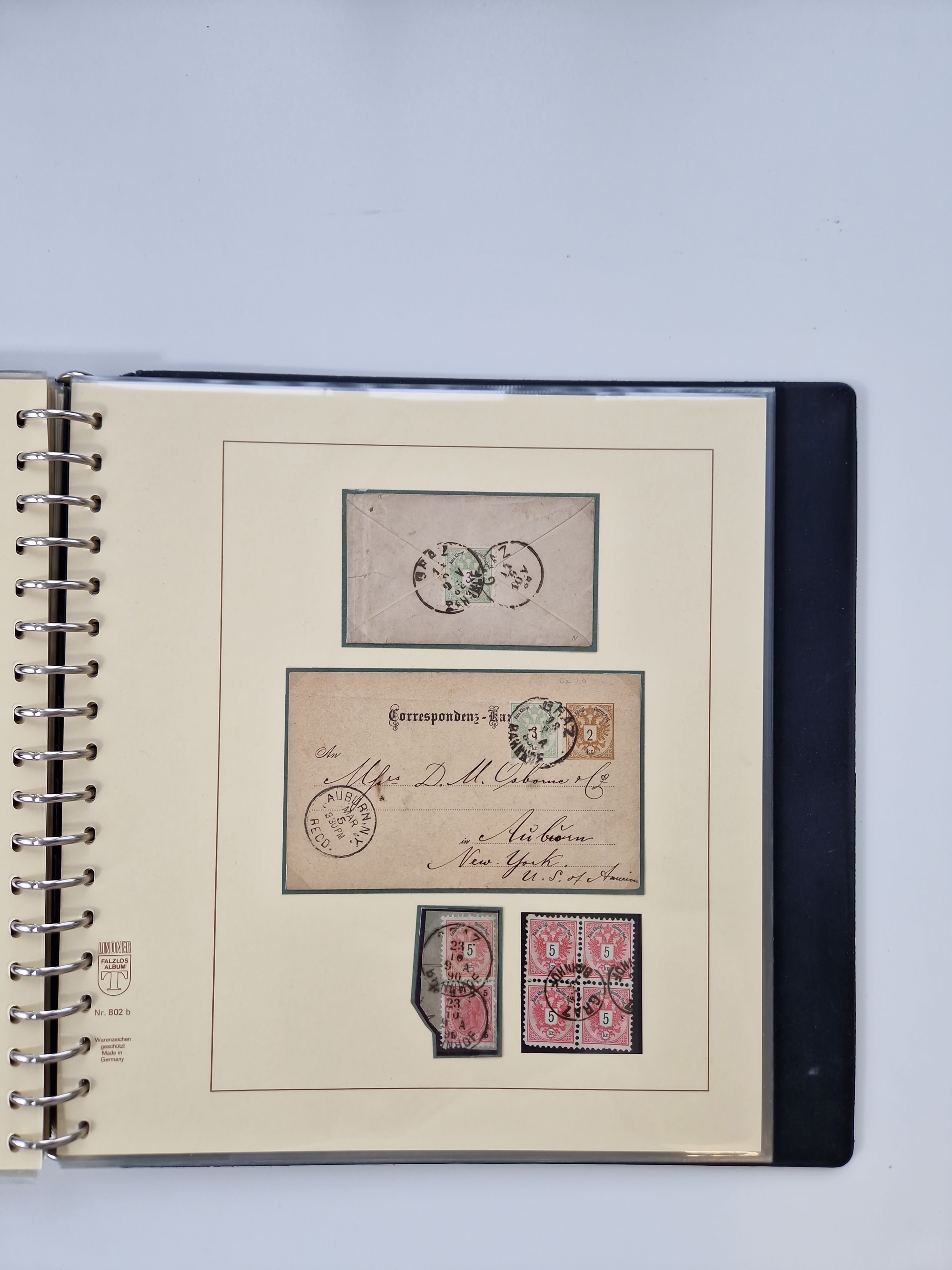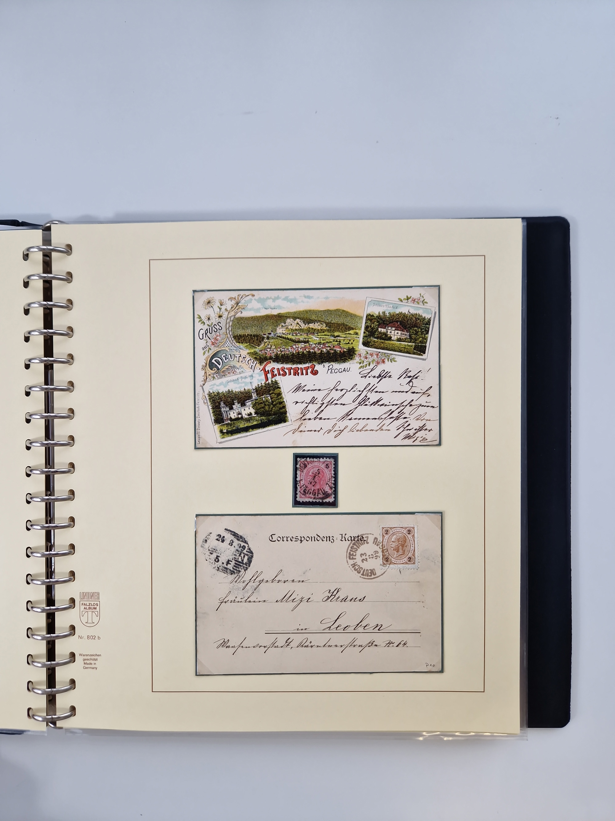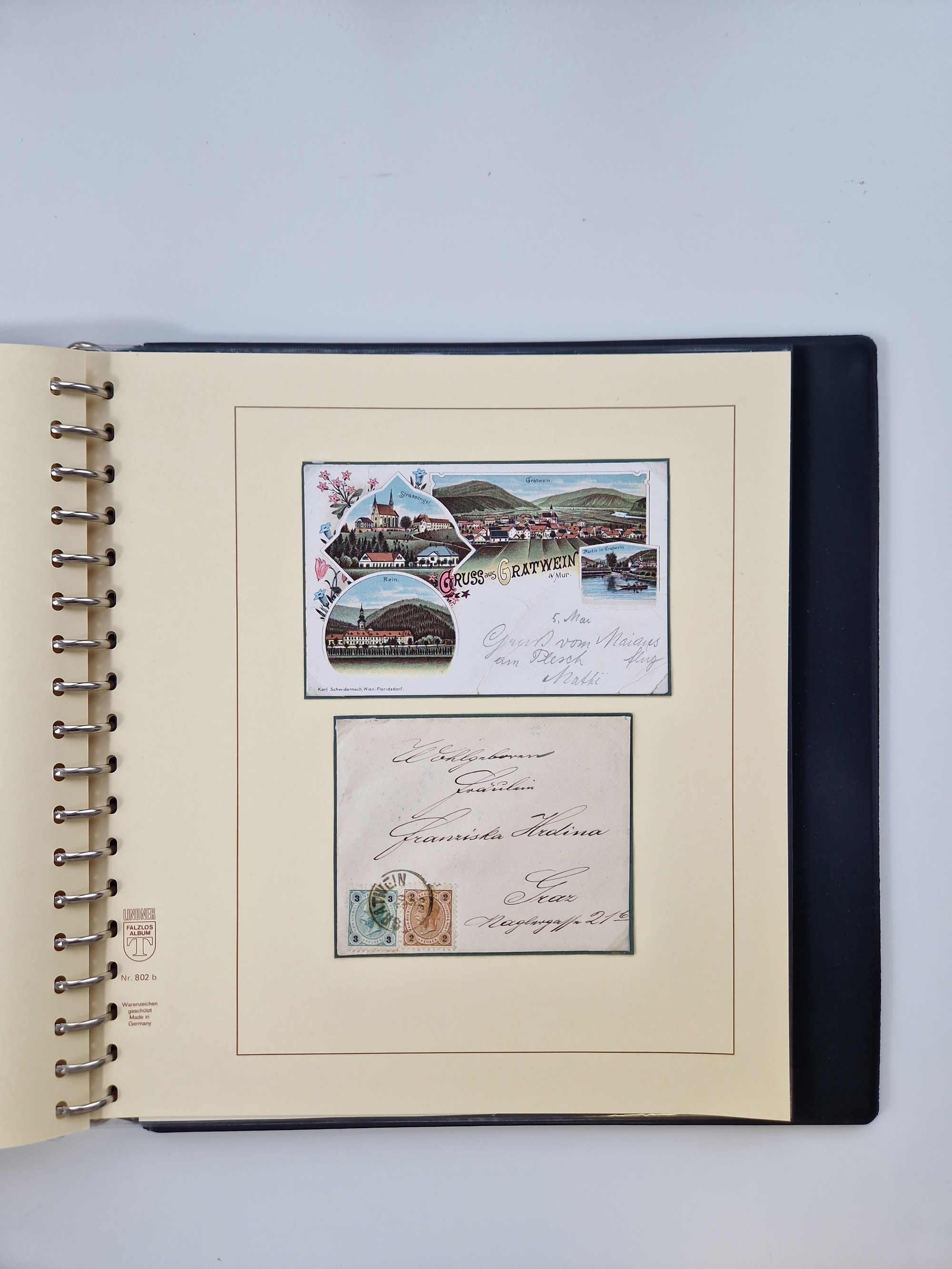 1850/1919 (ca.), zahlreiche aufgezogene Heimat-Sammlung “GRAZ” und Umgebung Andritz bis Zettling, mit über 220 Briefen und Karten, besseren Einzel- und Mehrfachfrankaturen, Buntfrankaturen sowie R-Briefen, Ansichtkarten mit Lithos und weiteren Besonderheiten, Schwerpunkt bei den Ausgaben 1883 bis 1899, dabei u.a. Destination Finnland, 1897 R-Brief auf “BRUXELLES” nach Graz weitergeleitet mit Mischfrankatur, ferner lose Marken und Briefstücke ab Ausgabe 1850 mit meist klaren Stempel-Abschlägen, “PUNTIGEN” auf 6 Kr. (Müller.-Nr. 2276a, 150 Punkte), etc., dabei auch Postscheine, Postanweisungen, Paketkarten oder Recepissen. Ein außerordentlich reichaltiges und interessantes Objekt, zusammen in 4 Alben