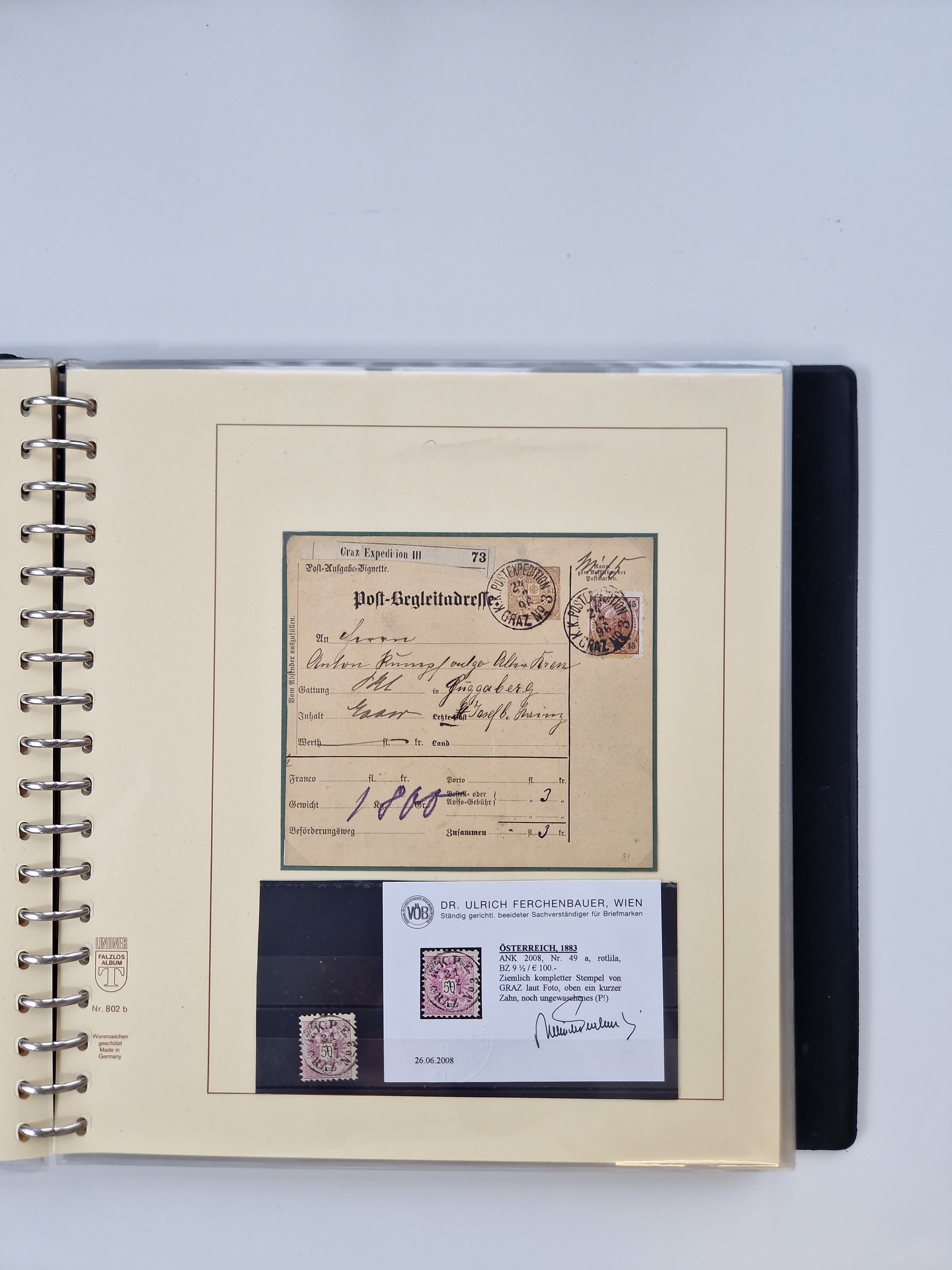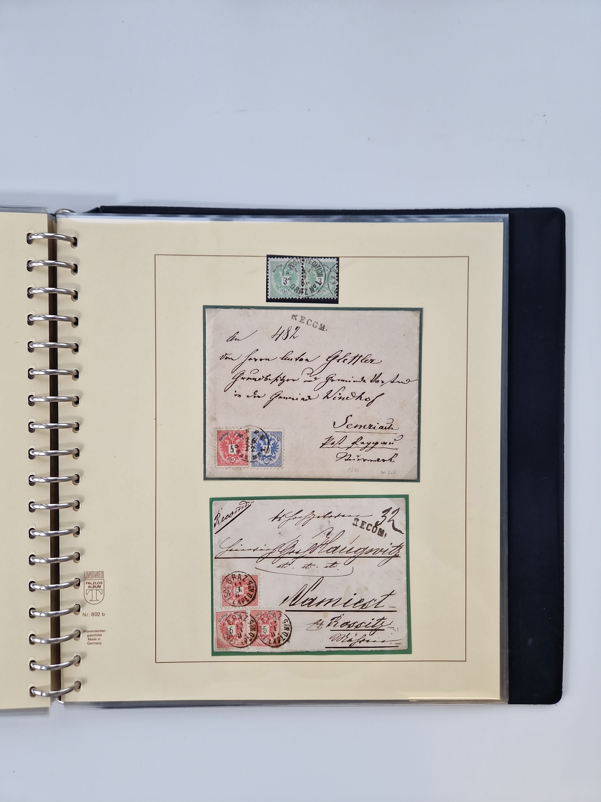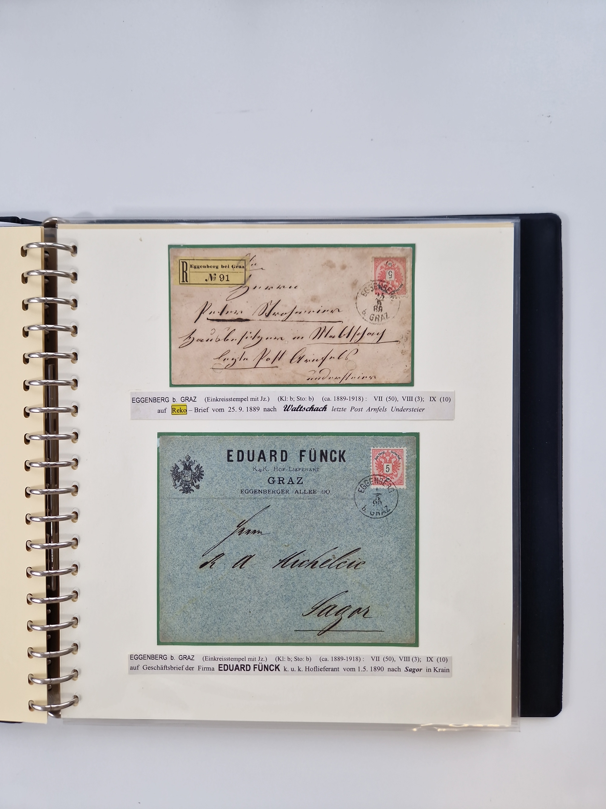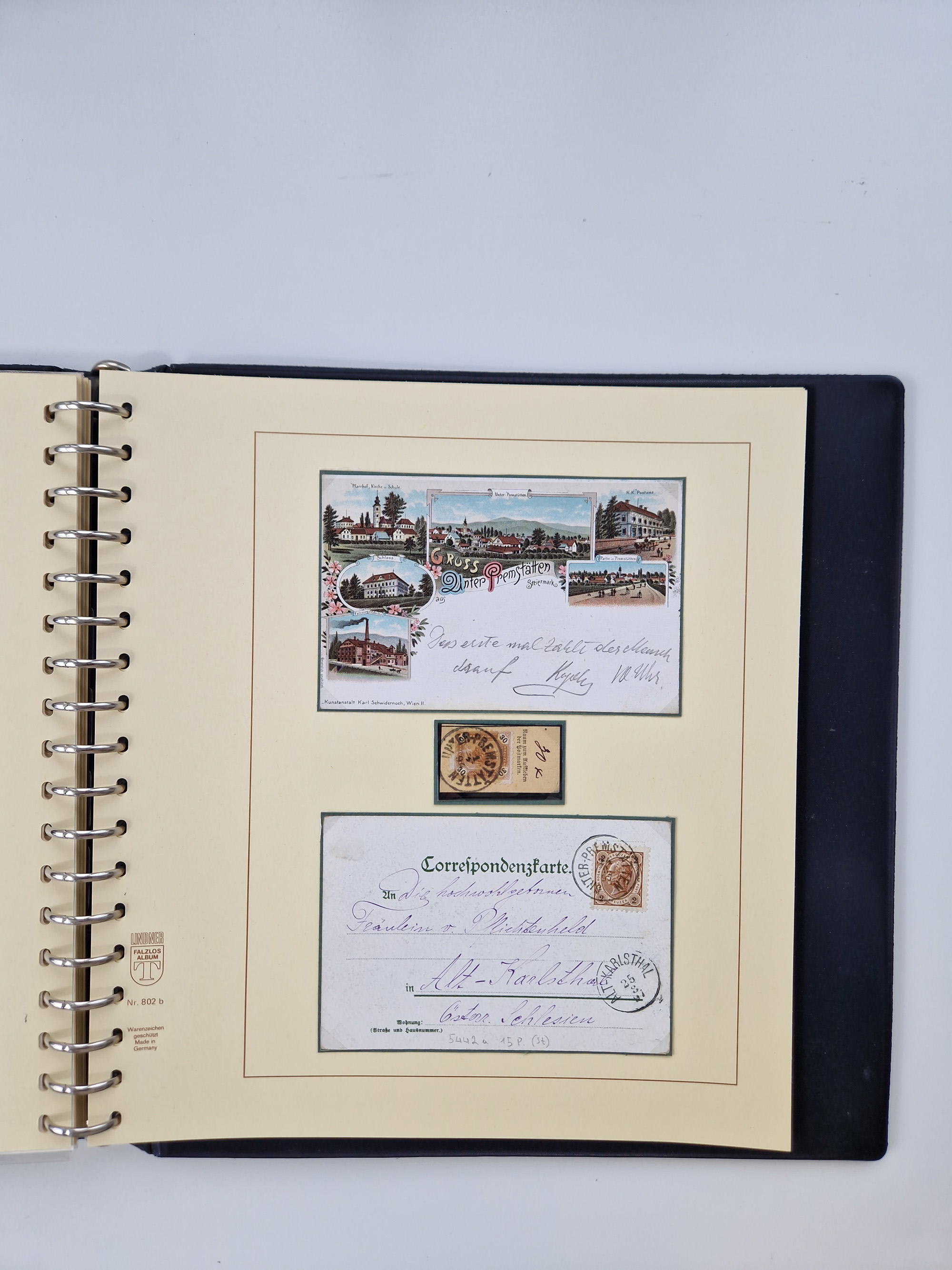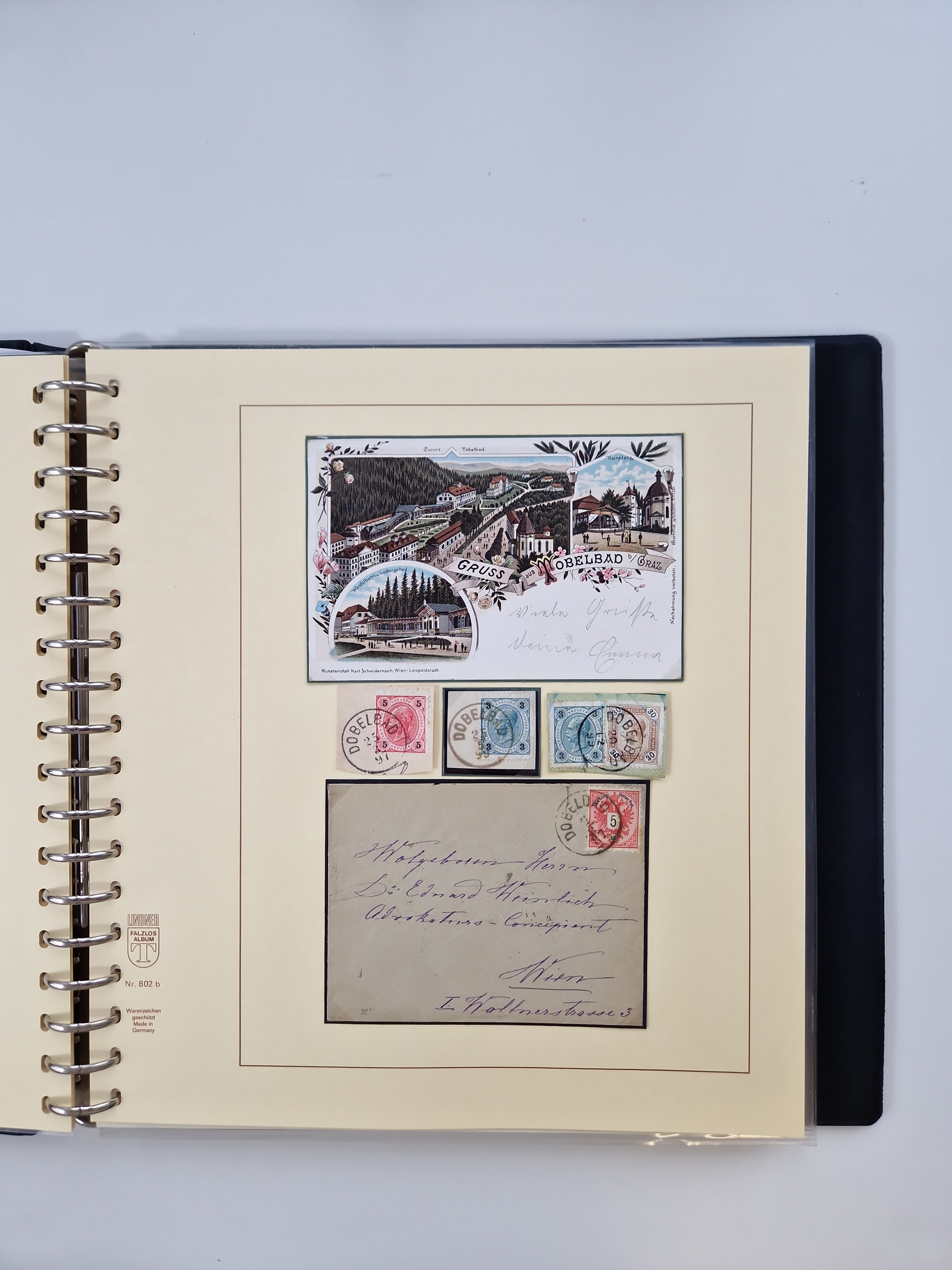 1850/1919 (ca.), zahlreiche aufgezogene Heimat-Sammlung “GRAZ” und Umgebung Andritz bis Zettling, mit über 220 Briefen und Karten, besseren Einzel- und Mehrfachfrankaturen, Buntfrankaturen sowie R-Briefen, Ansichtkarten mit Lithos und weiteren Besonderheiten, Schwerpunkt bei den Ausgaben 1883 bis 1899, dabei u.a. Destination Finnland, 1897 R-Brief auf “BRUXELLES” nach Graz weitergeleitet mit Mischfrankatur, ferner lose Marken und Briefstücke ab Ausgabe 1850 mit meist klaren Stempel-Abschlägen, “PUNTIGEN” auf 6 Kr. (Müller.-Nr. 2276a, 150 Punkte), etc., dabei auch Postscheine, Postanweisungen, Paketkarten oder Recepissen. Ein außerordentlich reichaltiges und interessantes Objekt, zusammen in 4 Alben