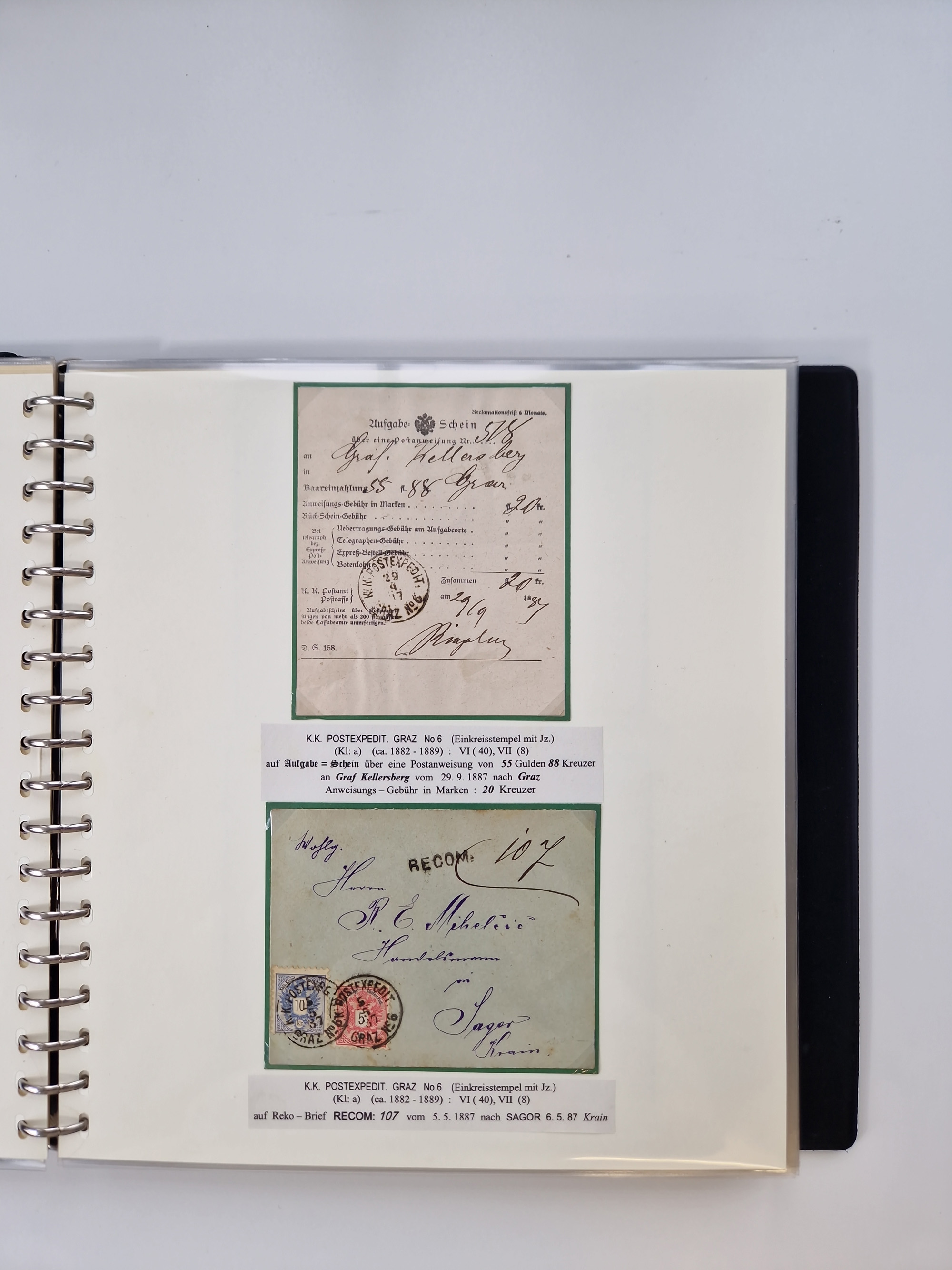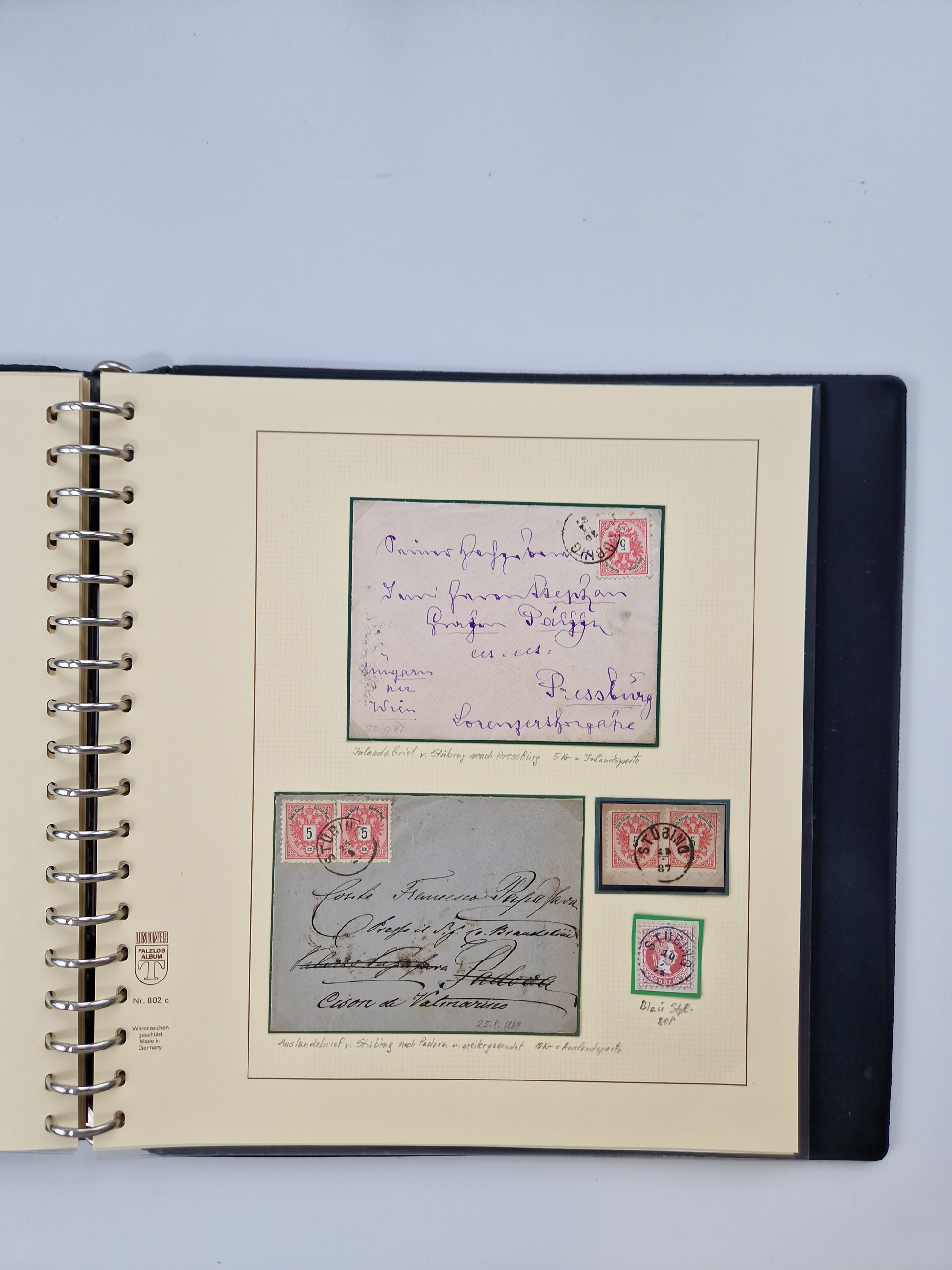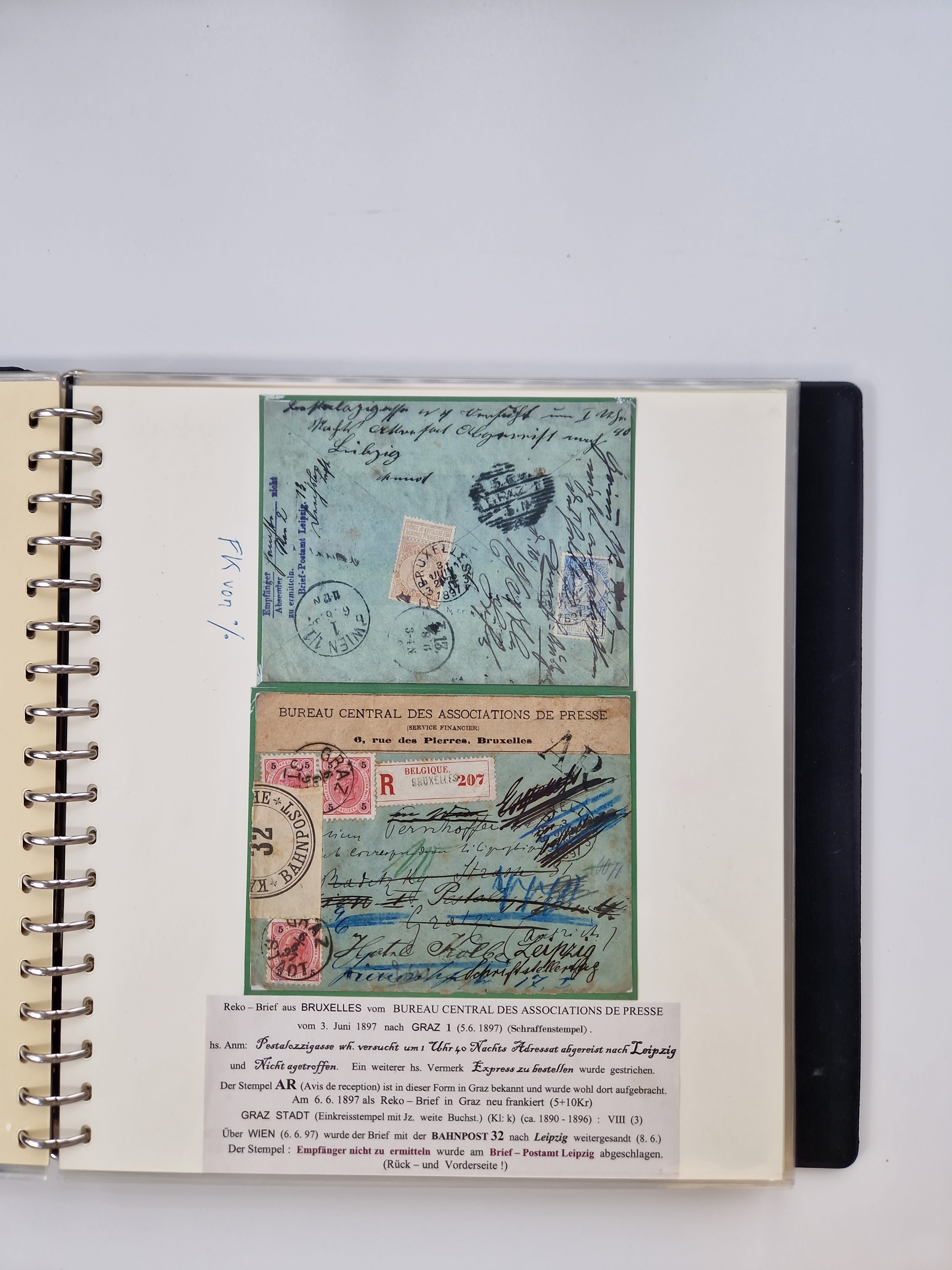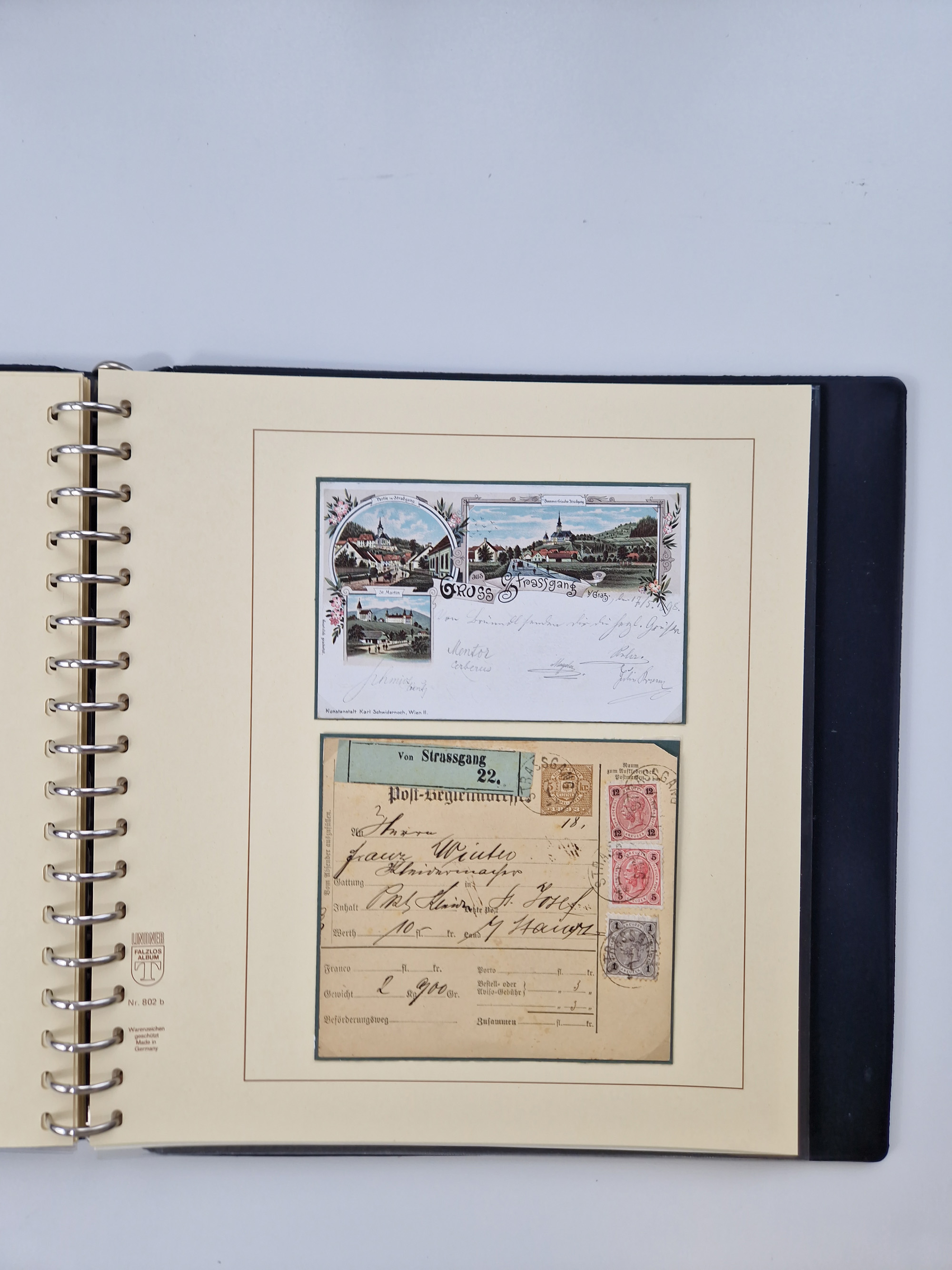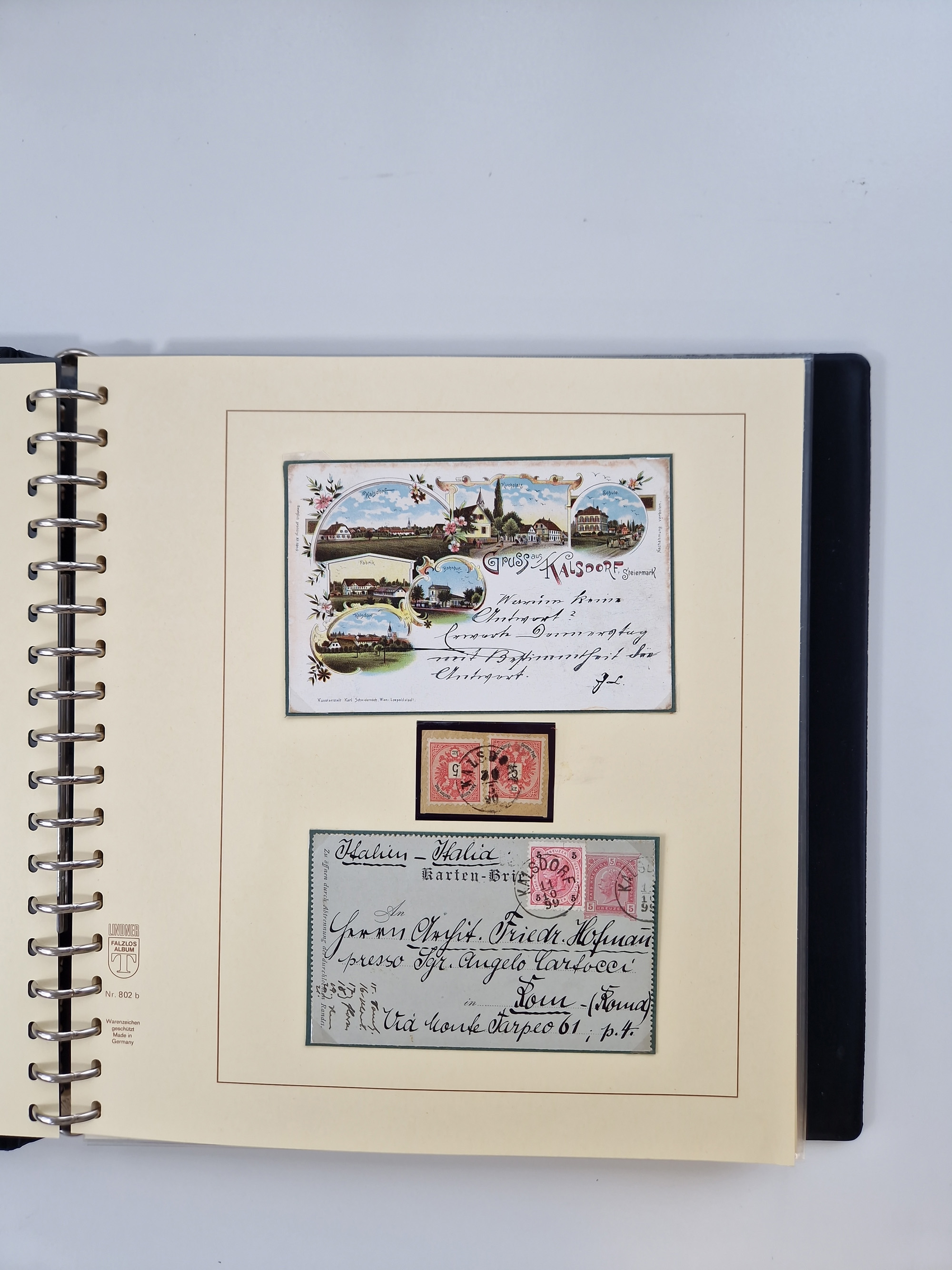 1850/1919 (ca.), zahlreiche aufgezogene Heimat-Sammlung “GRAZ” und Umgebung Andritz bis Zettling, mit über 220 Briefen und Karten, besseren Einzel- und Mehrfachfrankaturen, Buntfrankaturen sowie R-Briefen, Ansichtkarten mit Lithos und weiteren Besonderheiten, Schwerpunkt bei den Ausgaben 1883 bis 1899, dabei u.a. Destination Finnland, 1897 R-Brief auf “BRUXELLES” nach Graz weitergeleitet mit Mischfrankatur, ferner lose Marken und Briefstücke ab Ausgabe 1850 mit meist klaren Stempel-Abschlägen, “PUNTIGEN” auf 6 Kr. (Müller.-Nr. 2276a, 150 Punkte), etc., dabei auch Postscheine, Postanweisungen, Paketkarten oder Recepissen. Ein außerordentlich reichaltiges und interessantes Objekt, zusammen in 4 Alben
