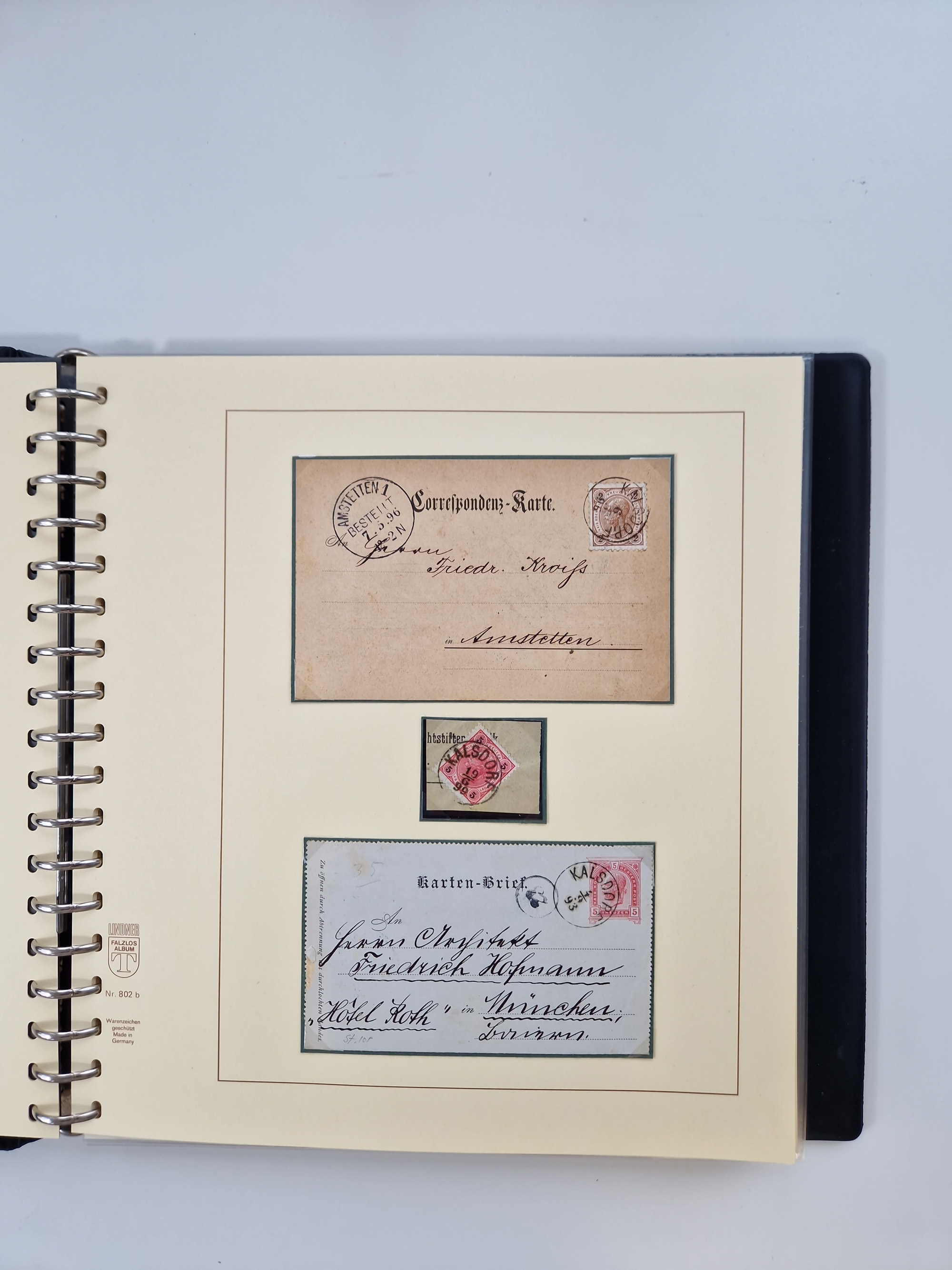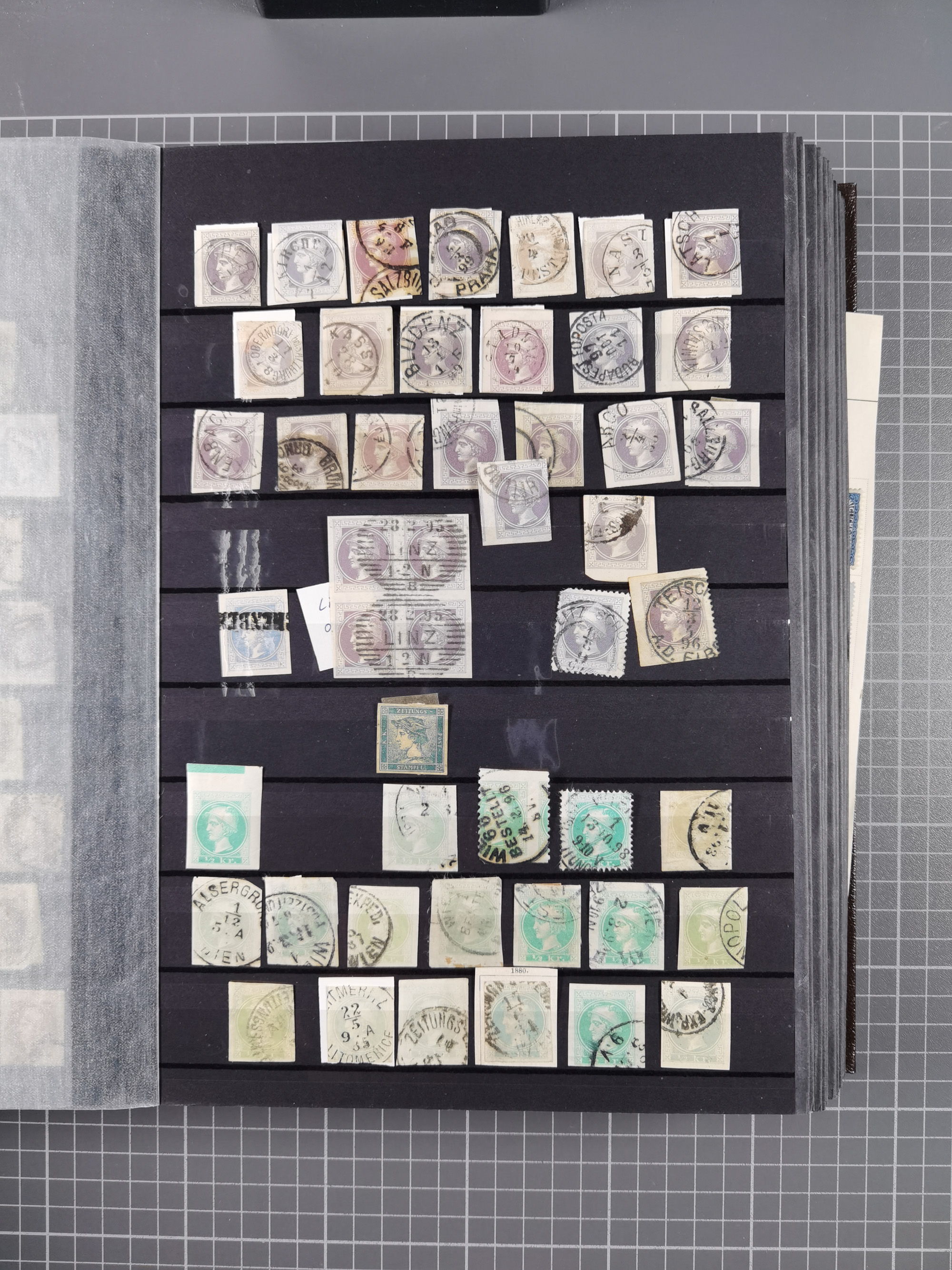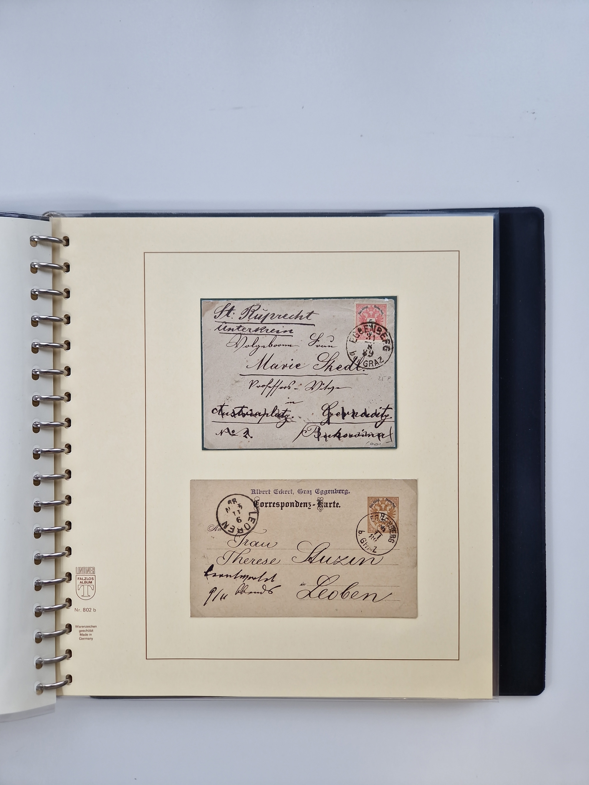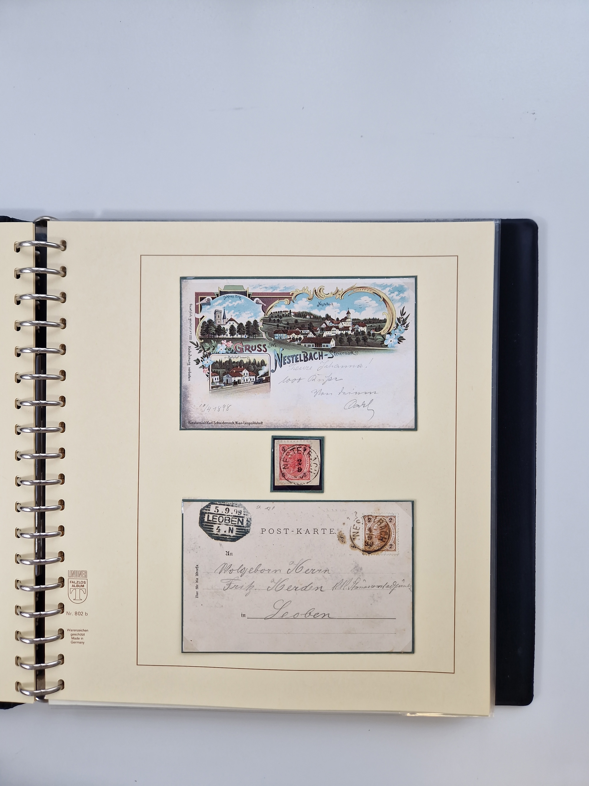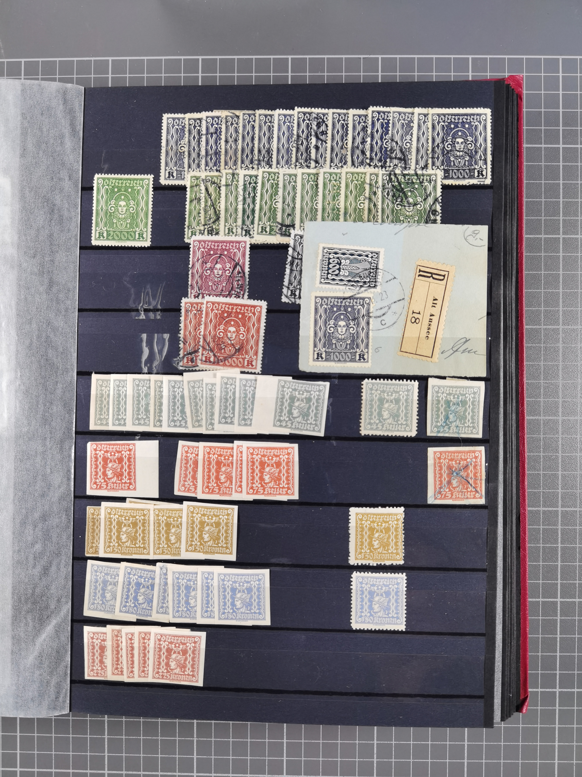 1850/1919 (ca.), zahlreiche aufgezogene Heimat-Sammlung “GRAZ” und Umgebung Andritz bis Zettling, mit über 220 Briefen und Karten, besseren Einzel- und Mehrfachfrankaturen, Buntfrankaturen sowie R-Briefen, Ansichtkarten mit Lithos und weiteren Besonderheiten, Schwerpunkt bei den Ausgaben 1883 bis 1899, dabei u.a. Destination Finnland, 1897 R-Brief auf “BRUXELLES” nach Graz weitergeleitet mit Mischfrankatur, ferner lose Marken und Briefstücke ab Ausgabe 1850 mit meist klaren Stempel-Abschlägen, “PUNTIGEN” auf 6 Kr. (Müller.-Nr. 2276a, 150 Punkte), etc., dabei auch Postscheine, Postanweisungen, Paketkarten oder Recepissen. Ein außerordentlich reichaltiges und interessantes Objekt, zusammen in 4 Alben