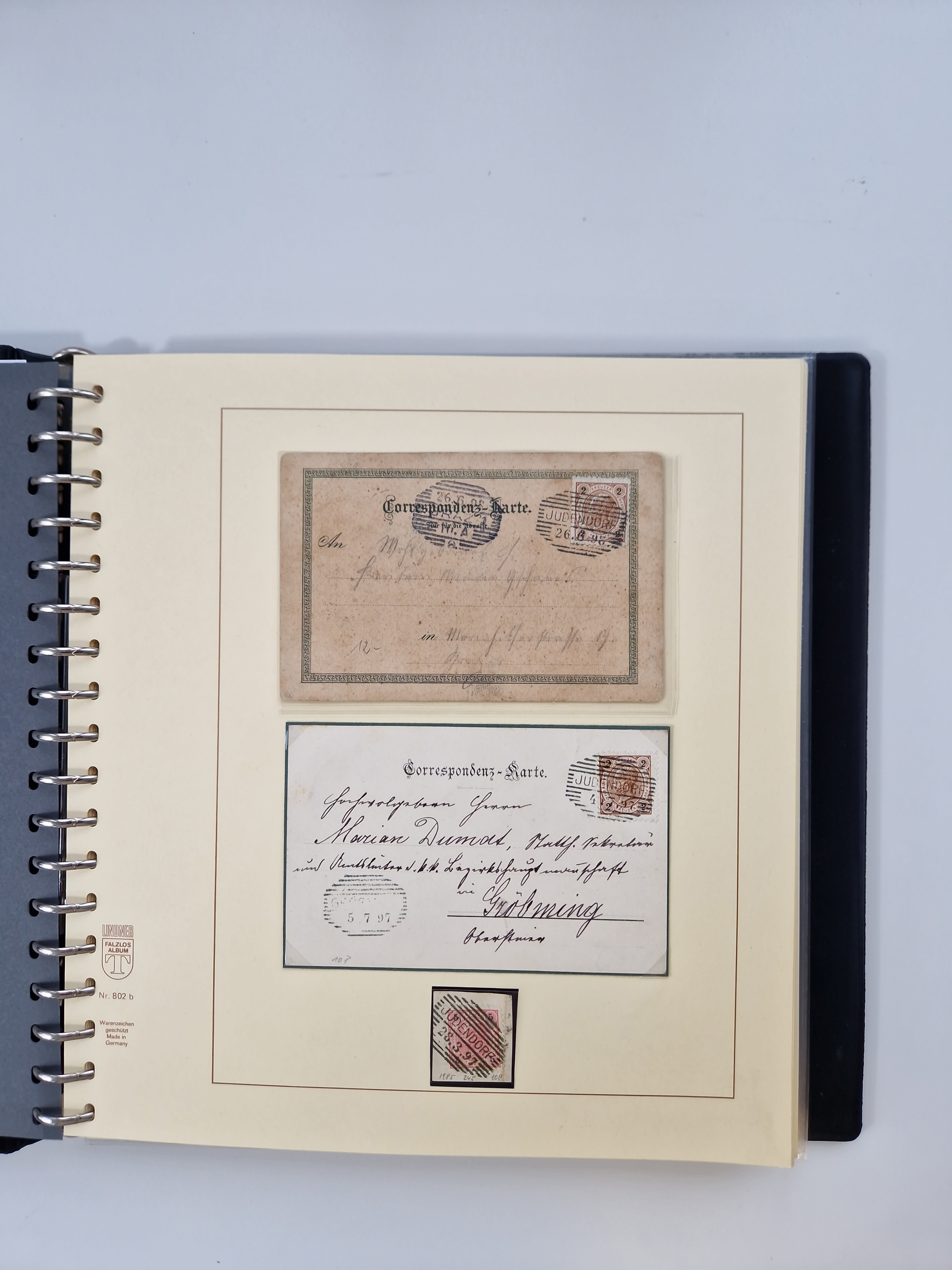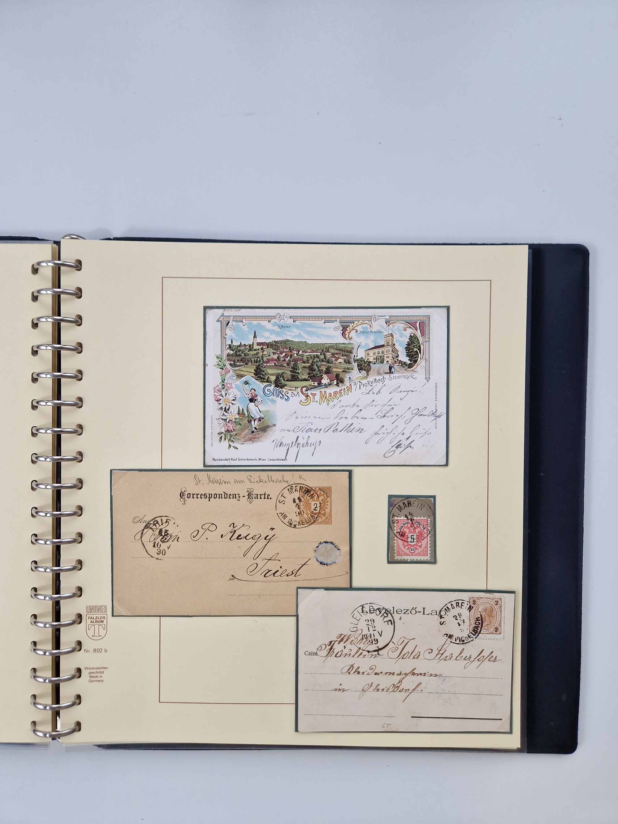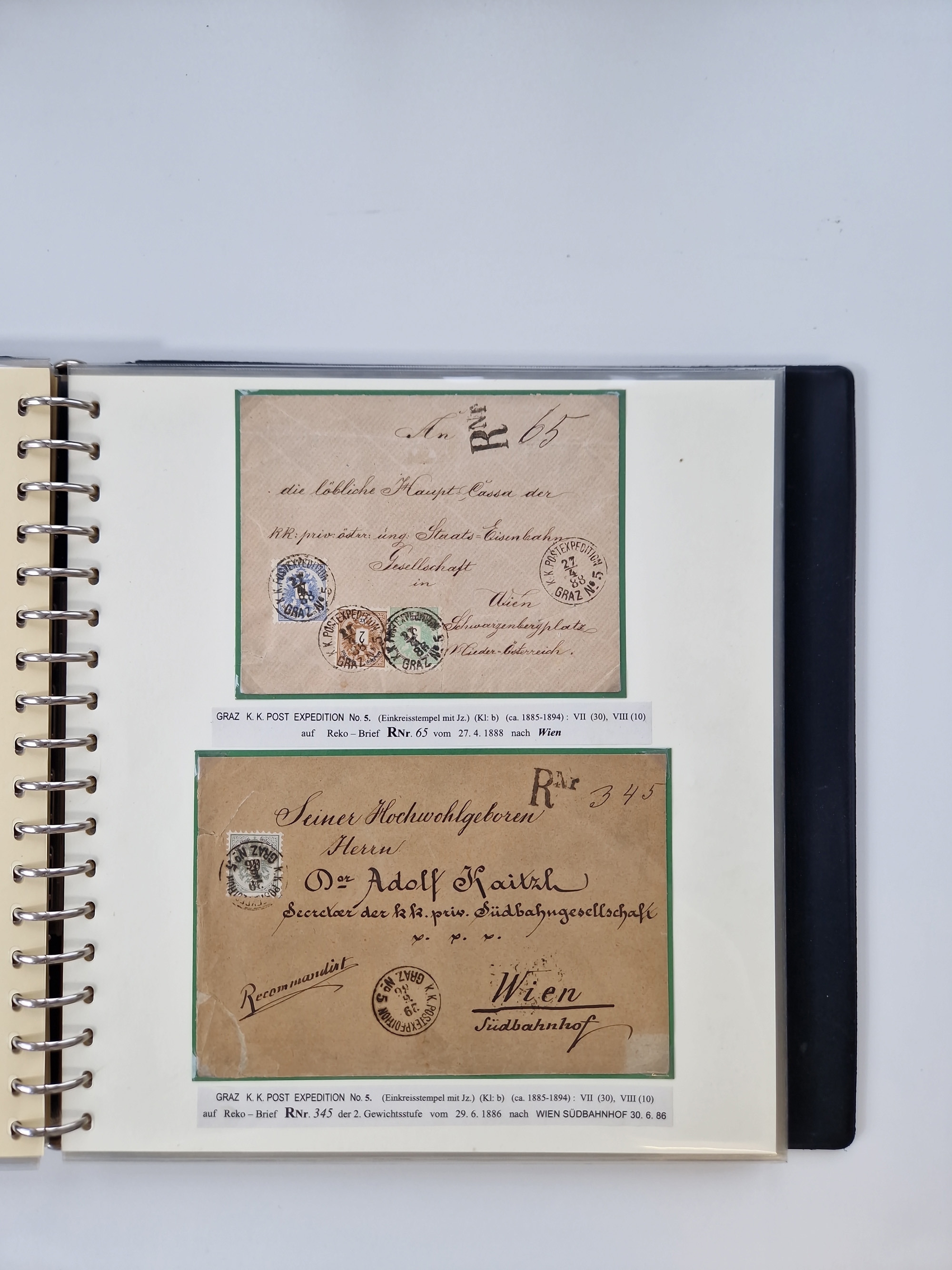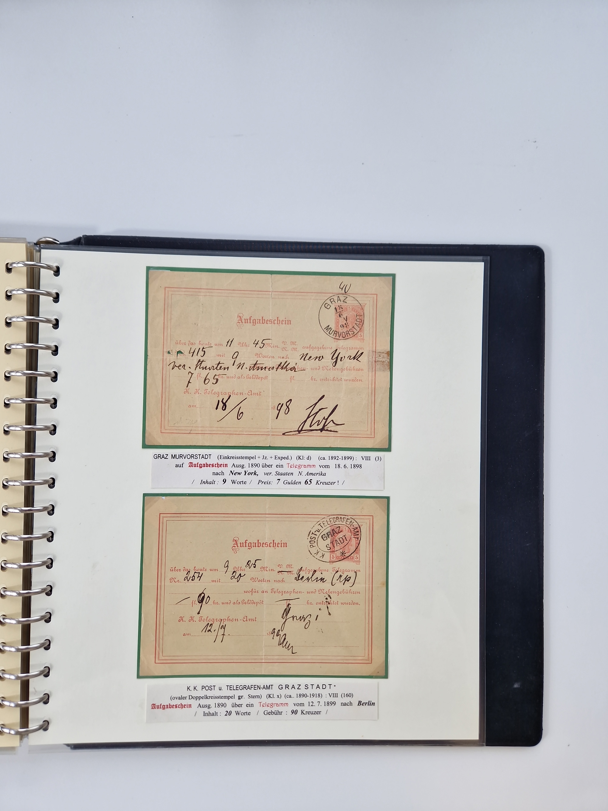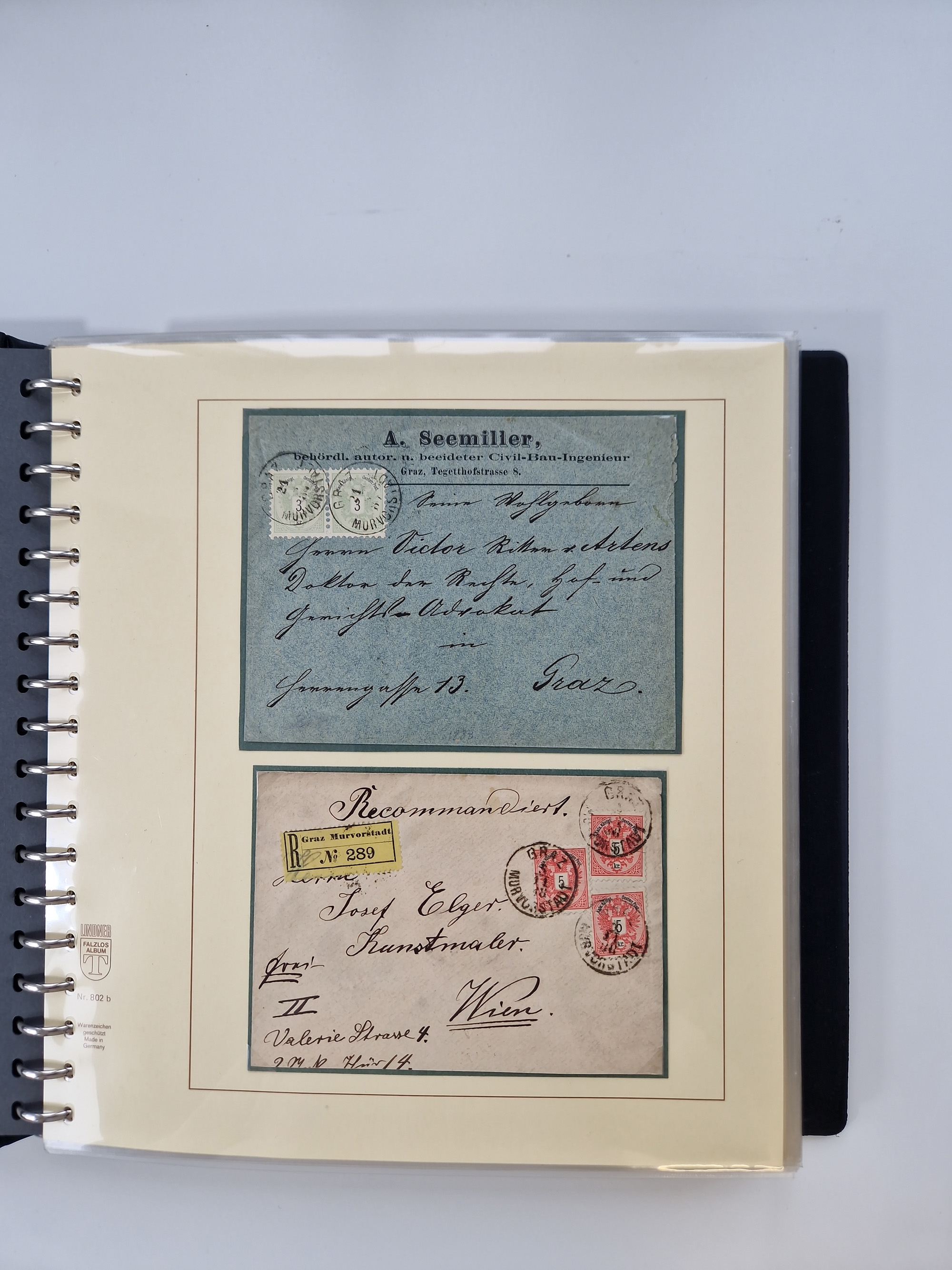 1850/1919 (ca.), zahlreiche aufgezogene Heimat-Sammlung “GRAZ” und Umgebung Andritz bis Zettling, mit über 220 Briefen und Karten, besseren Einzel- und Mehrfachfrankaturen, Buntfrankaturen sowie R-Briefen, Ansichtkarten mit Lithos und weiteren Besonderheiten, Schwerpunkt bei den Ausgaben 1883 bis 1899, dabei u.a. Destination Finnland, 1897 R-Brief auf “BRUXELLES” nach Graz weitergeleitet mit Mischfrankatur, ferner lose Marken und Briefstücke ab Ausgabe 1850 mit meist klaren Stempel-Abschlägen, “PUNTIGEN” auf 6 Kr. (Müller.-Nr. 2276a, 150 Punkte), etc., dabei auch Postscheine, Postanweisungen, Paketkarten oder Recepissen. Ein außerordentlich reichaltiges und interessantes Objekt, zusammen in 4 Alben