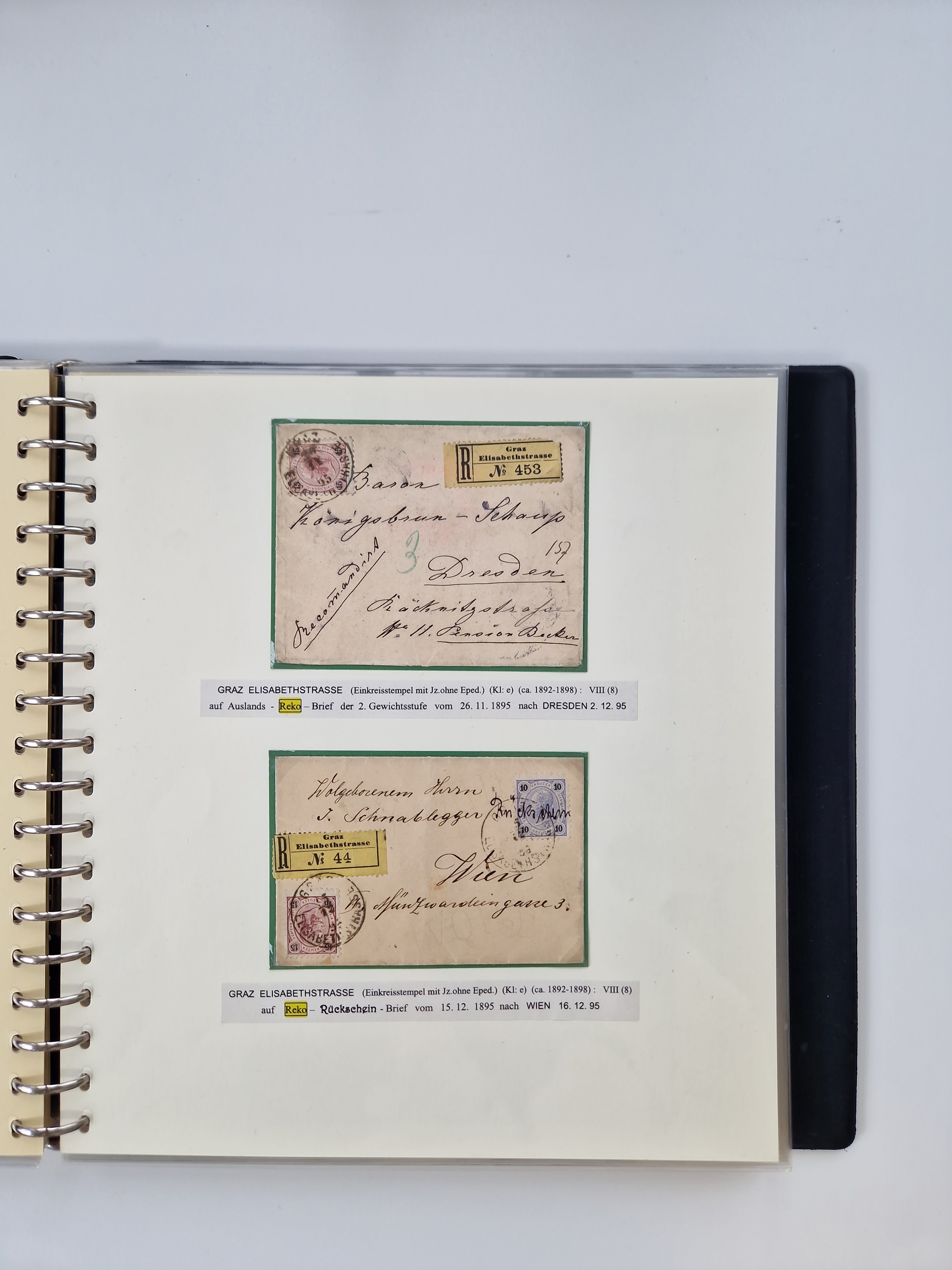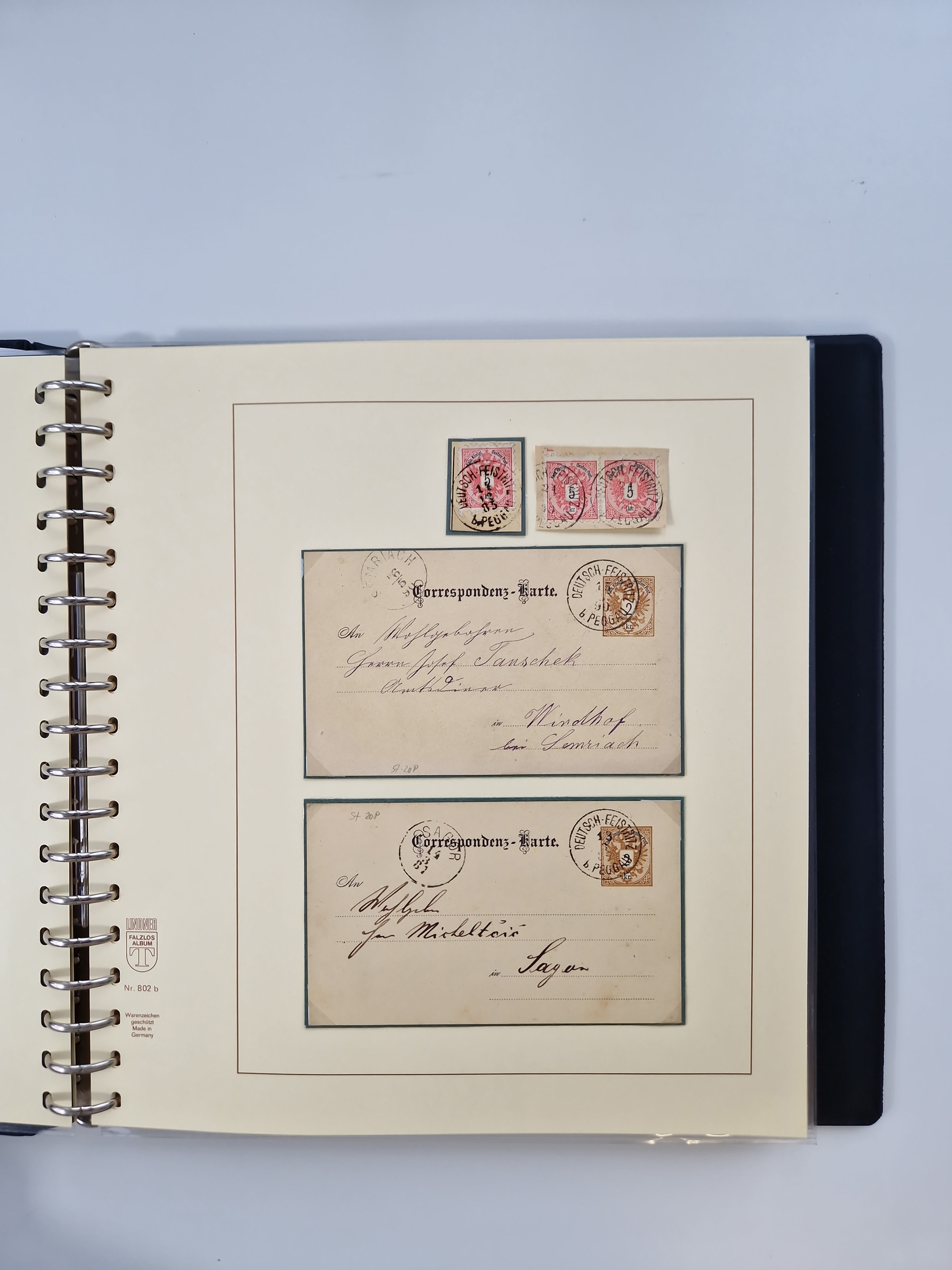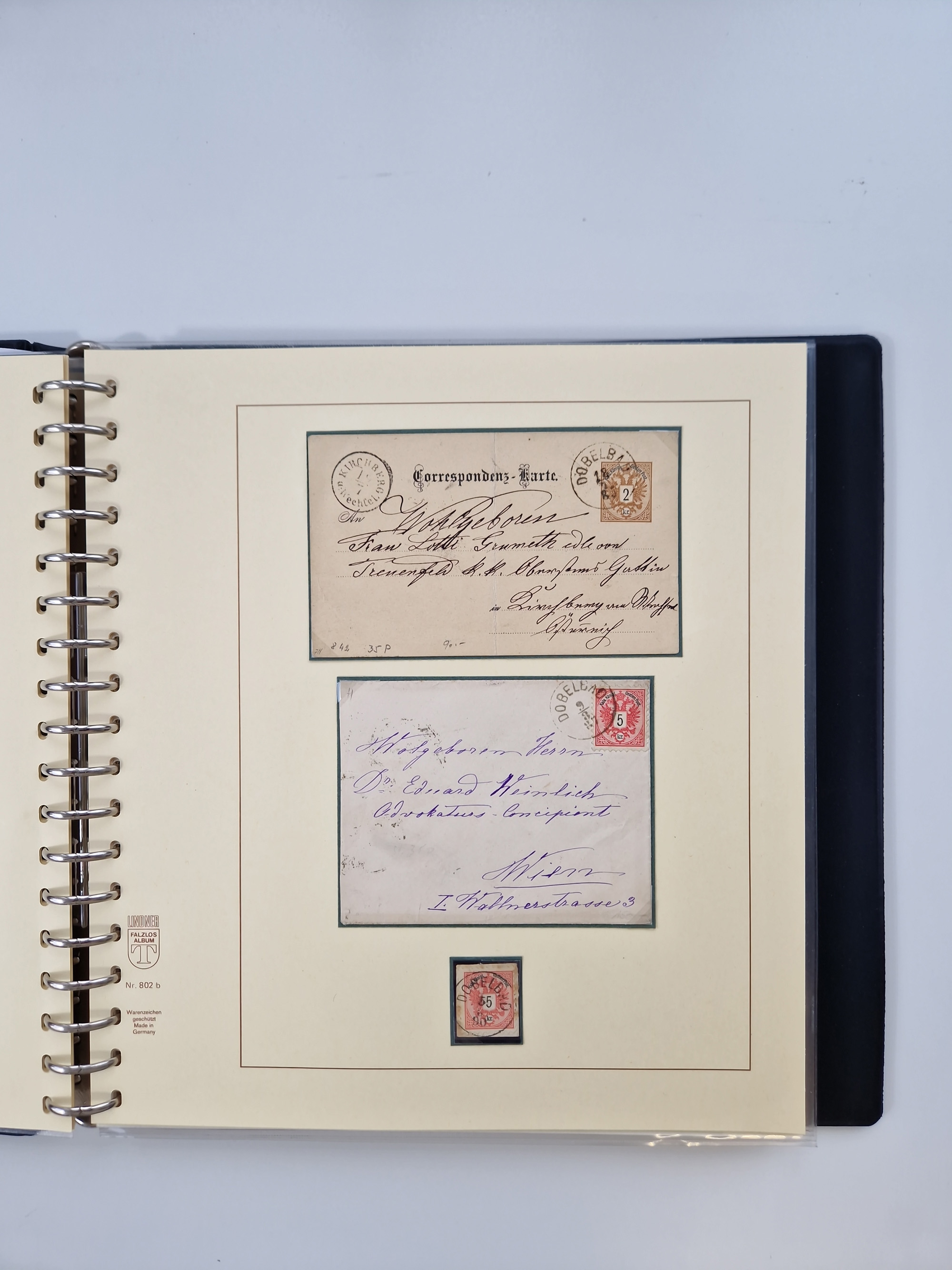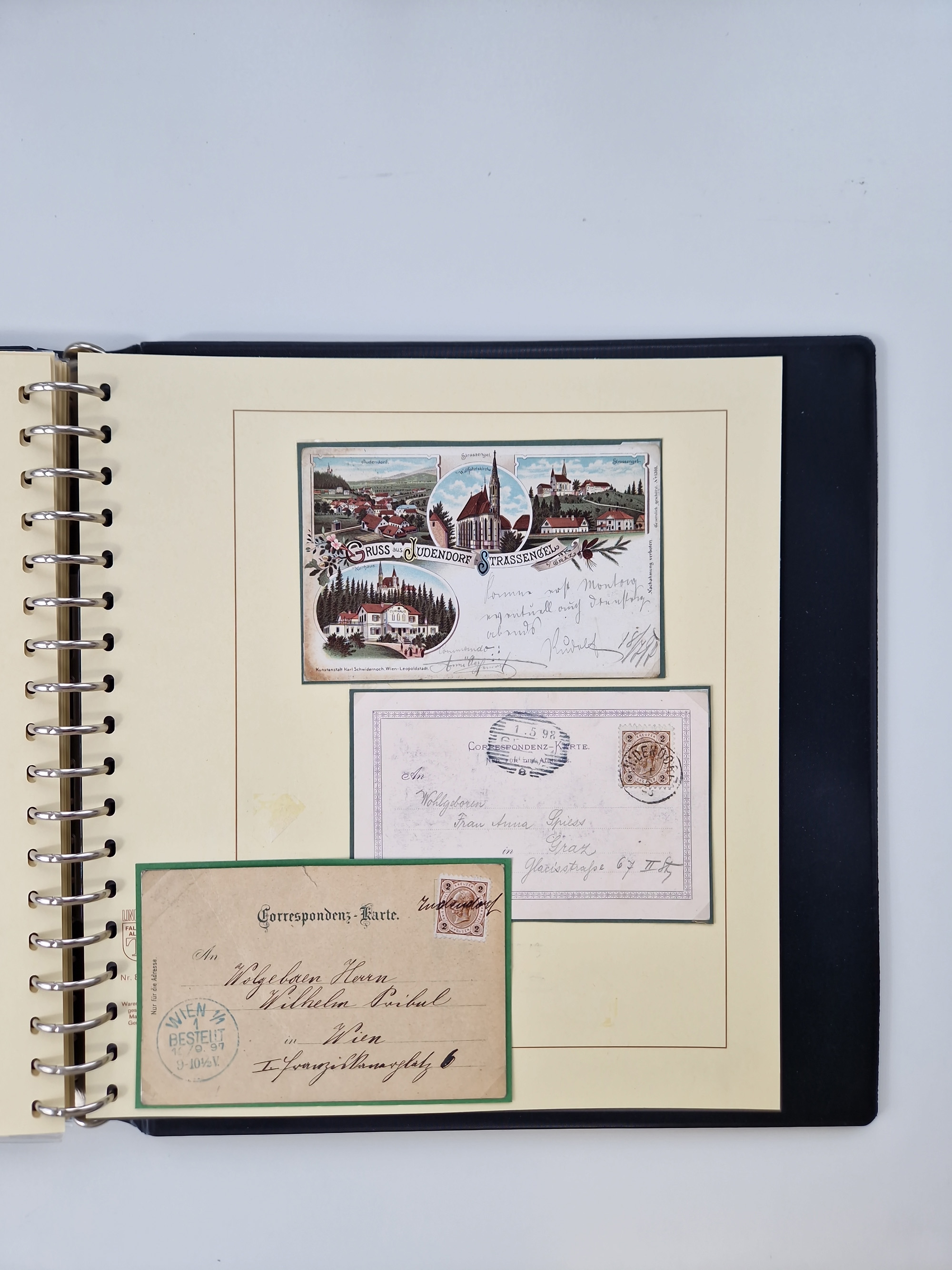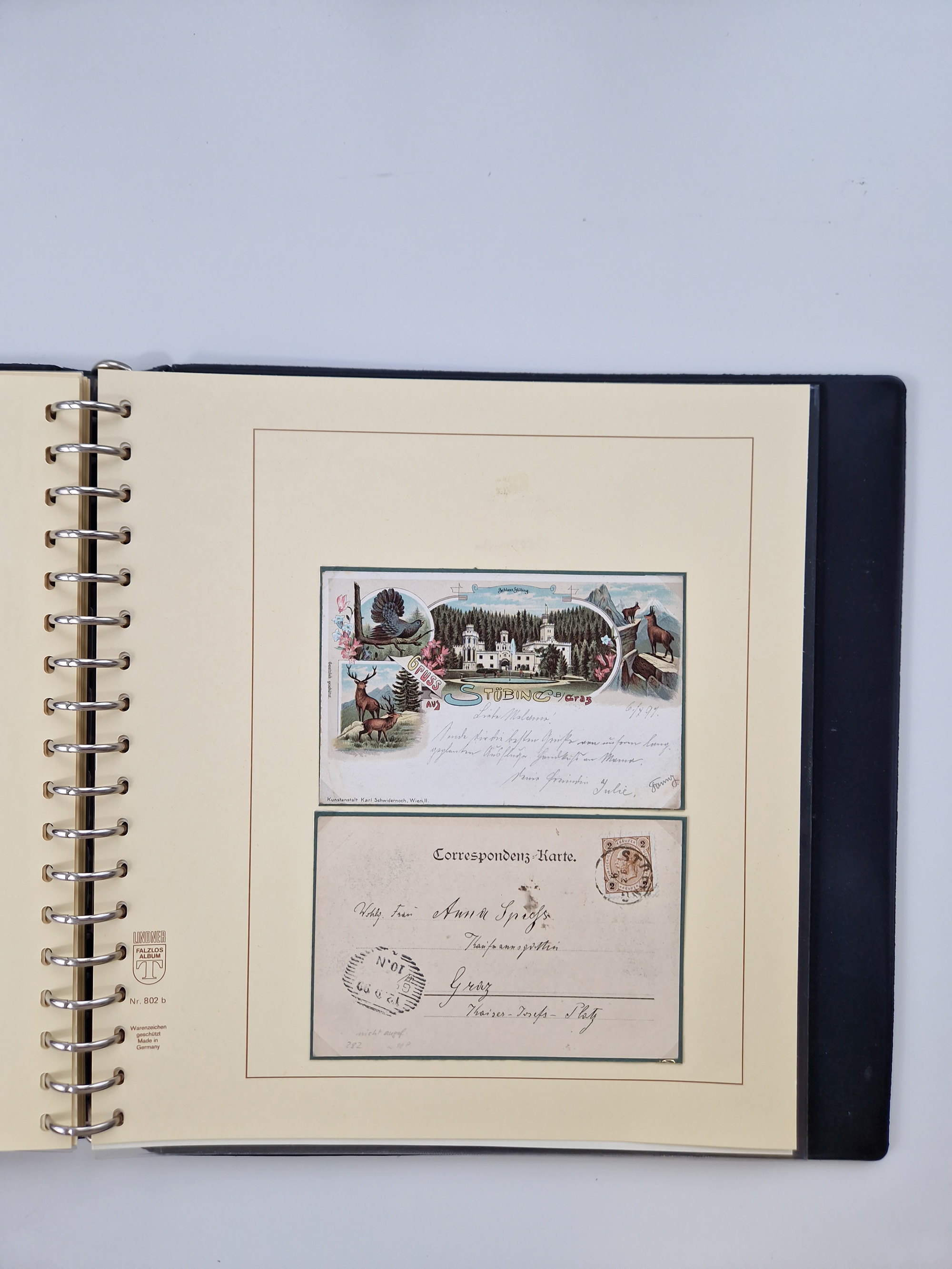 1850/1919 (ca.), zahlreiche aufgezogene Heimat-Sammlung “GRAZ” und Umgebung Andritz bis Zettling, mit über 220 Briefen und Karten, besseren Einzel- und Mehrfachfrankaturen, Buntfrankaturen sowie R-Briefen, Ansichtkarten mit Lithos und weiteren Besonderheiten, Schwerpunkt bei den Ausgaben 1883 bis 1899, dabei u.a. Destination Finnland, 1897 R-Brief auf “BRUXELLES” nach Graz weitergeleitet mit Mischfrankatur, ferner lose Marken und Briefstücke ab Ausgabe 1850 mit meist klaren Stempel-Abschlägen, “PUNTIGEN” auf 6 Kr. (Müller.-Nr. 2276a, 150 Punkte), etc., dabei auch Postscheine, Postanweisungen, Paketkarten oder Recepissen. Ein außerordentlich reichaltiges und interessantes Objekt, zusammen in 4 Alben