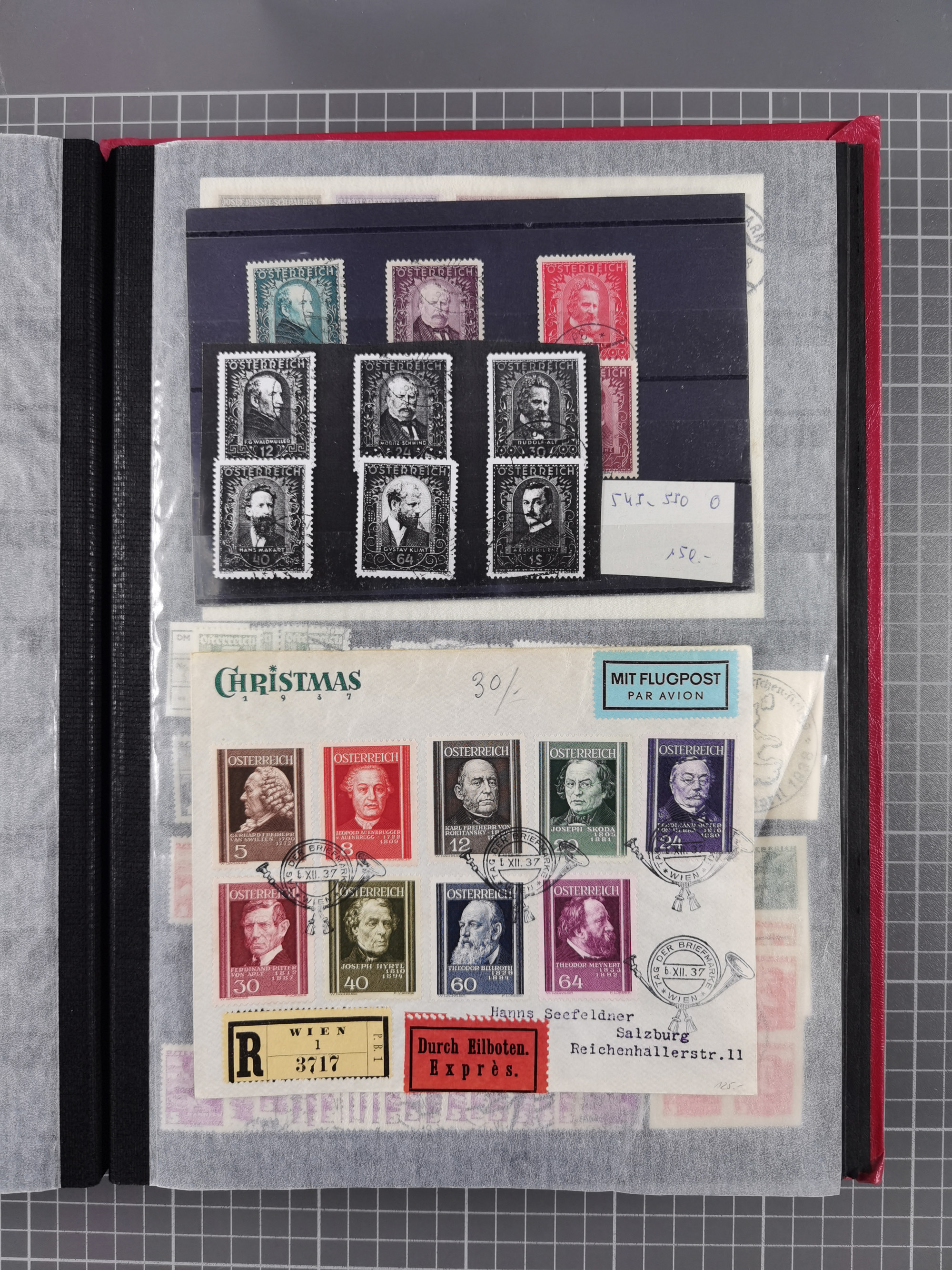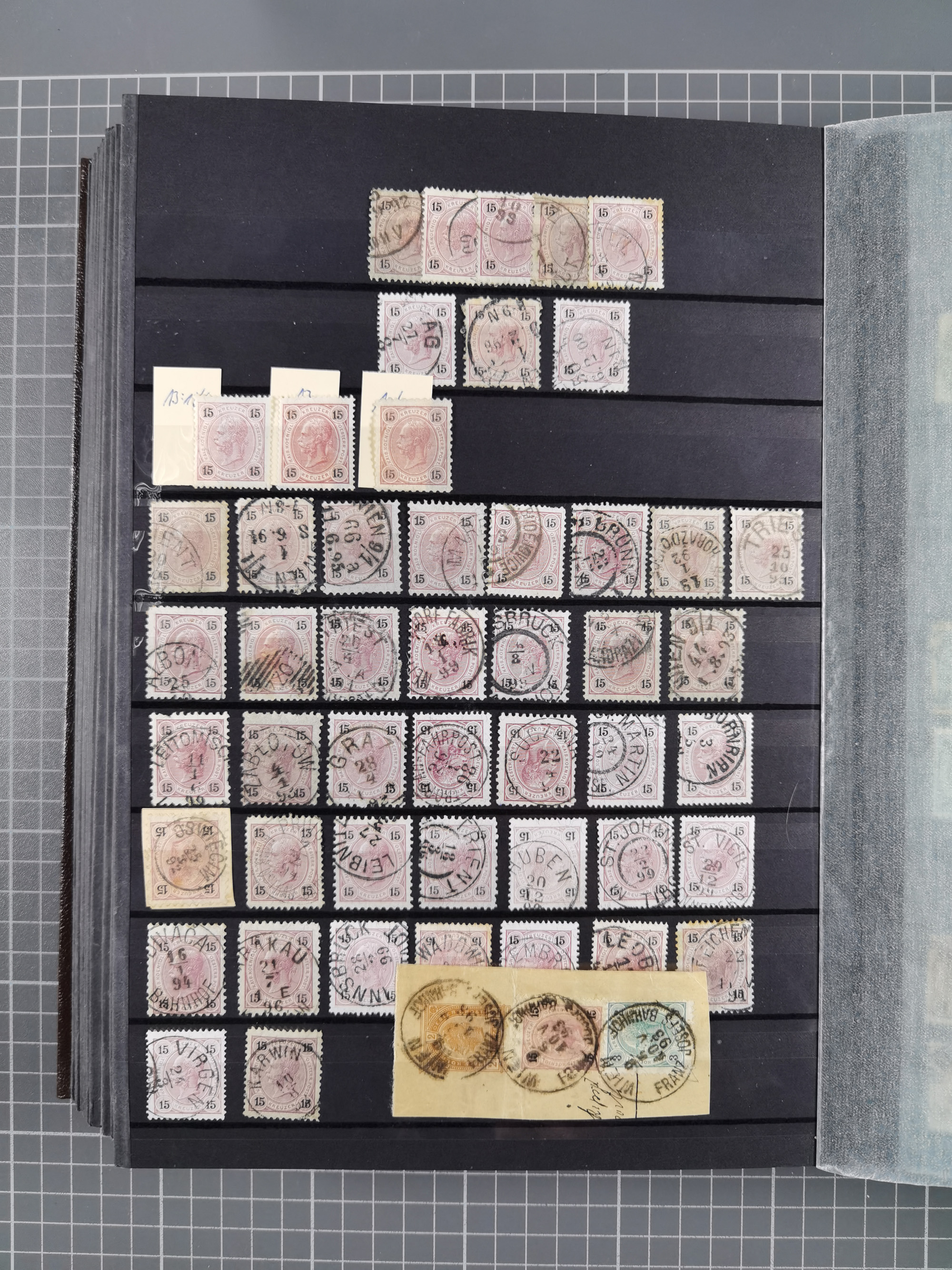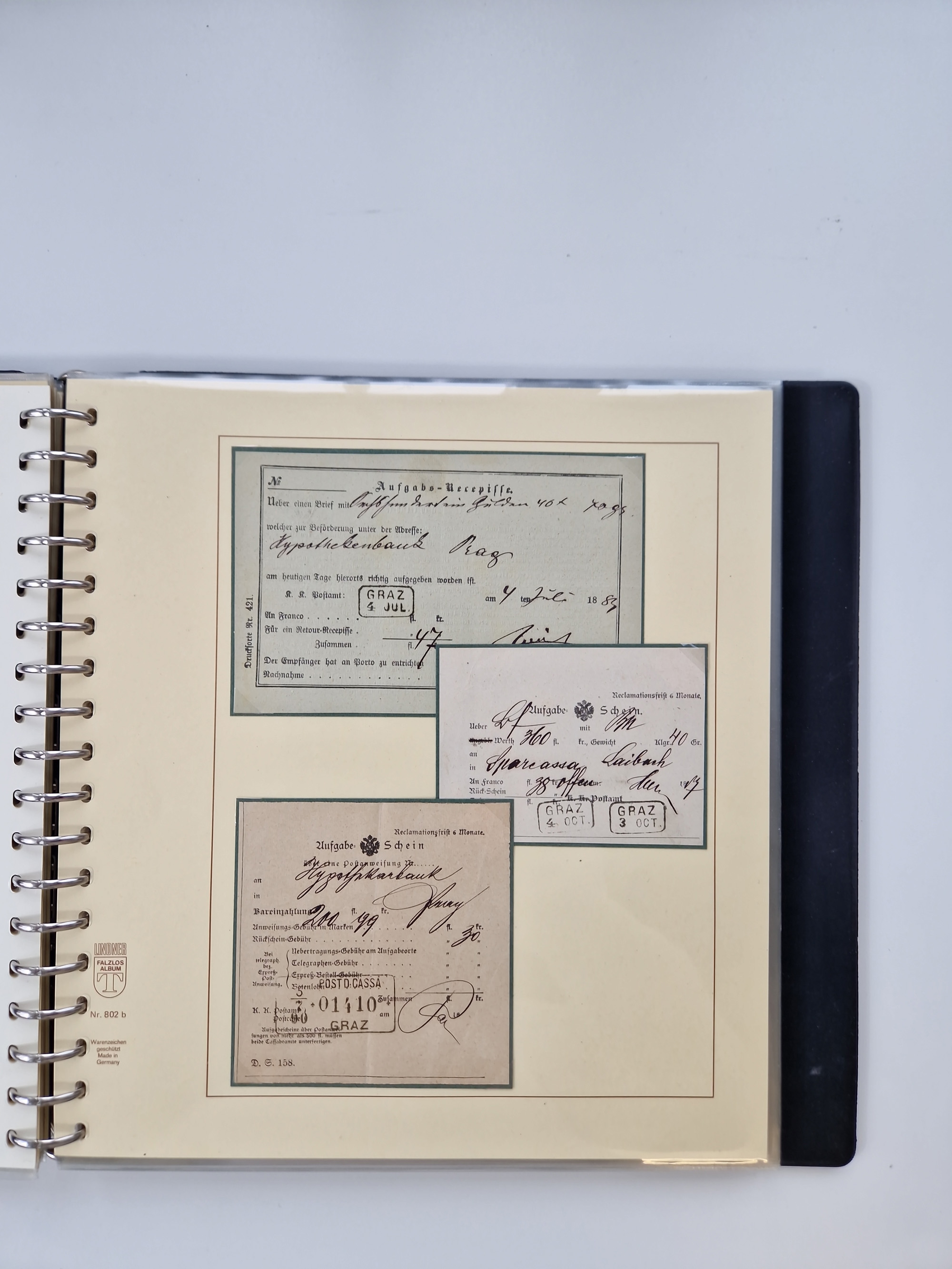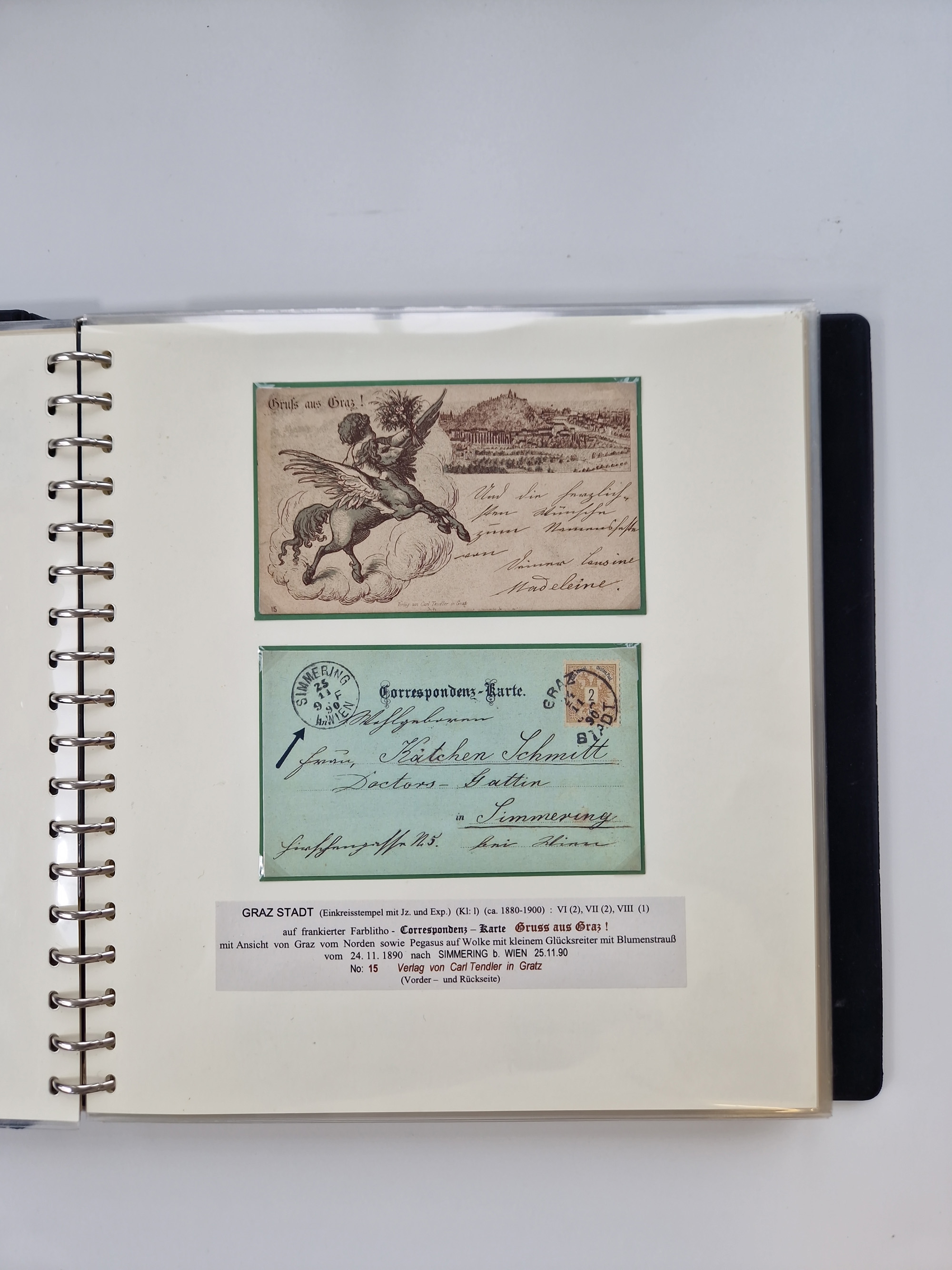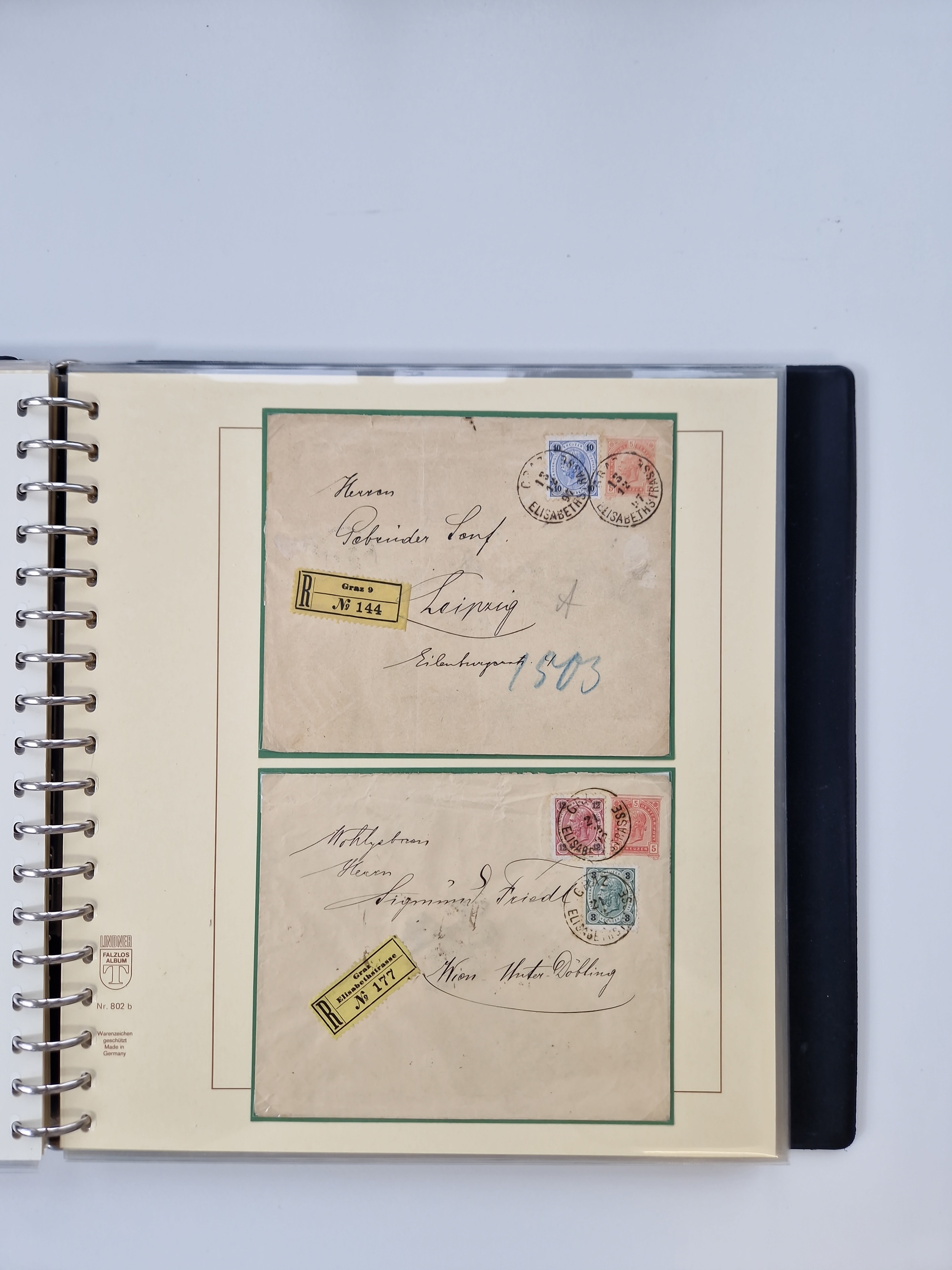 1850/1919 (ca.), zahlreiche aufgezogene Heimat-Sammlung “GRAZ” und Umgebung Andritz bis Zettling, mit über 220 Briefen und Karten, besseren Einzel- und Mehrfachfrankaturen, Buntfrankaturen sowie R-Briefen, Ansichtkarten mit Lithos und weiteren Besonderheiten, Schwerpunkt bei den Ausgaben 1883 bis 1899, dabei u.a. Destination Finnland, 1897 R-Brief auf “BRUXELLES” nach Graz weitergeleitet mit Mischfrankatur, ferner lose Marken und Briefstücke ab Ausgabe 1850 mit meist klaren Stempel-Abschlägen, “PUNTIGEN” auf 6 Kr. (Müller.-Nr. 2276a, 150 Punkte), etc., dabei auch Postscheine, Postanweisungen, Paketkarten oder Recepissen. Ein außerordentlich reichaltiges und interessantes Objekt, zusammen in 4 Alben