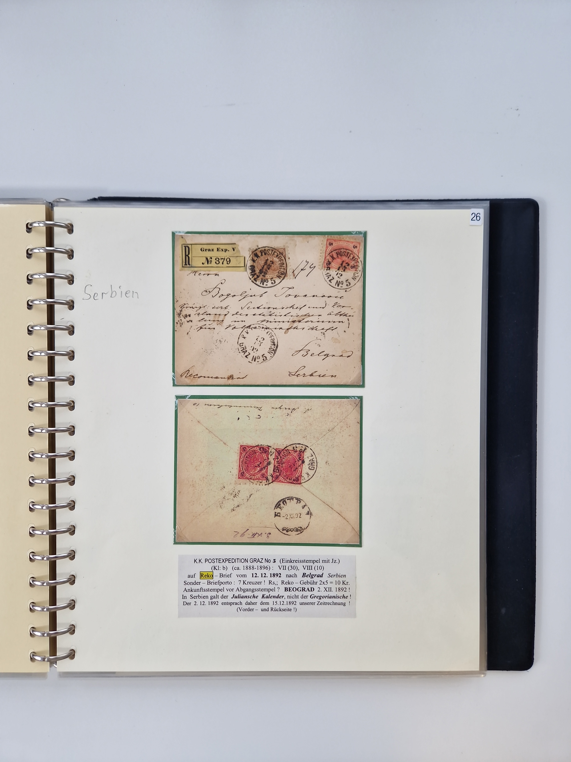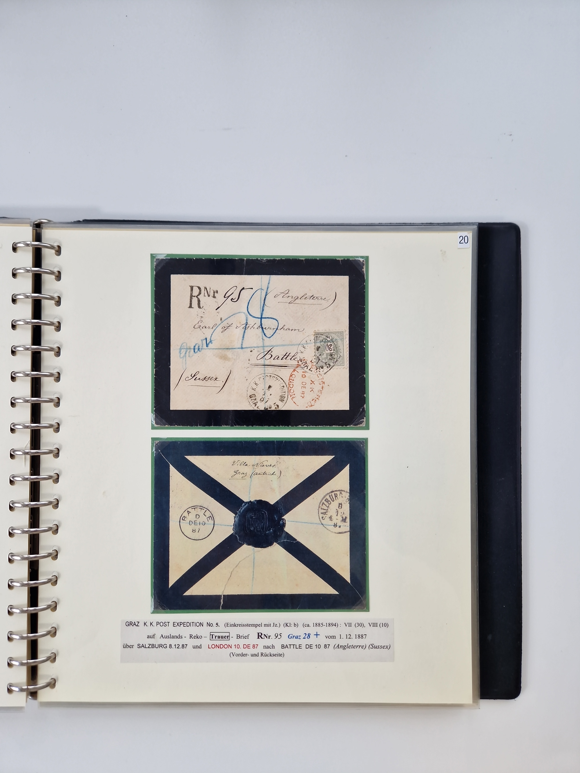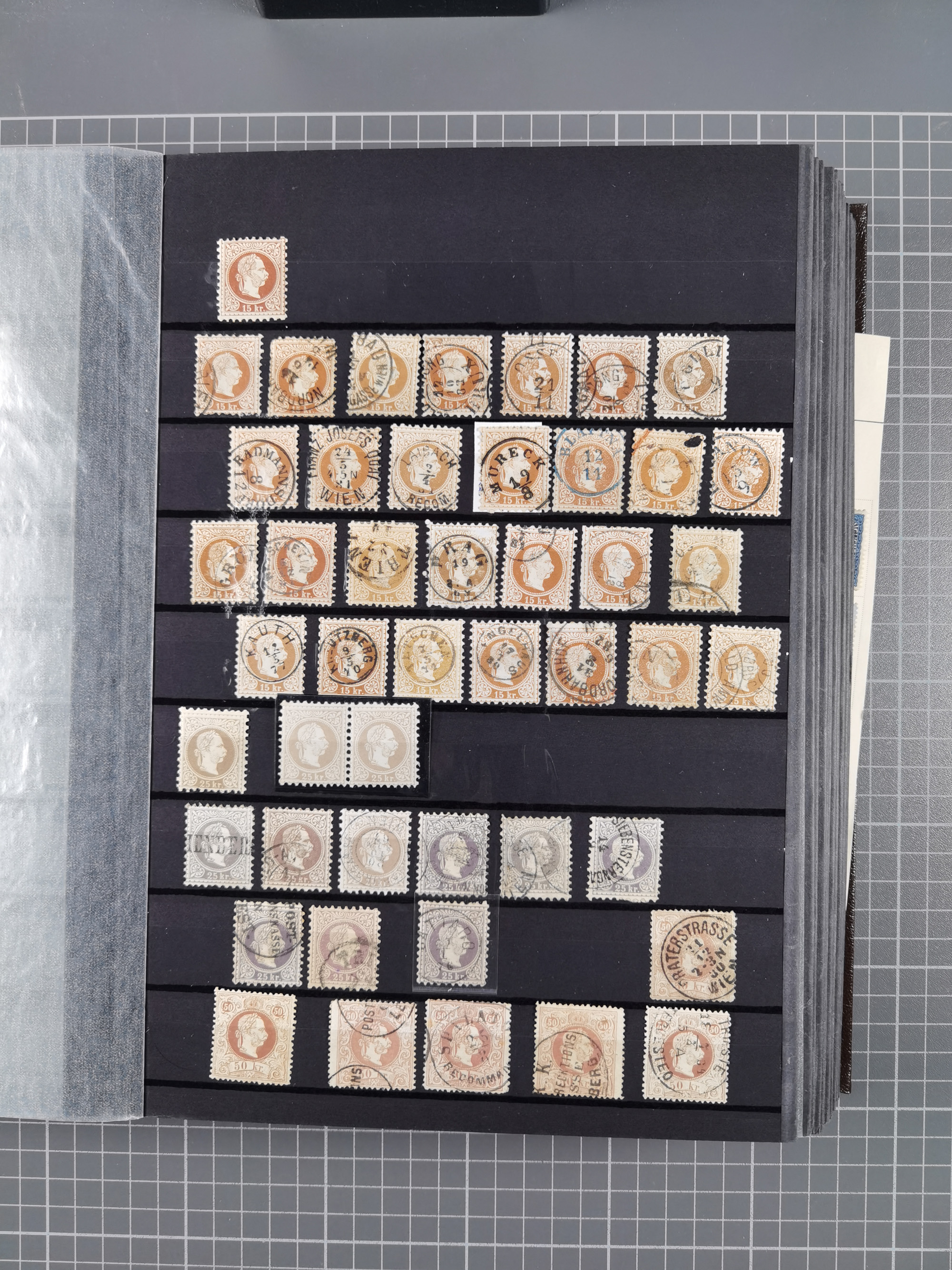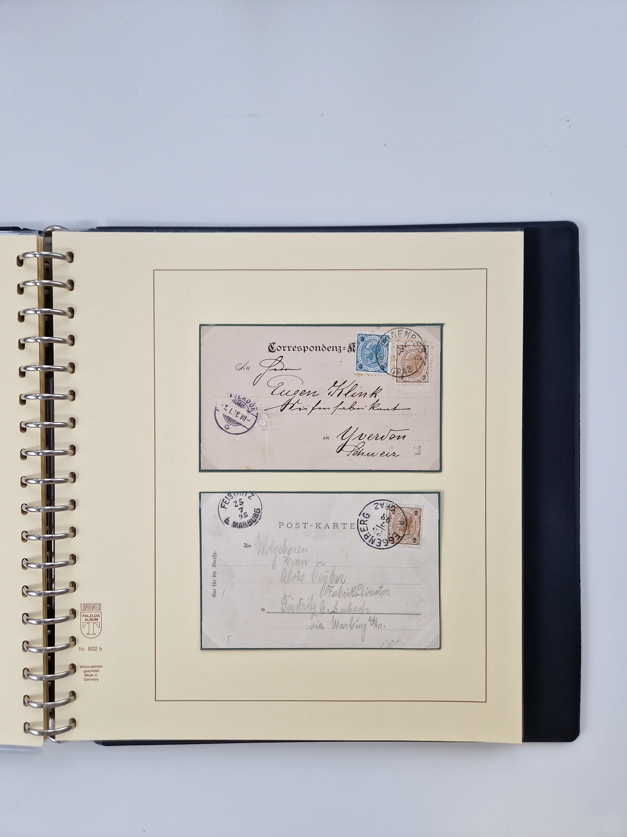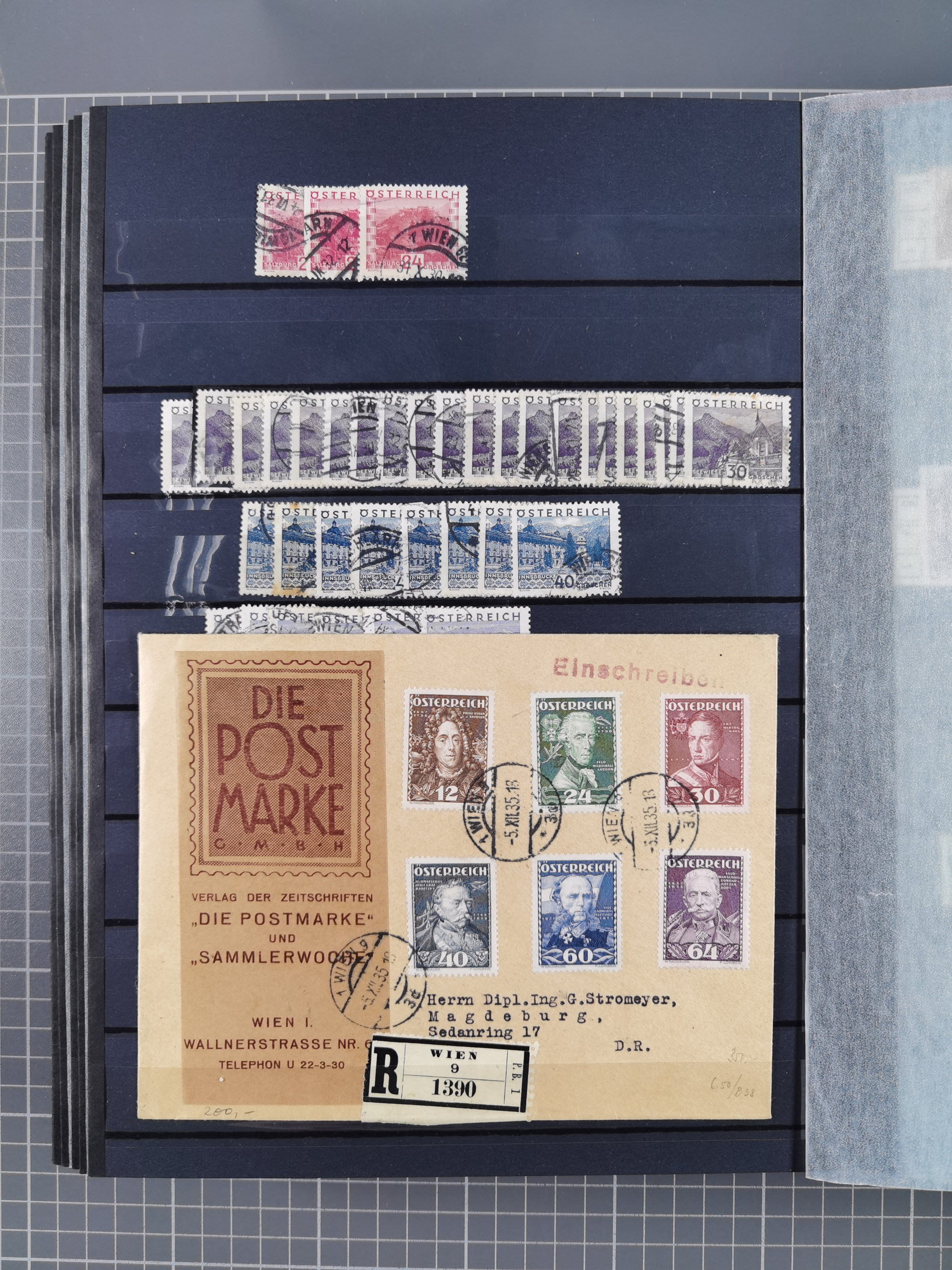 1850/1919 (ca.), zahlreiche aufgezogene Heimat-Sammlung “GRAZ” und Umgebung Andritz bis Zettling, mit über 220 Briefen und Karten, besseren Einzel- und Mehrfachfrankaturen, Buntfrankaturen sowie R-Briefen, Ansichtkarten mit Lithos und weiteren Besonderheiten, Schwerpunkt bei den Ausgaben 1883 bis 1899, dabei u.a. Destination Finnland, 1897 R-Brief auf “BRUXELLES” nach Graz weitergeleitet mit Mischfrankatur, ferner lose Marken und Briefstücke ab Ausgabe 1850 mit meist klaren Stempel-Abschlägen, “PUNTIGEN” auf 6 Kr. (Müller.-Nr. 2276a, 150 Punkte), etc., dabei auch Postscheine, Postanweisungen, Paketkarten oder Recepissen. Ein außerordentlich reichaltiges und interessantes Objekt, zusammen in 4 Alben