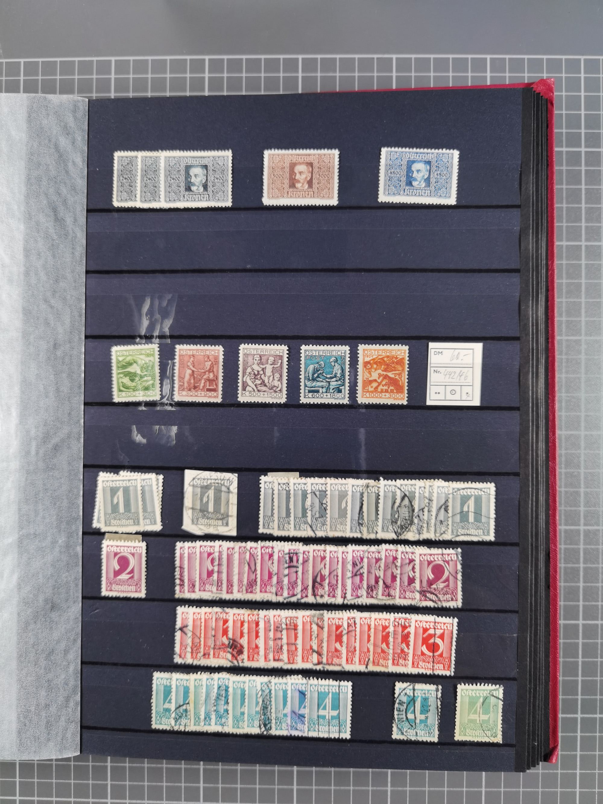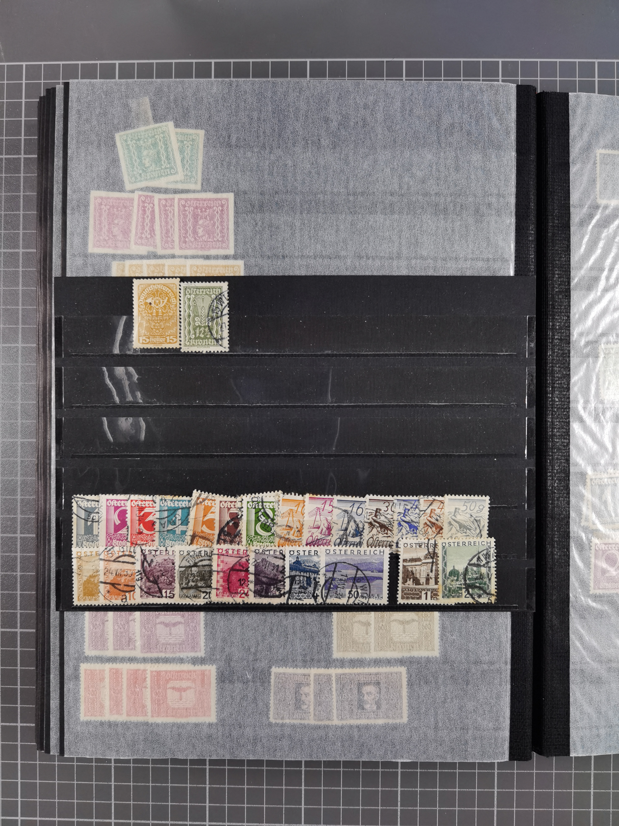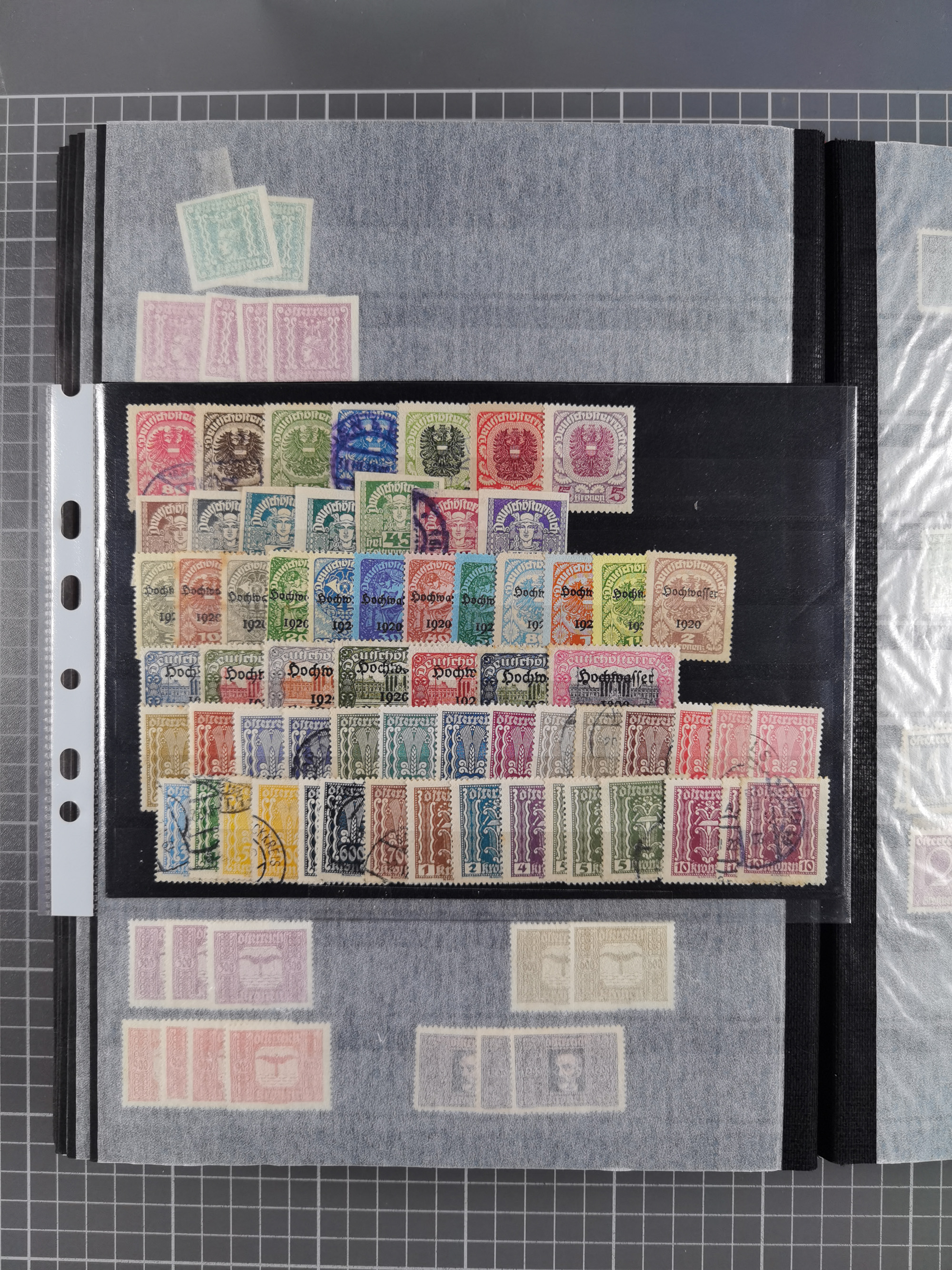 1918/2005, postfrische, anfangs teils ungebrauchte, und gestempelte Sammlung in 44 Alben und 2 Mappen. Vieles in beiden Erhaltungen und/oder mehrfach vorhanden, teilweise auch mit Typen und Zähnungen und auf Belegen, dabei u.a. Mi. 518-23(5), 555/56A(4), Block 1(2), Mi. 588(2), Renner-Kleinbogen, etc. Ein interessantes Objekt in schöner Erhaltung.