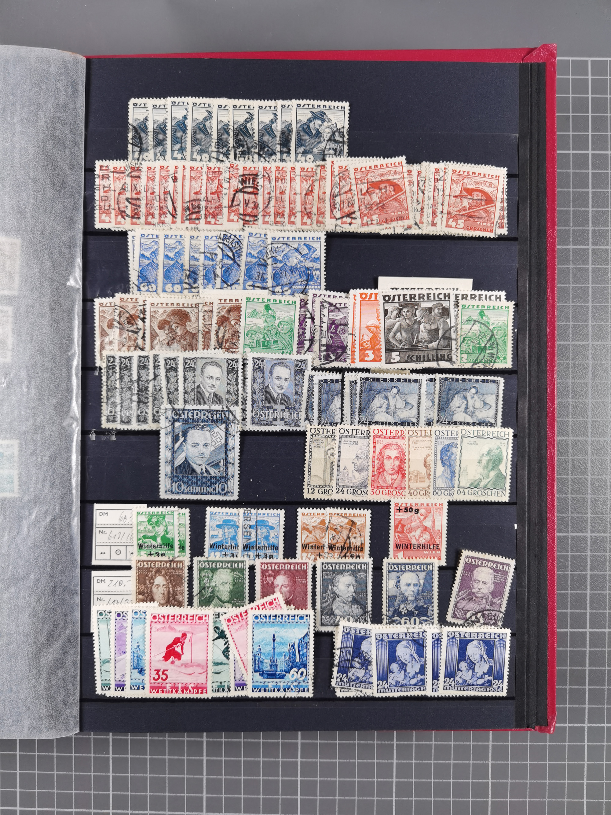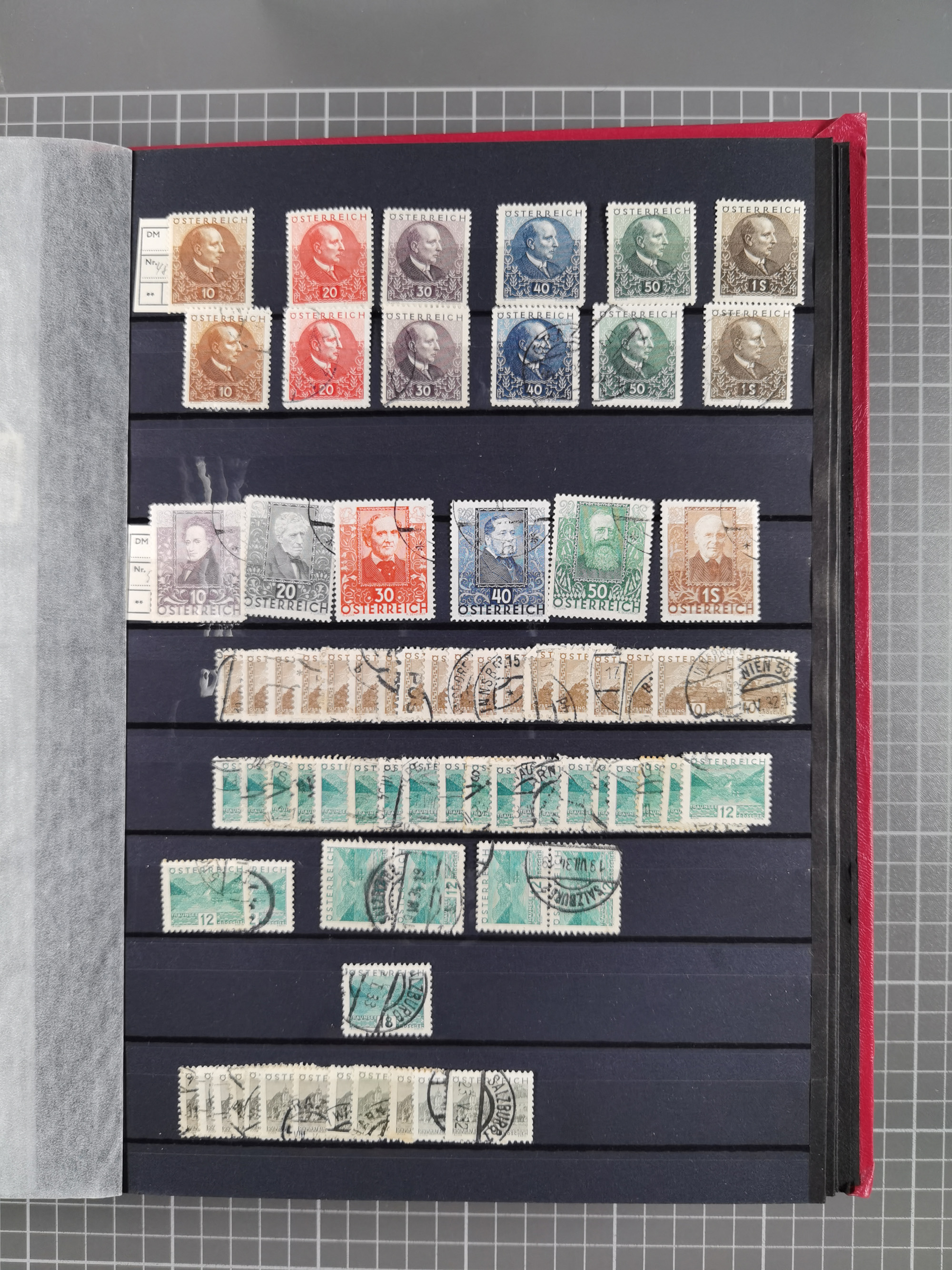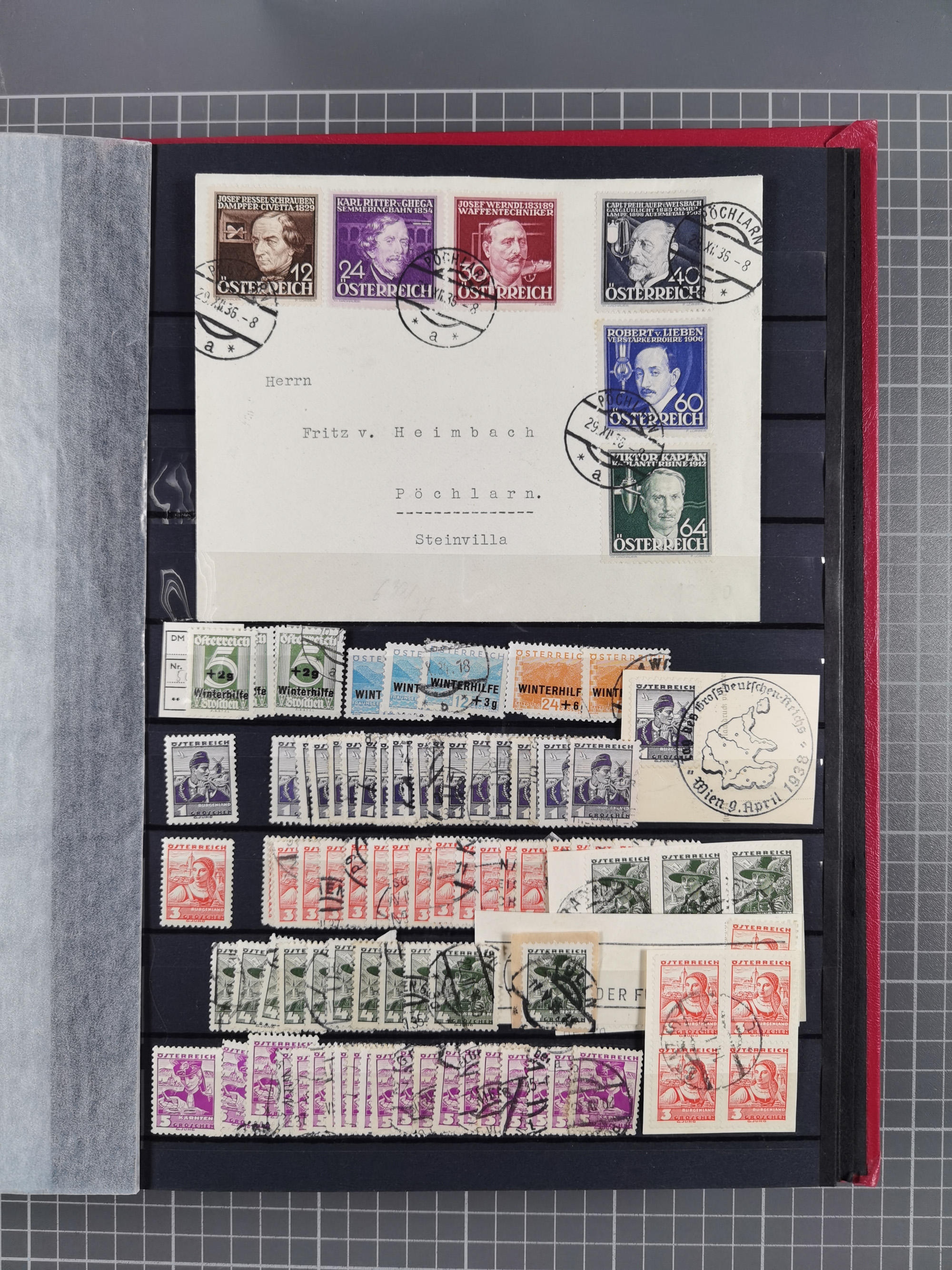 1850/1958 (ca.), reichhaltiger ungebrauchter und gestempelter Doubletten-Bestand, mit einigen Briefen, die erste Ausgabe mit vielen schönen Abstempelungen, dabei bessere Werte mit u.a. Mi.-Nr. 17b gestempelt (FB Rismondo BPP), Dollfuß 588 gestempelt, 555A mit Zufrankatur auf R-Brief mit Sonderstempel “WIPA 1933”, etc., Schwerpunkt vor 1930, in 5 Steckbüchern und 3 Boxes