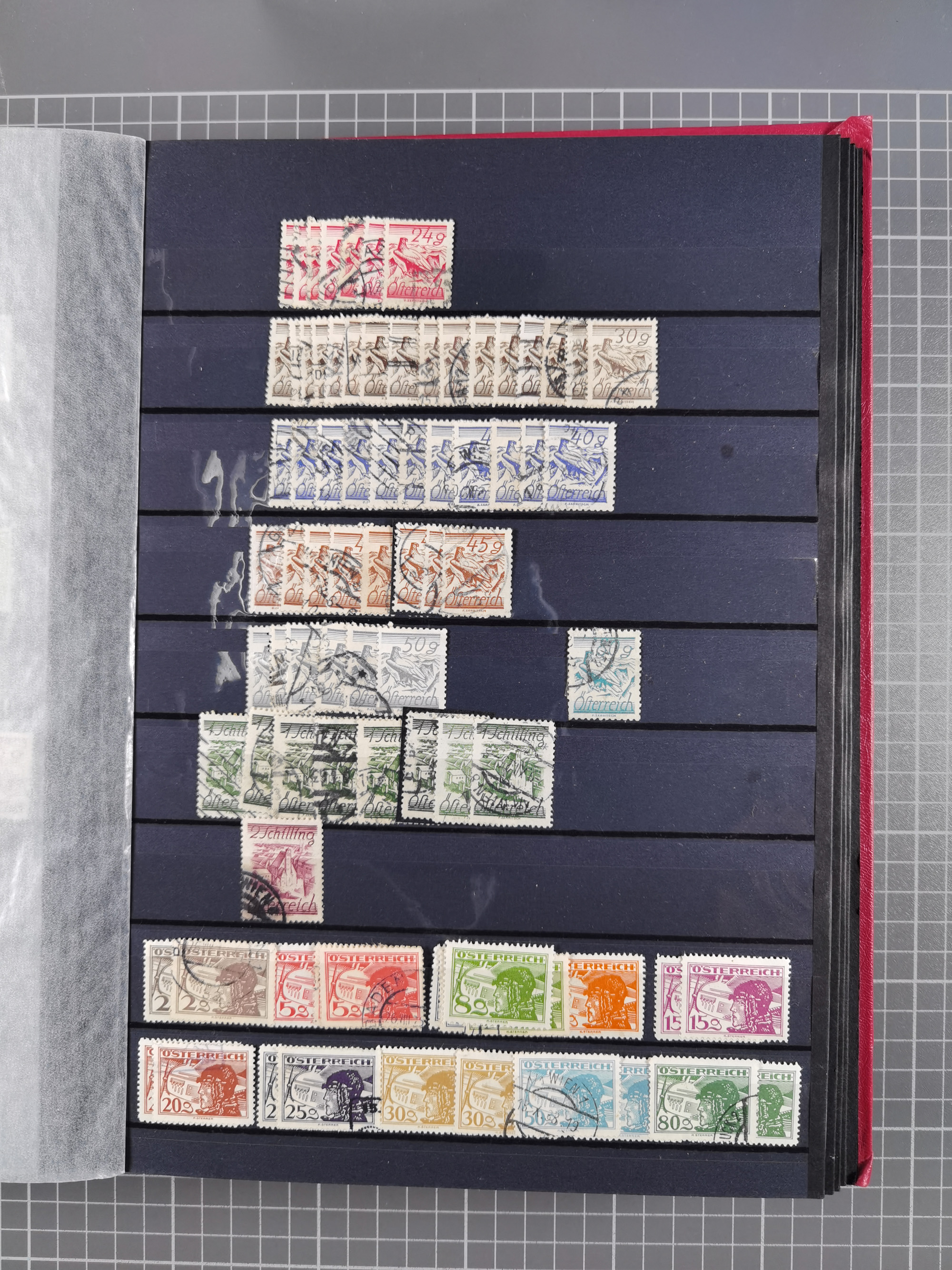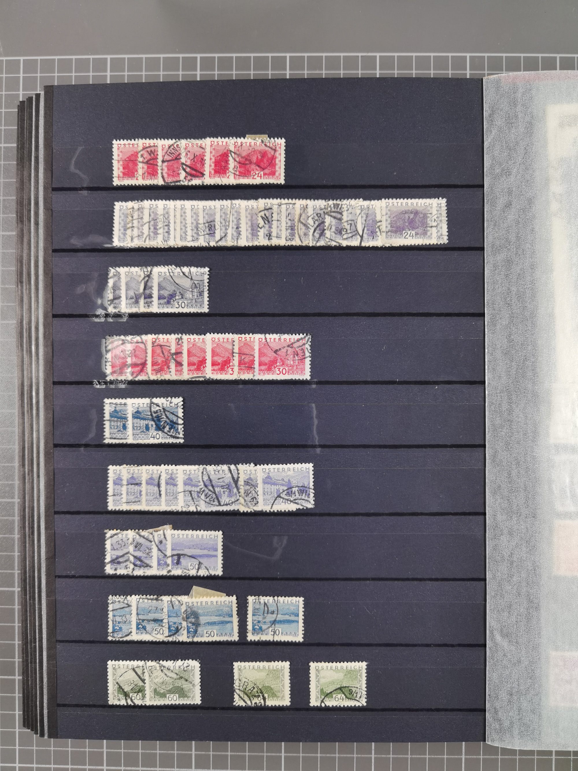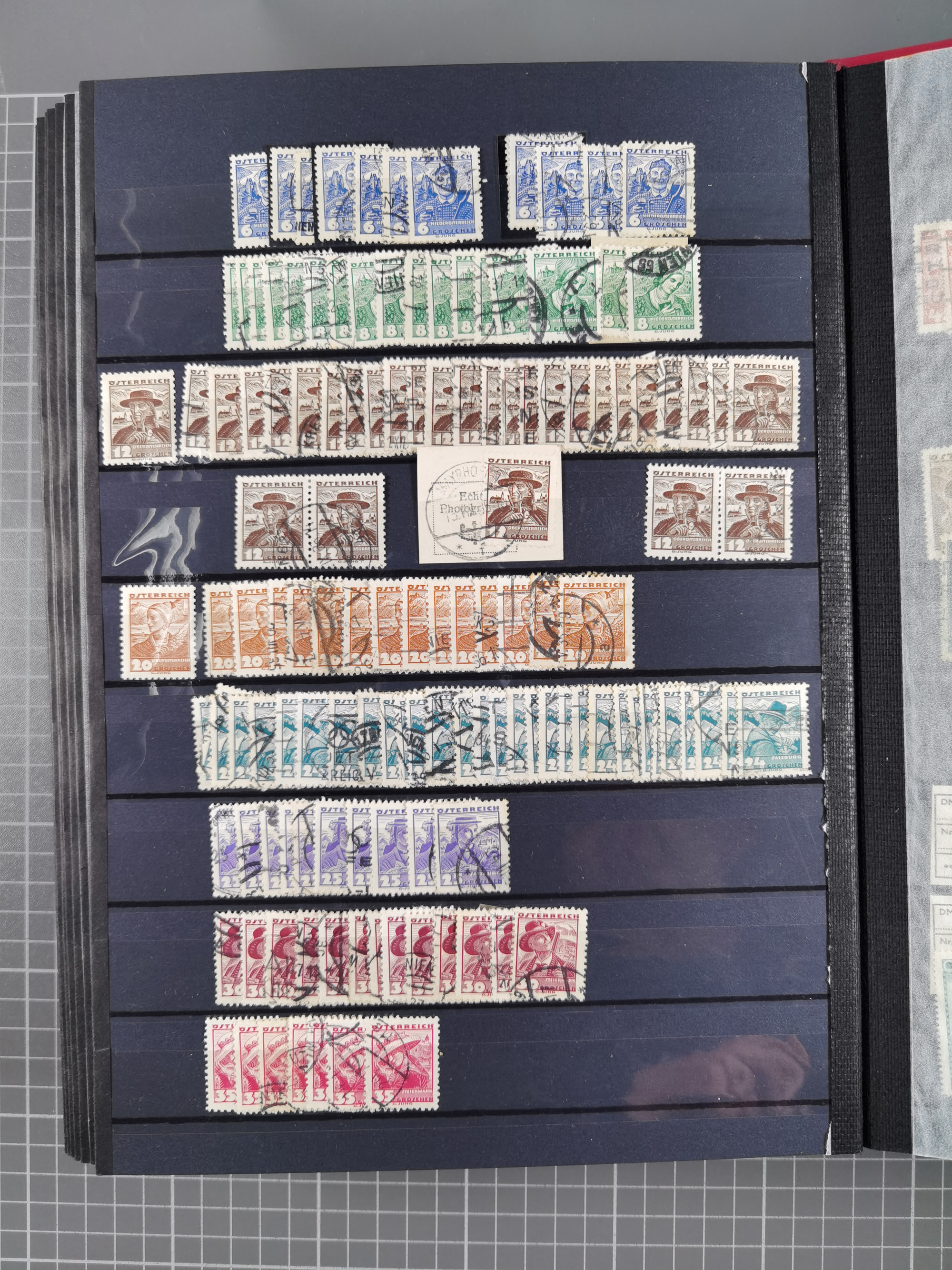 1850/1958 (ca.), reichhaltiger ungebrauchter und gestempelter Doubletten-Bestand, mit einigen Briefen, die erste Ausgabe mit vielen schönen Abstempelungen, dabei bessere Werte mit u.a. Mi.-Nr. 17b gestempelt (FB Rismondo BPP), Dollfuß 588 gestempelt, 555A mit Zufrankatur auf R-Brief mit Sonderstempel “WIPA 1933”, etc., Schwerpunkt vor 1930, in 5 Steckbüchern und 3 Boxes