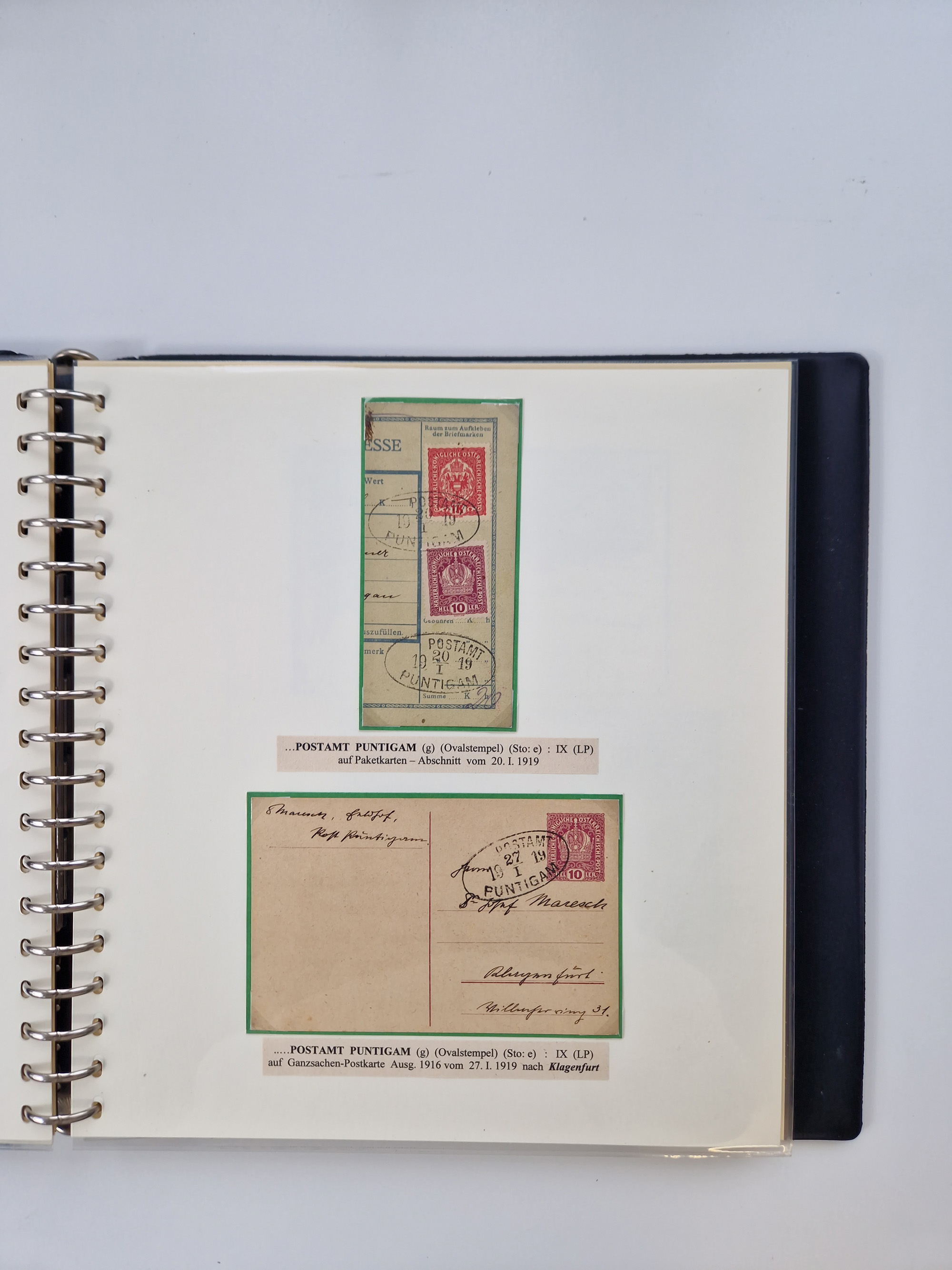 1756/1993 (ca.), reichhaltige Heimatsammlung “KLAGENFURT” mit über 650 Briefen und Karten, ab Vorphilatelie, dabei auch Postscheine, Postanweisungen, Paketkarten, Recepissen, etc., mit vielen interessanten Stücken, angefangen mit u.a. Briefhülle vom 14.9.1756 nach Salzburg mit rückseitigem Ra. “V. Clagenfurth”, “KLAGENFURT / FRANCO” in rot (2), EKr. rückseitig auf recommandiertem Brief, sog. Bienenkorbstempel in schwarz und in blau je auf R-Brief, EKr. auf Postanweisung mit Zufrankatur, EKr. auf R-Brief mit Mi.-Nr. 4, sowie R-Brief mit Mi.-Nr. 15, ferner slowenische Besetzung von Klagenfurt mit L1 “SHS Celovec” in blau auf Ganzsachenkarte, “VOJASKI POSTNI URAD CELOVEC” auf Karte, Postanweisung über 40,4 M. mit Mi.-Nr. 747, etc., ferner einige Lose Marken aus Mi.-Nr. 1-5, in acht Ordnern