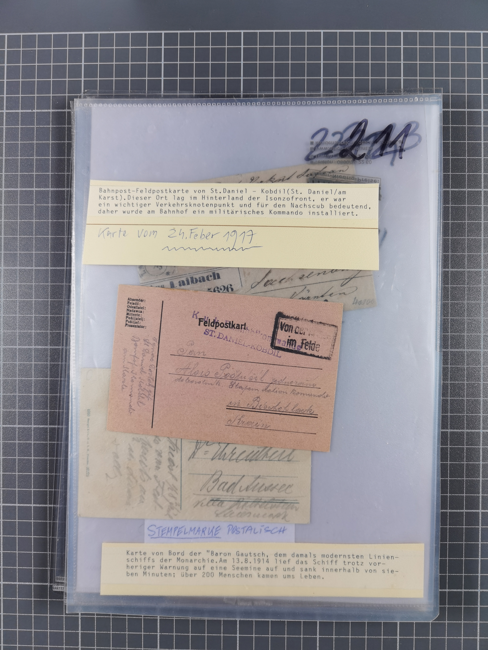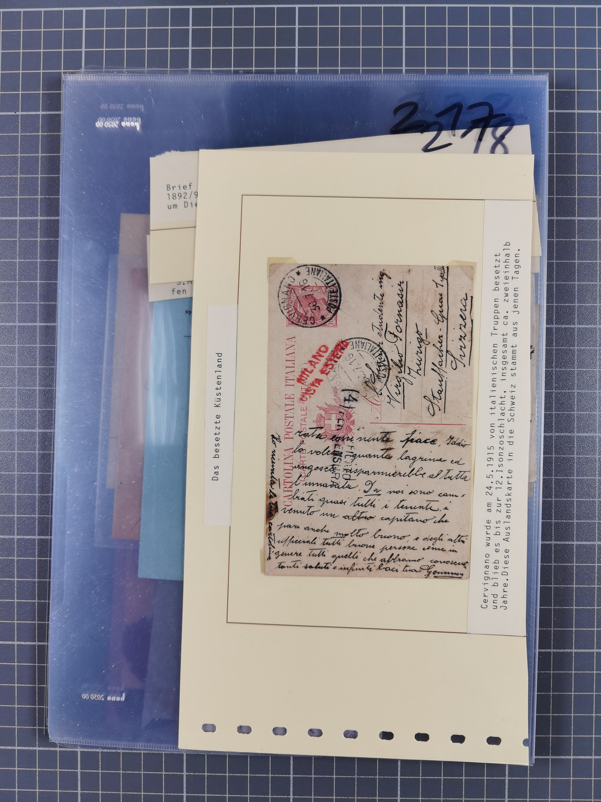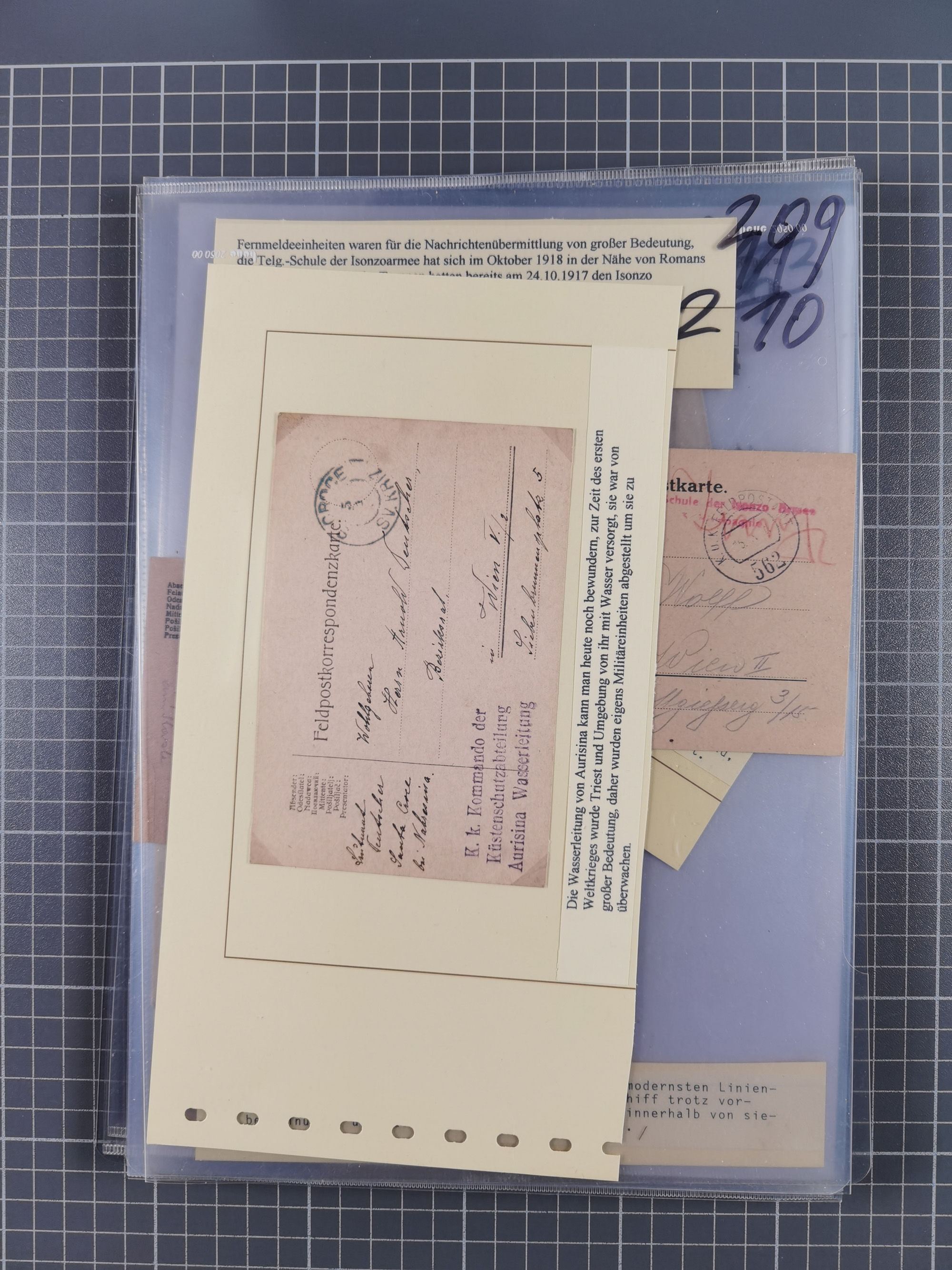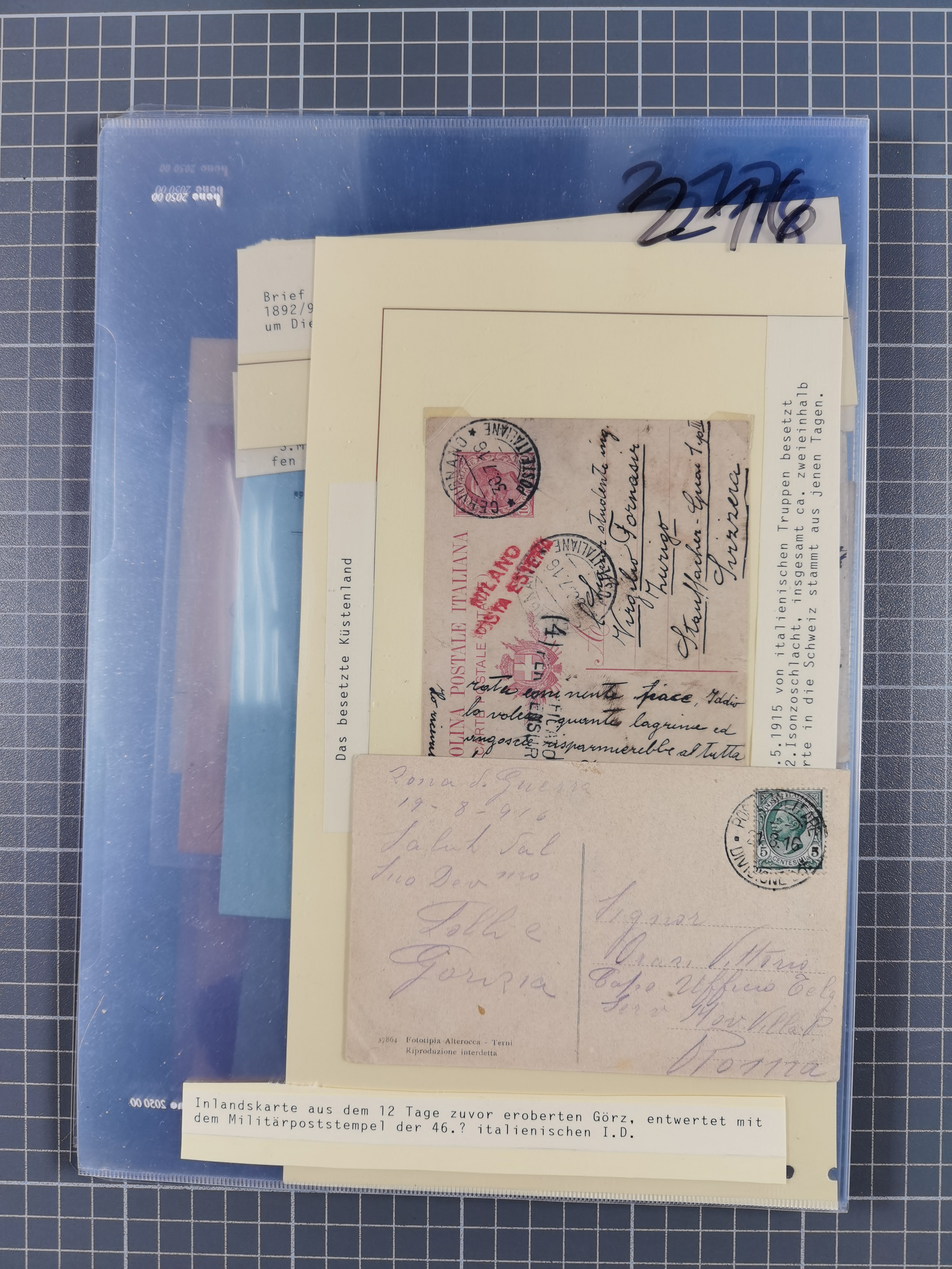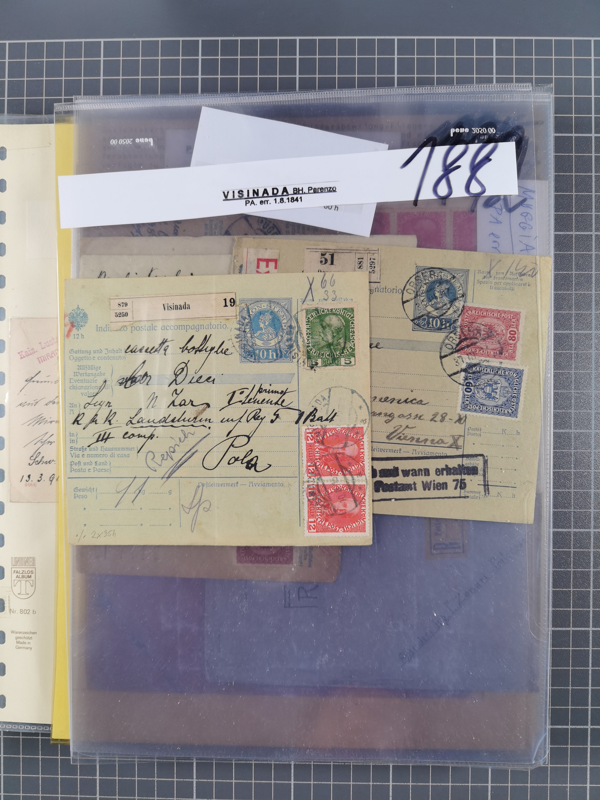 1756/1993 (ca.), reichhaltige Heimatsammlung “KLAGENFURT” mit über 650 Briefen und Karten, ab Vorphilatelie, dabei auch Postscheine, Postanweisungen, Paketkarten, Recepissen, etc., mit vielen interessanten Stücken, angefangen mit u.a. Briefhülle vom 14.9.1756 nach Salzburg mit rückseitigem Ra. “V. Clagenfurth”, “KLAGENFURT / FRANCO” in rot (2), EKr. rückseitig auf recommandiertem Brief, sog. Bienenkorbstempel in schwarz und in blau je auf R-Brief, EKr. auf Postanweisung mit Zufrankatur, EKr. auf R-Brief mit Mi.-Nr. 4, sowie R-Brief mit Mi.-Nr. 15, ferner slowenische Besetzung von Klagenfurt mit L1 “SHS Celovec” in blau auf Ganzsachenkarte, “VOJASKI POSTNI URAD CELOVEC” auf Karte, Postanweisung über 40,4 M. mit Mi.-Nr. 747, etc., ferner einige Lose Marken aus Mi.-Nr. 1-5, in acht Ordnern