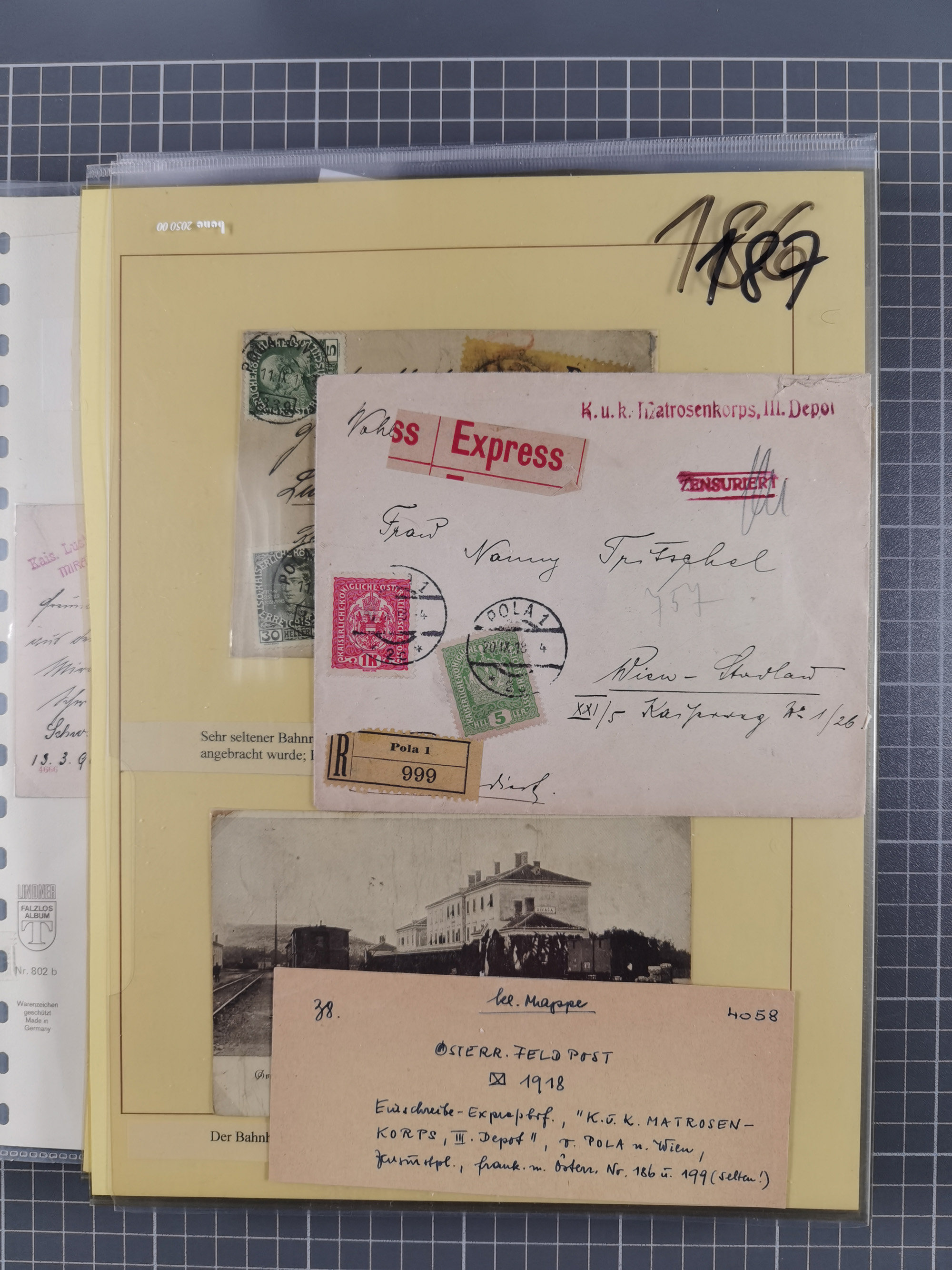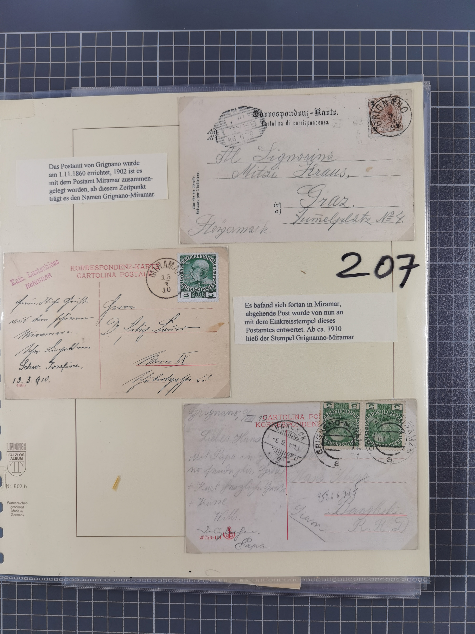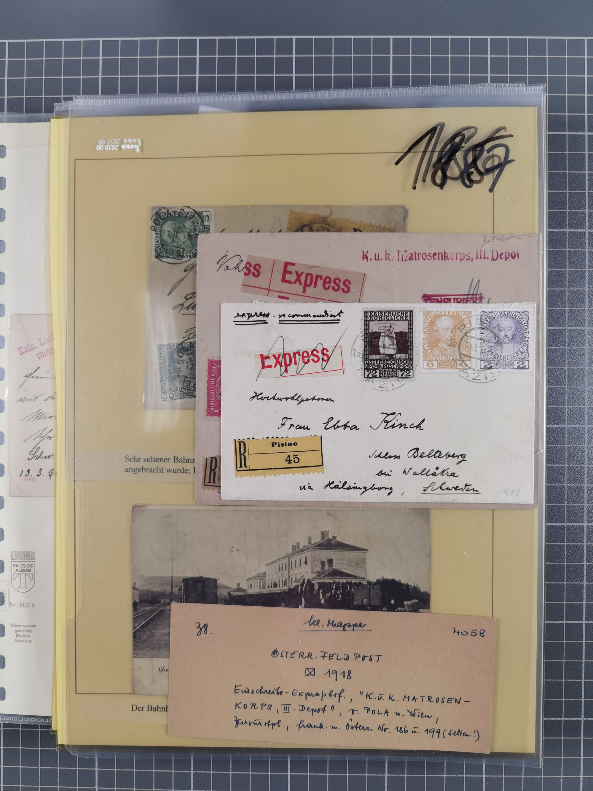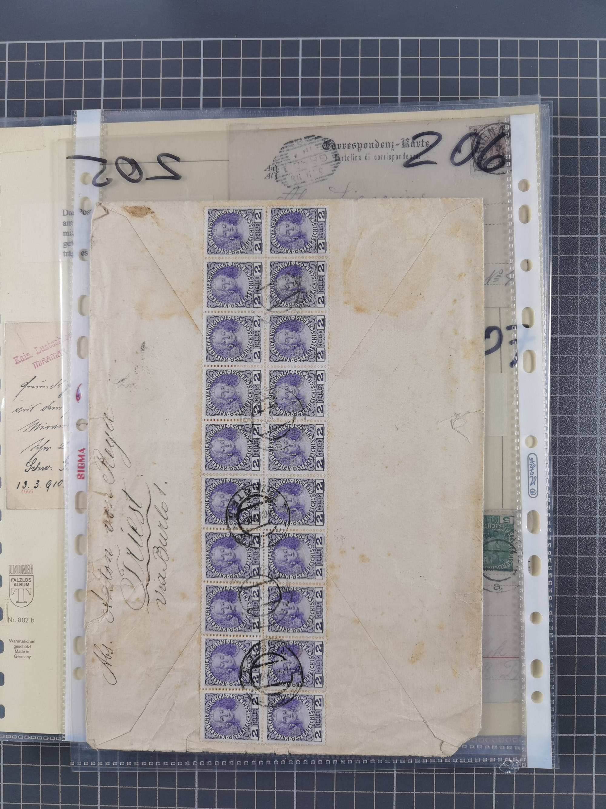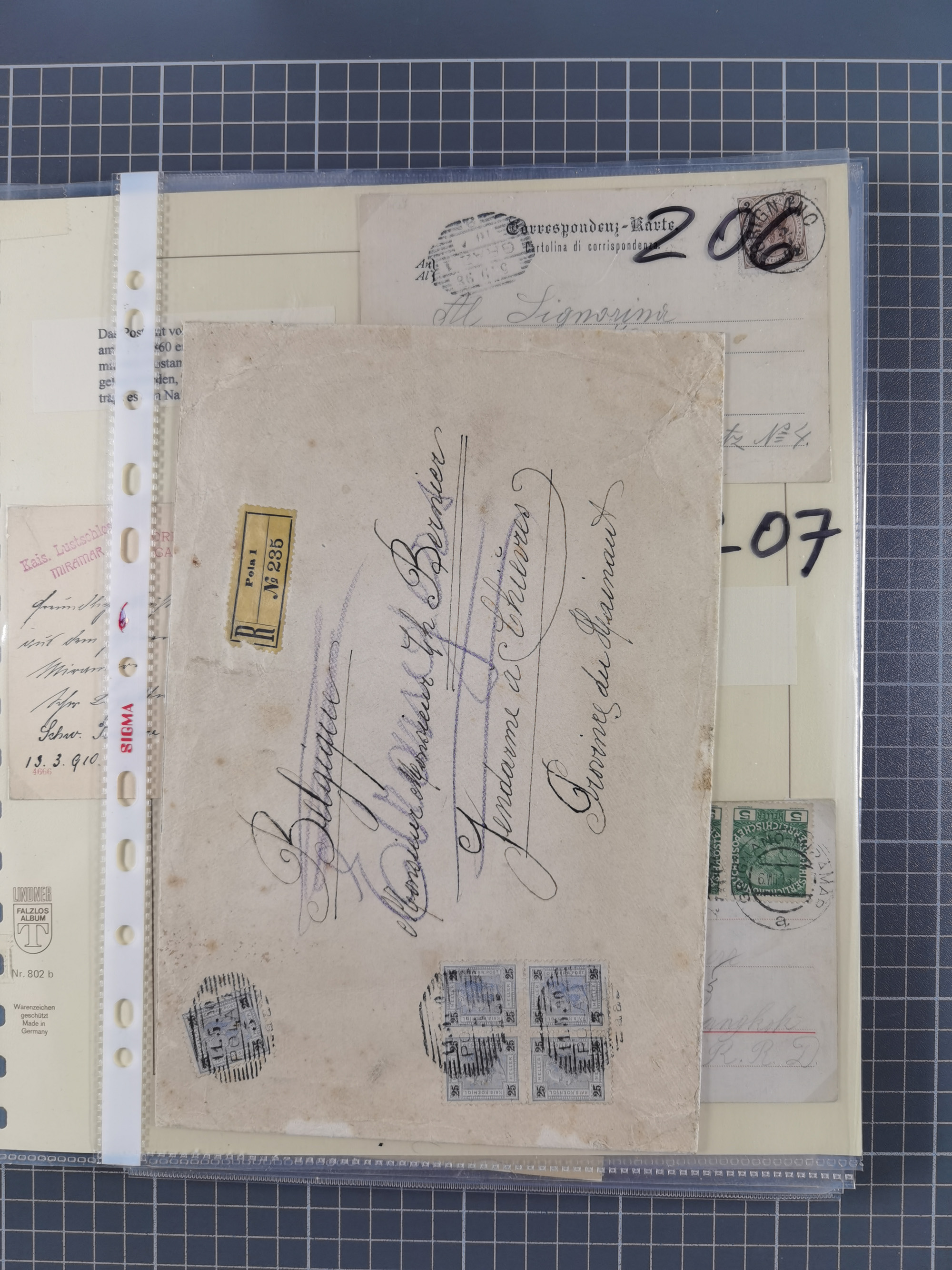 1850/1919 (ca.), zahlreiche aufgezogene Heimat-Sammlung “GRAZ” und Umgebung Andritz bis Zettling, mit über 220 Briefen und Karten, besseren Einzel- und Mehrfachfrankaturen, Buntfrankaturen sowie R-Briefen, Ansichtkarten mit Lithos und weiteren Besonderheiten, Schwerpunkt bei den Ausgaben 1883 bis 1899, dabei u.a. Destination Finnland, 1897 R-Brief auf “BRUXELLES” nach Graz weitergeleitet mit Mischfrankatur, ferner lose Marken und Briefstücke ab Ausgabe 1850 mit meist klaren Stempel-Abschlägen, “PUNTIGEN” auf 6 Kr. (Müller.-Nr. 2276a, 150 Punkte), etc., dabei auch Postscheine, Postanweisungen, Paketkarten oder Recepissen. Ein außerordentlich reichaltiges und interessantes Objekt, zusammen in 4 Alben