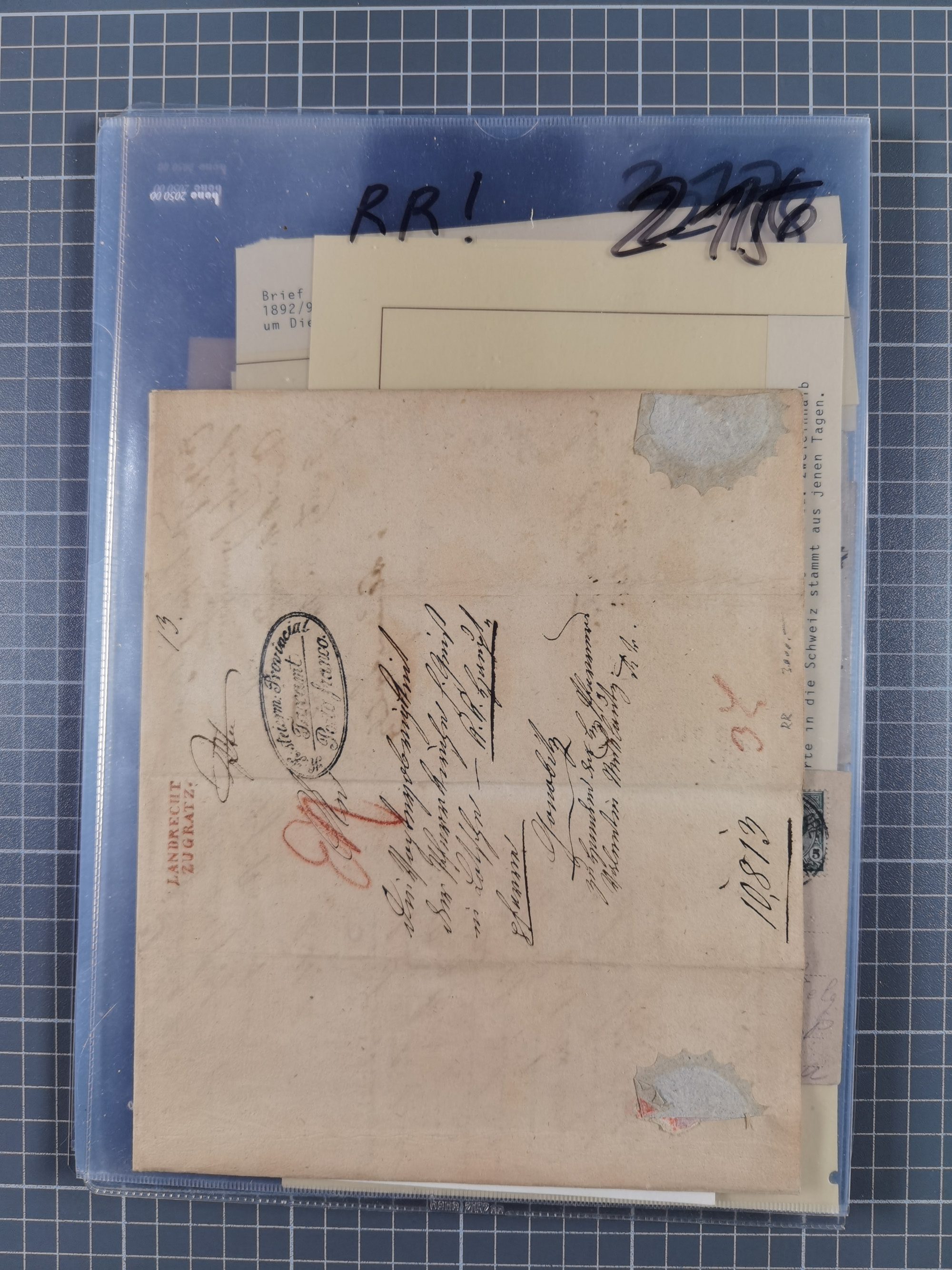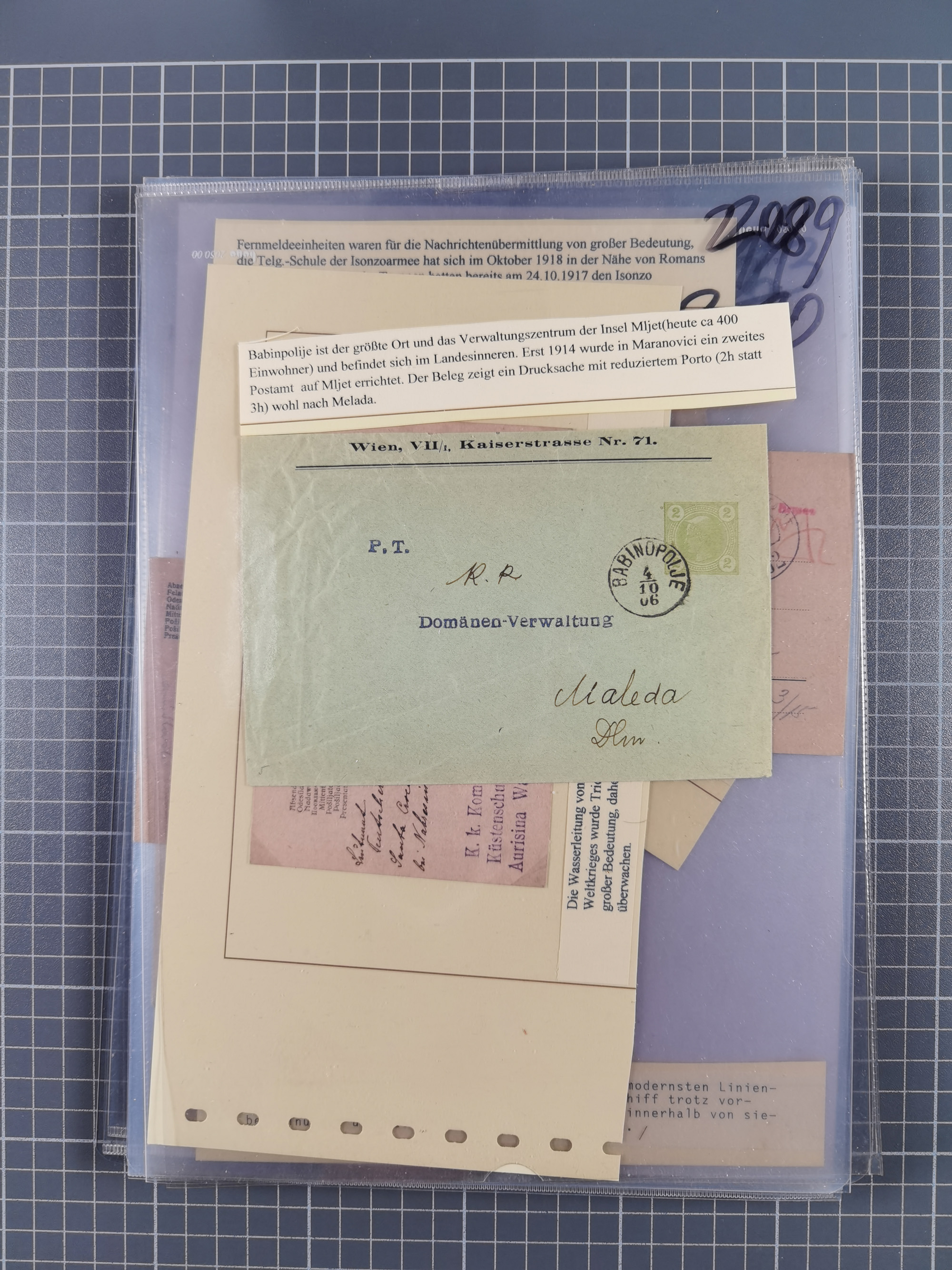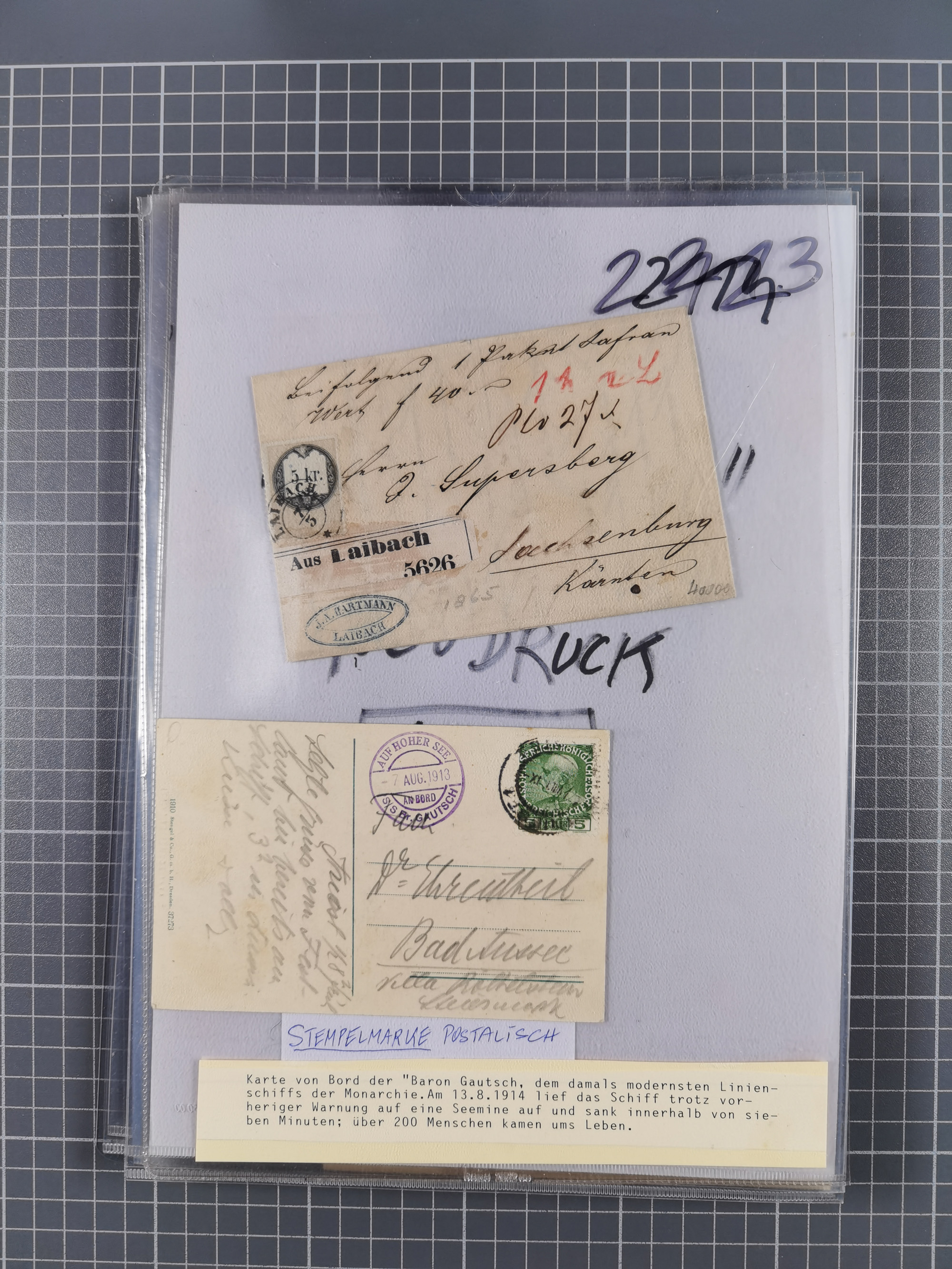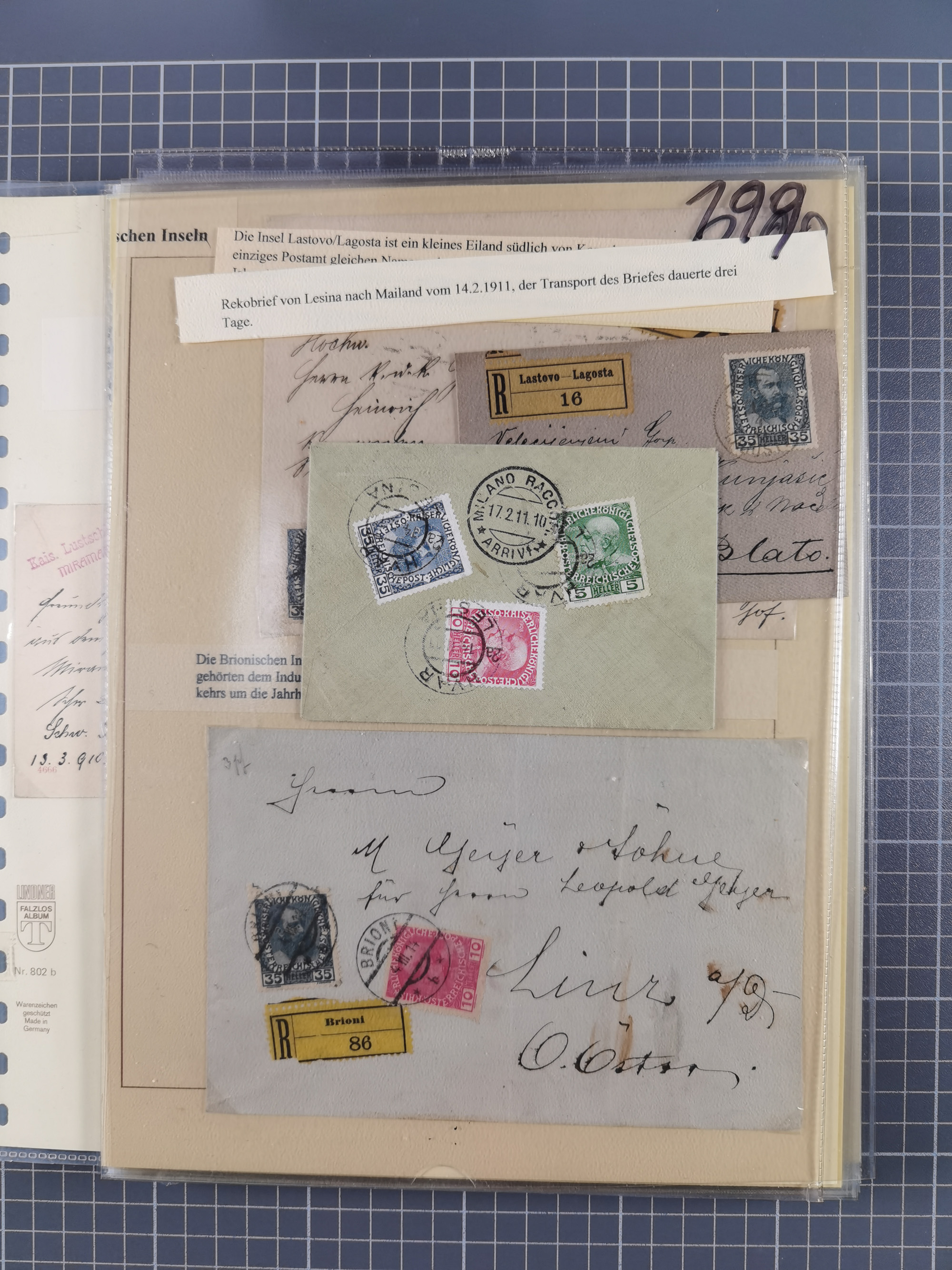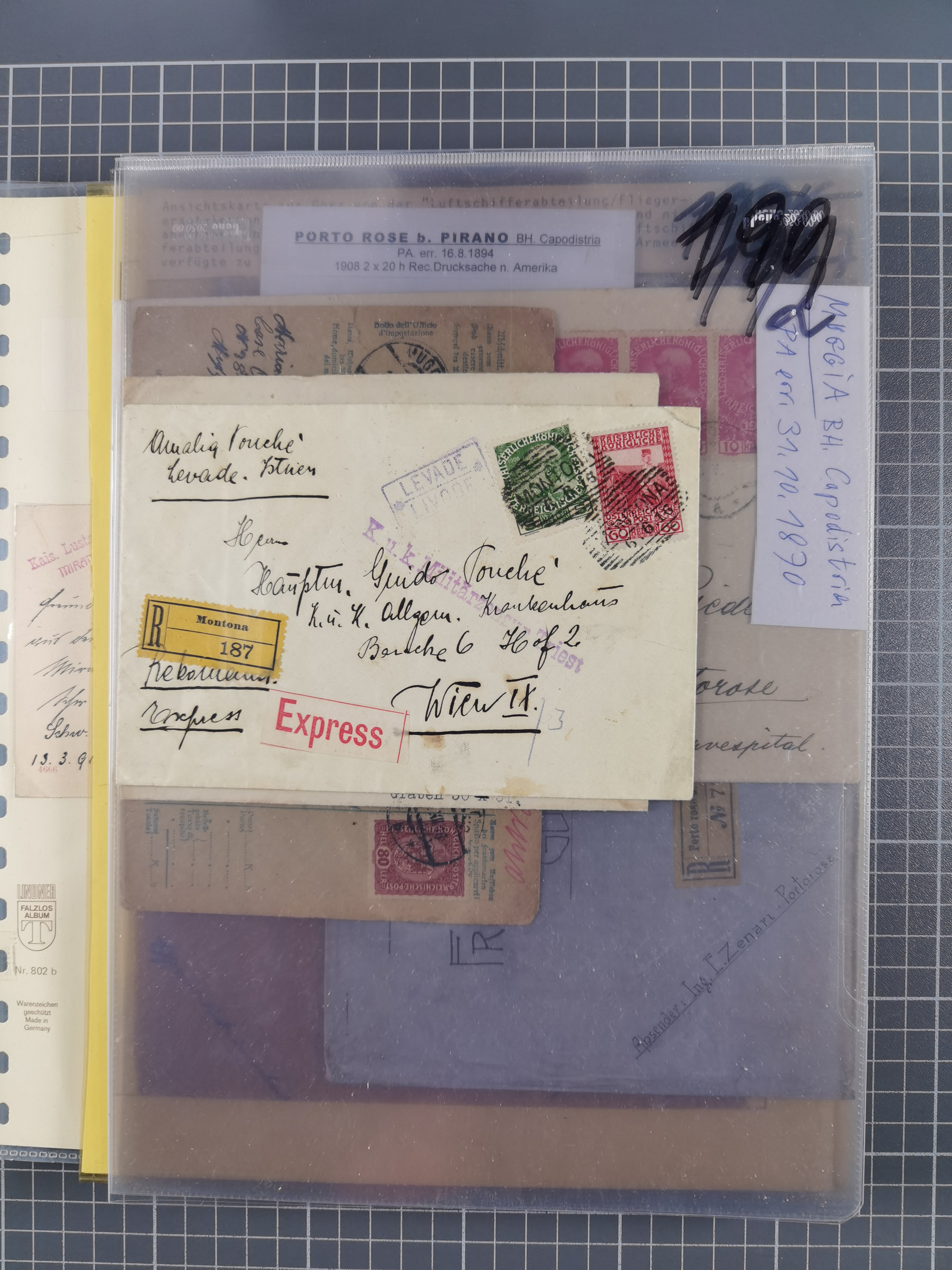 1850/1914, kleine gestempelte Partie mit 16 Briefen und Karten, dabei bessere Stücke mit u.a. Mi.-Nr. 3X (gefaltet) mit “LEOBEN 4. JUNI (1850)” auf Faltbrief nach Vordernberg (erste Woche der Verwendung), Mi.-Nr. 1 mit blauem “HRASTINGO” auf Drucksache-Streifband nach Pesth, Schiffspost mit “METKOVIC-TRIEST 16 III 14 32” auf R-zettel auf Umschlag nach Triest, etc., die Erhaltung etwas leicht unterschiedlich