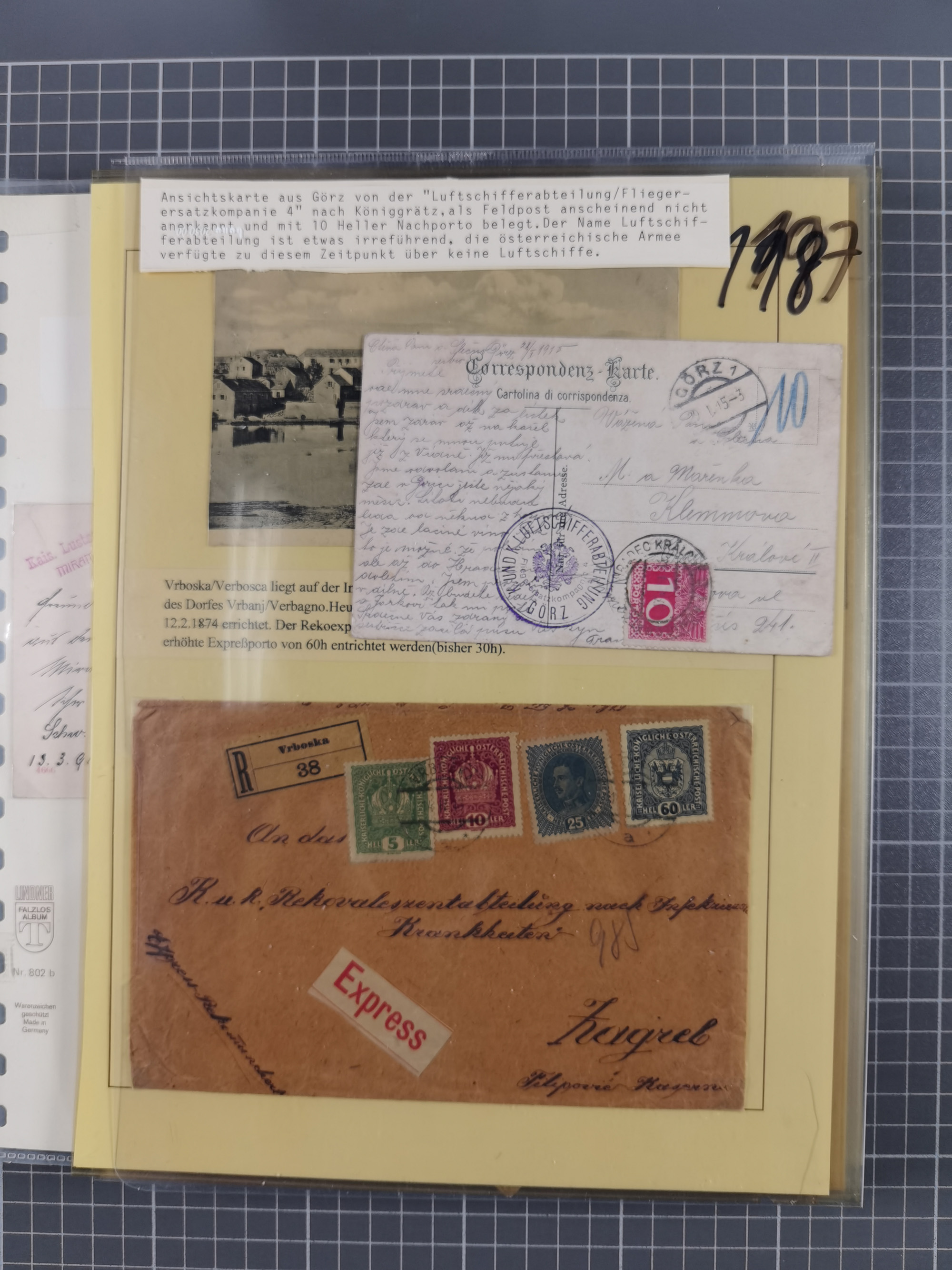 1833/1915 (ca.), postfrische/ungebrauchte und gestempelte Sammlung mit 47 Briefen und Karten, Schwerpunkt Feldpost und spätere Ausgaben, dabei Wertbrief, Rohrpost, Eilboten, Bahnpost R-Brief, Zensur, Mehrfach- und Mischfrankaturen sowie weitere Besonderheiten u. a. mit Einheiten, Briefstücke, Fellner-Neudruck, bessere Stücke mit Mi.-Nr. 156 10 Kr. 4er-Block gestempelt, etc., ein empfohlenes Objekt