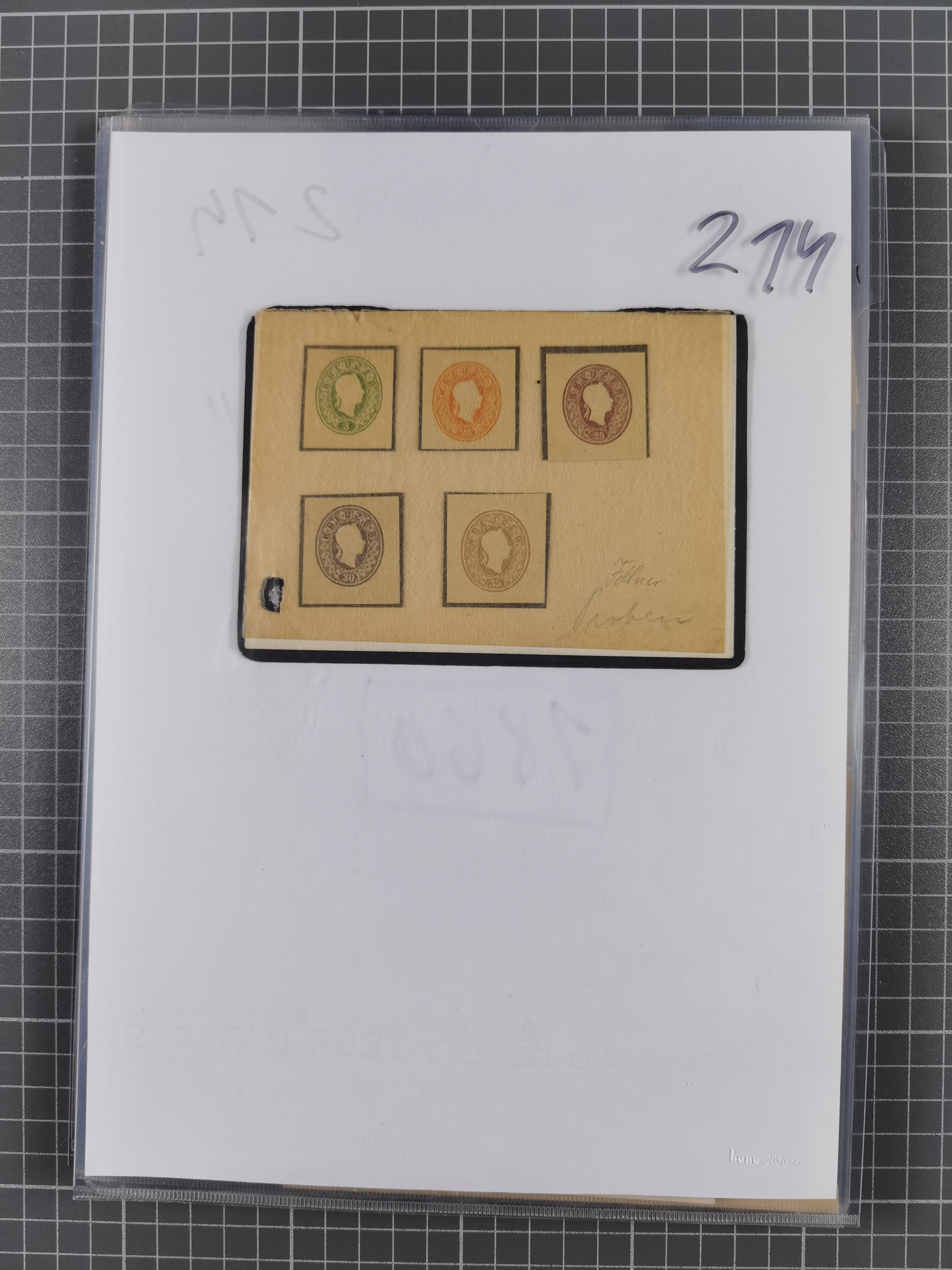 1850/54, 1. Ausgabe, 5 Briefe und 2 Briefstücke, dabei Fahnenstempel von Grinzing und Perchtoldsdorf je auf Brief, blauer L1 Meidling auf Avis und 3 Stücke Post in Rumänien bzw. Serbien. Ein Attest und 3 Befunde.
