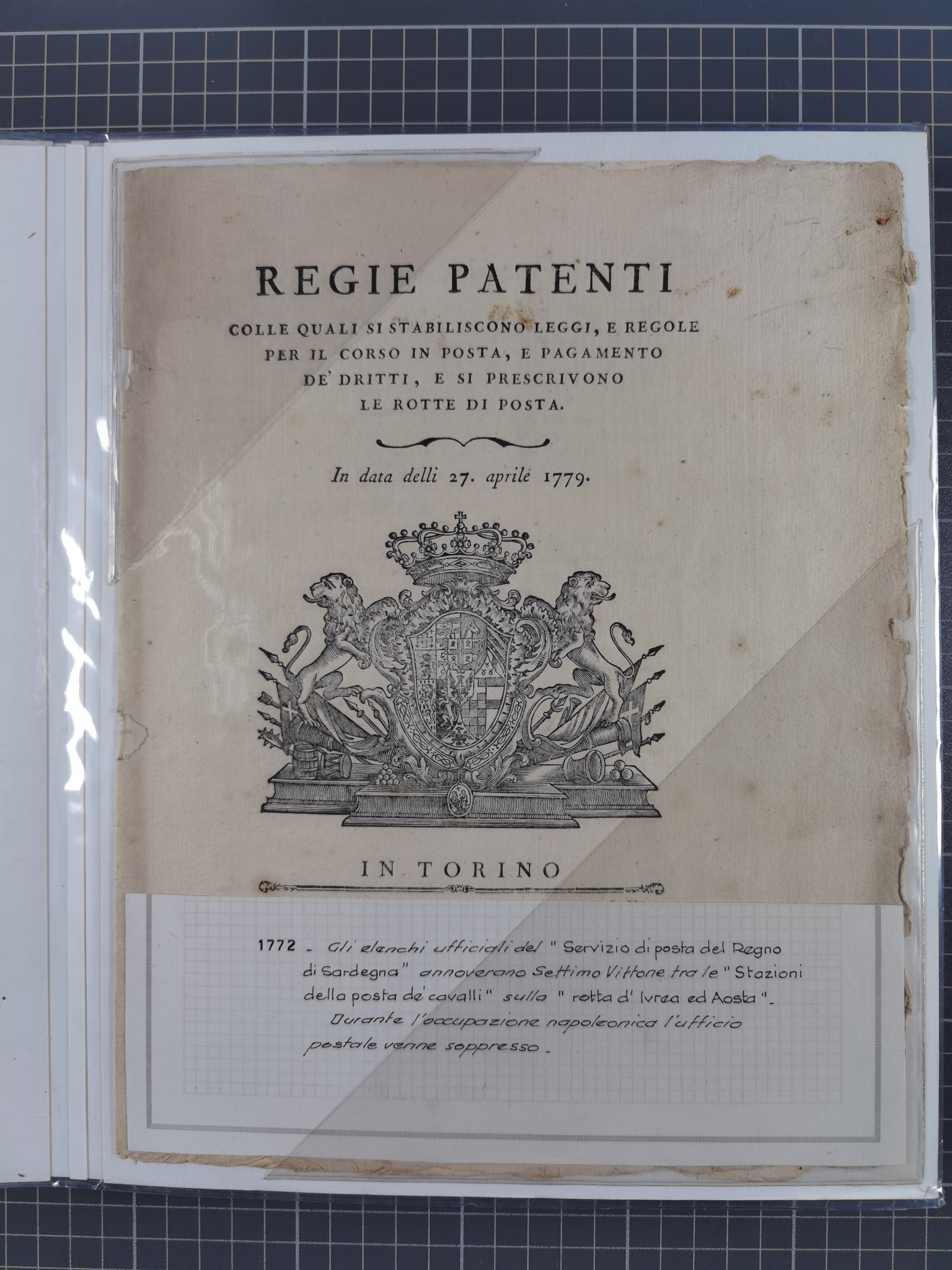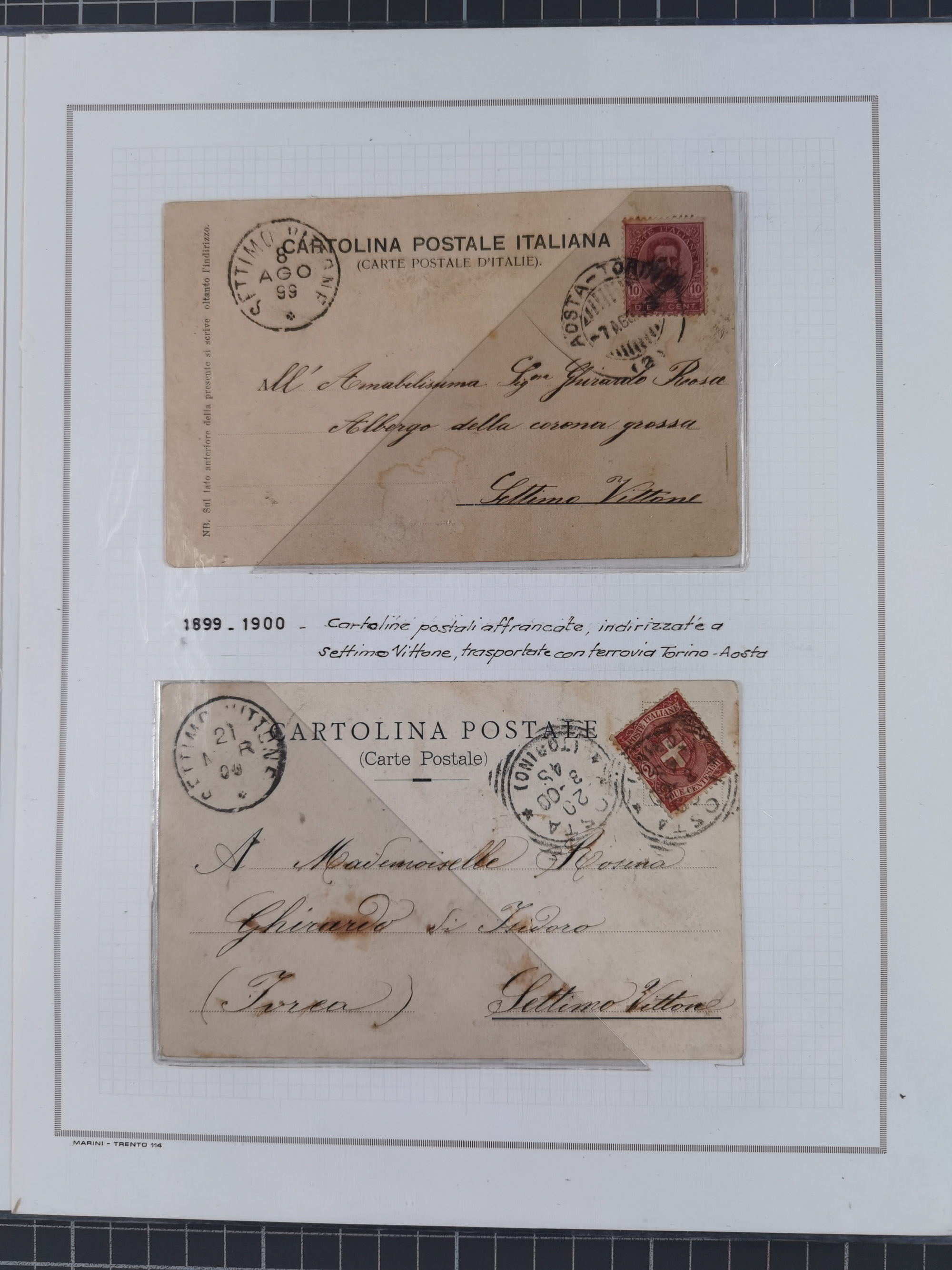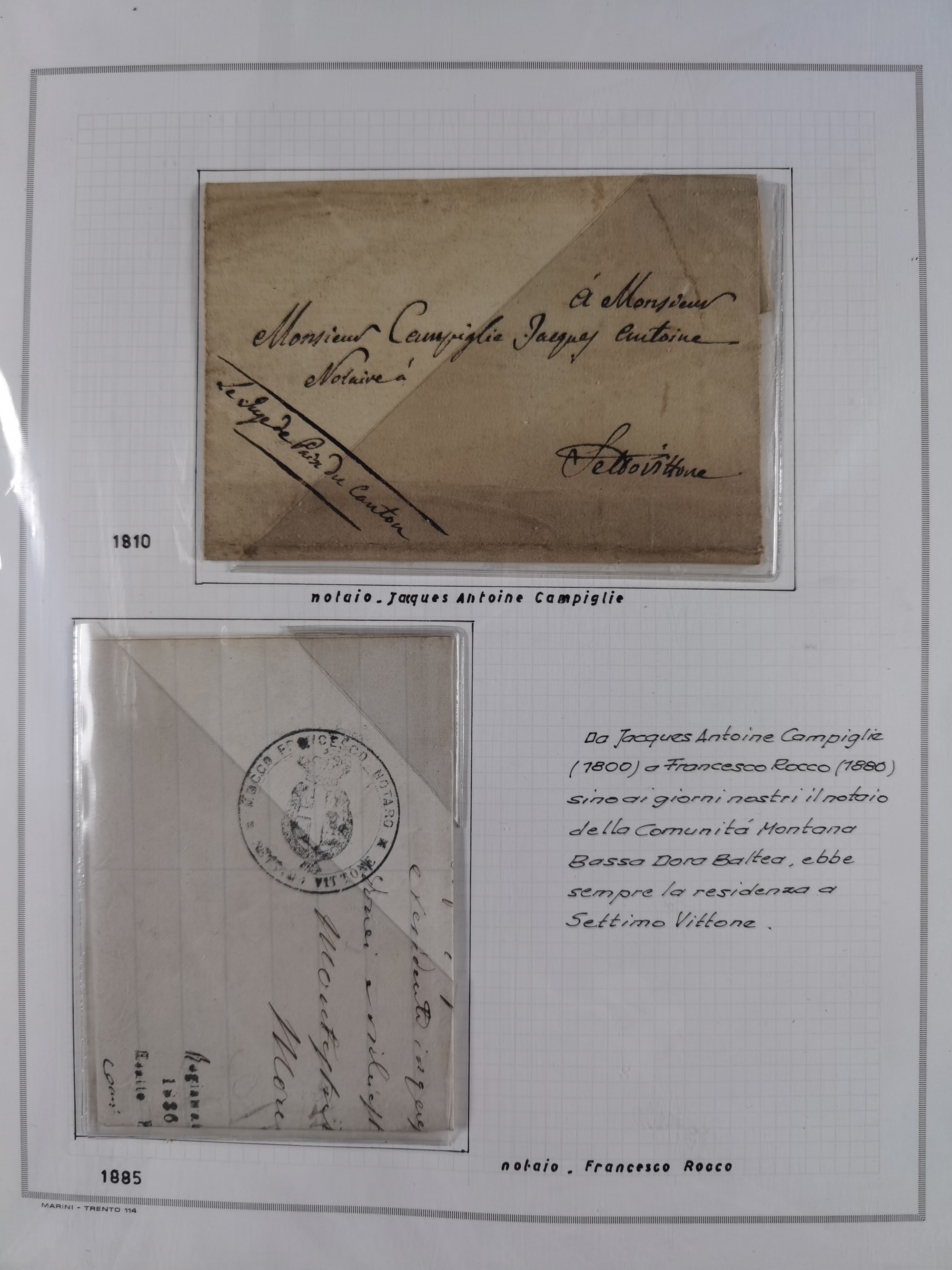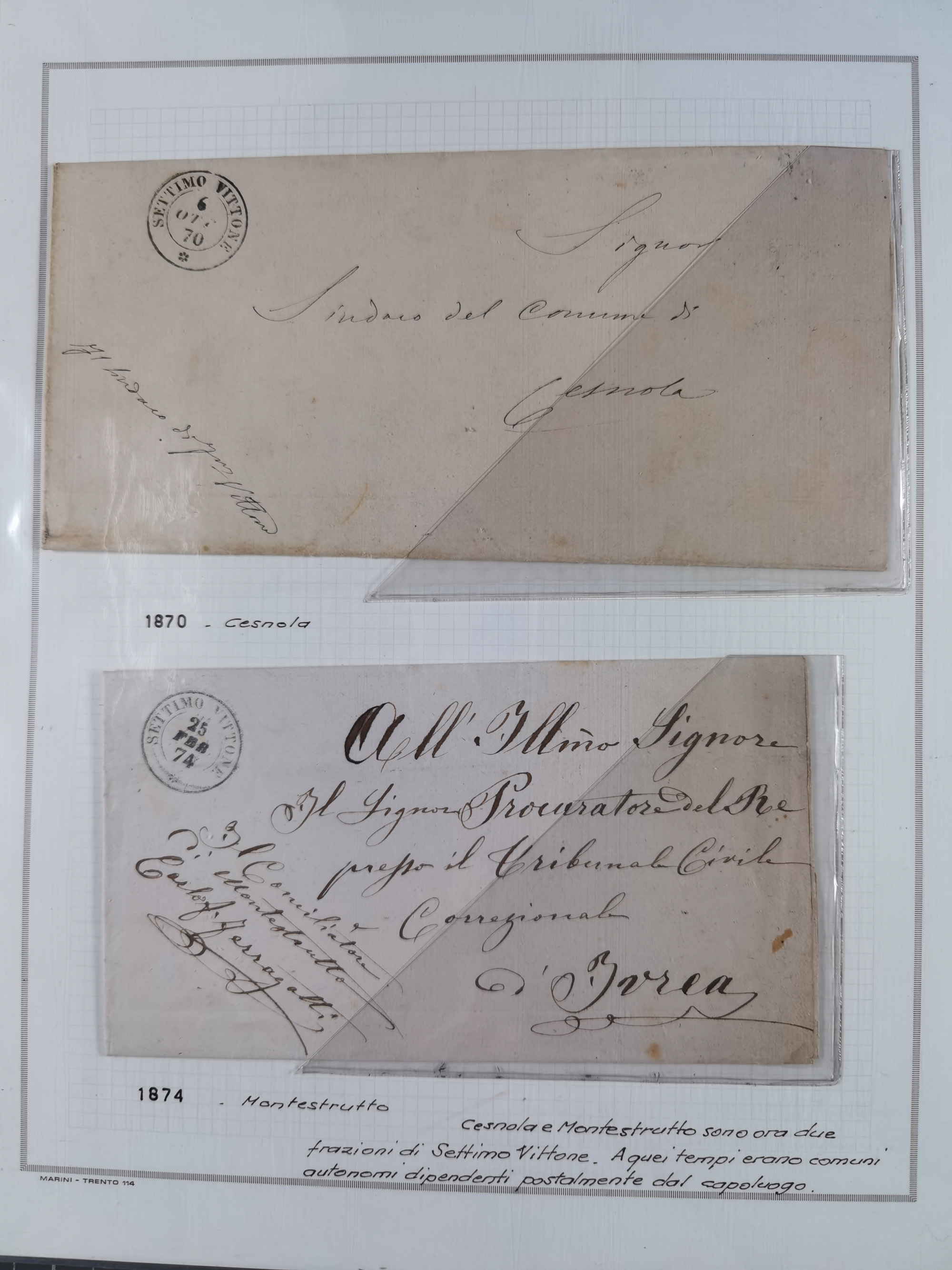 SARDINIEN: 1772/1960, Ausstellungssammlung “Die Stempel der Berggemeinschaft Bassa Dora Baltea” mit über 100 Briefen und Dokumente, Schwerpunkt mit ca. 80 Belegen ab der Napoleonischen Zeit bis ca. 1944, später einige frankierte Briefe, Ansichtskarten sowie Postscheine, sauber in drei Alben