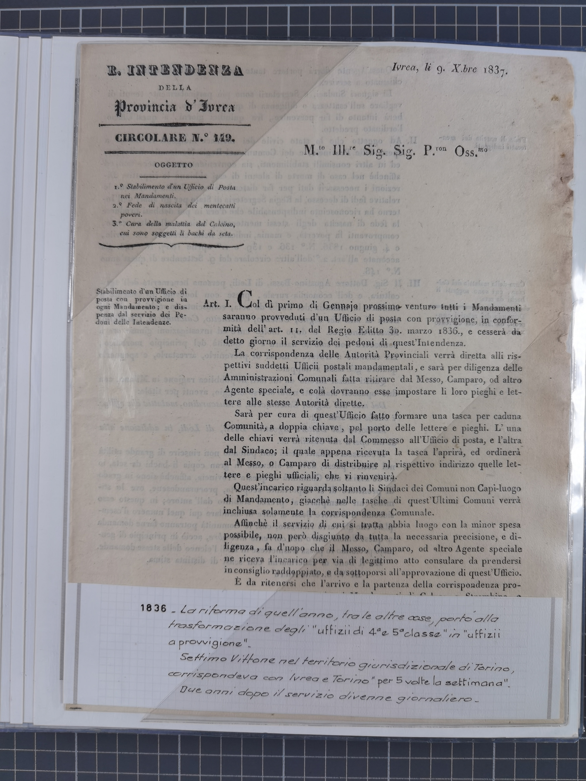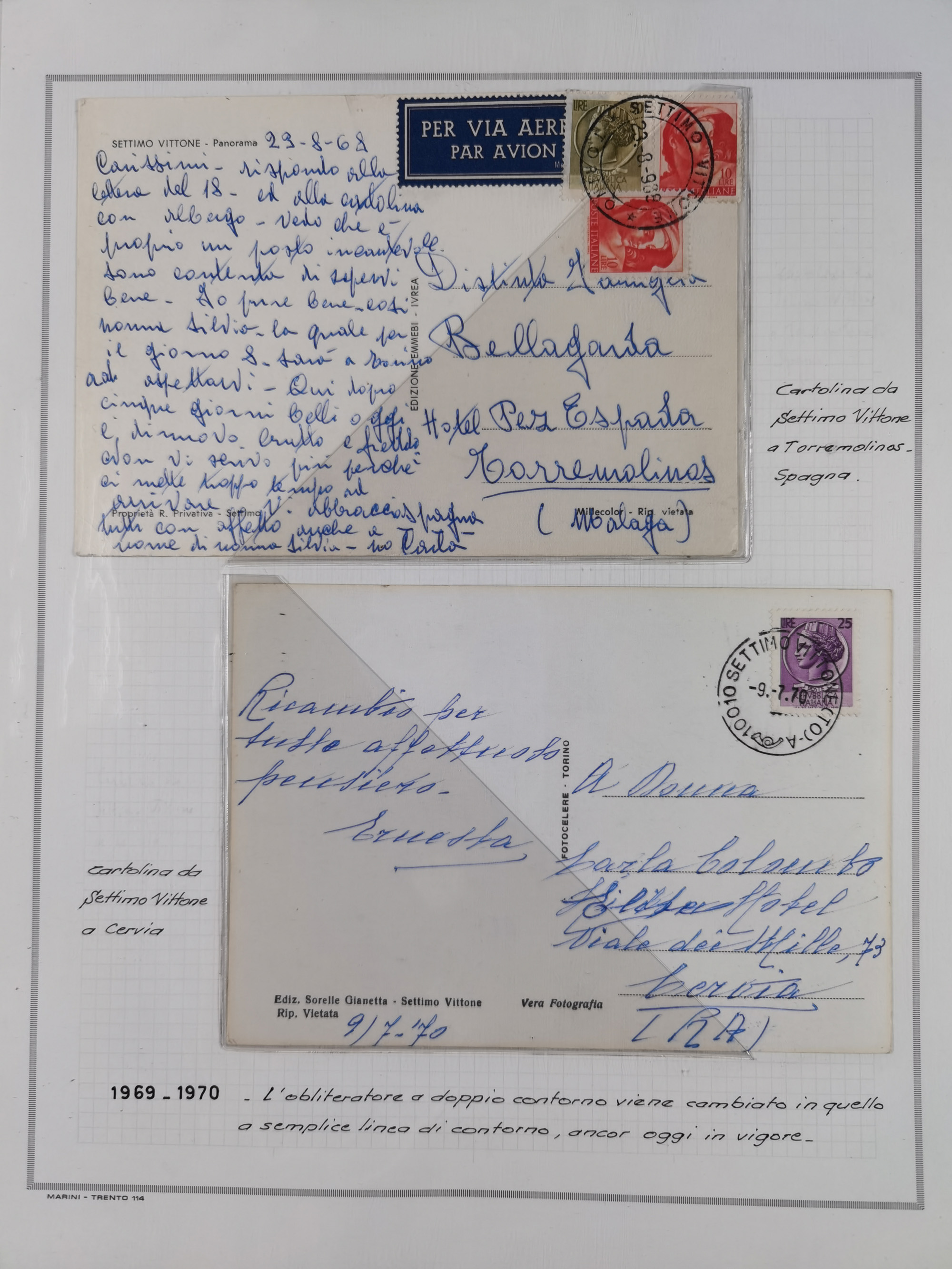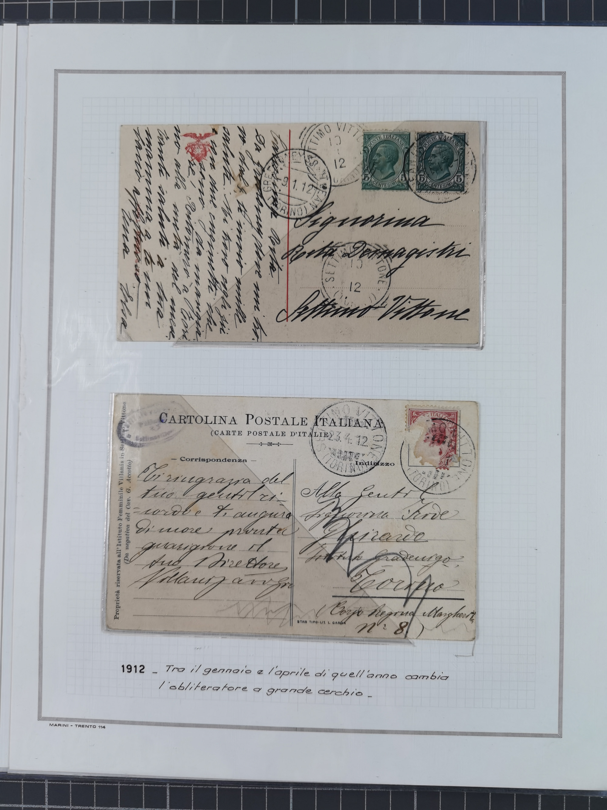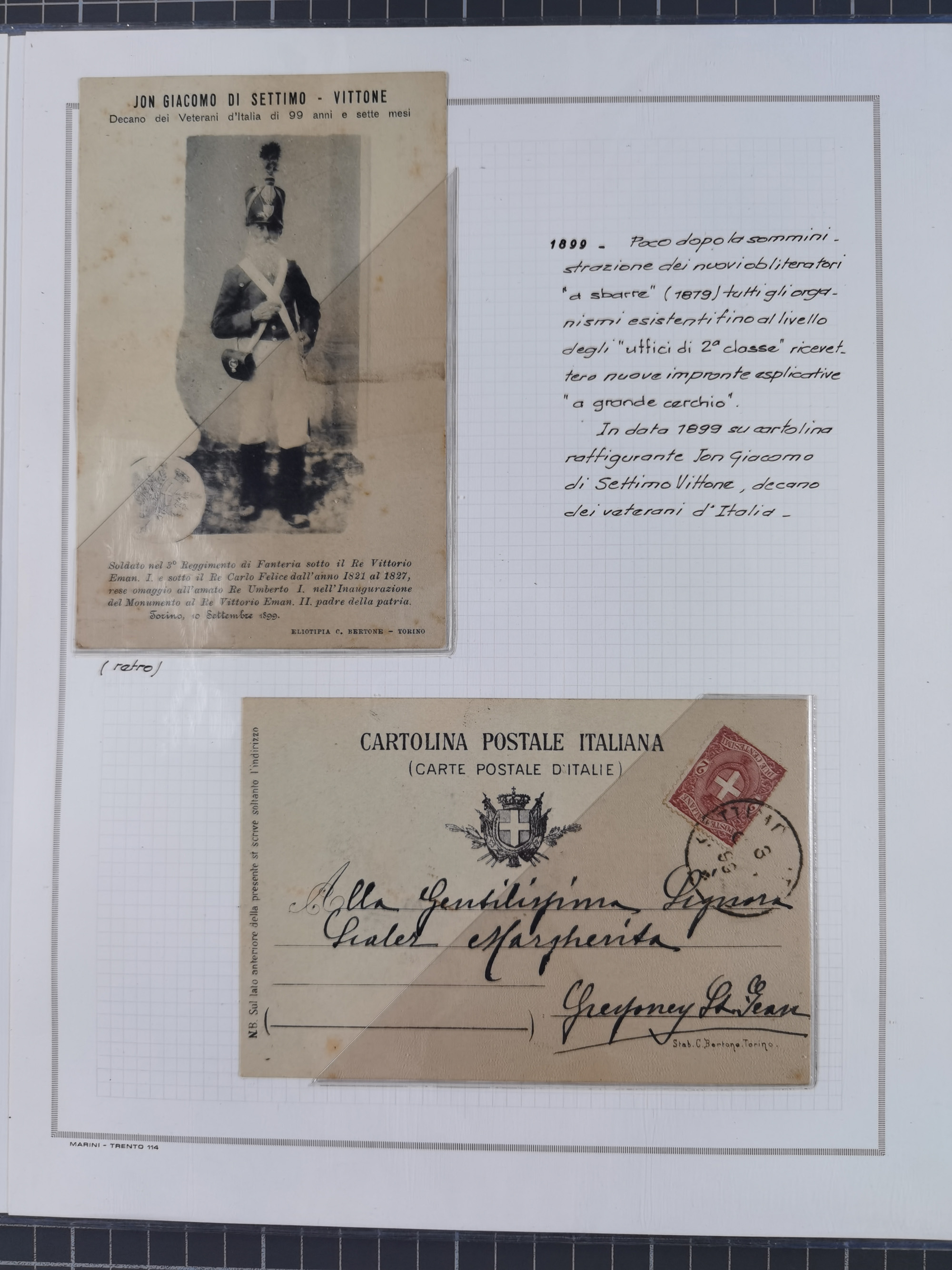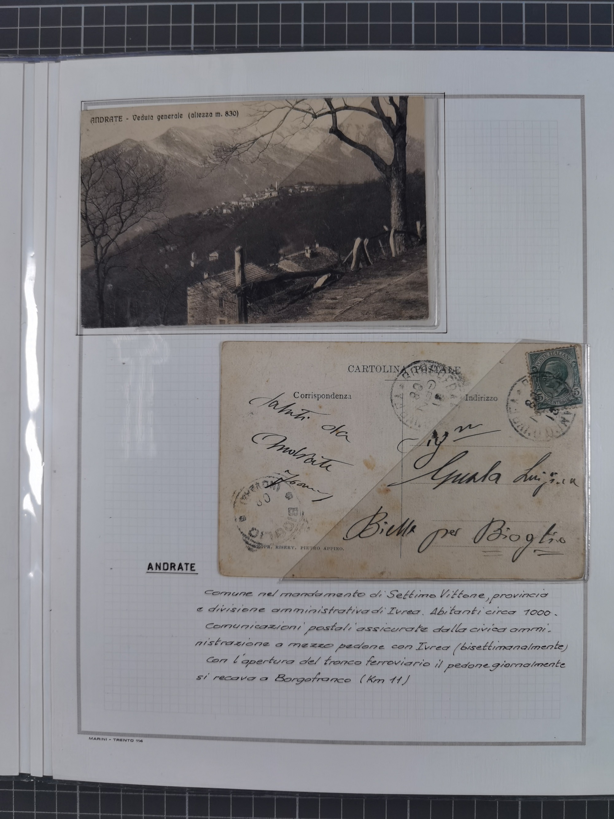 SARDINIEN: 1772/1960, Ausstellungssammlung “Die Stempel der Berggemeinschaft Bassa Dora Baltea” mit über 100 Briefen und Dokumente, Schwerpunkt mit ca. 80 Belegen ab der Napoleonischen Zeit bis ca. 1944, später einige frankierte Briefe, Ansichtskarten sowie Postscheine, sauber in drei Alben