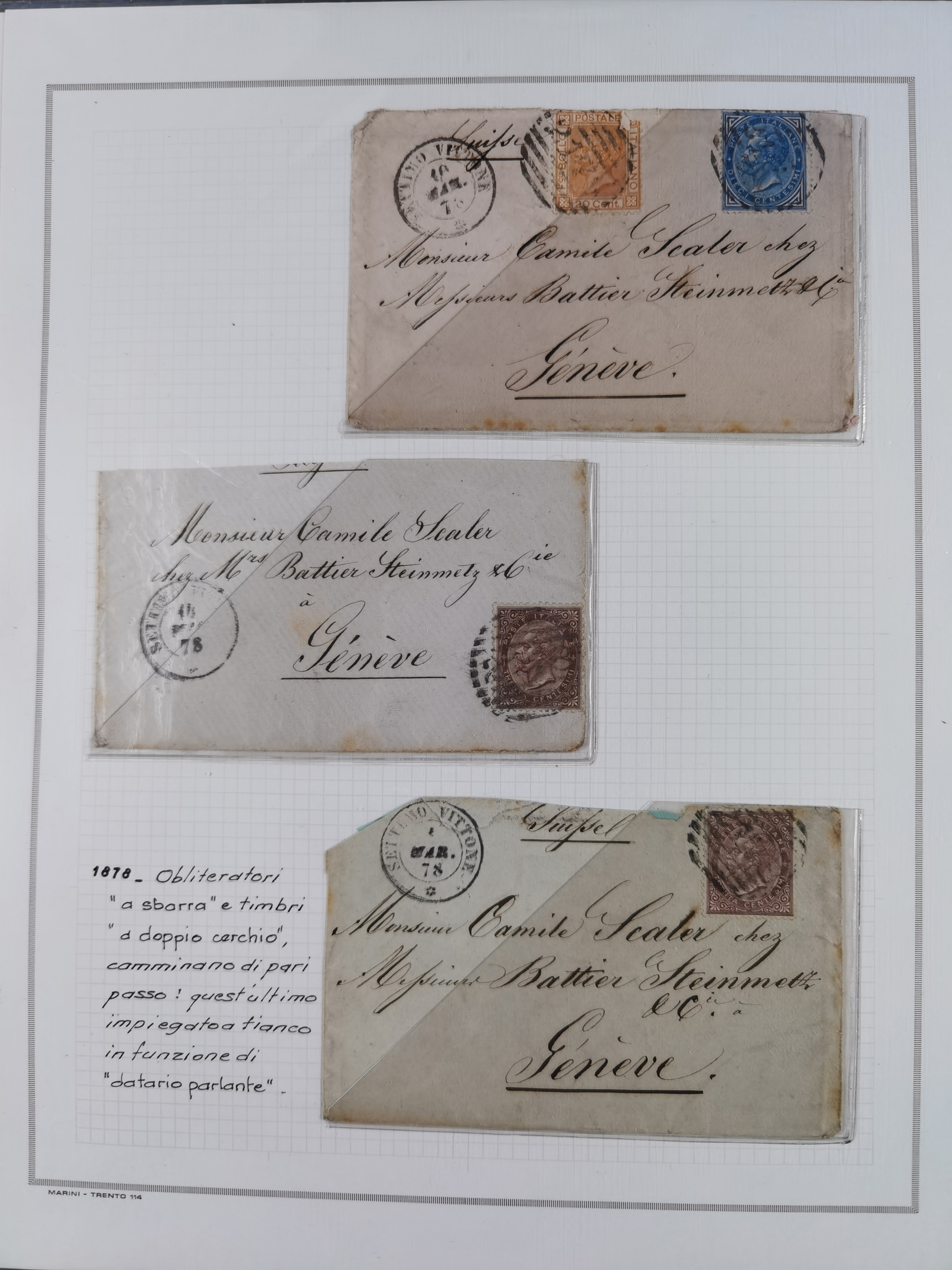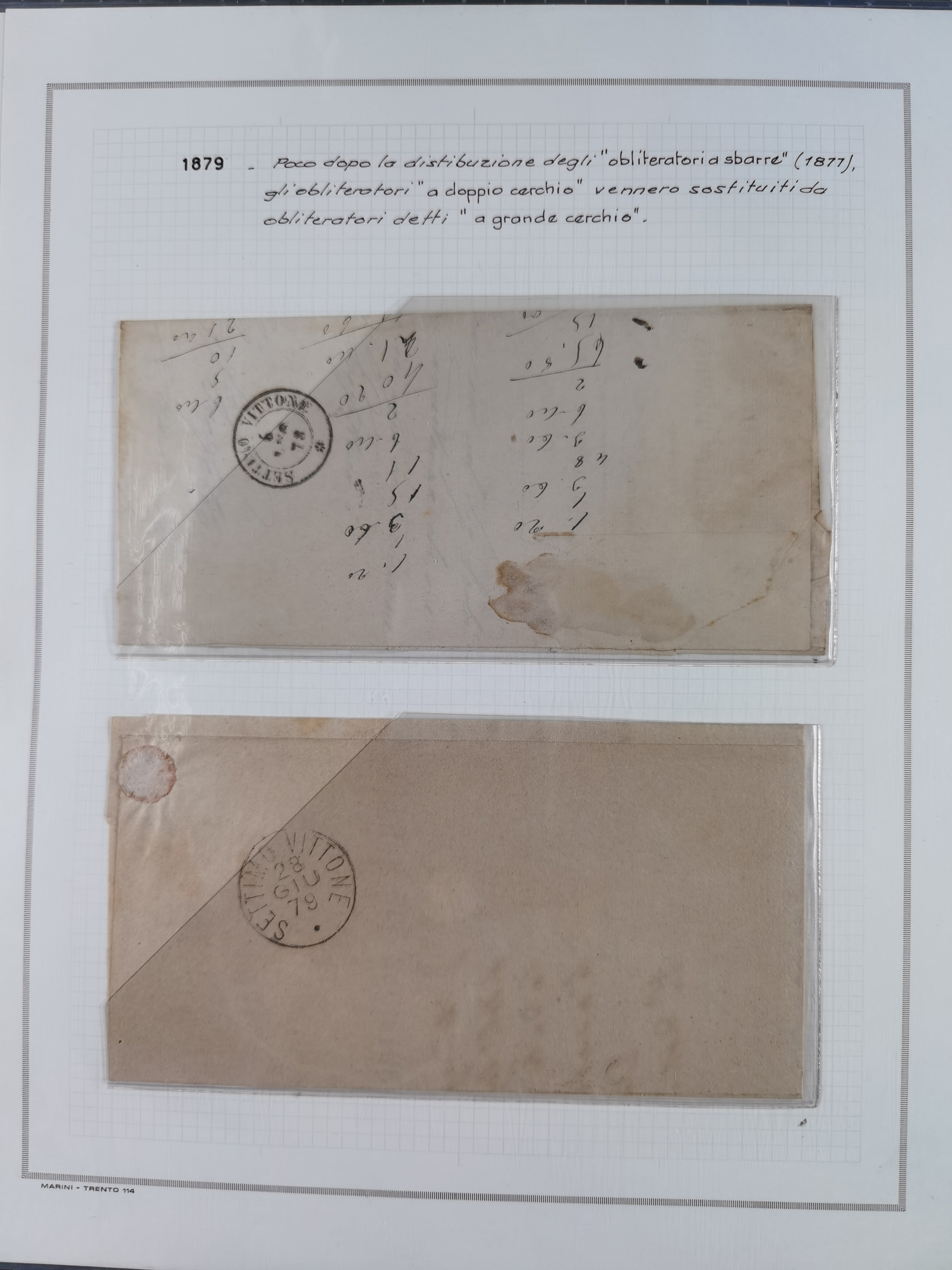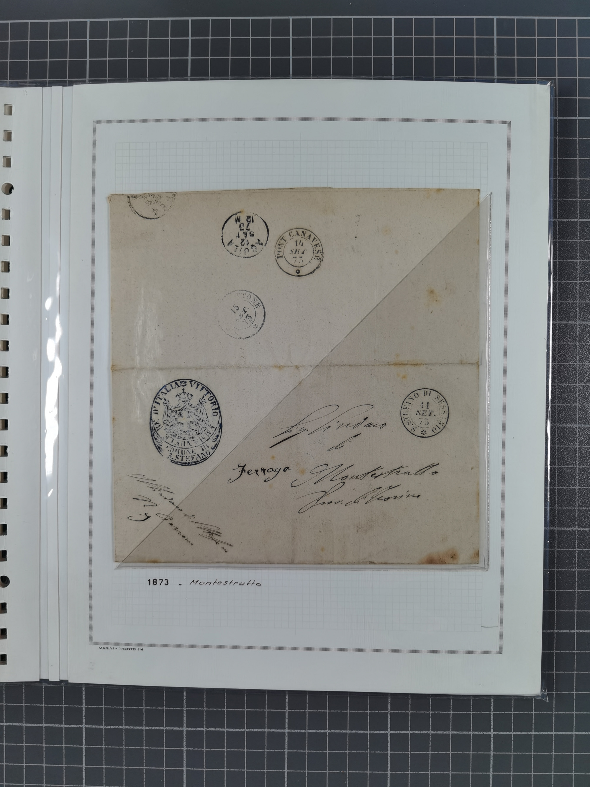 KIRCHENSTAAT: 1630/1886, sehr reichhaltige Sammlung mit über 370 Briefen und Dokumenten, darunter u. a. ein Dokument über die Belegung der Lazarette in Rom während der Pestwelle von 1656, Pestbelege von 1630, Hinweise zu Leichnamen (1690) ,ab 1796 mit ”Ufficio di Sanità di Bologna“, kpl. Faltbrief mit Vordruck “Repubblica Cisalpina“ an die Gemeindeverwaltung von Crevalcore (1800), doppelte Desinfektion (1837) sowie zahlreiche seltene Stempel, spezialisiert und nach verschiedenen Desinfektionsanstalten gegliedert. Diverse Briefe mit Marken Altitaliens sowie drei Briefe Incoming Mail aus Frankreich 1865/66 (20+80 c., 4×10 c. und 40 c., alle mit rotem L2 "Affr. Insufficient“). Ausstellungsmäßig beschrieben, sauber in 10 Marini Drehstab-Alben