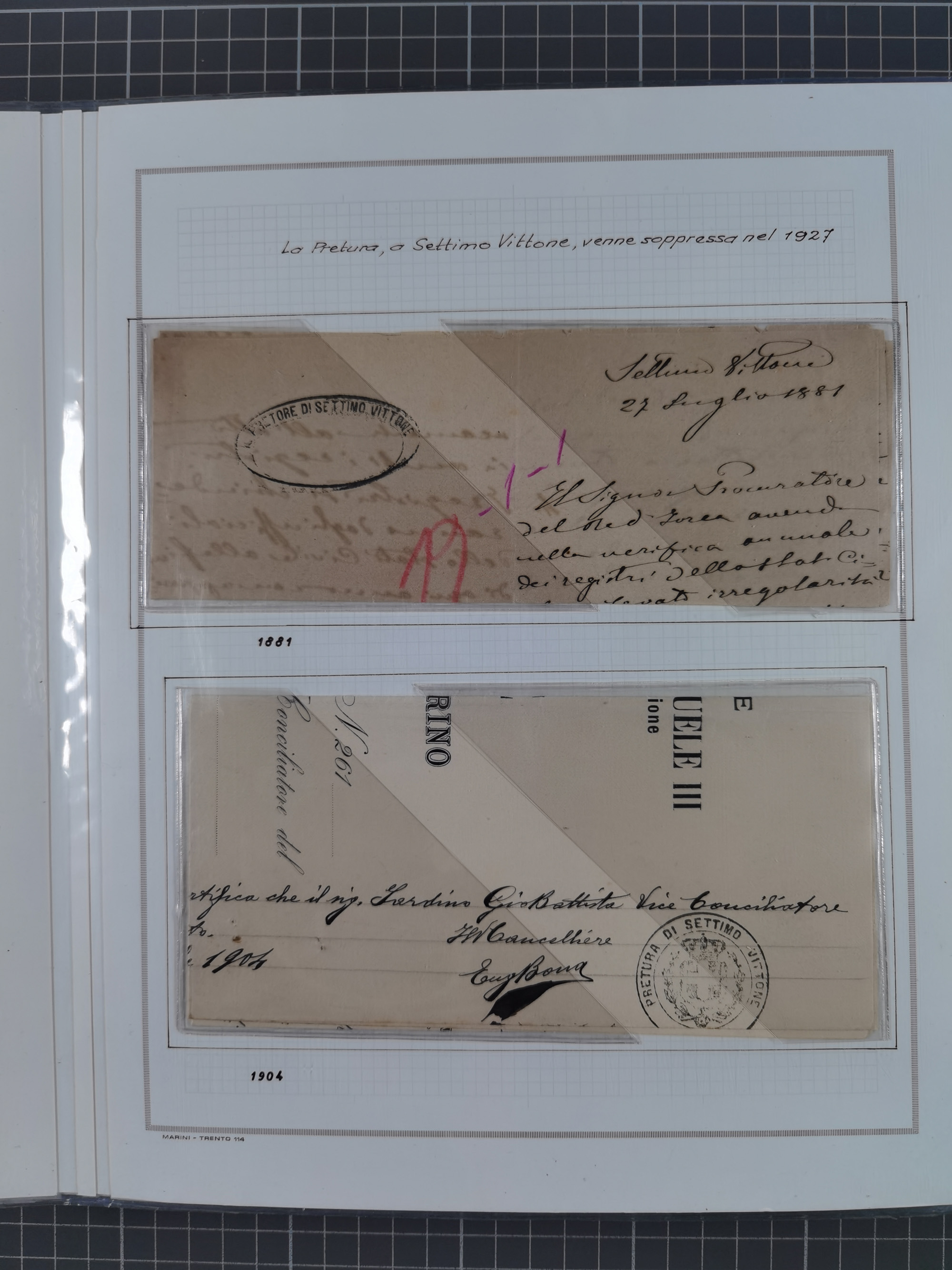 SIZILIEN: 1826/83, 26 Briefe und Dokumente beider Sizilien, dabei Liste illegaler Händler (Hebammen und Aderlassanbieter) im Bezirk Barletta, Briefe an und von Bürgermeistern und Gesundheitsbehörden und Ministern, verschiedene Stempel, etc., einige desinfiziert mit Räucherschlitzen, sauber beschrieben im Album
