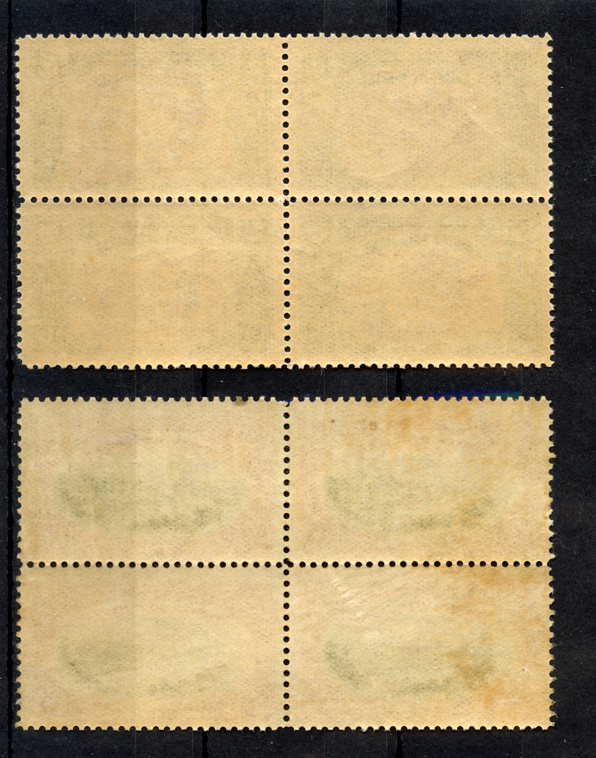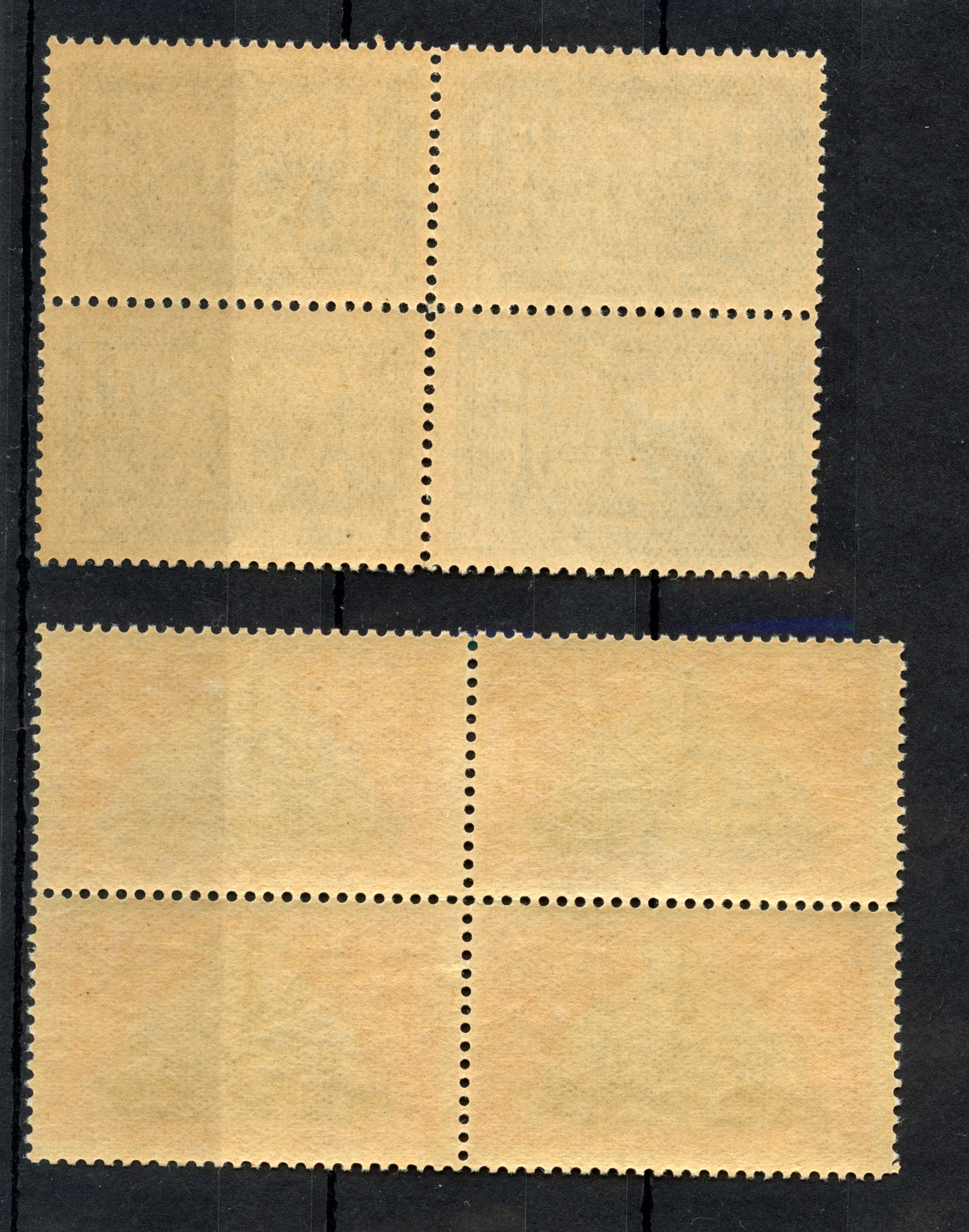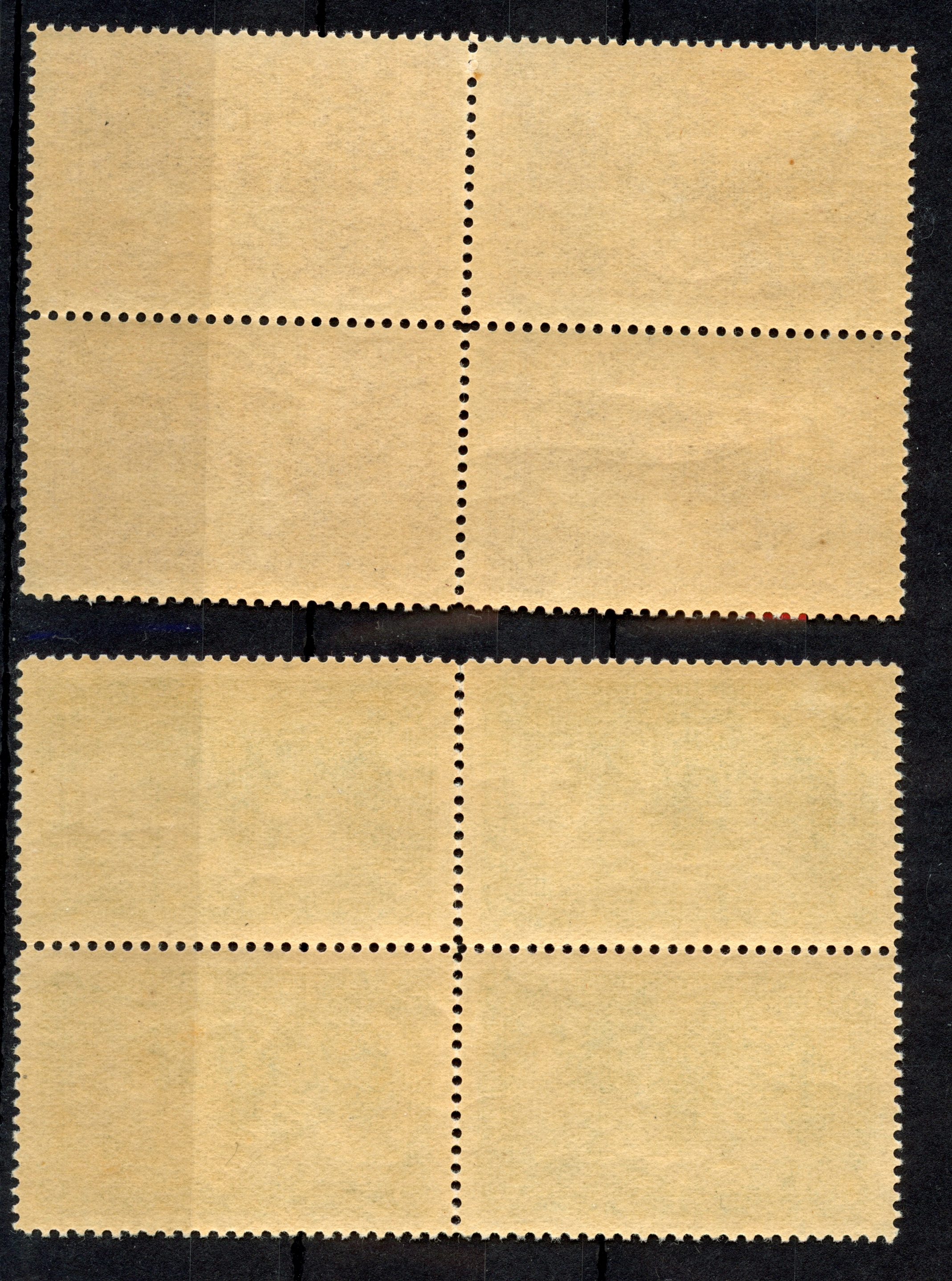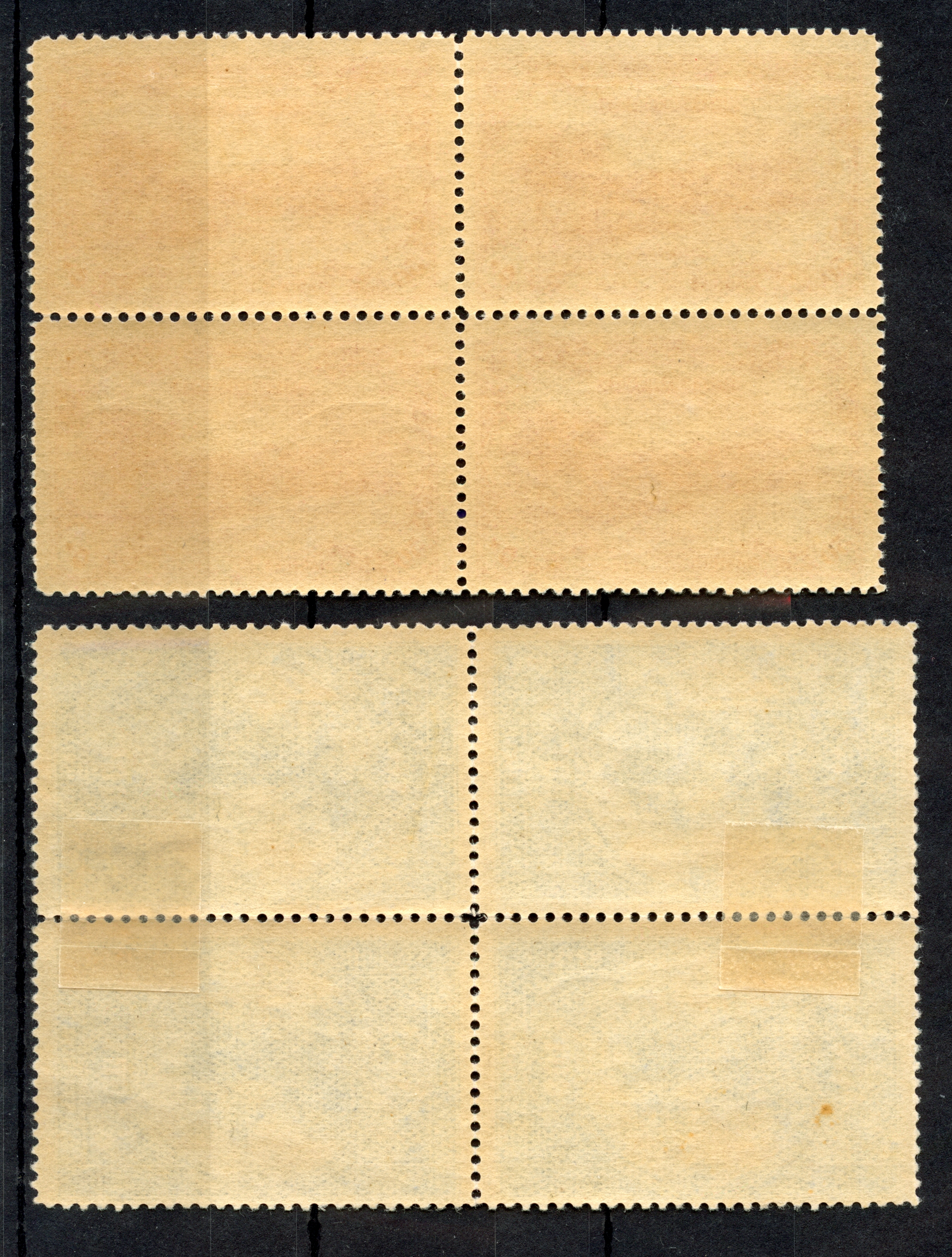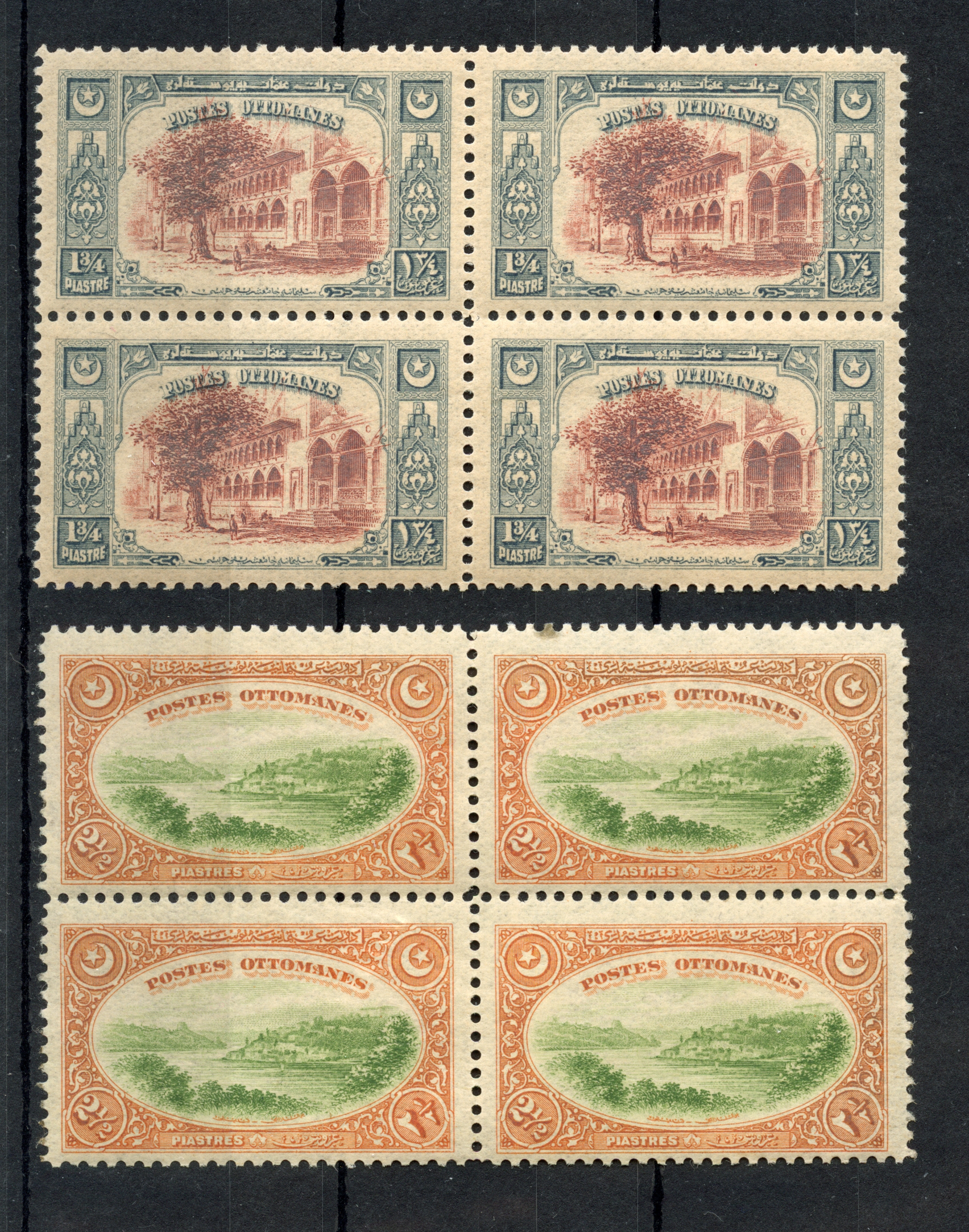 2 pa. – 200 ghr. in blocks of 4, unused with o.g.. few perfs split and strengthened by hinges, but generally very fine. A scarce set in this condition. 200 ghr. with certificate ISFILA (2012)