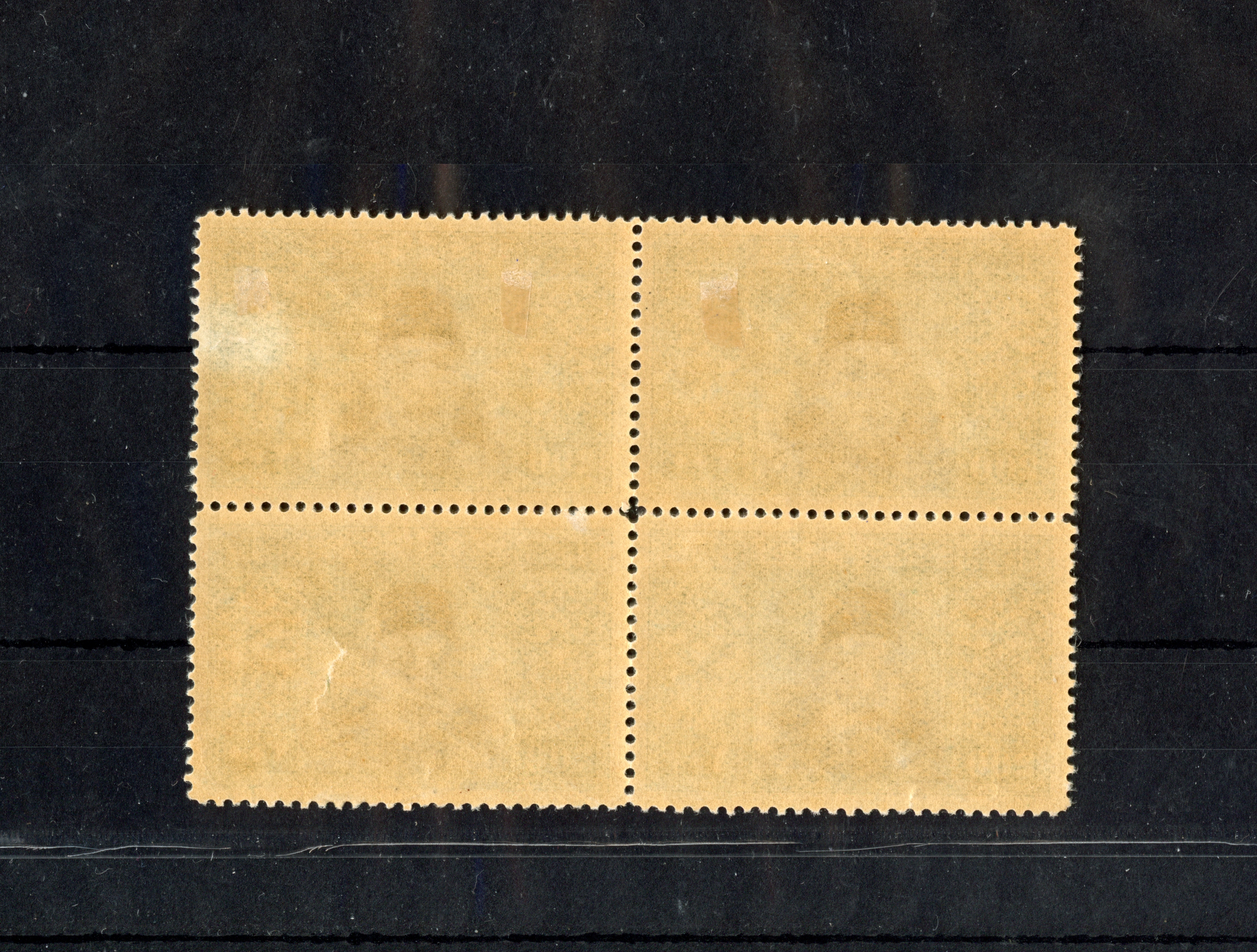 1921, Notarial Fiscal 5 pia. rose instead of carmine (Michel not cat.) typo overprinted 1337, block of four, unused, pos. 16-17 and 21-22, very fine and scarce. (Isfila catalogue value 1.670,-€++)