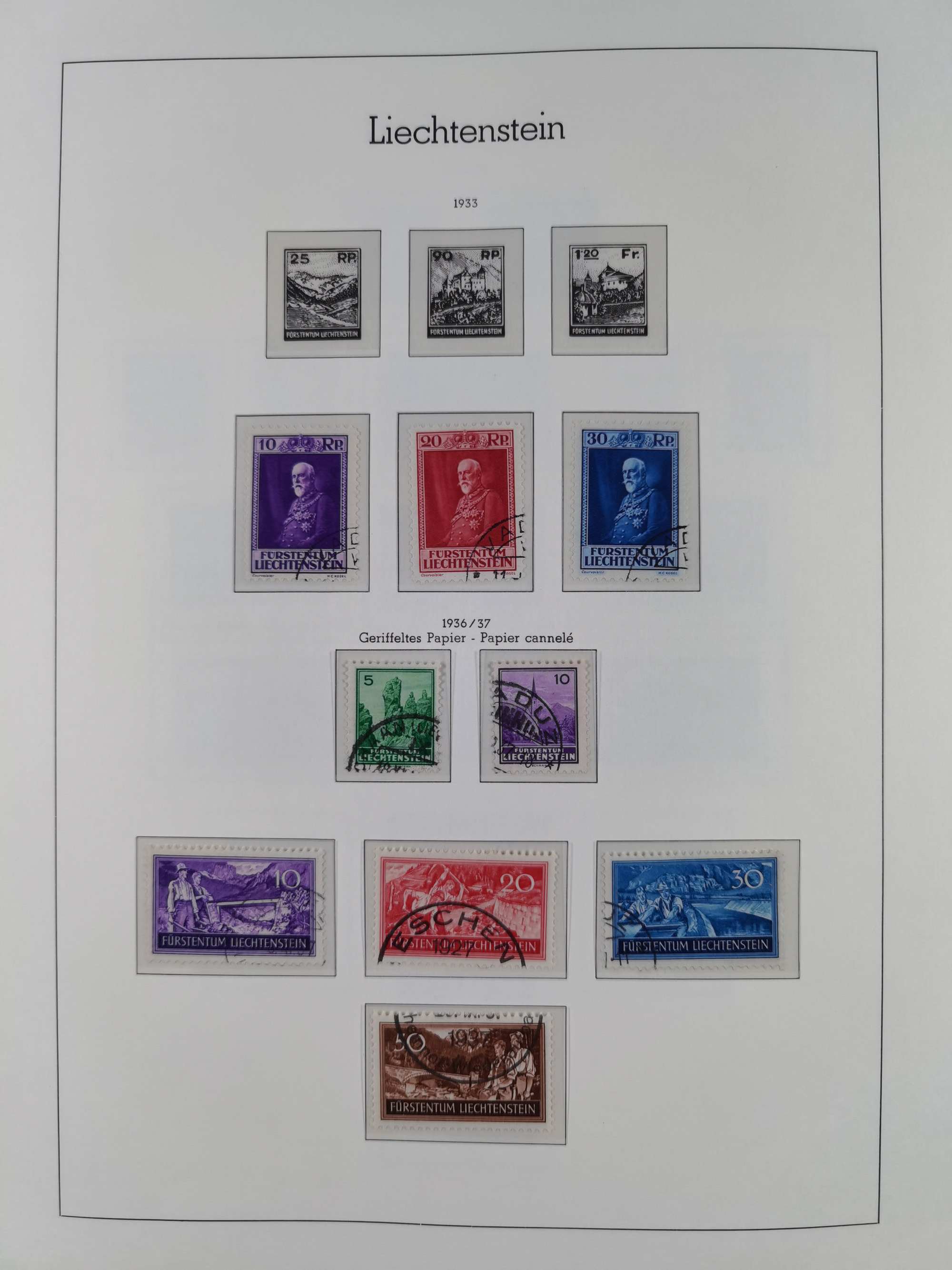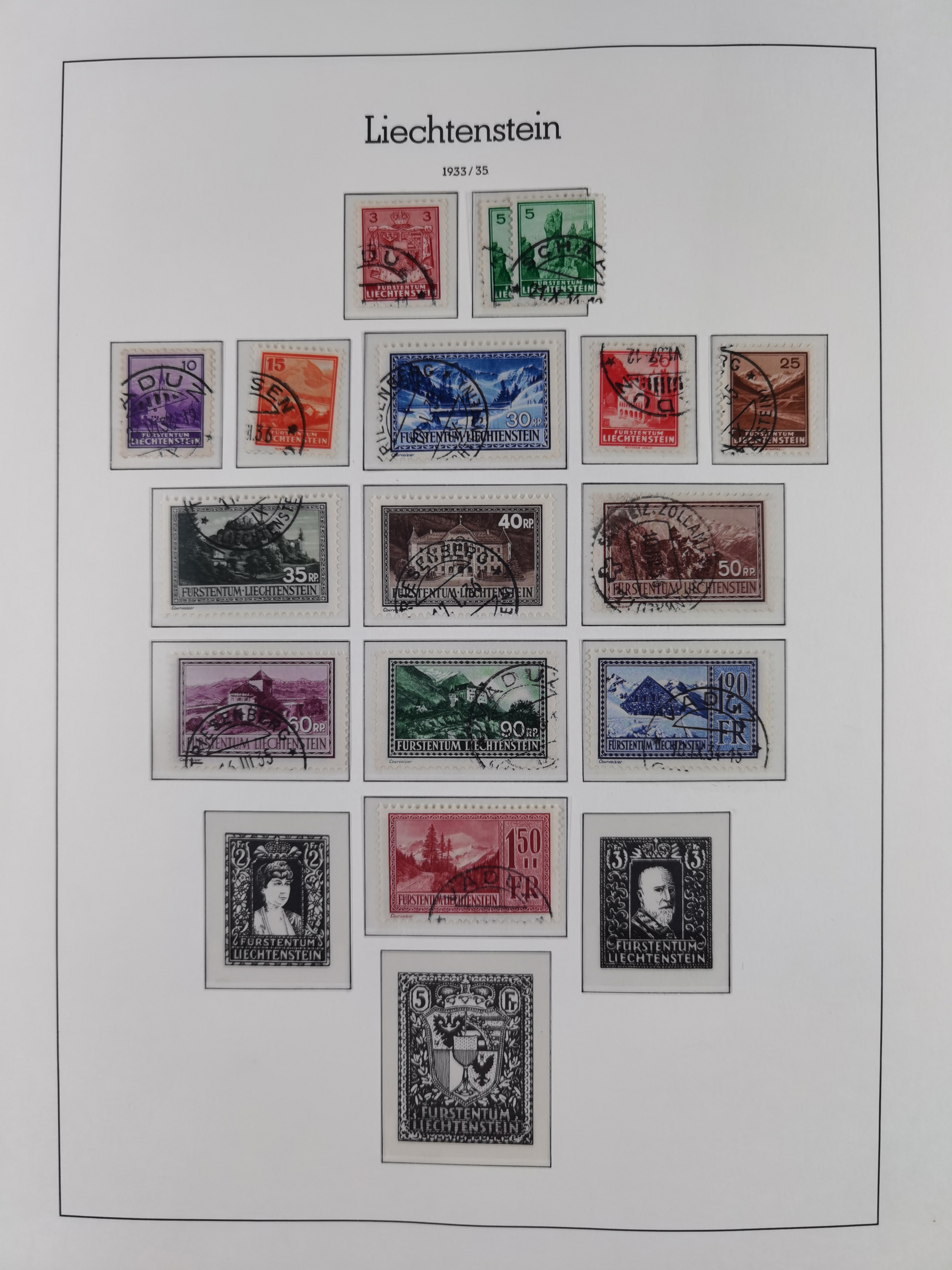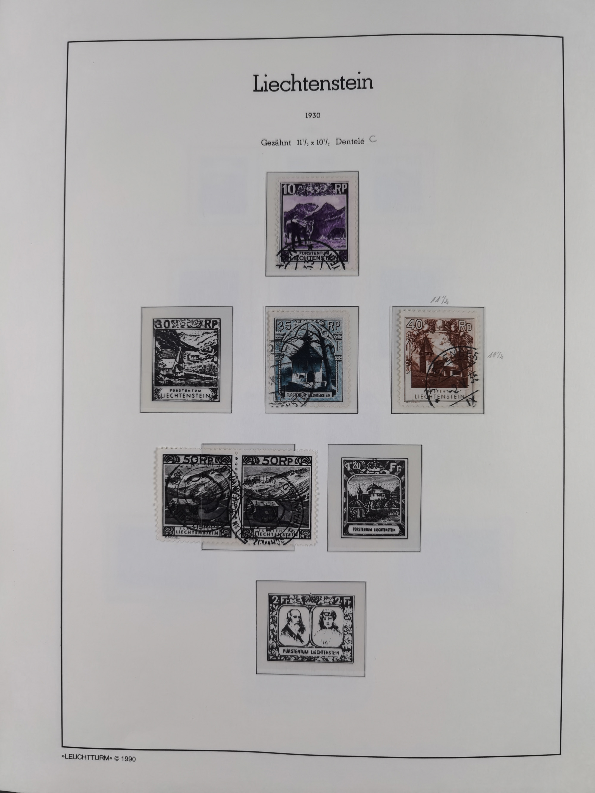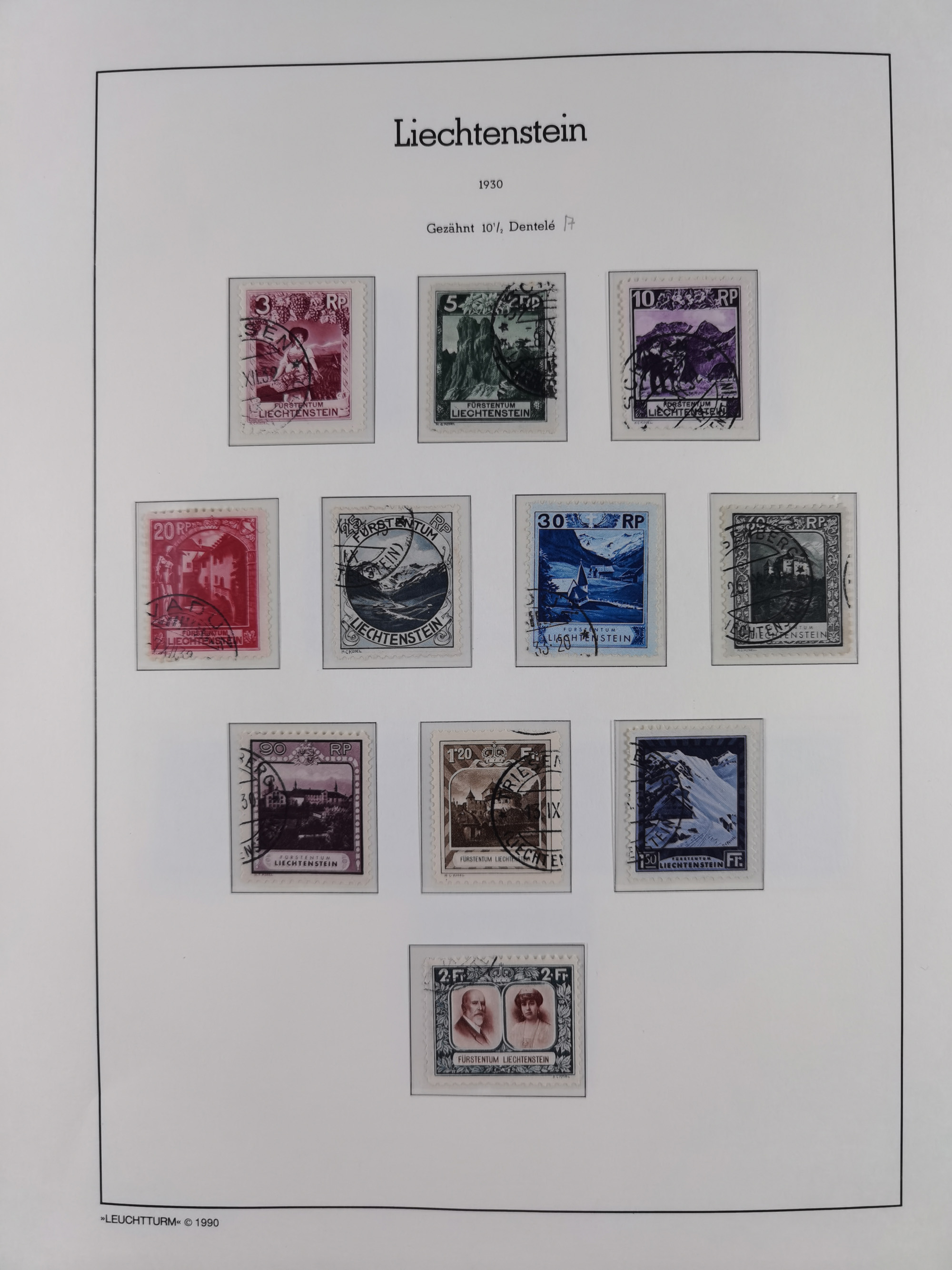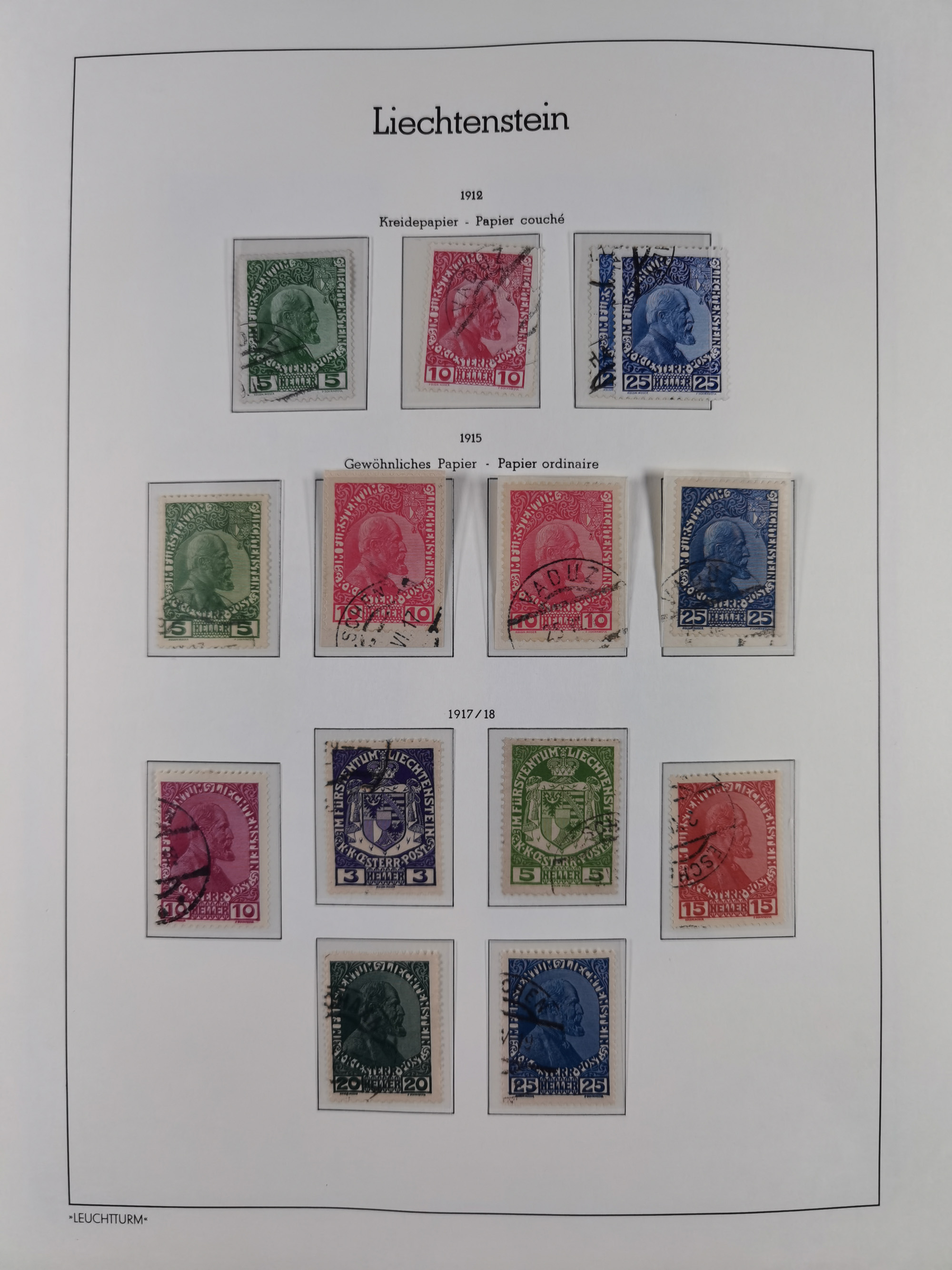 1912/85, Sammlung in gestempelter Erhaltung auf Leuchtturm Vordruckblättern ab 1-3, dabei Mi.3ya, 53-60, 72-77, 82-89, 94-107 mit Zähnungen B und C, 122-24, 126-139, Bl.1 mit leichten Flecken (Attest Rupp), 15-69, 171 (Attest), 309, 332-33, Flugpost 1930 auf Satzbrief, spätere Ausgaben über weite Strecken komplett mit vielen Attesten, dazu Nachporto und Dienst.