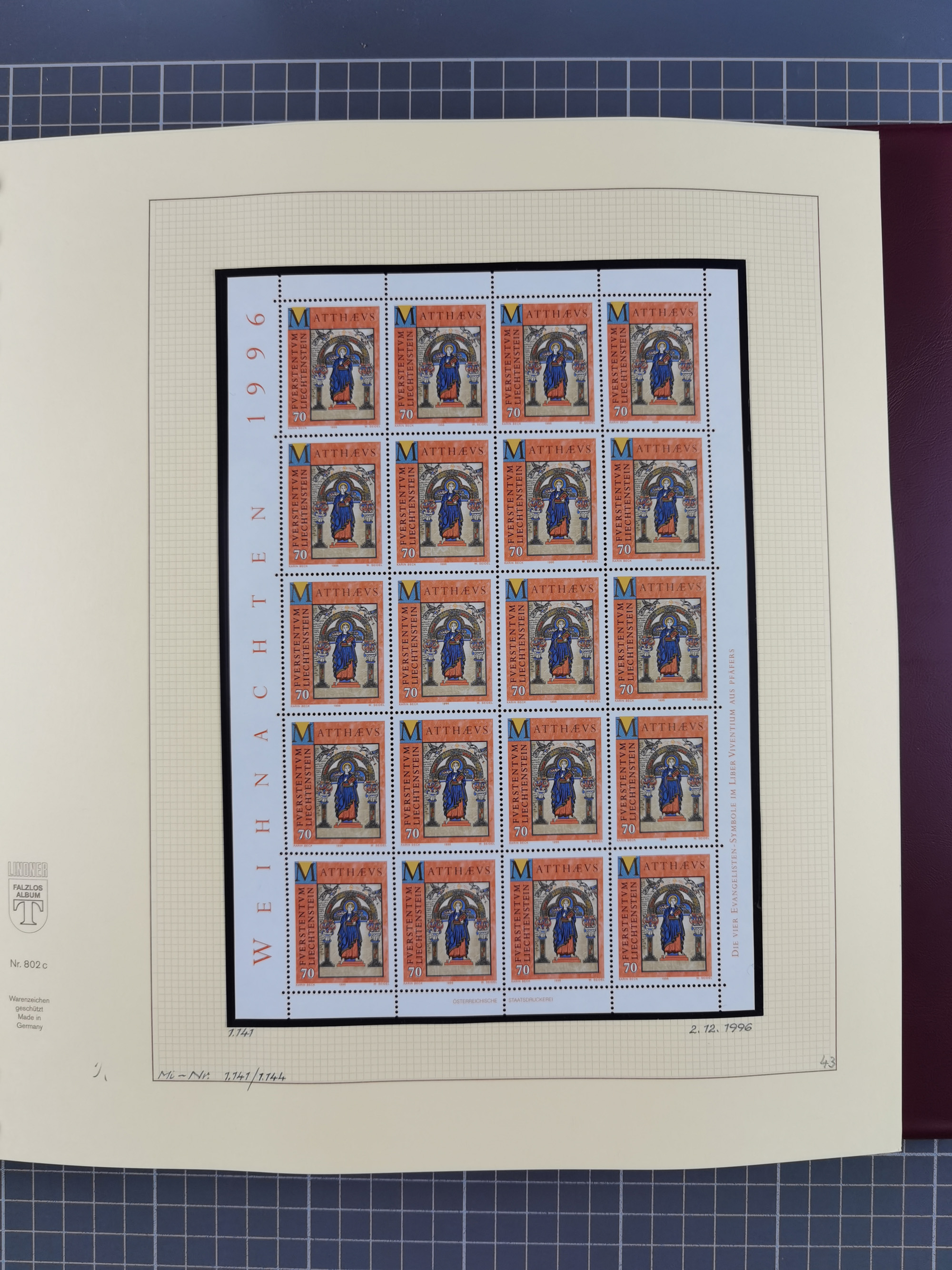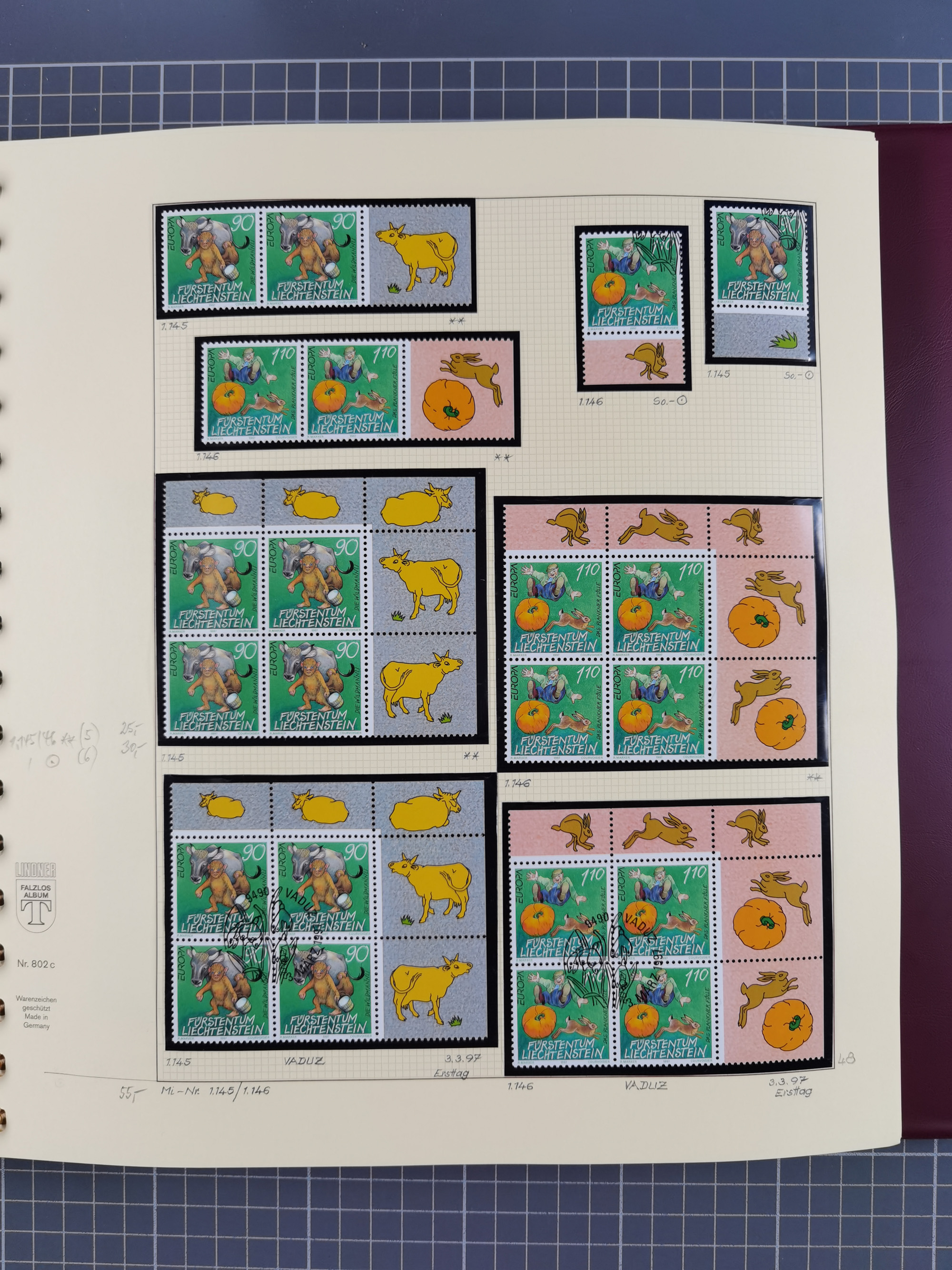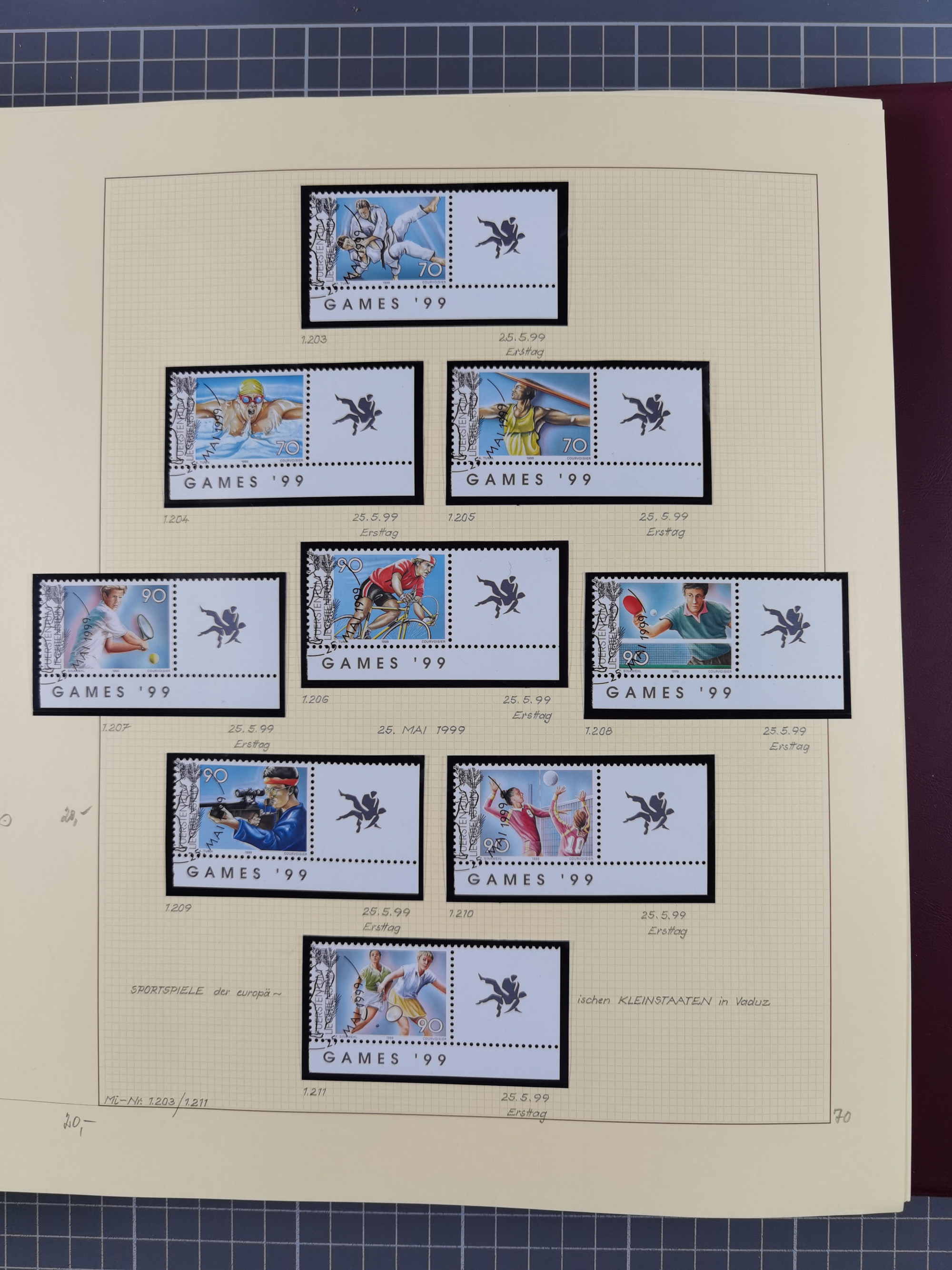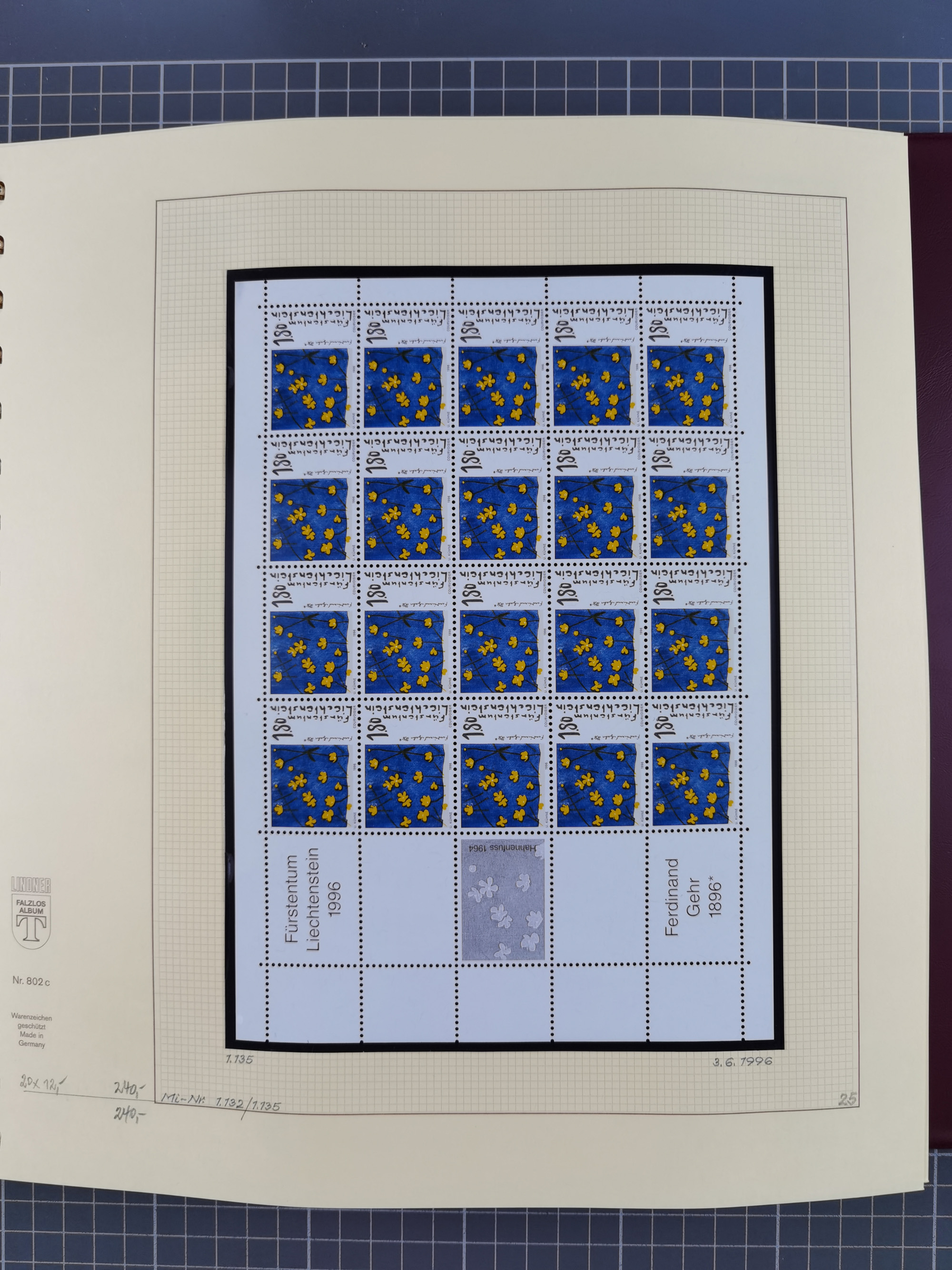 1996/2015, postfrische und gestempelte, in den Hauptnummern überkomplette Sammlung, in 18 Alben, fast alles in beiden Erhaltungen und mehrfach gesammelt, dabei praktisch vollständig in postfrischen Kleinbogen, viele postfrische Viererblöcke sowie FDC