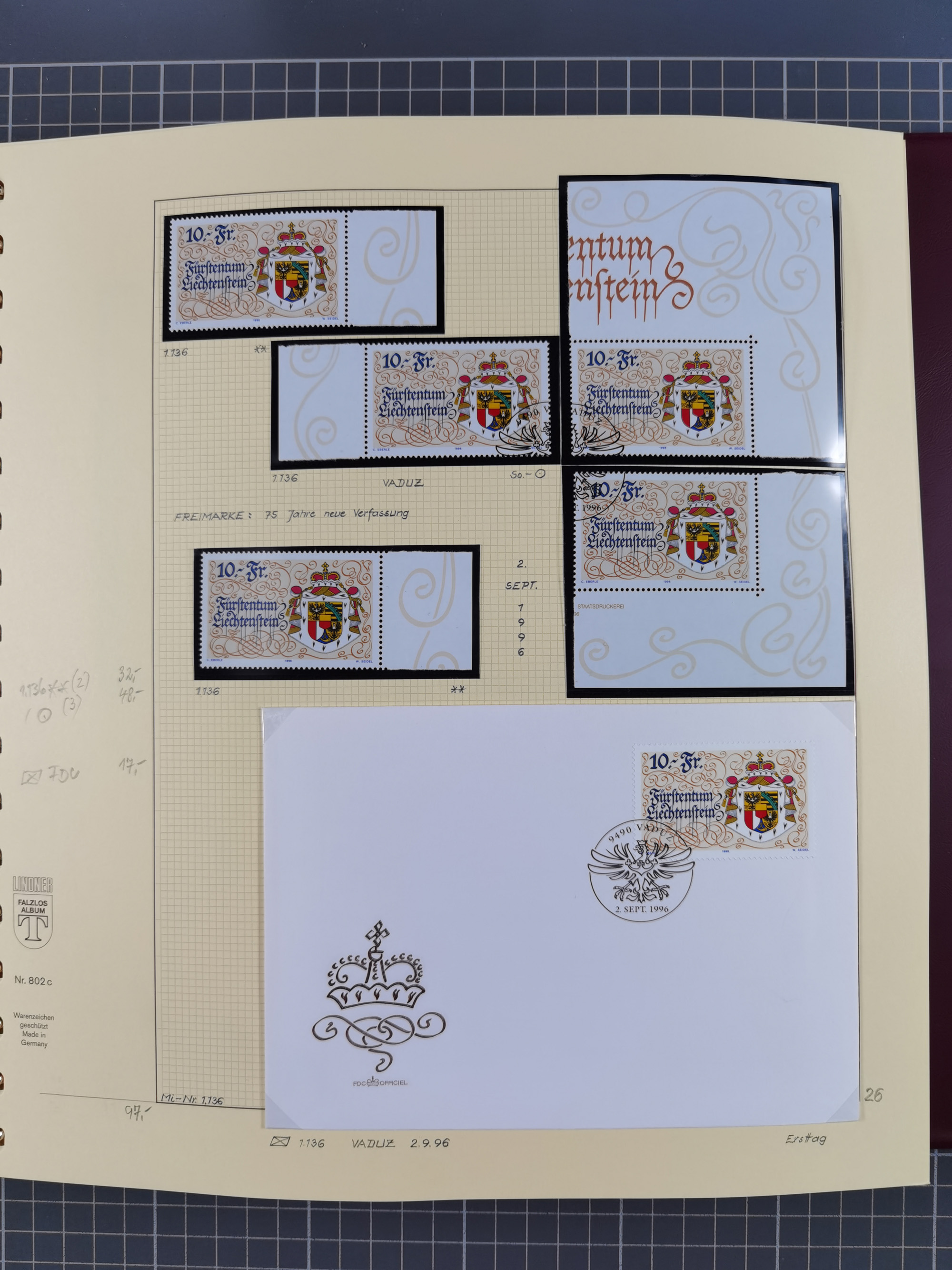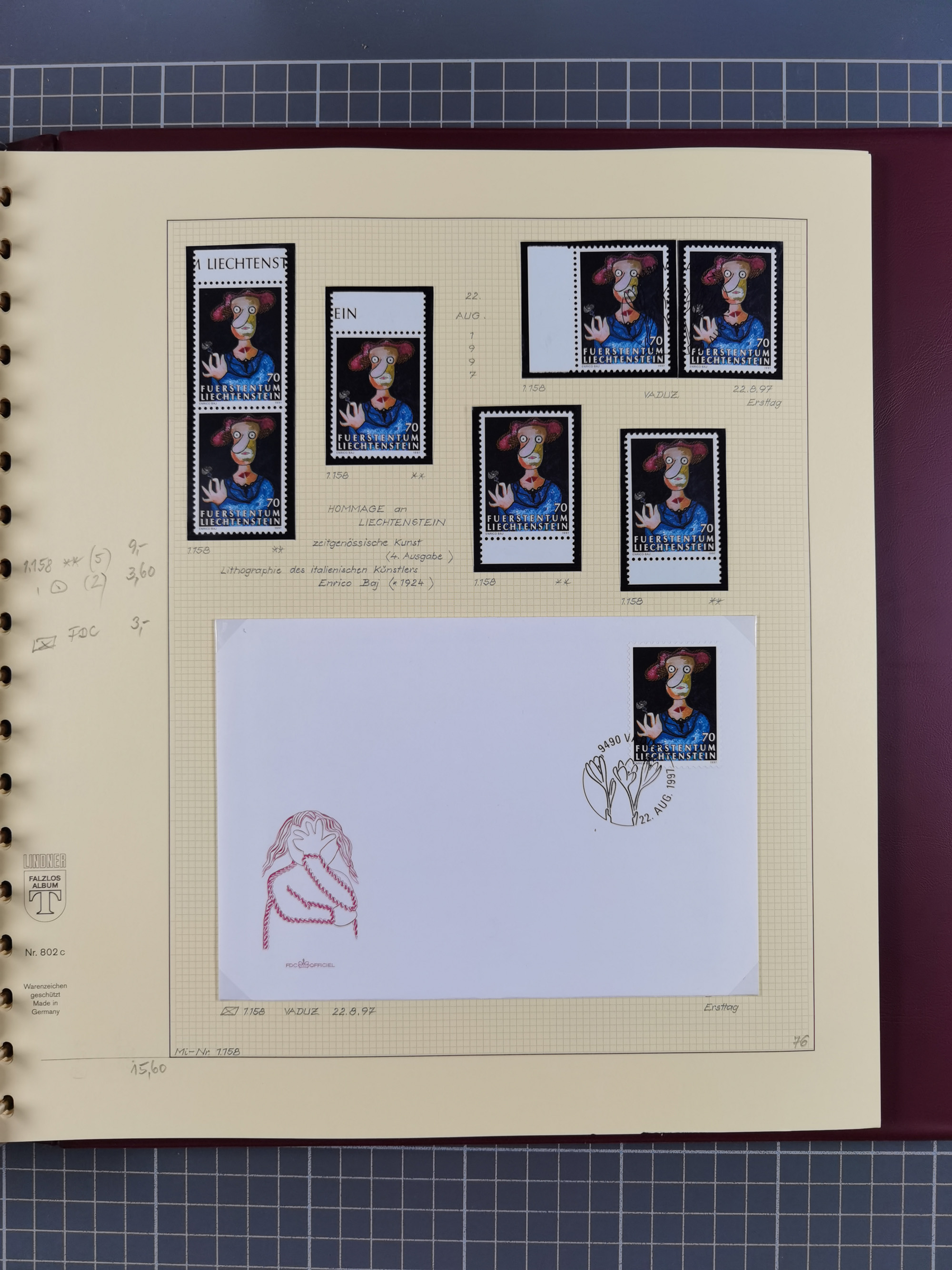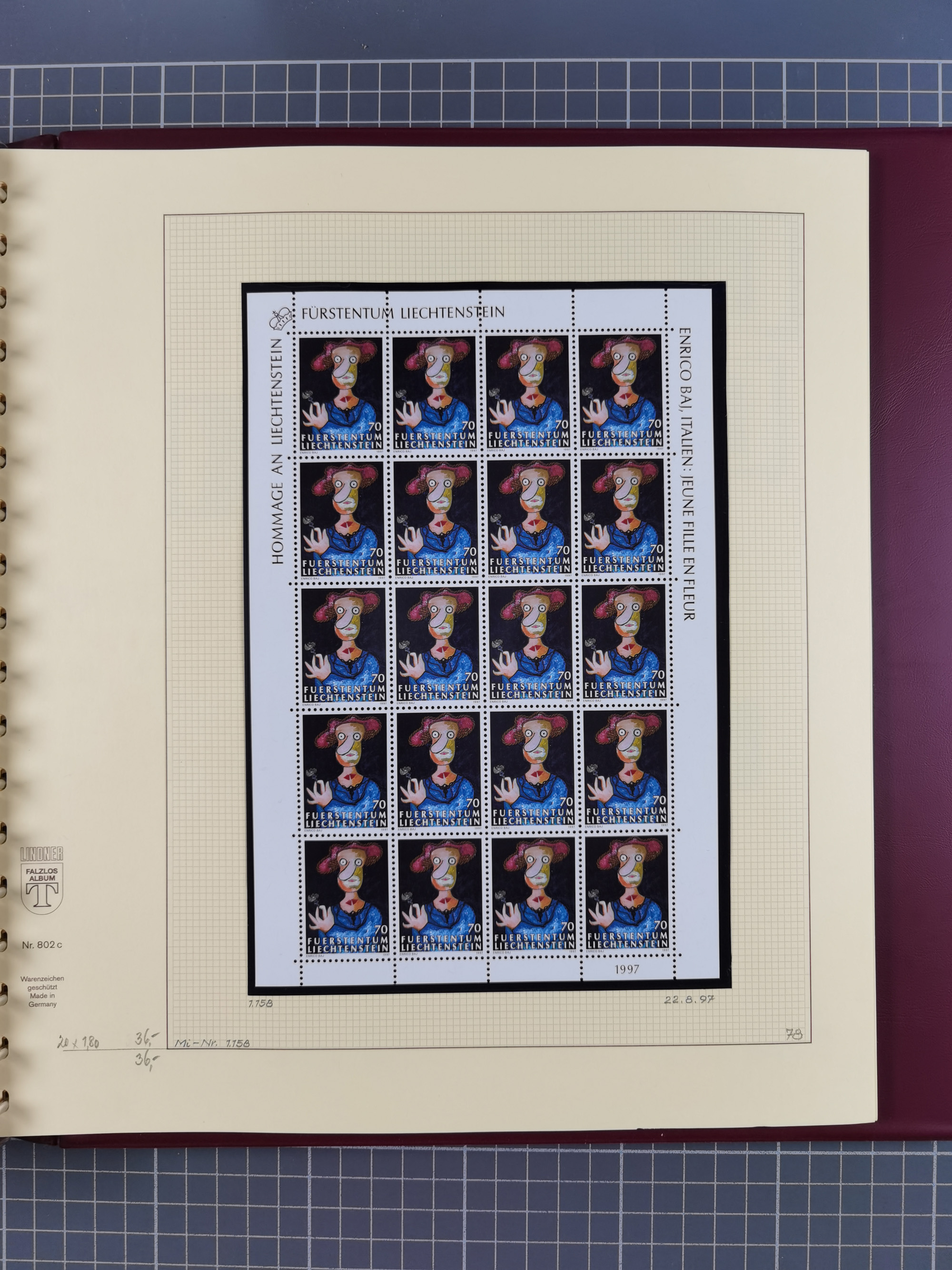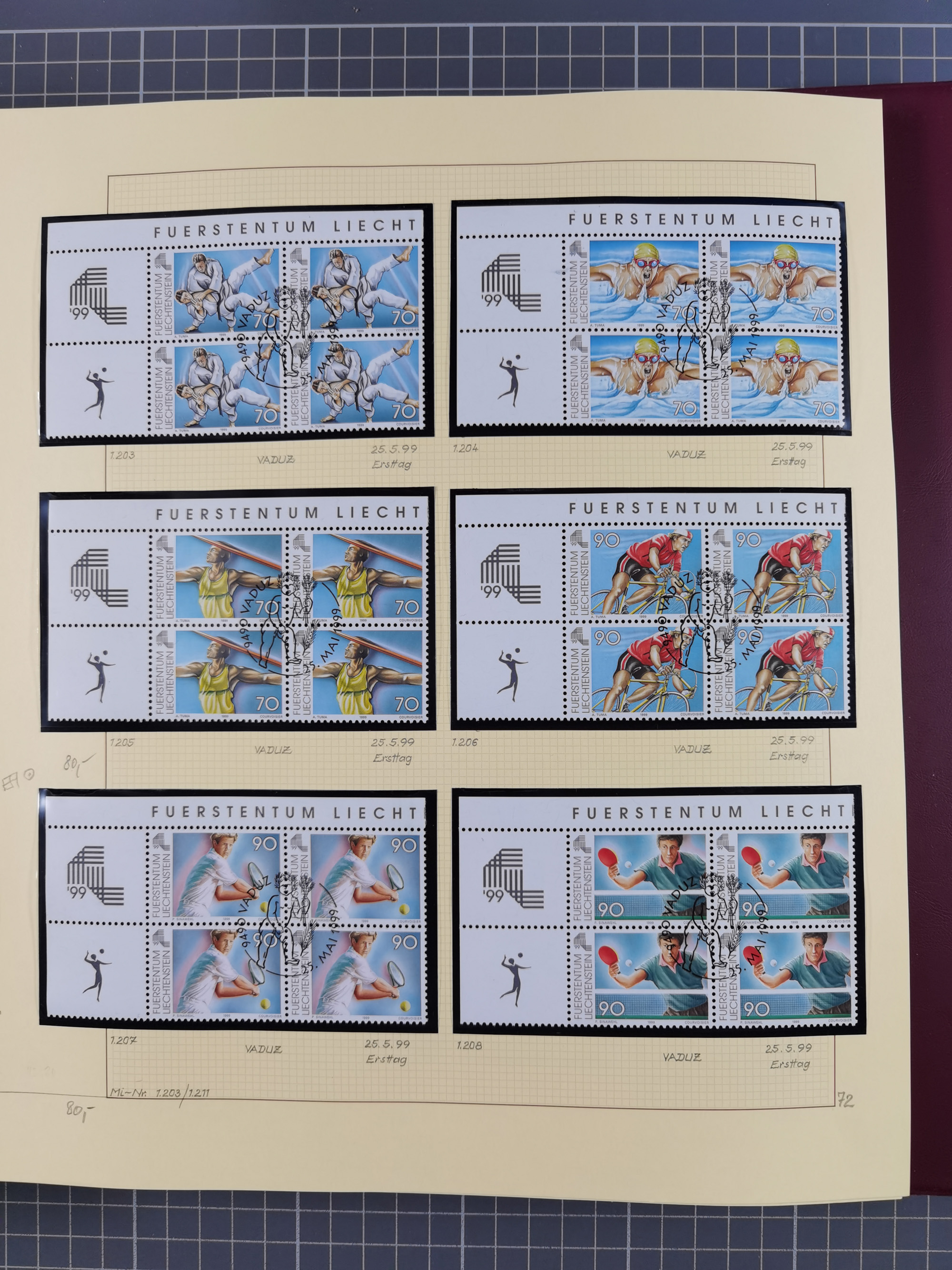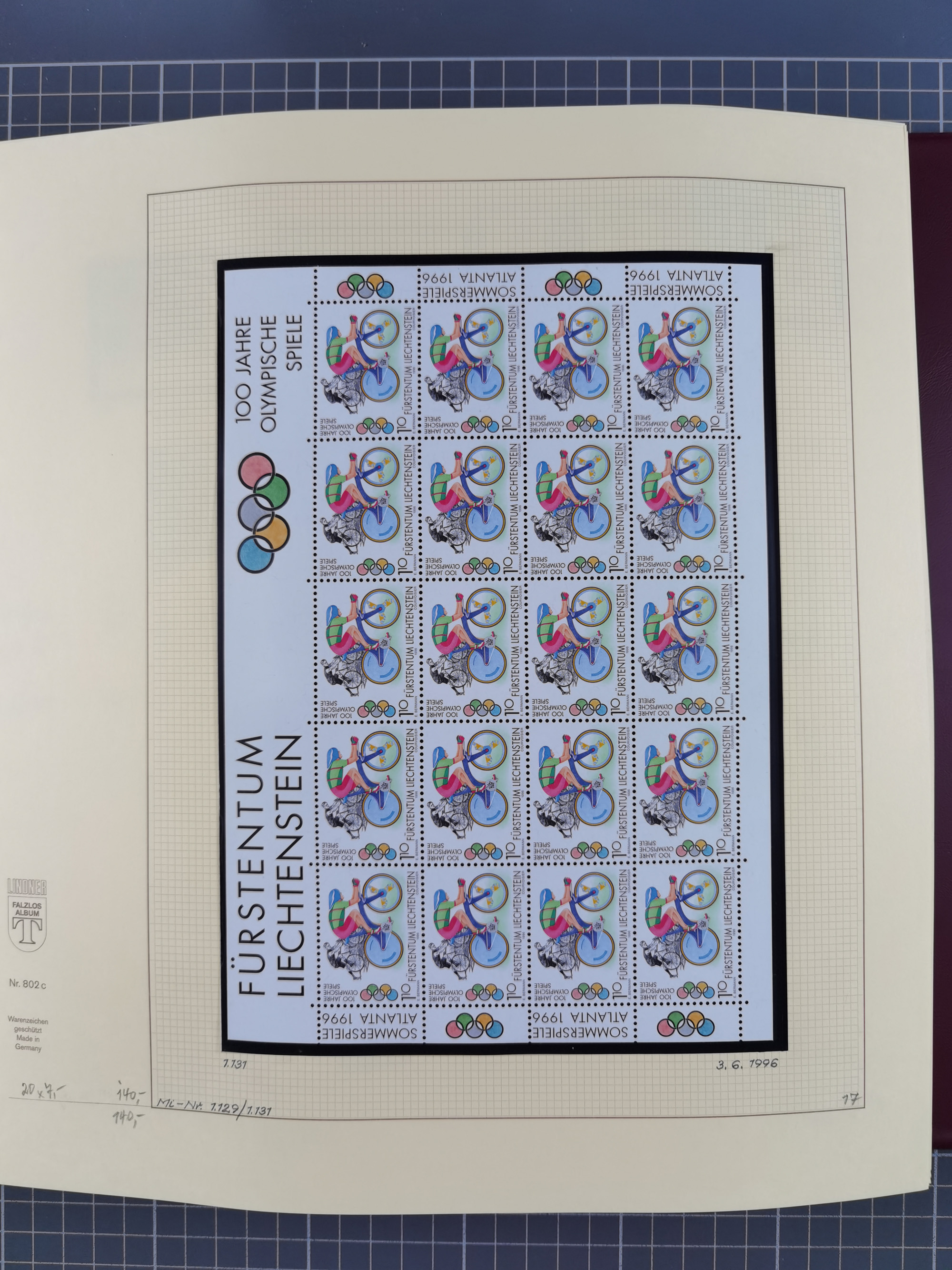 1996/2015, postfrische und gestempelte, in den Hauptnummern überkomplette Sammlung, in 18 Alben, fast alles in beiden Erhaltungen und mehrfach gesammelt, dabei praktisch vollständig in postfrischen Kleinbogen, viele postfrische Viererblöcke sowie FDC