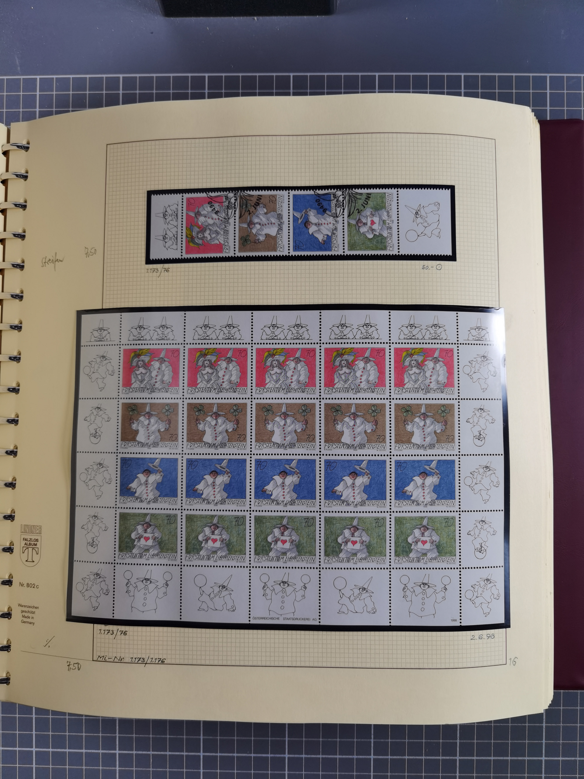 1856/1995, sehr umfangreiche Sammlung in 24 Bänden, dabei kleiner Teil Vor- und Mitläufer mit Belegen, Mi. 1-3 überkomplett und auch danach fast alles in beiden Erhaltungen und oft mehrfach vorhanden mit auch vielen Briefen und FDC. Enthalten sind u.a. Bl.1 (2) Mi. 140-42 (4), 8 Zeppelin-Belege 1931, CEPT 1960 im gestempelten Kleinbogen, kleiner Teil Dienstmarken, usw., usw. Ab ca. 1964 vieles zusätzlich postfrisch in Viererblocks und Bogen. Ein äußerst reichhaltiges und sehr sauberes Objekt.