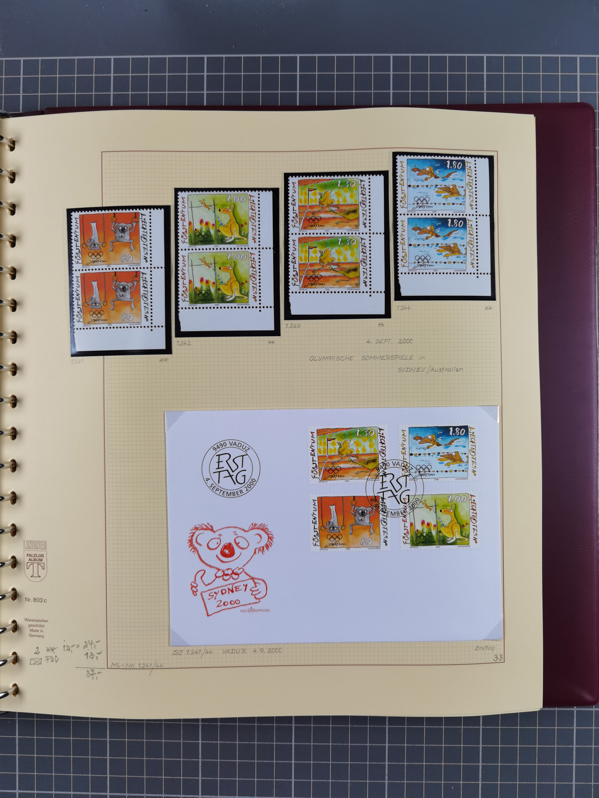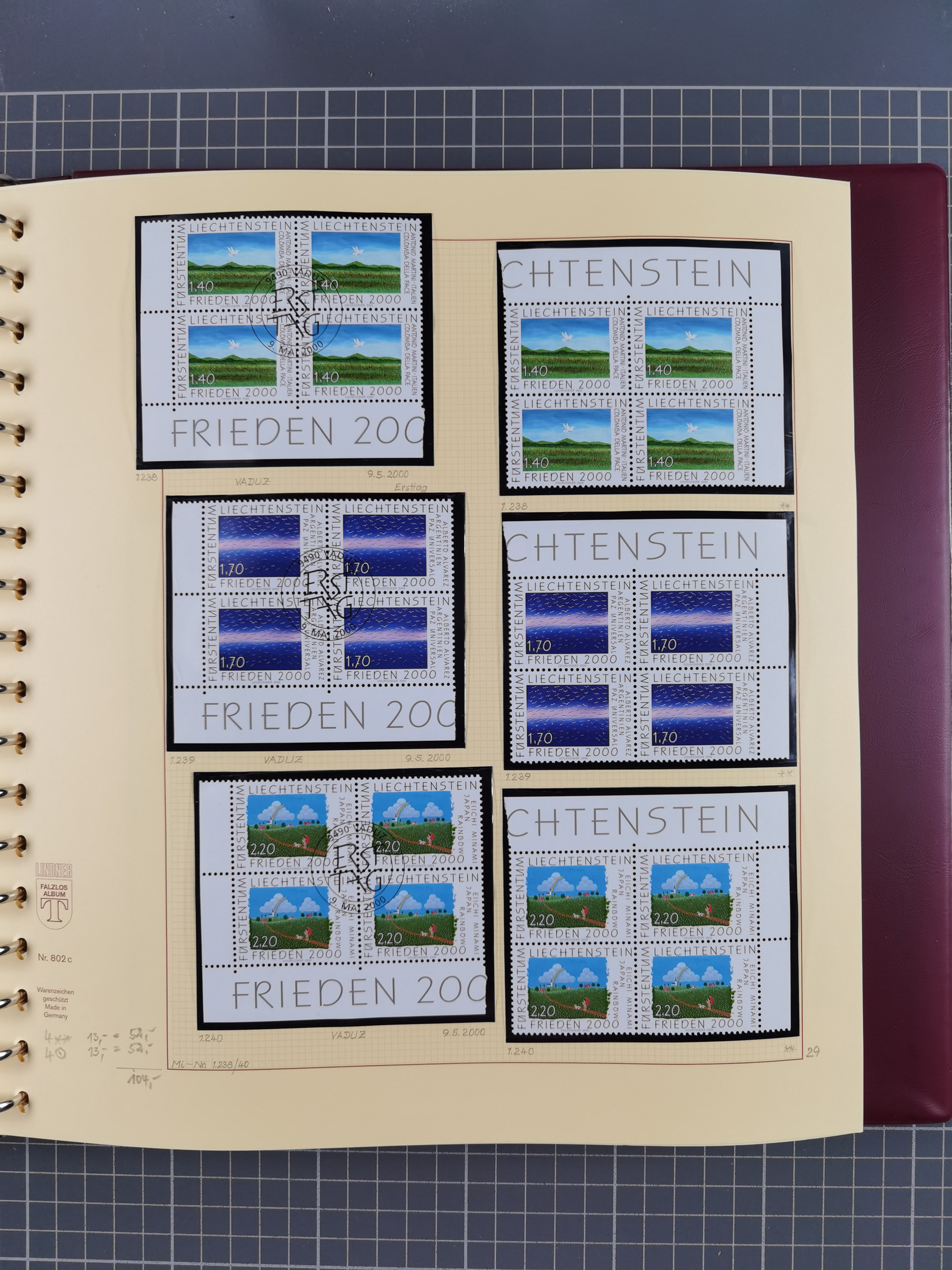 2000/15, postfrische und gestempelte, in den Hauptnummern je überkomplette Sammlung, dabei Marken je einzeln und in Viererblocks, Blocks meist per 2 Stück, sowie FDCs, sauber in 15 Ordnern